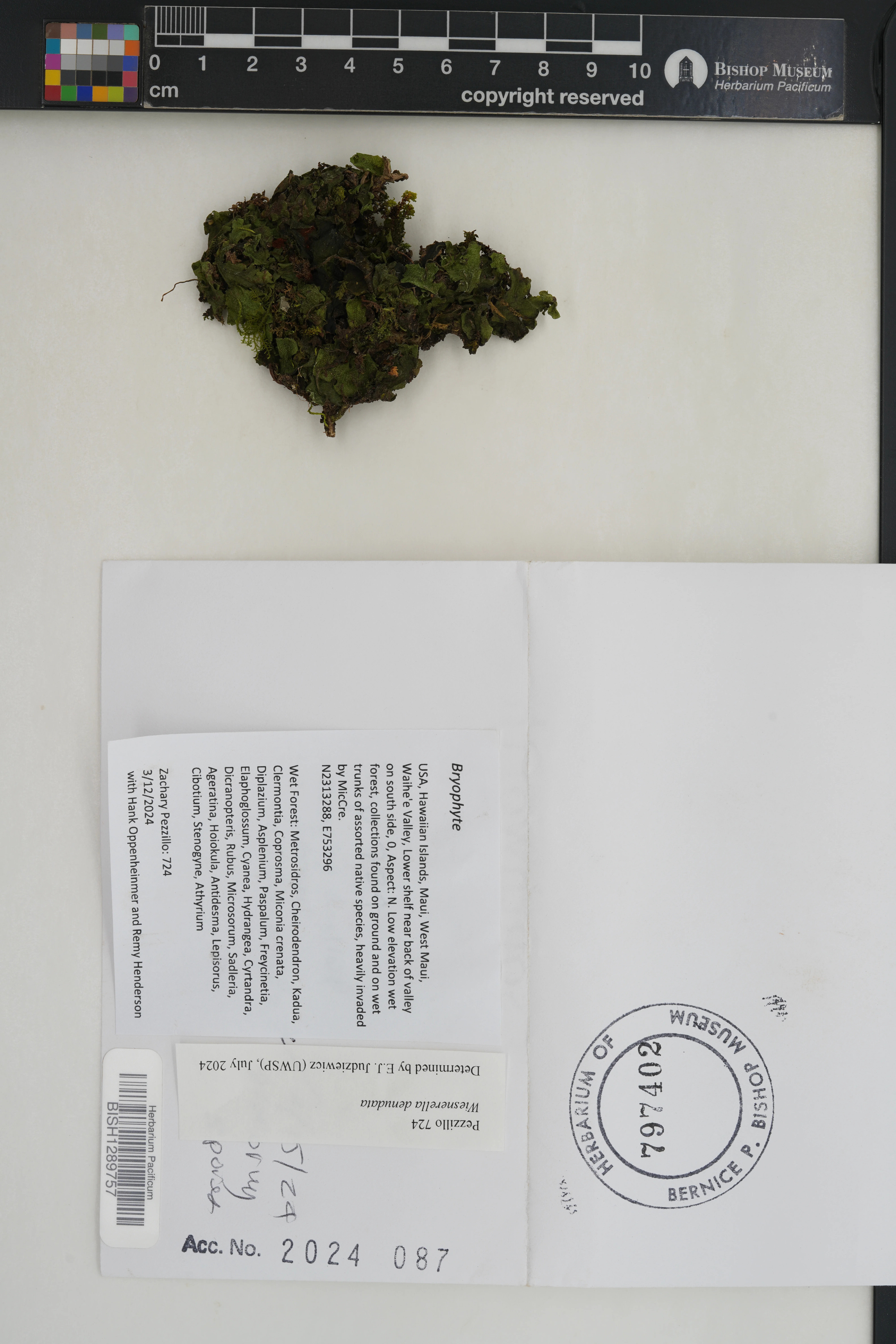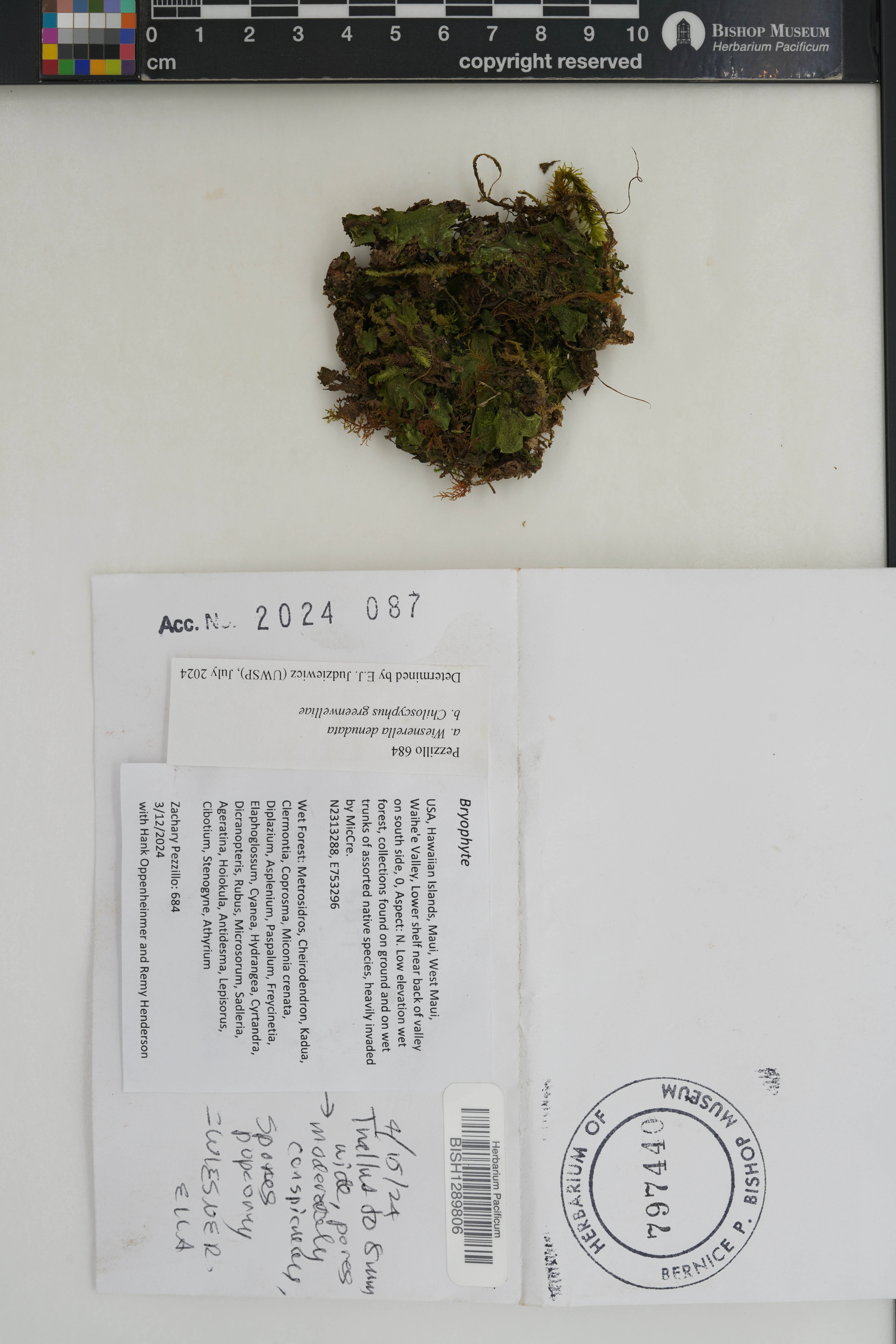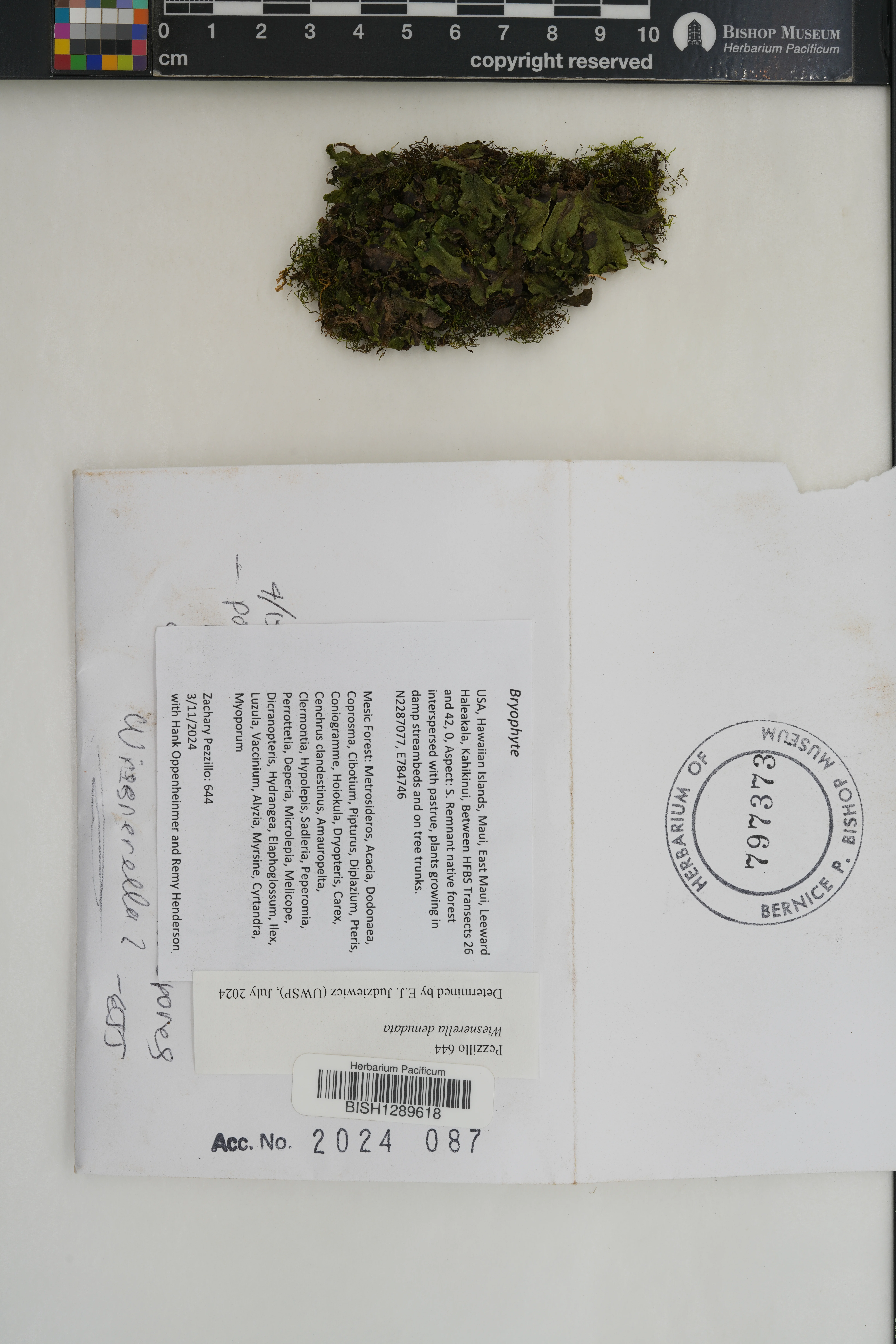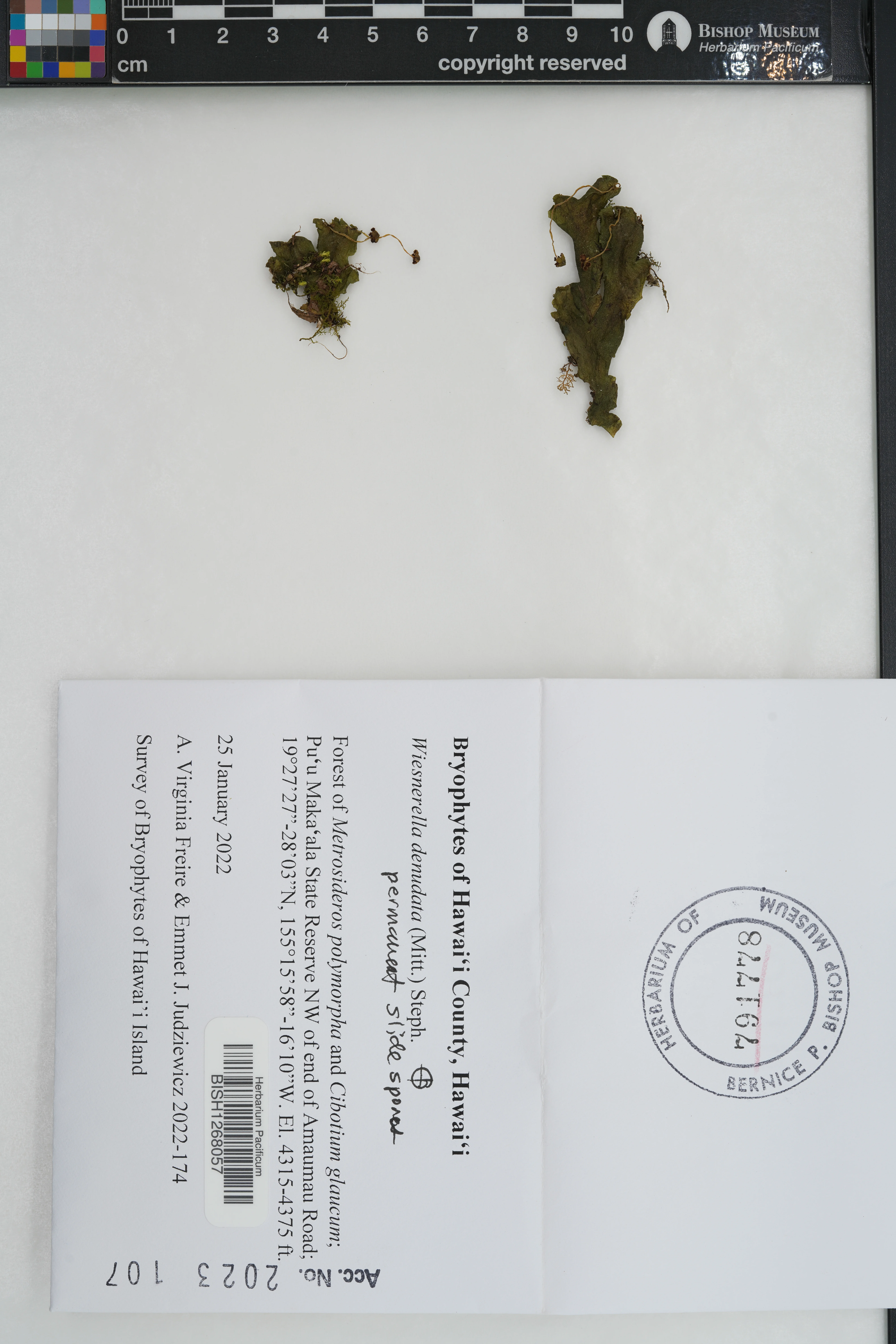 Kingdom: Viridiplantae Phylum: Marchantiophyta Class/Clade: Marchantiopsida Order: Marchantiales Family: Wiesnerellaceae Genus: Wiesnerella