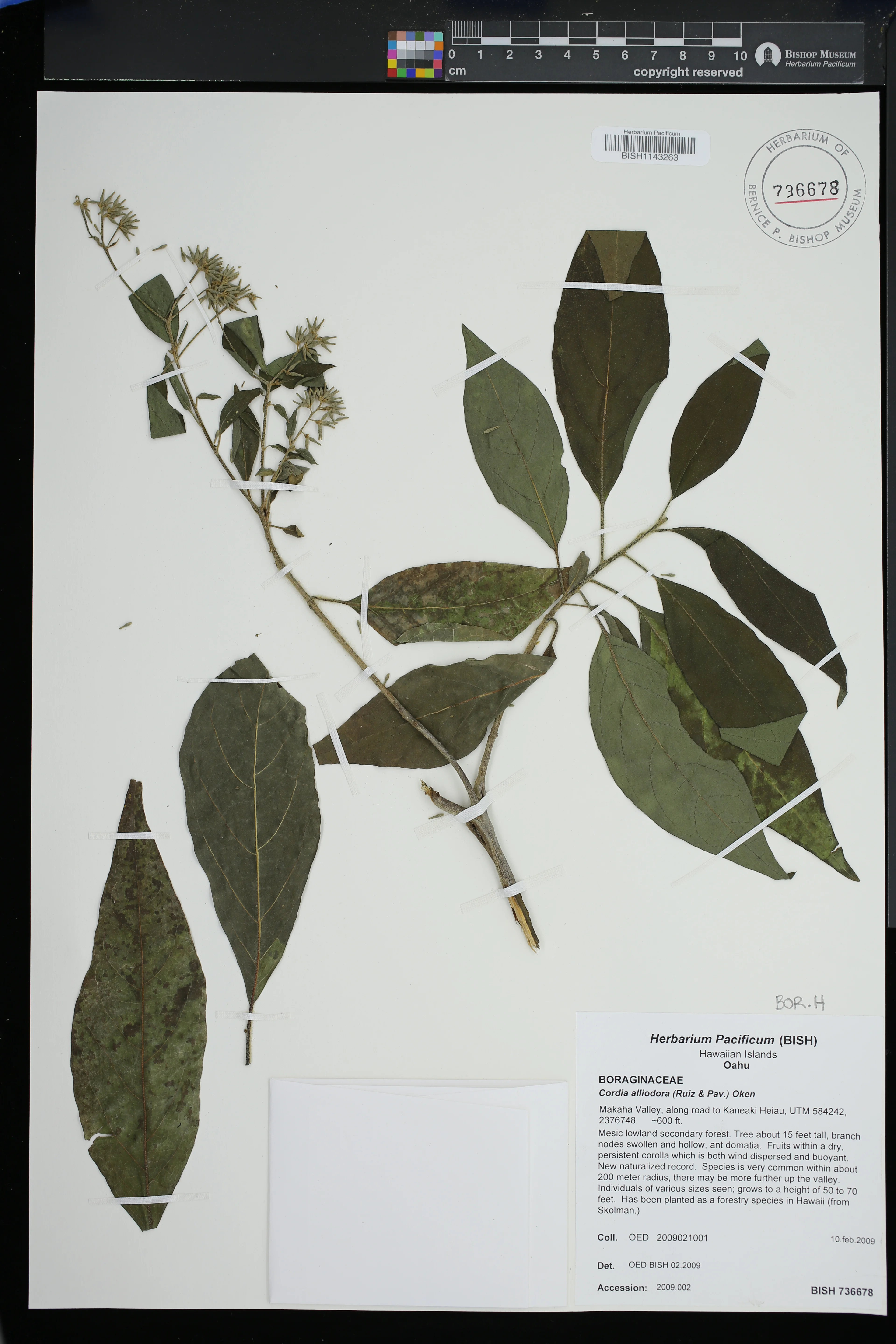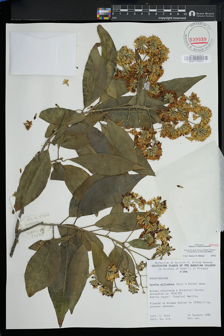 | 7 | Cordia alliodora | (Ruiz & Pav.) Oken | Waimea Arboretum & Botanical Garden | PRESERVED_SPECIMEN | Cory, C. | s.n. | Oahu | BISH | 1/16/1986 | |