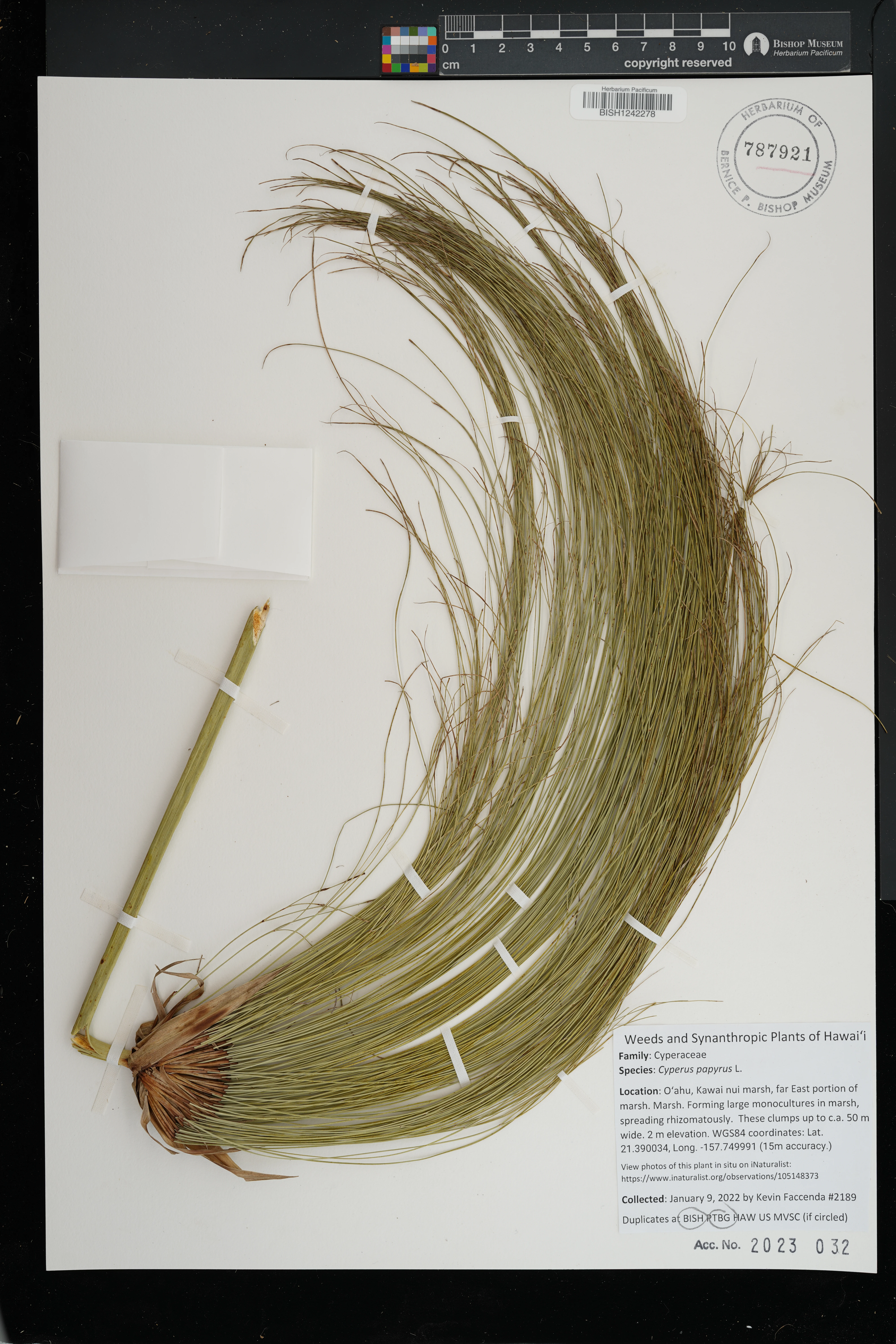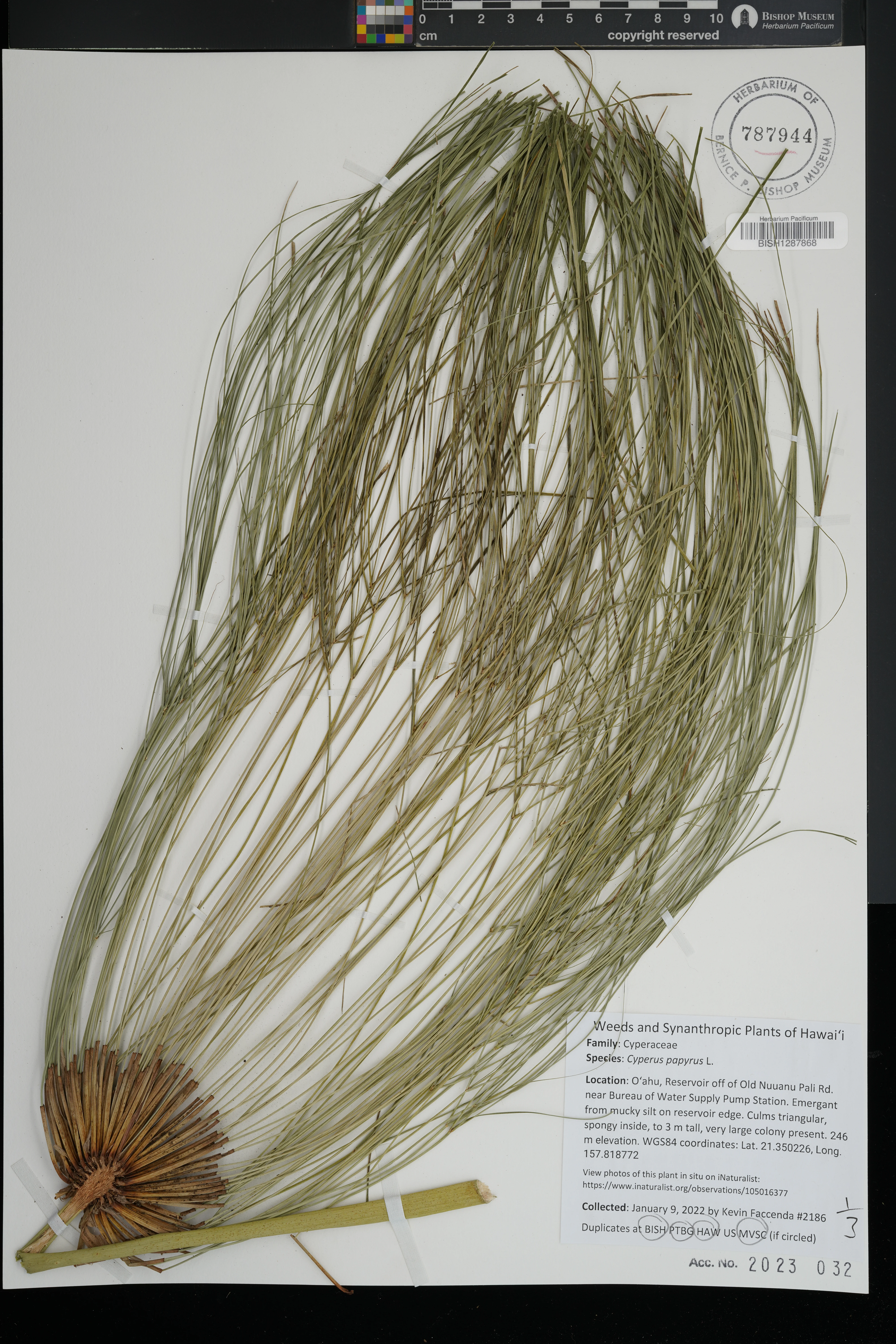 Large monodominant patch growing in wetland area on east side near mouth of Waipio Valley. Stems over 7 ft. tall. Margins with Eichhornia crassipes, Commelina diffusa, Schoenoplectus californicus. |