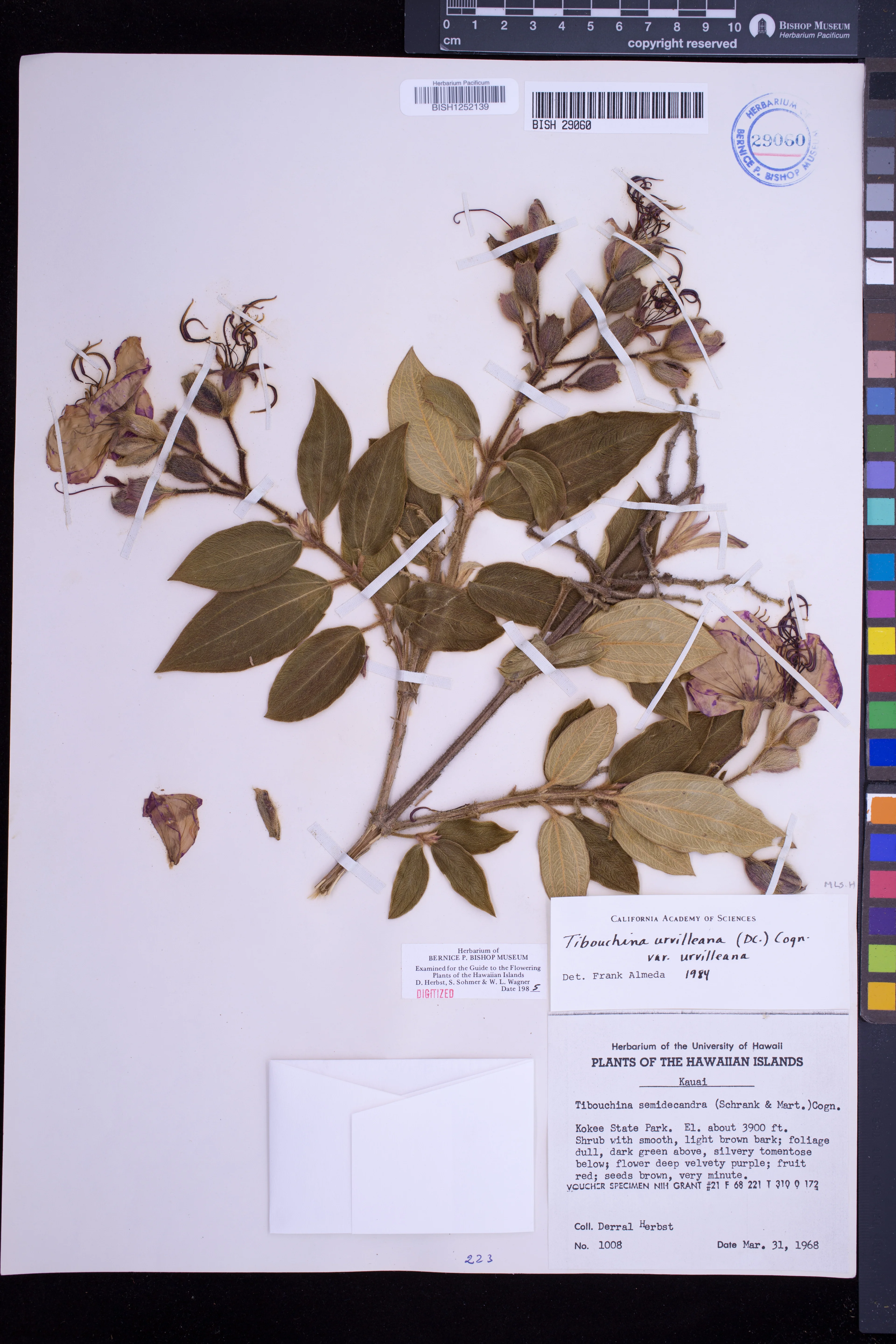 Wagner et al. 1990:916 (K, O, M, H [as Tibouchina urvilleana]); Staples & Herbst 2005:397 (DESCR); Guimaraes et al. 2019:971 (COMBNOV, Syn. T. urvilleana = P. urvilleanum); Jean Fujikawa pers. comm. 2025 (O†, 2015)