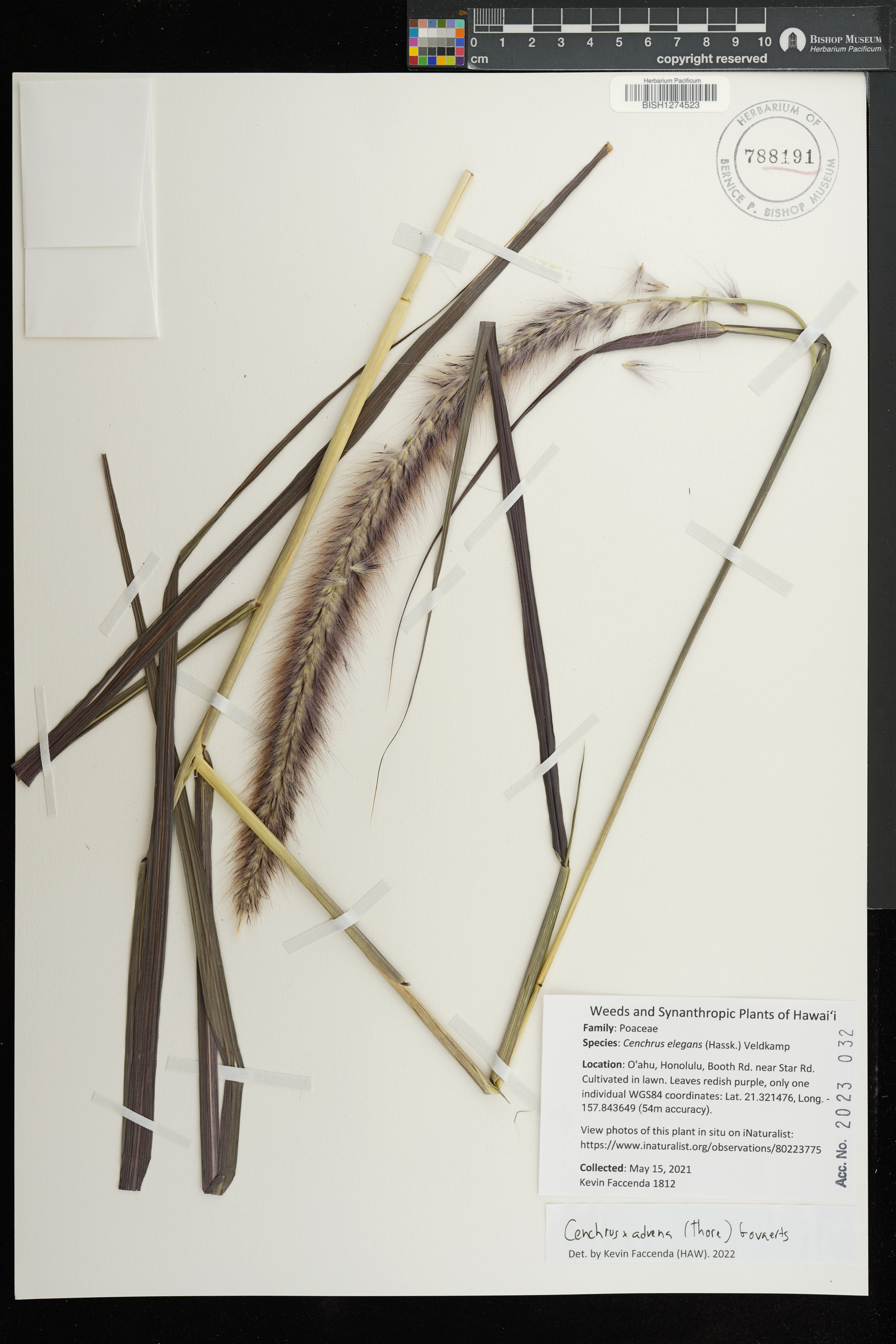 Kingdom: Viridiplantae Phylum: Magnoliophyta Class/Clade: Monocots Order: Poales Family: Poaceae Genus: Cenchrus