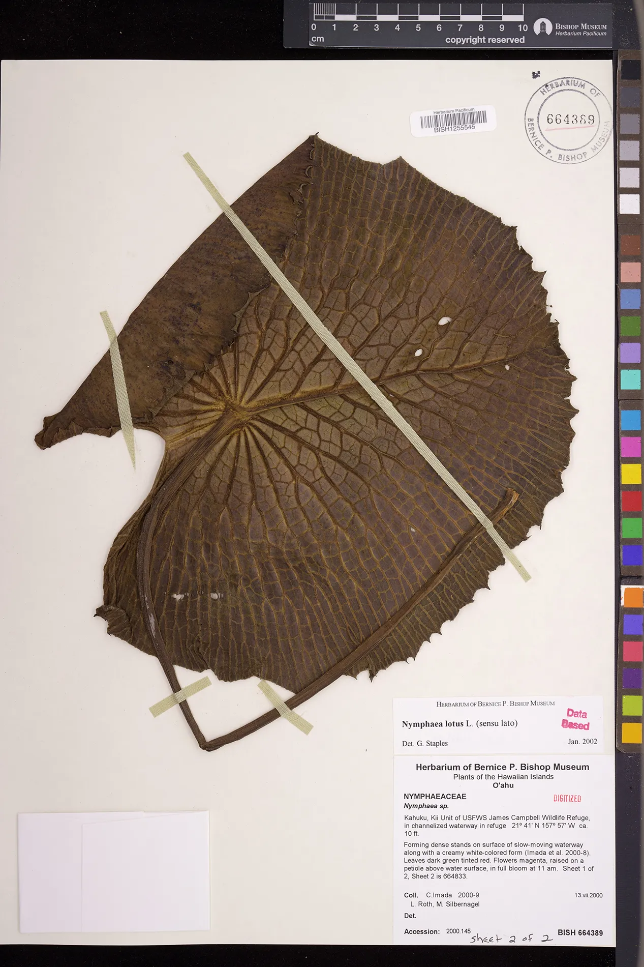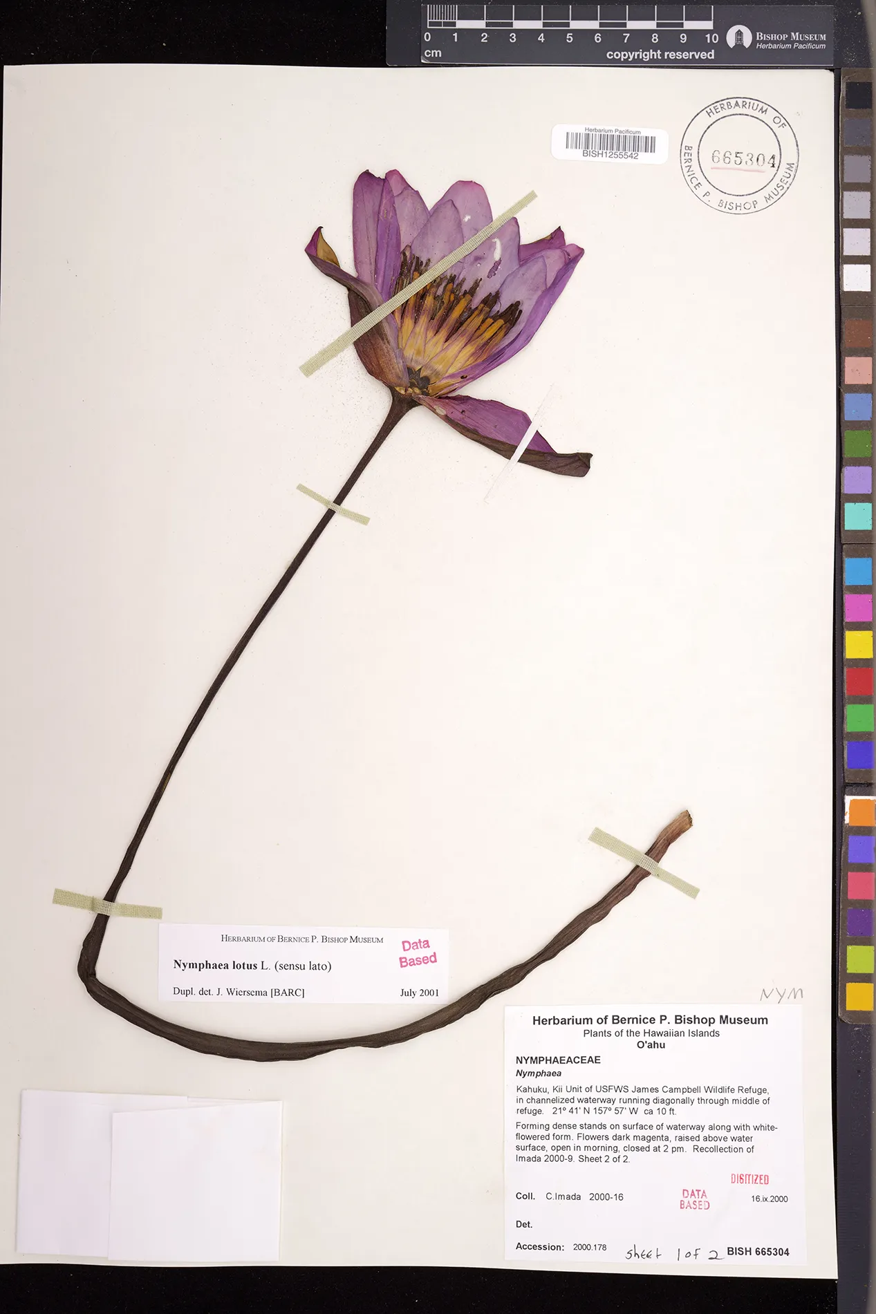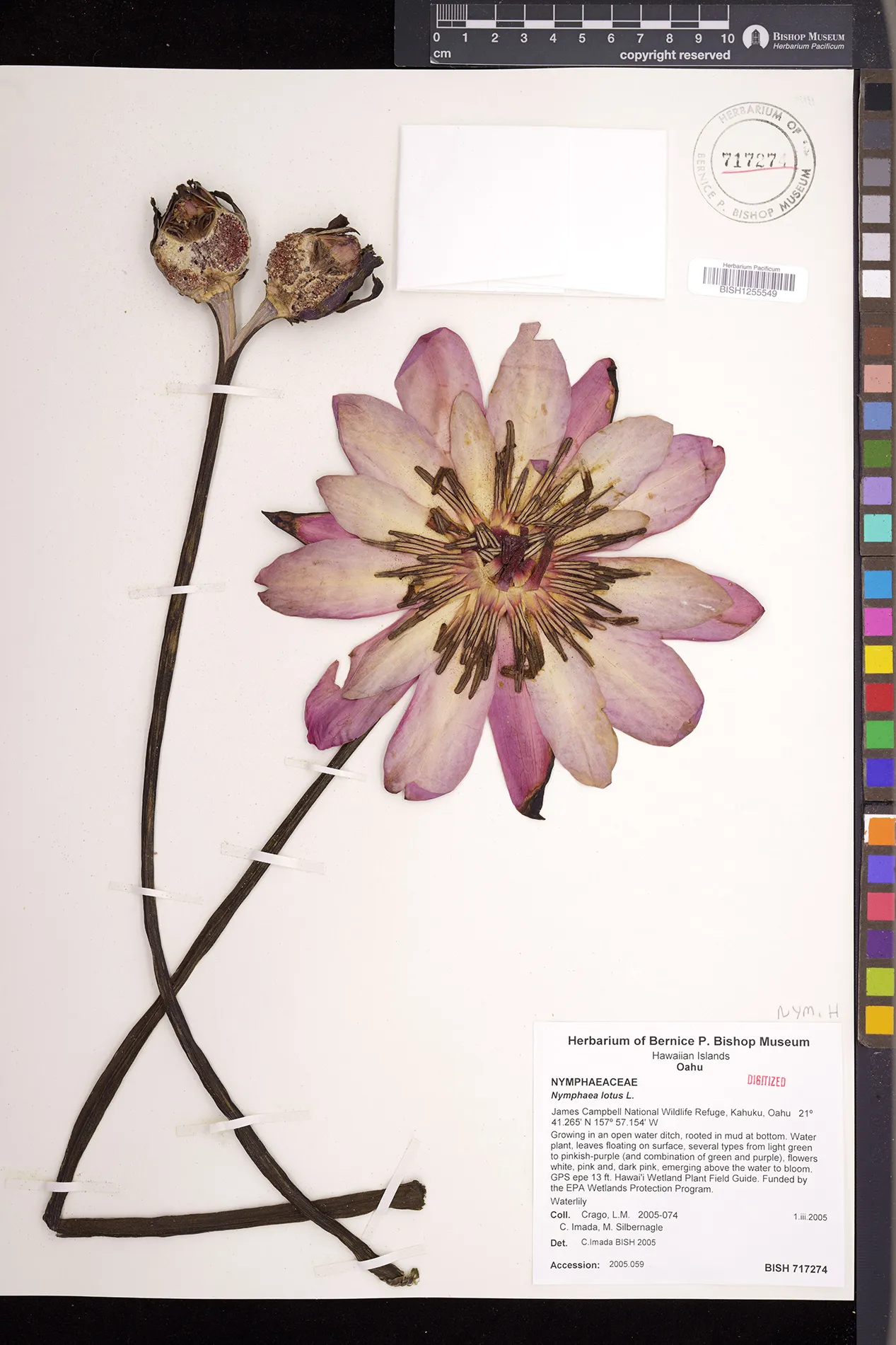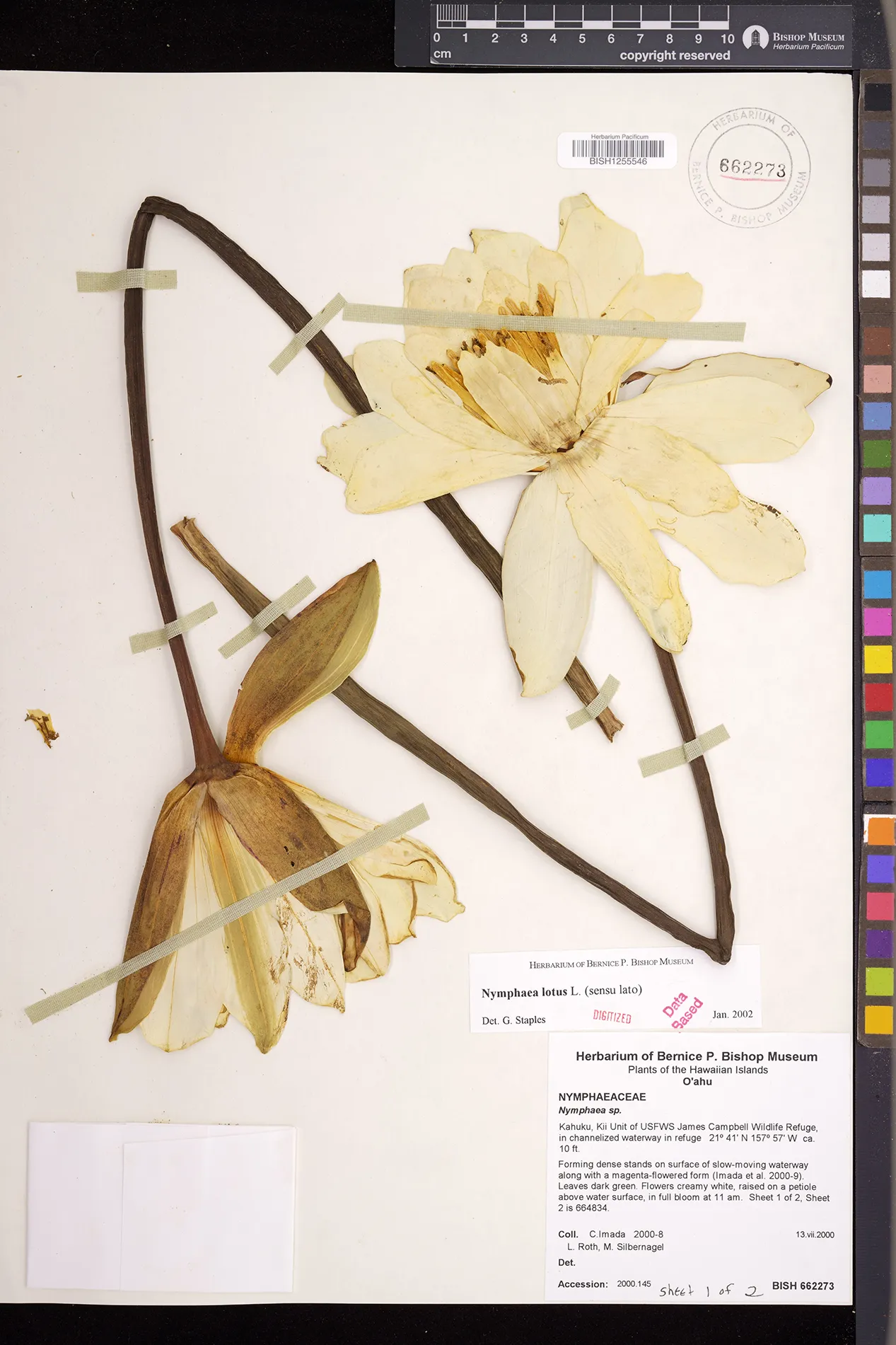 Forming dense stands on surface of slow-moving waterway along with a creamy white-colored form (Imada et al. 2000-8). |