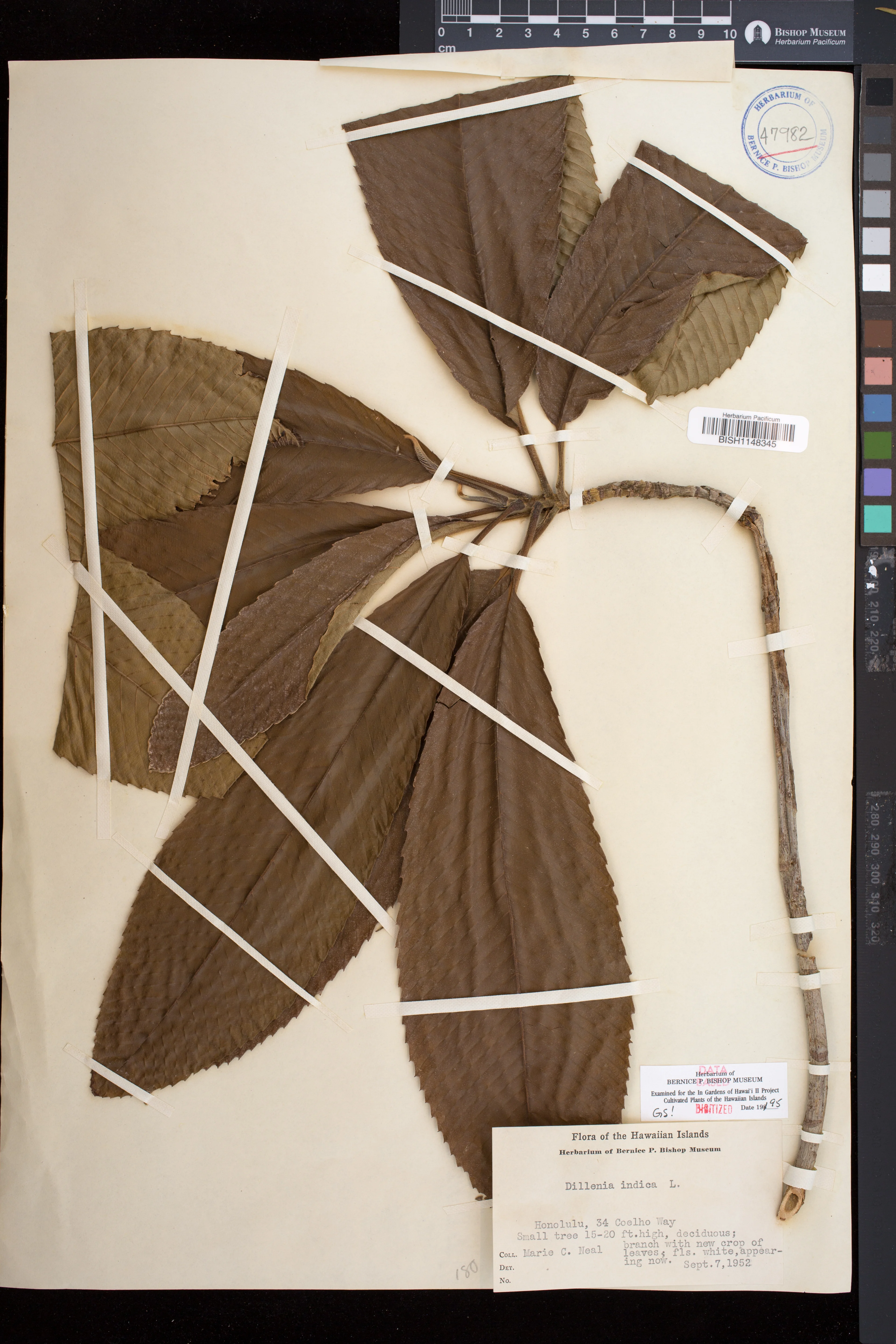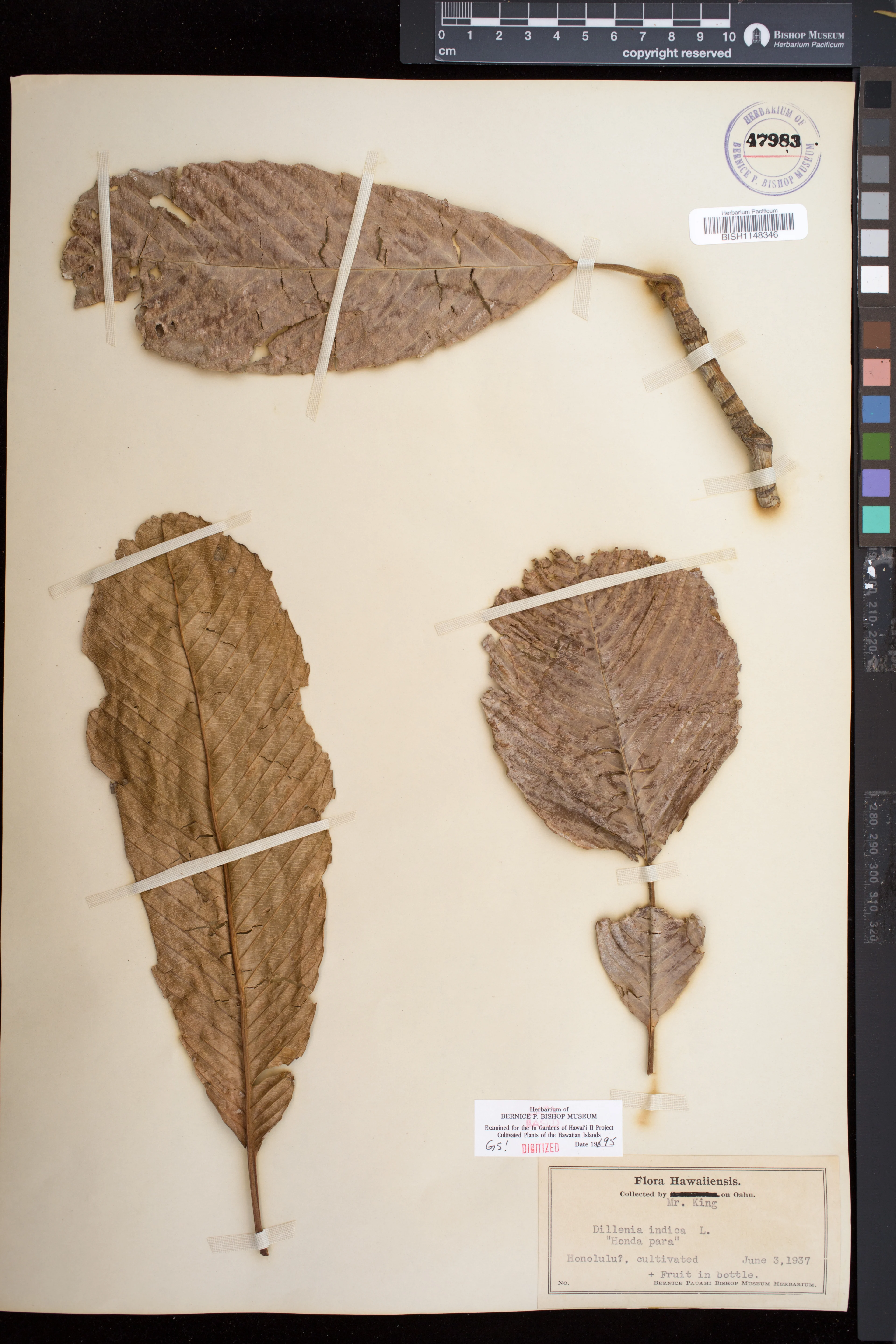 | 11 | Dillenia indica | L. | Honolulu | PRESERVED_SPECIMEN | King | Collector Number: s.n. | Oahu | BISH | 6/3/1937 | |