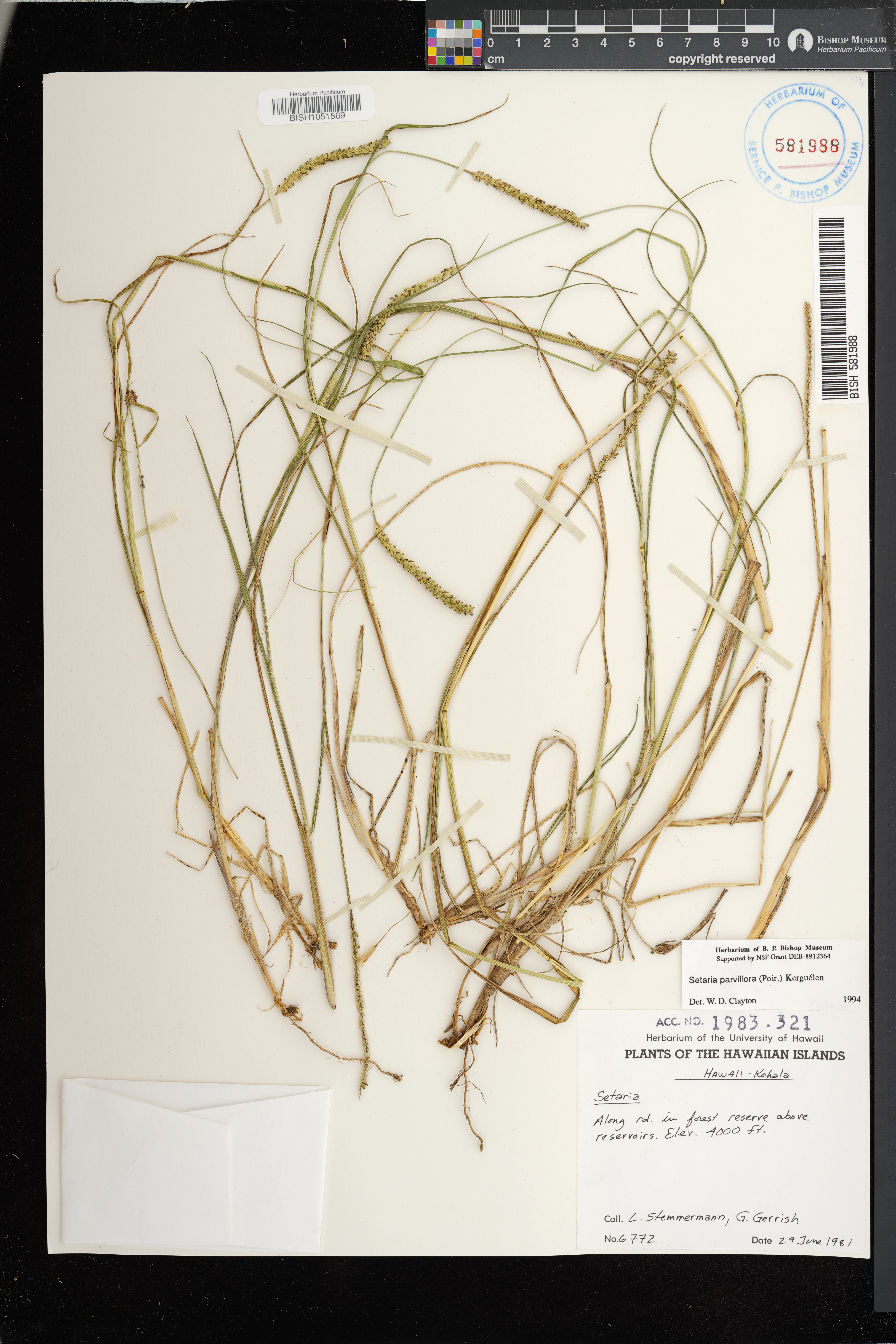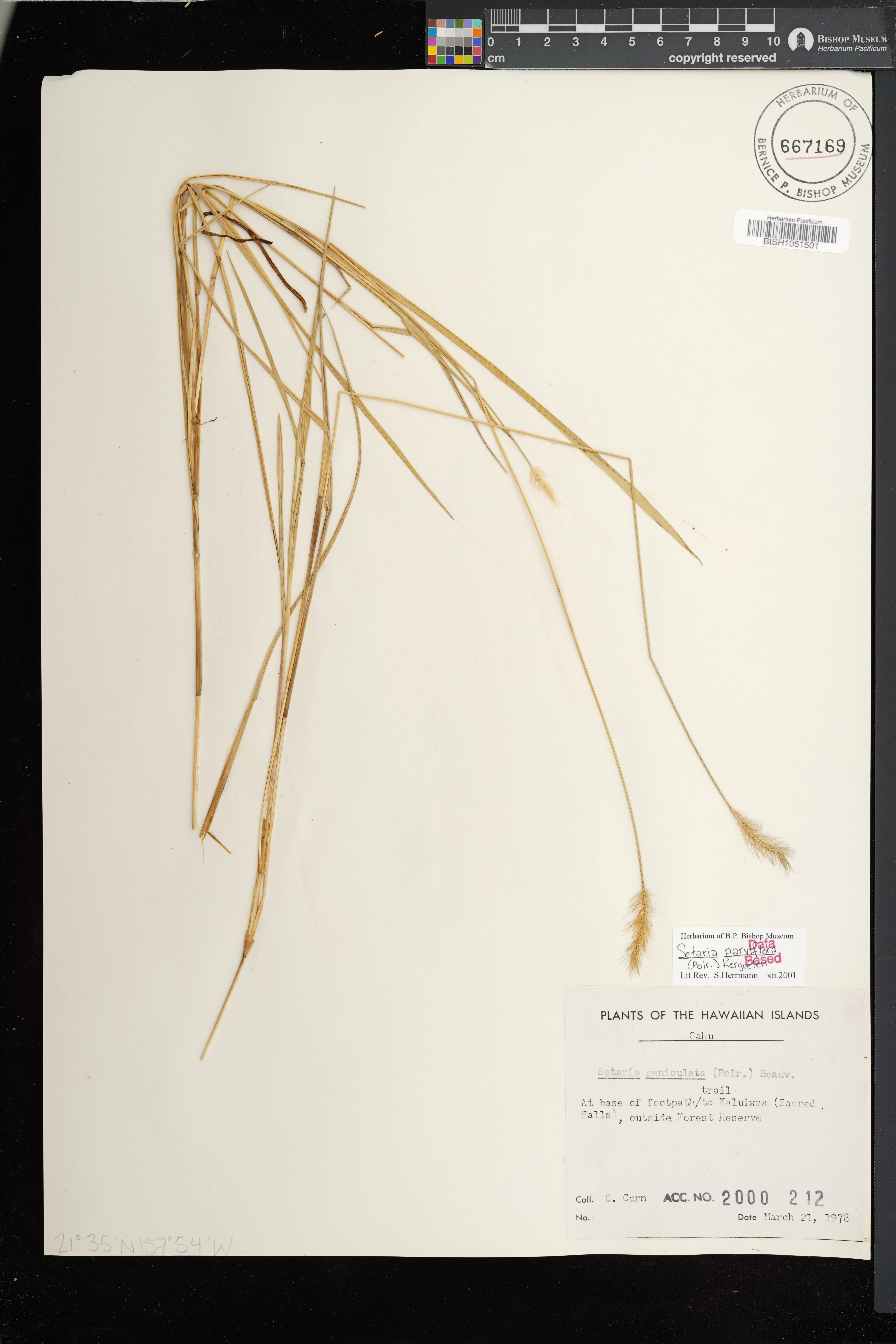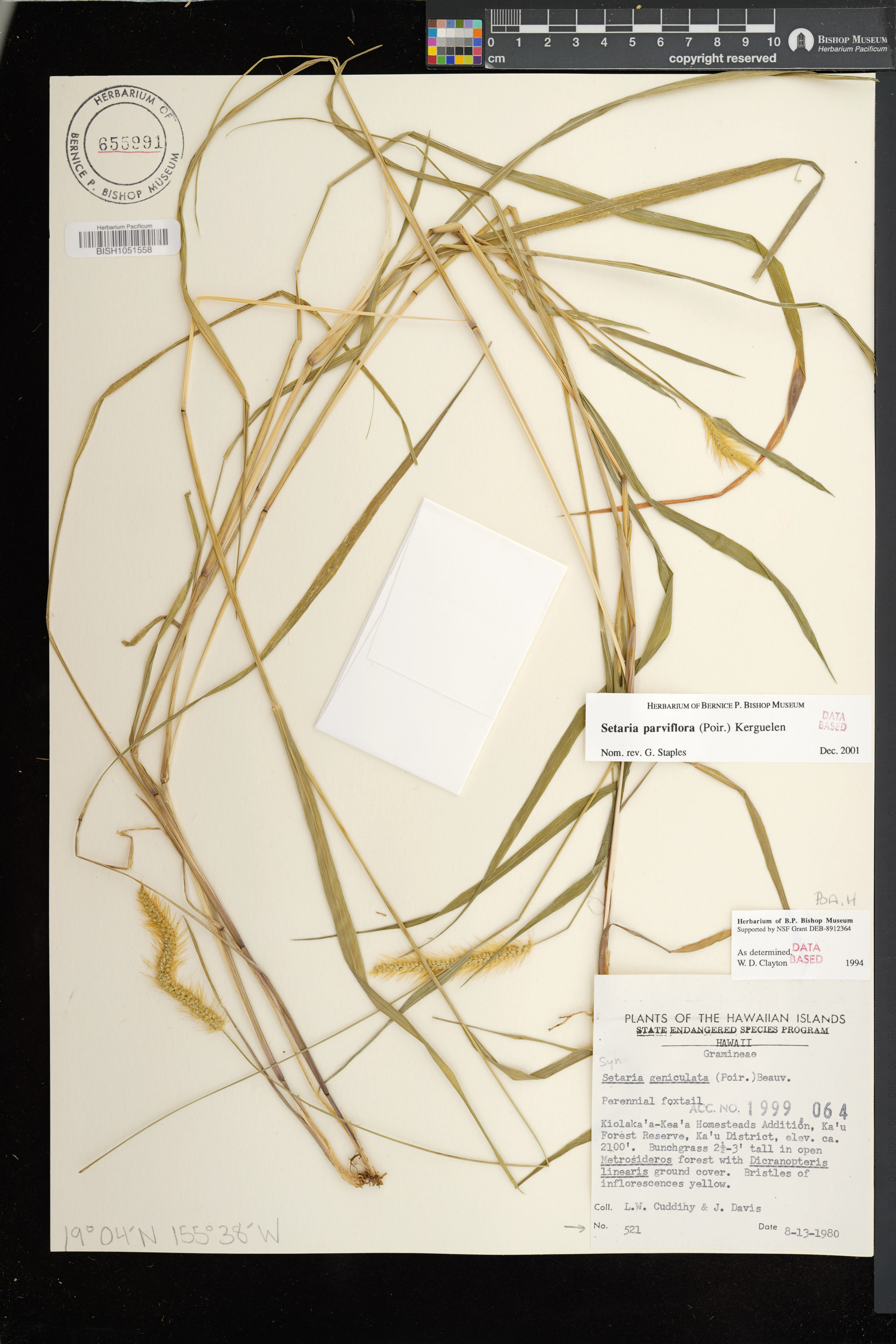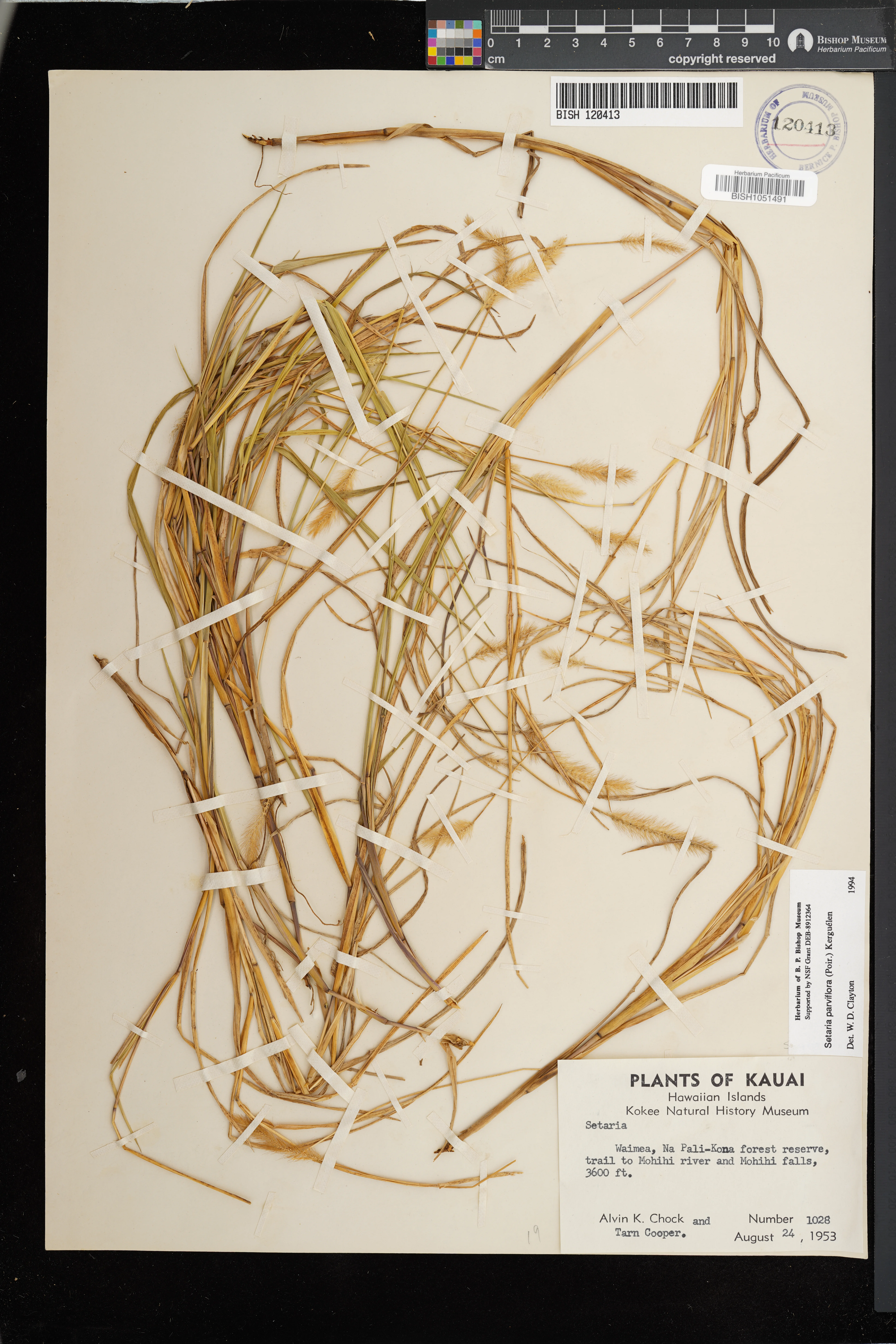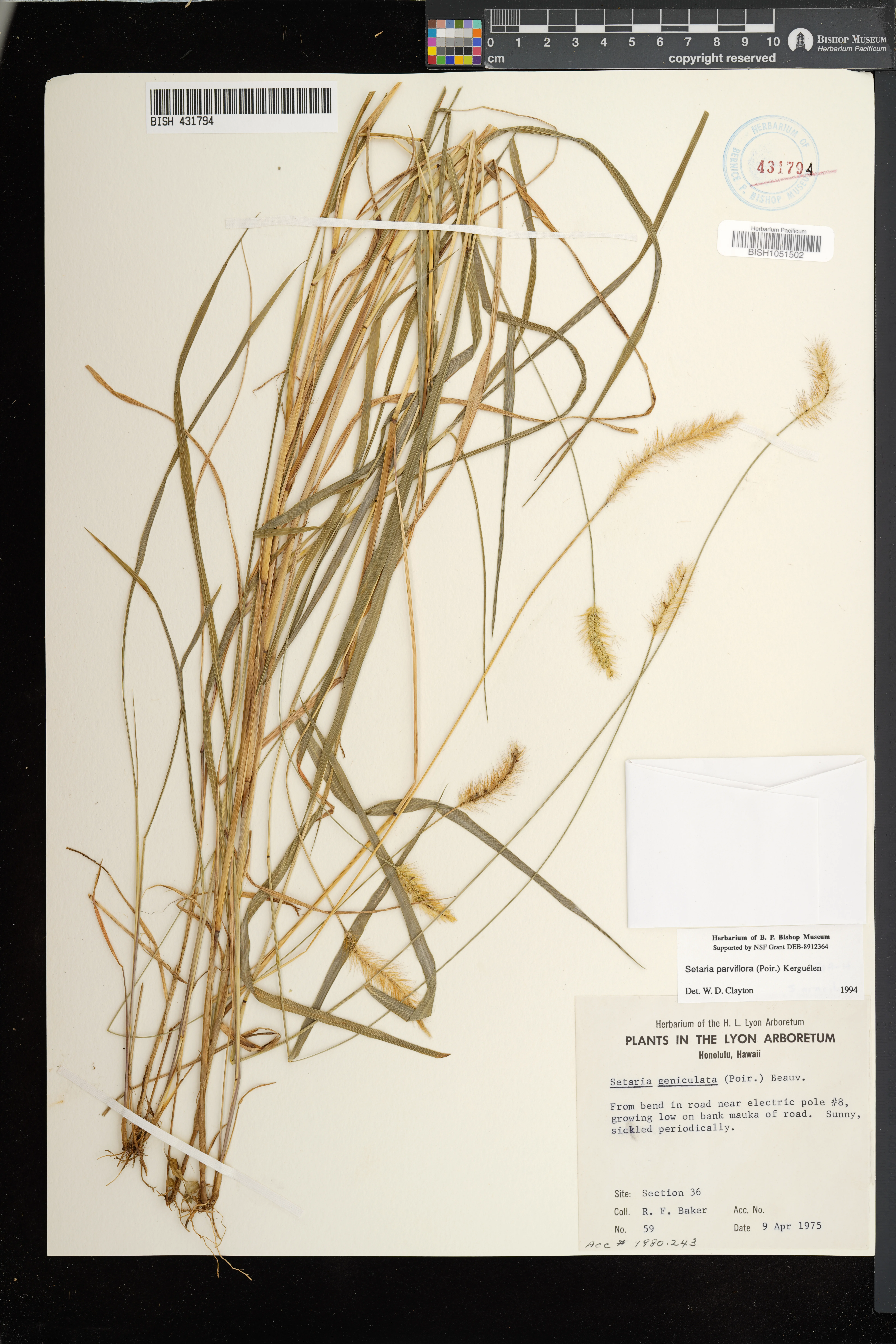 The plant was growing in the experimental tree planting site on the side of the Puna Trail. The soil in the area is crushed lava or cinder. The grass was growing in an area that is exposed to direct sunlight. |