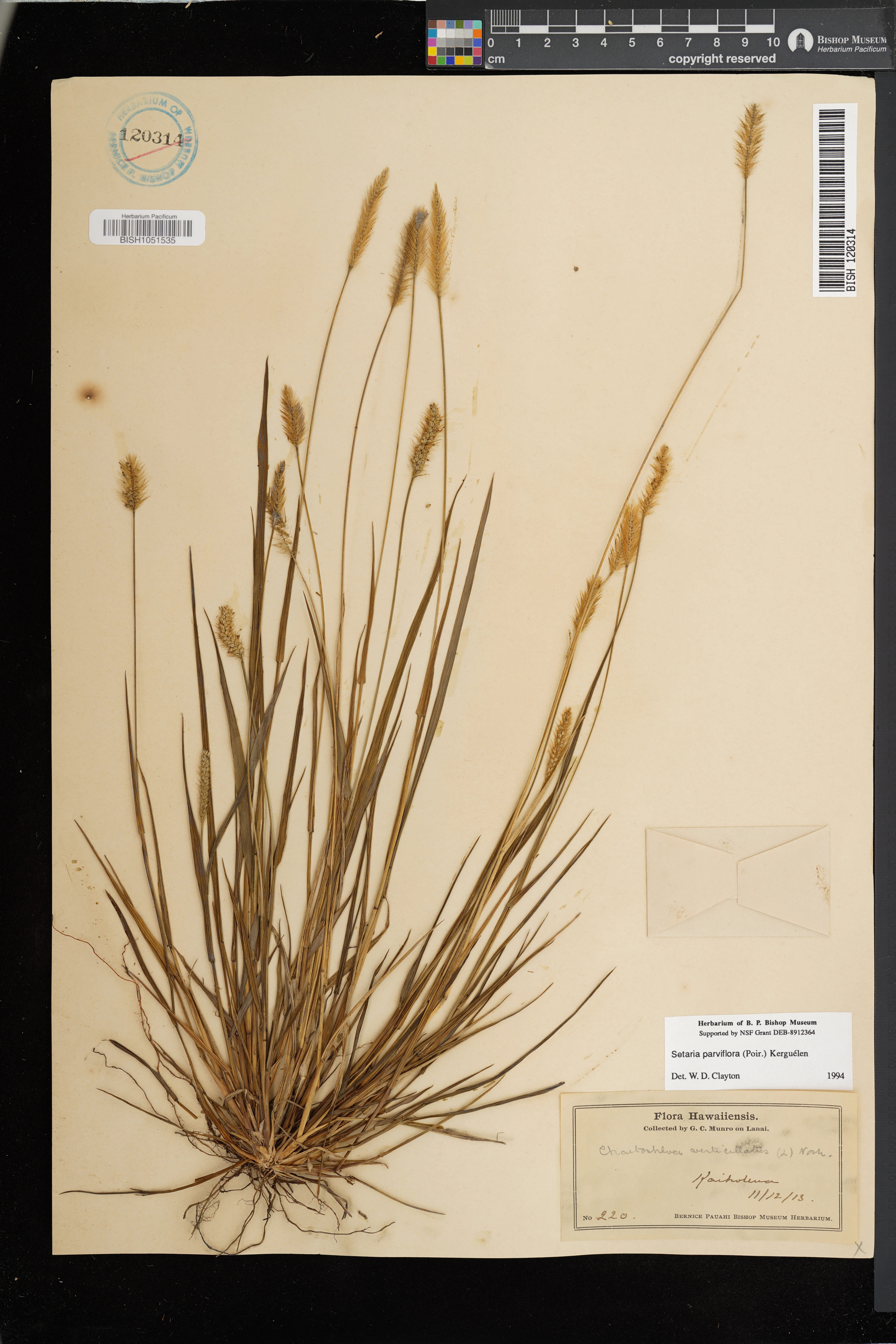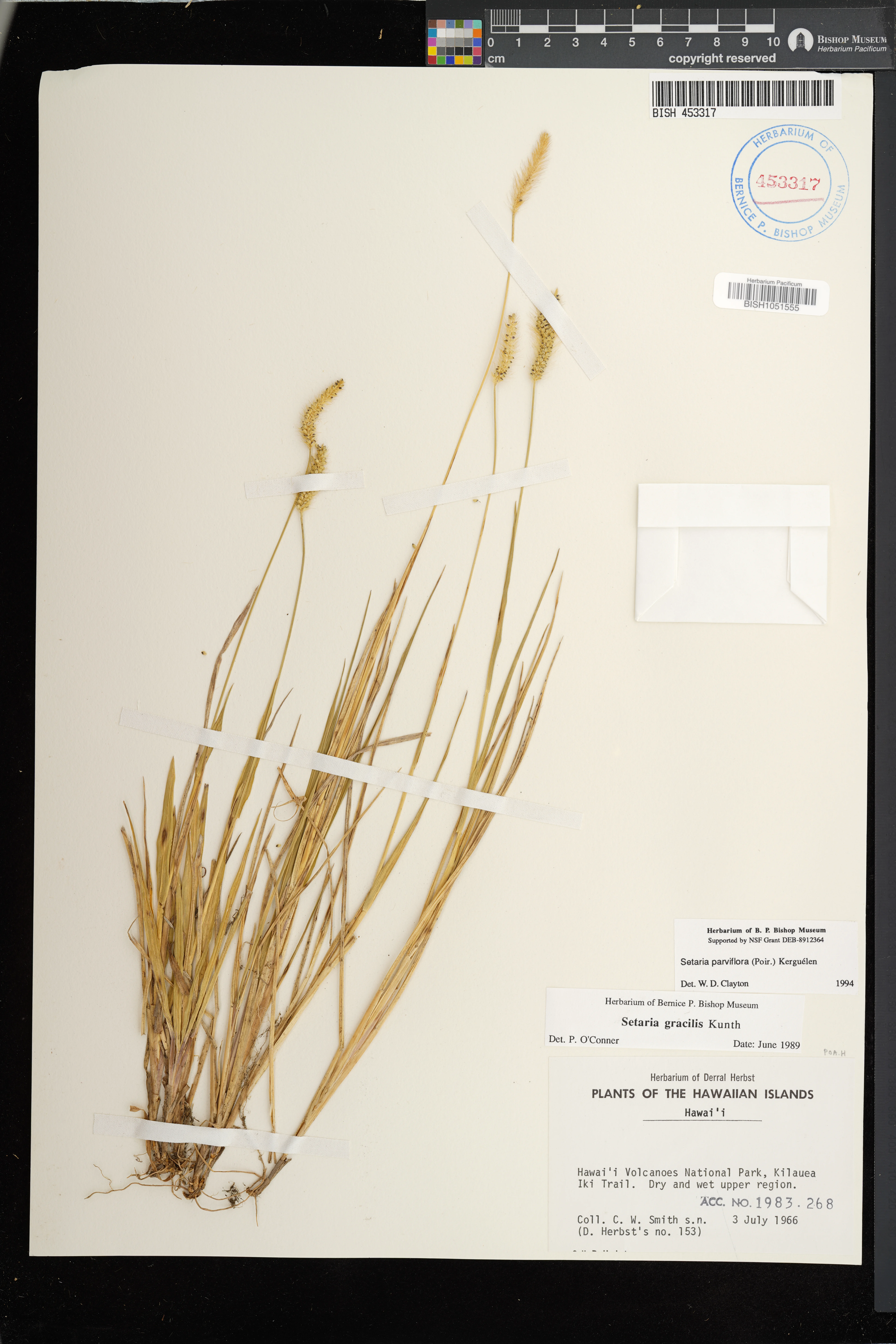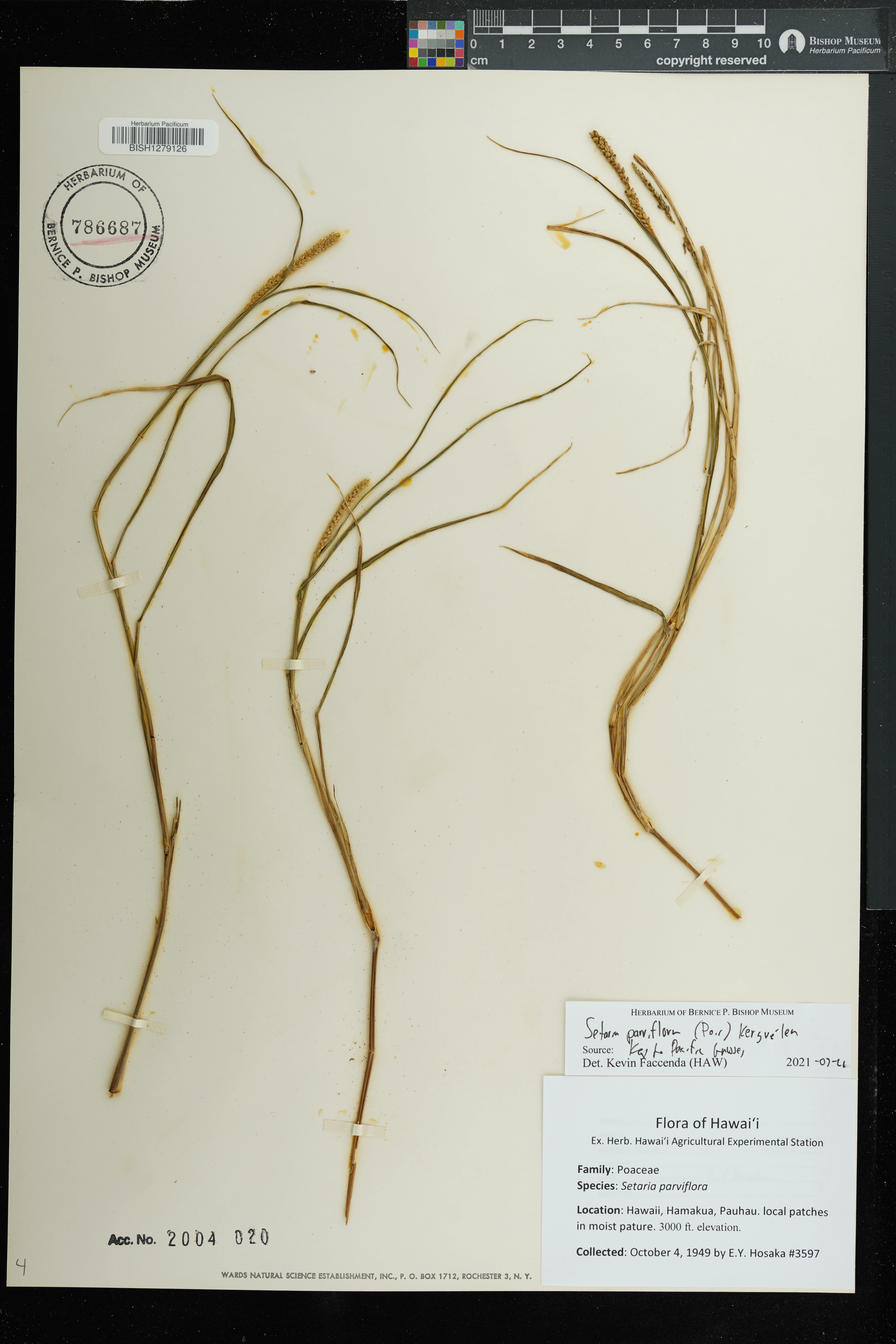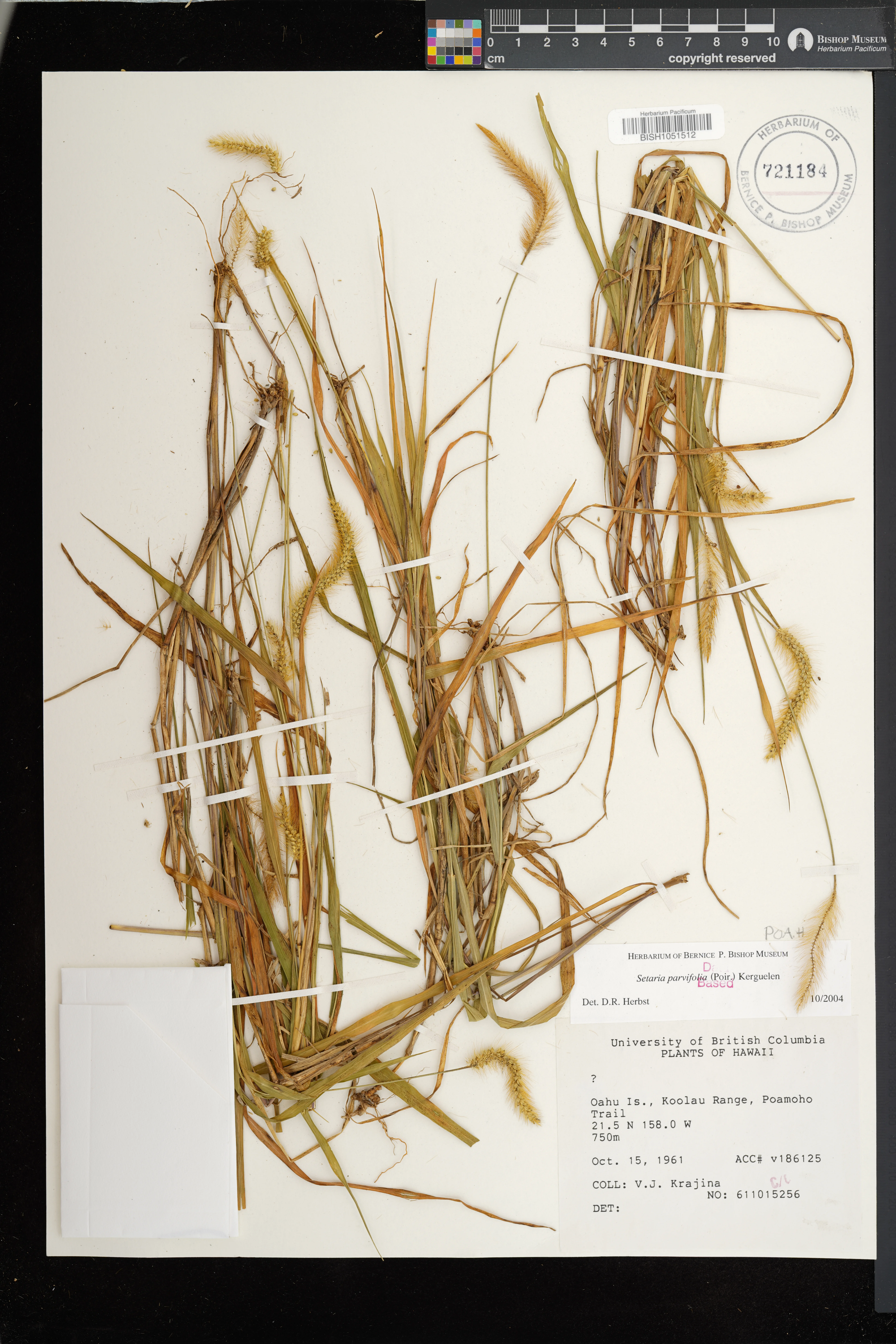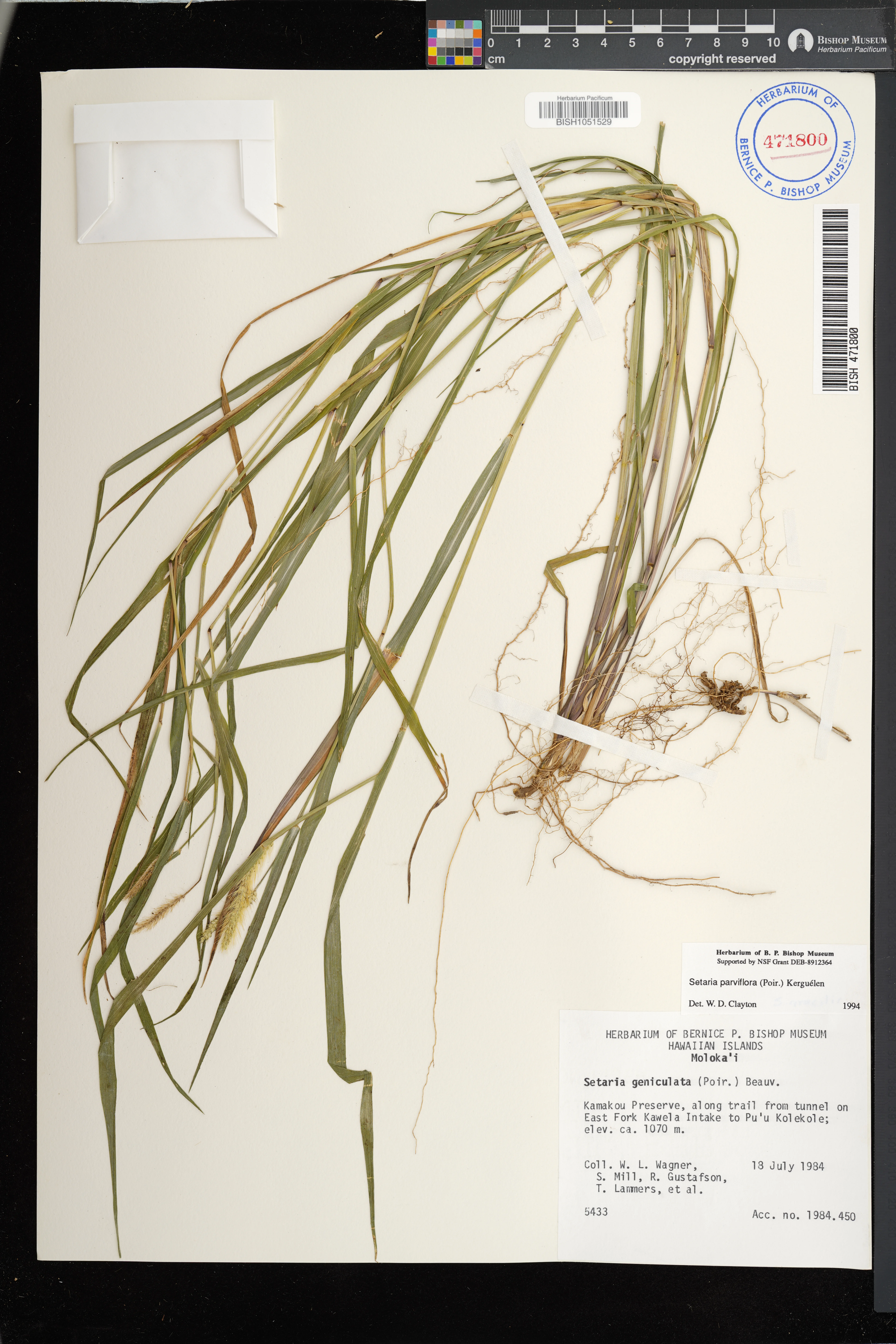 The plant was growing in the experimental tree planting site on the side of the Puna Trail. The soil in the area is crushed lava or cinder. The grass was growing in an area that is exposed to direct sunlight. |