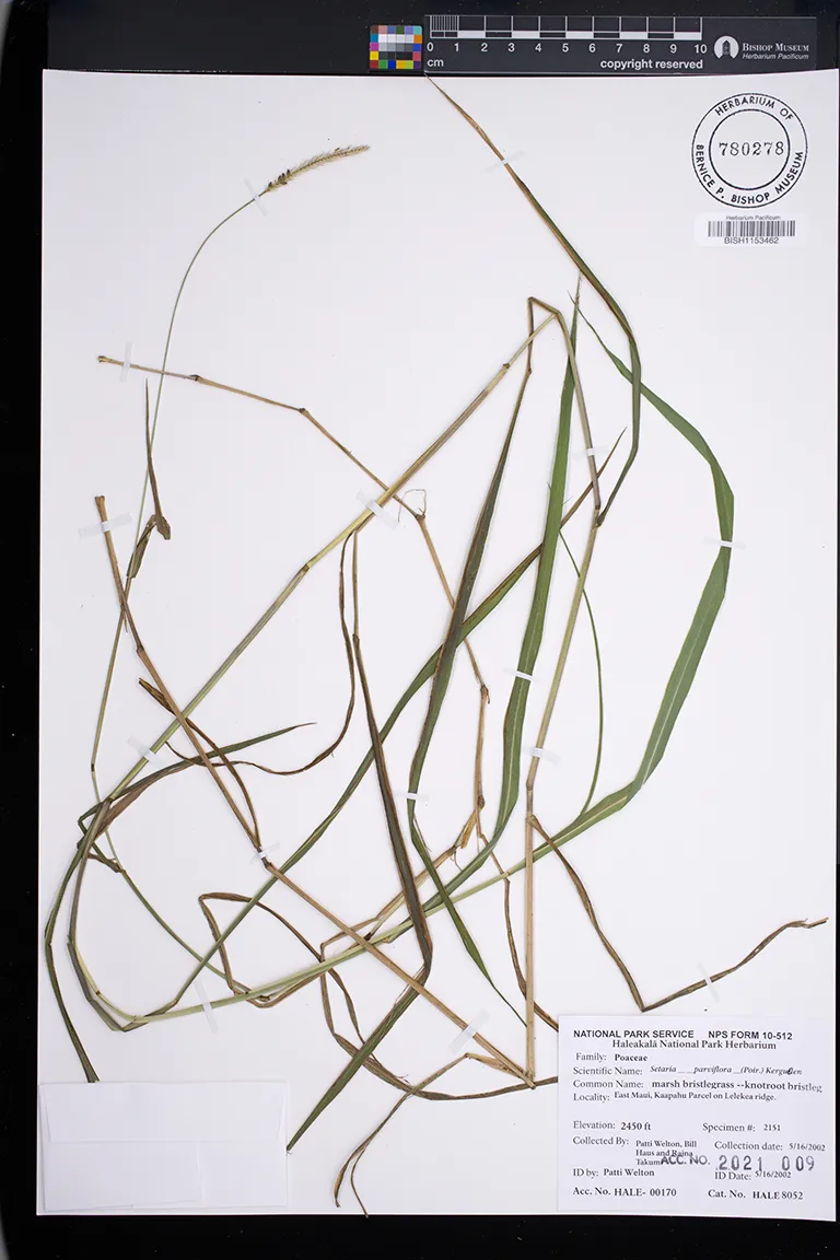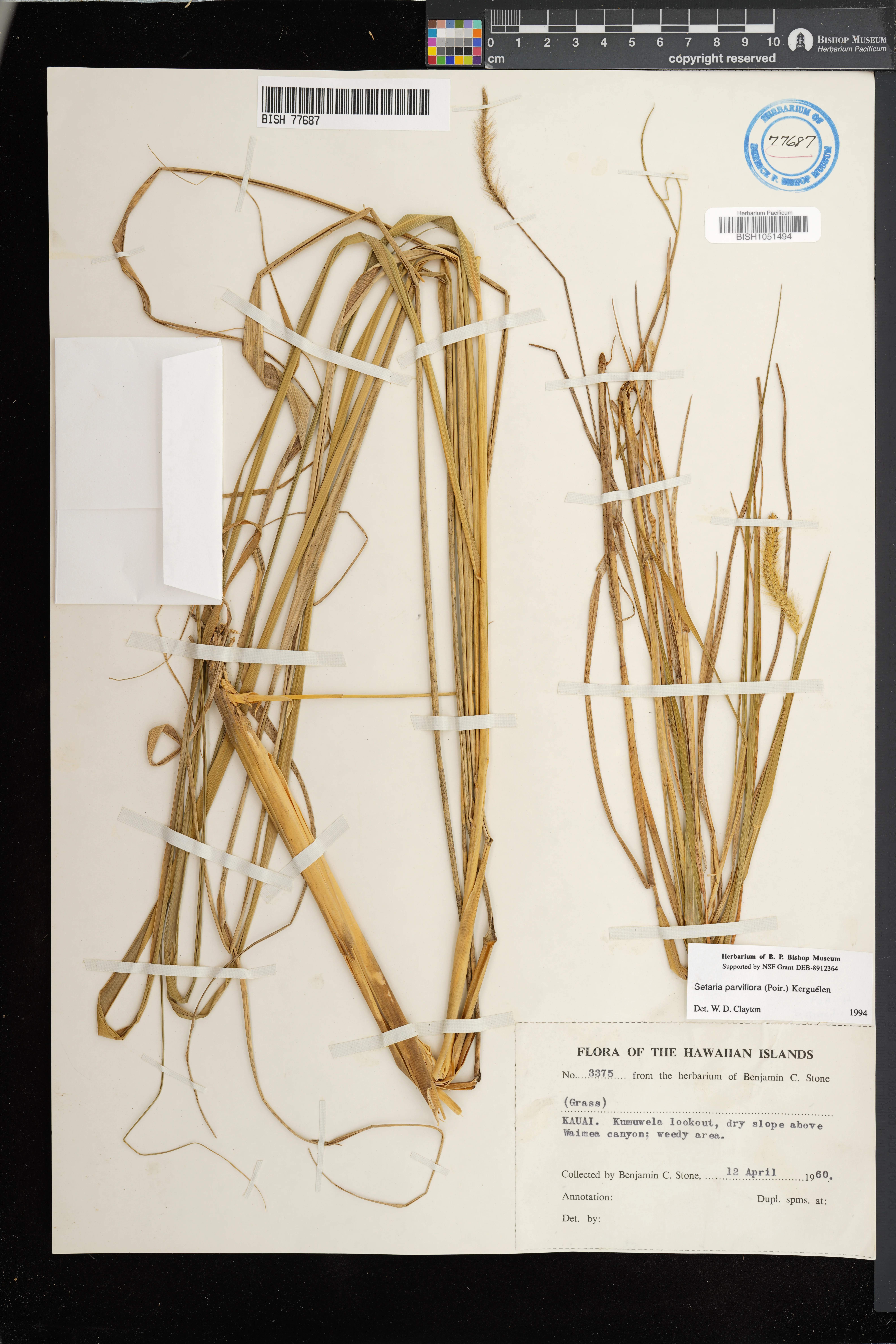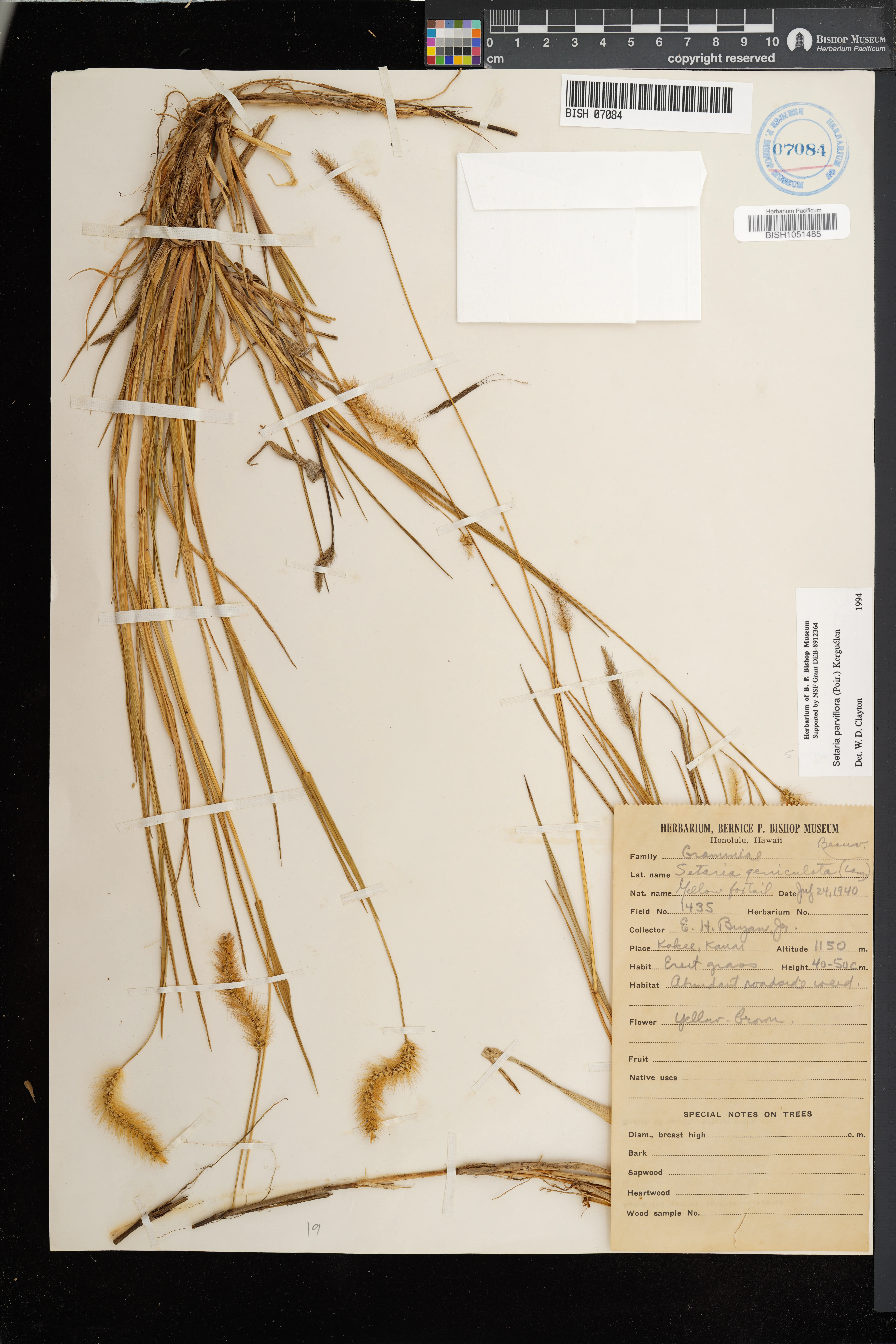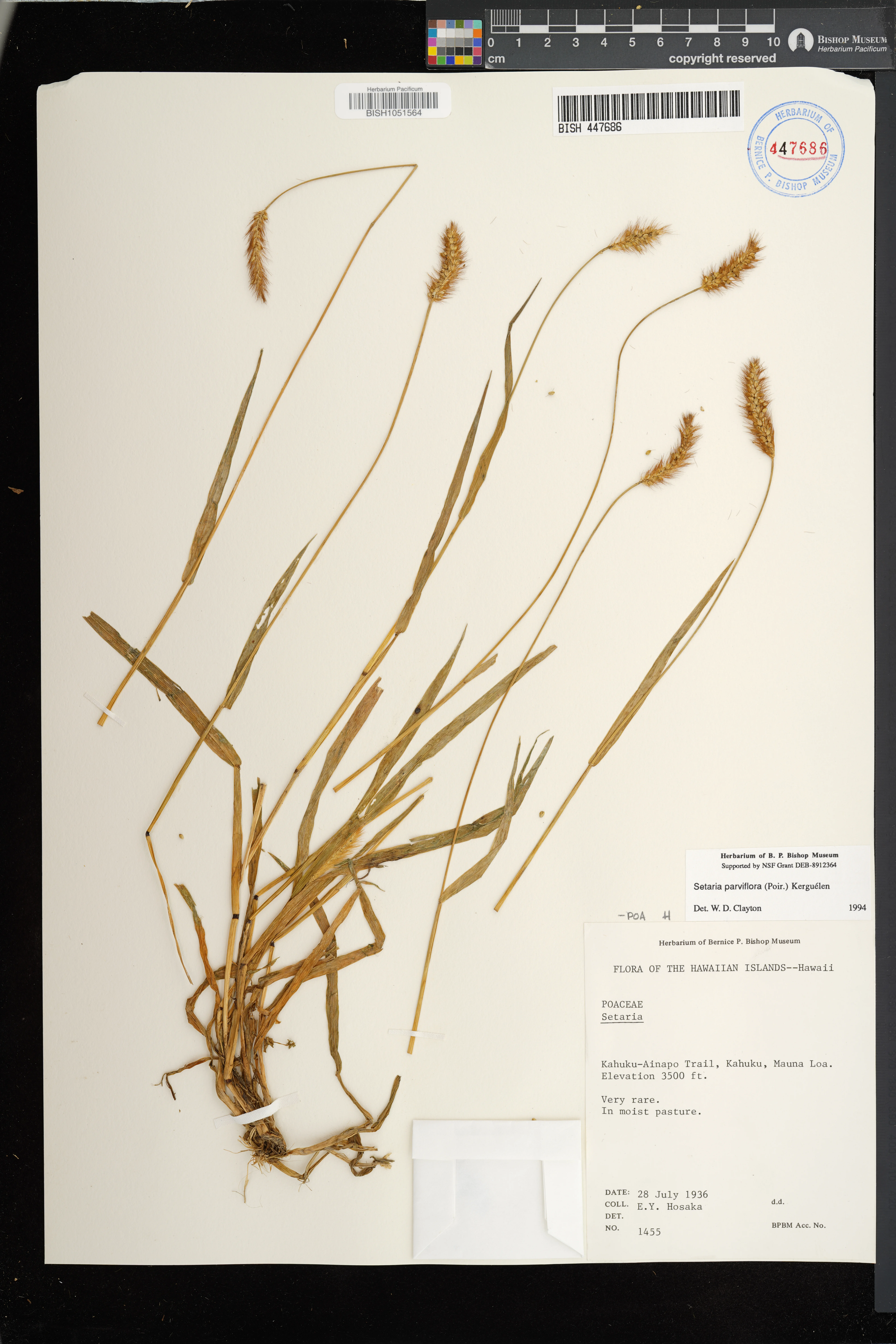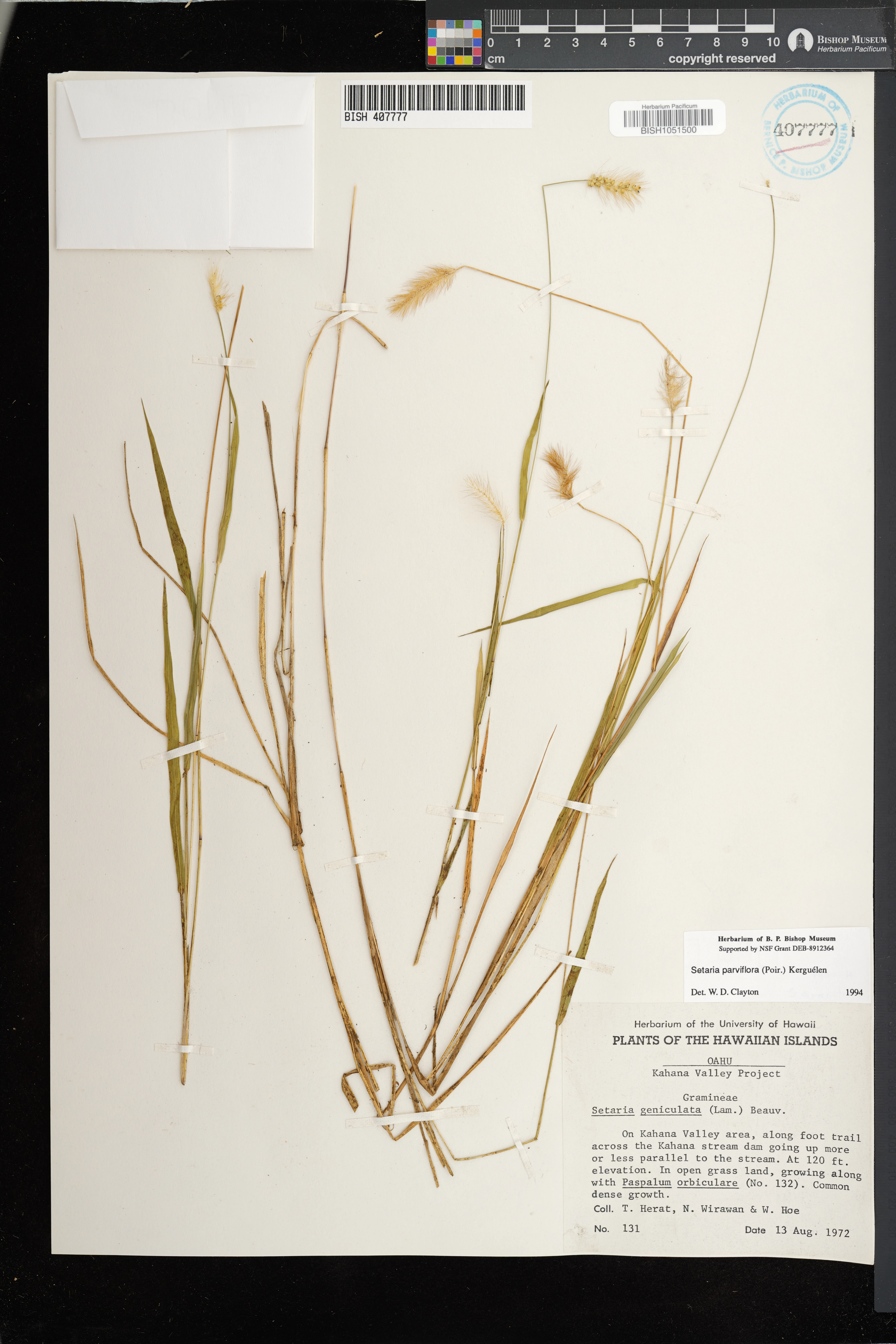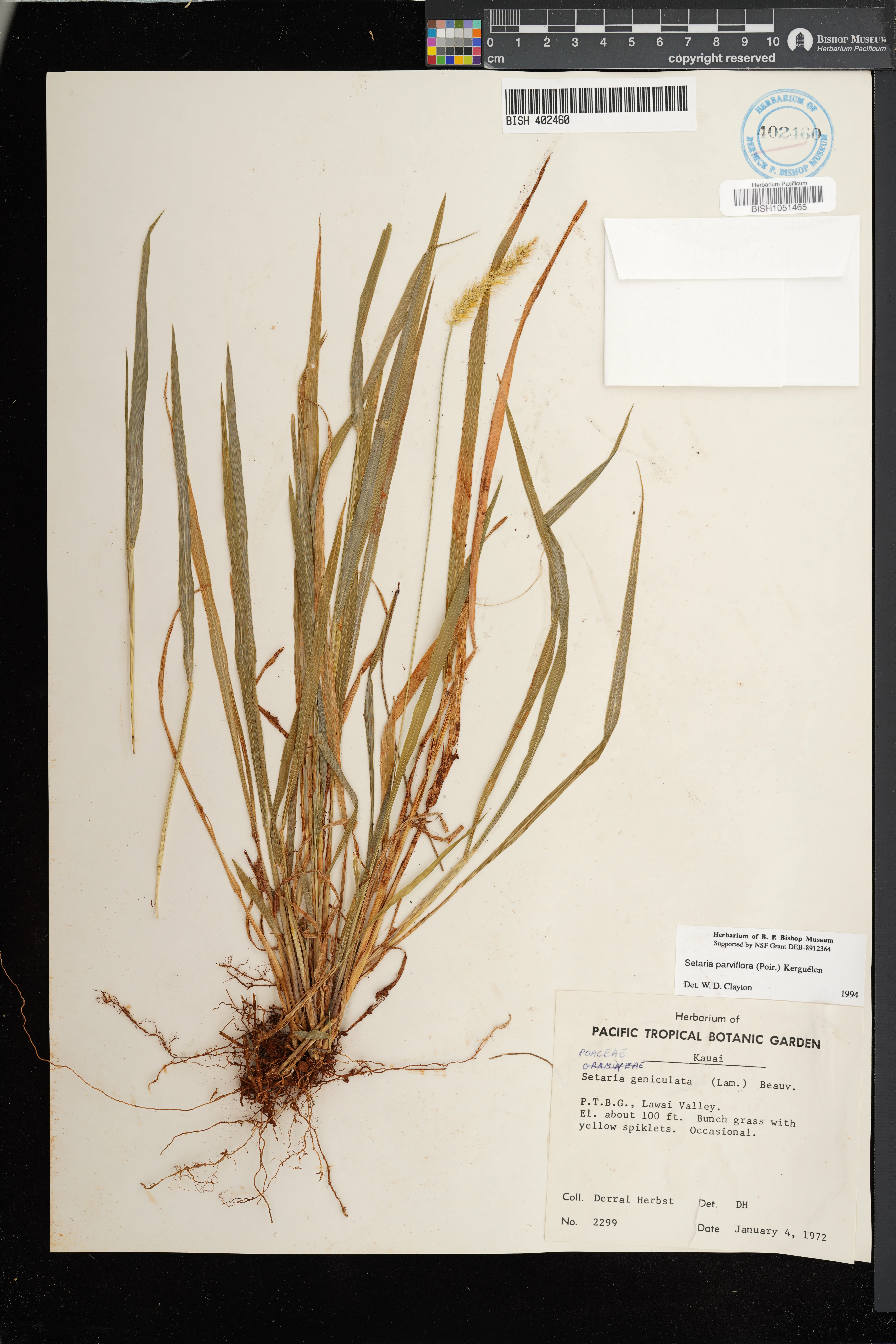 The plant was growing in the experimental tree planting site on the side of the Puna Trail. The soil in the area is crushed lava or cinder. The grass was growing in an area that is exposed to direct sunlight. |
