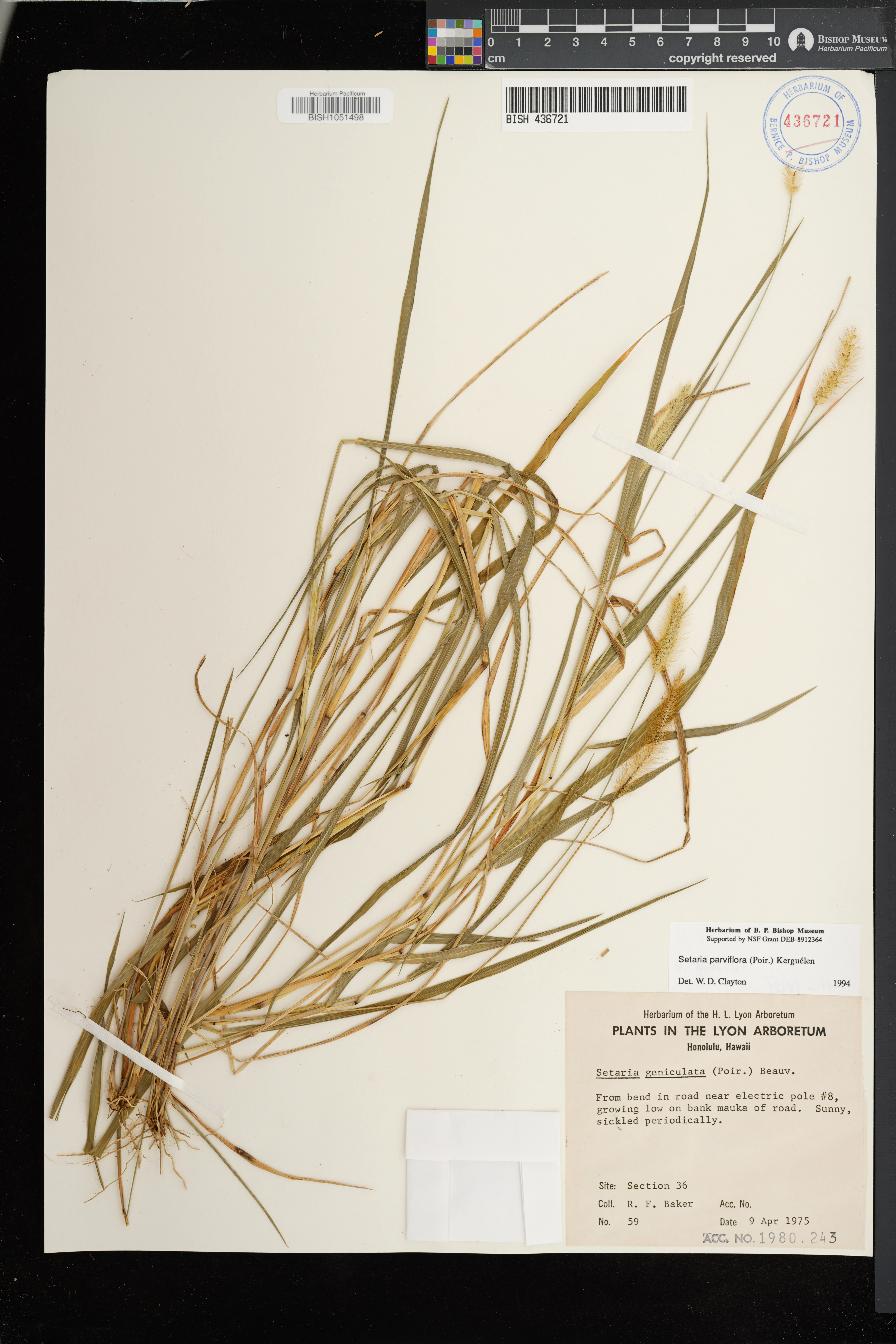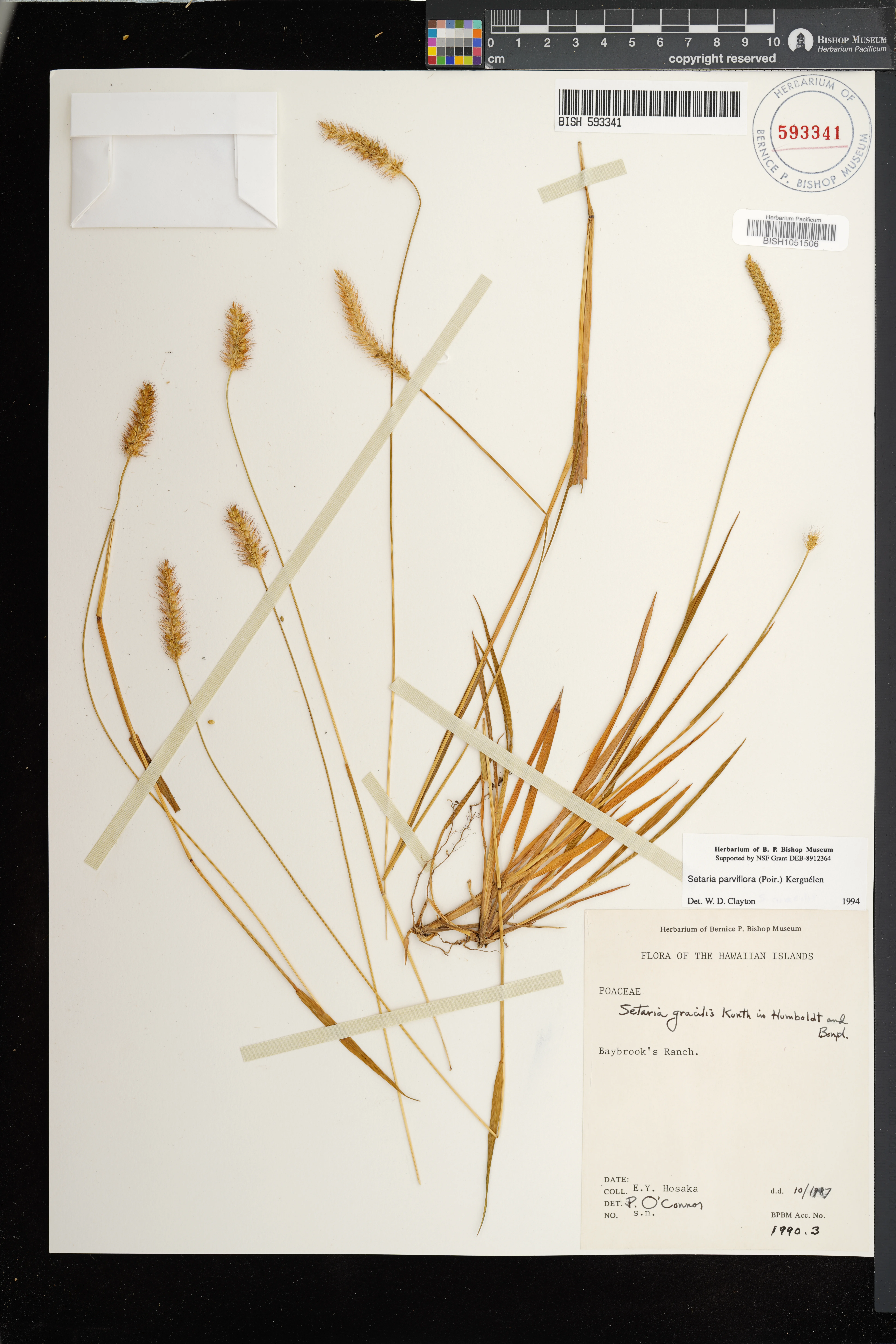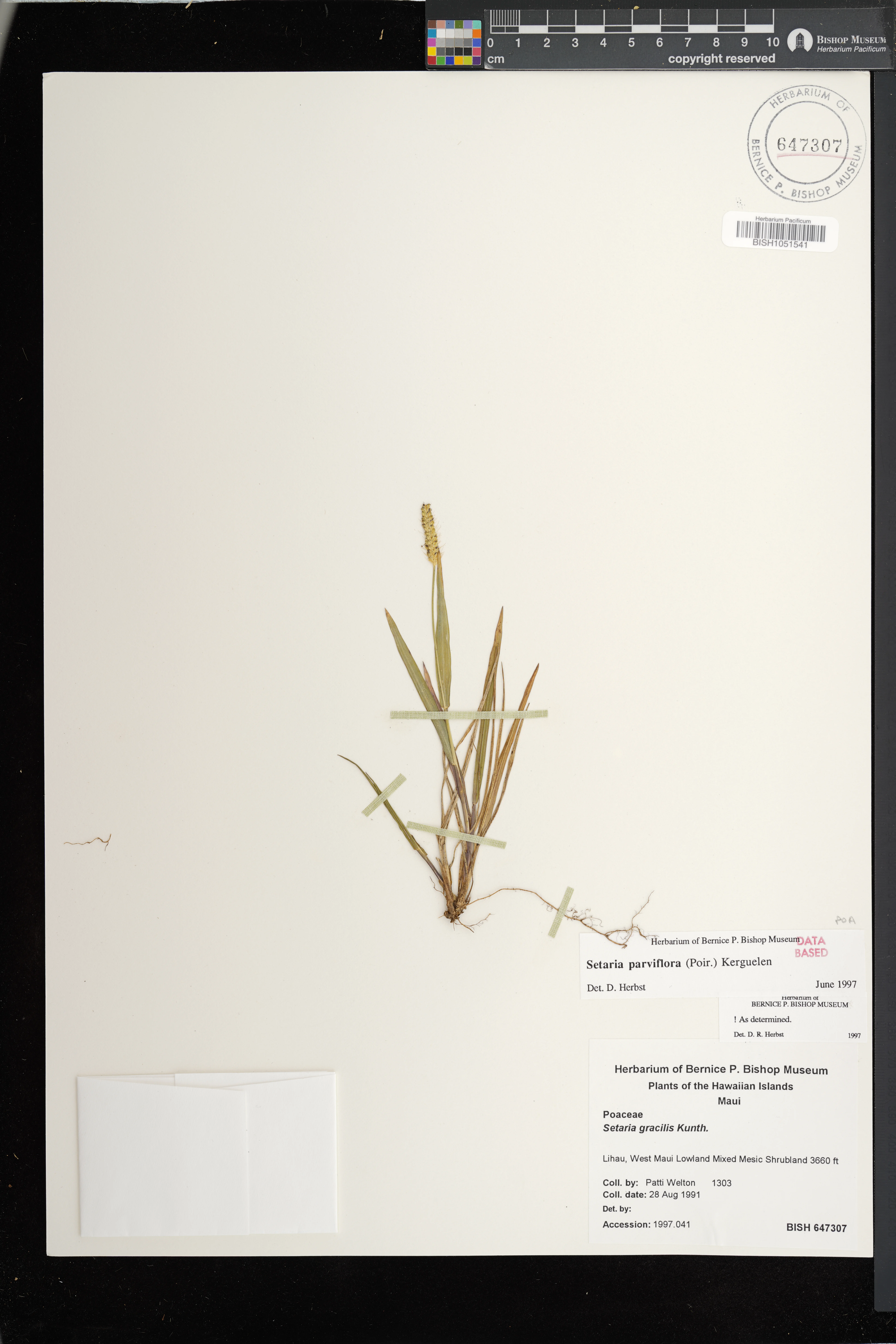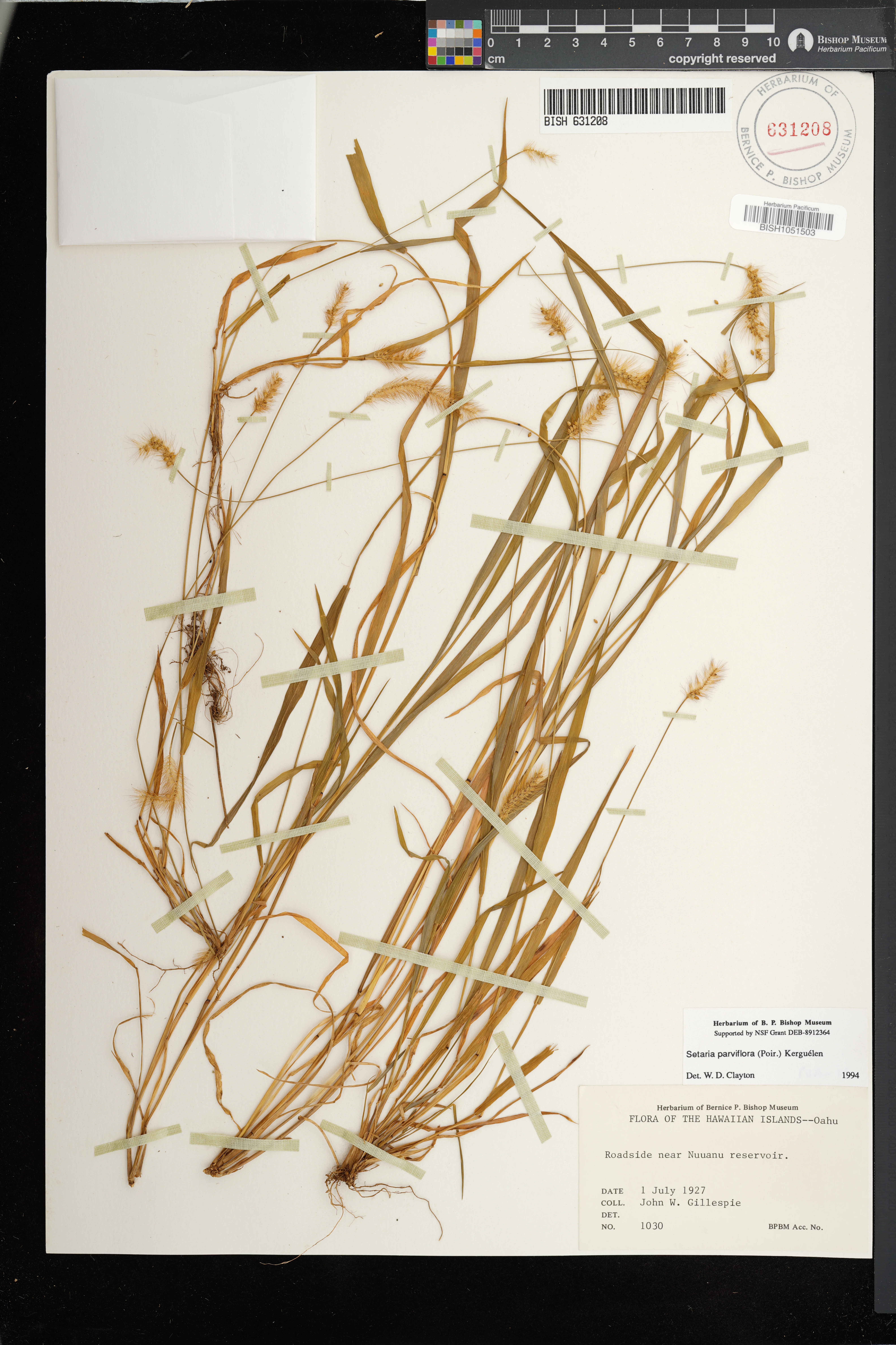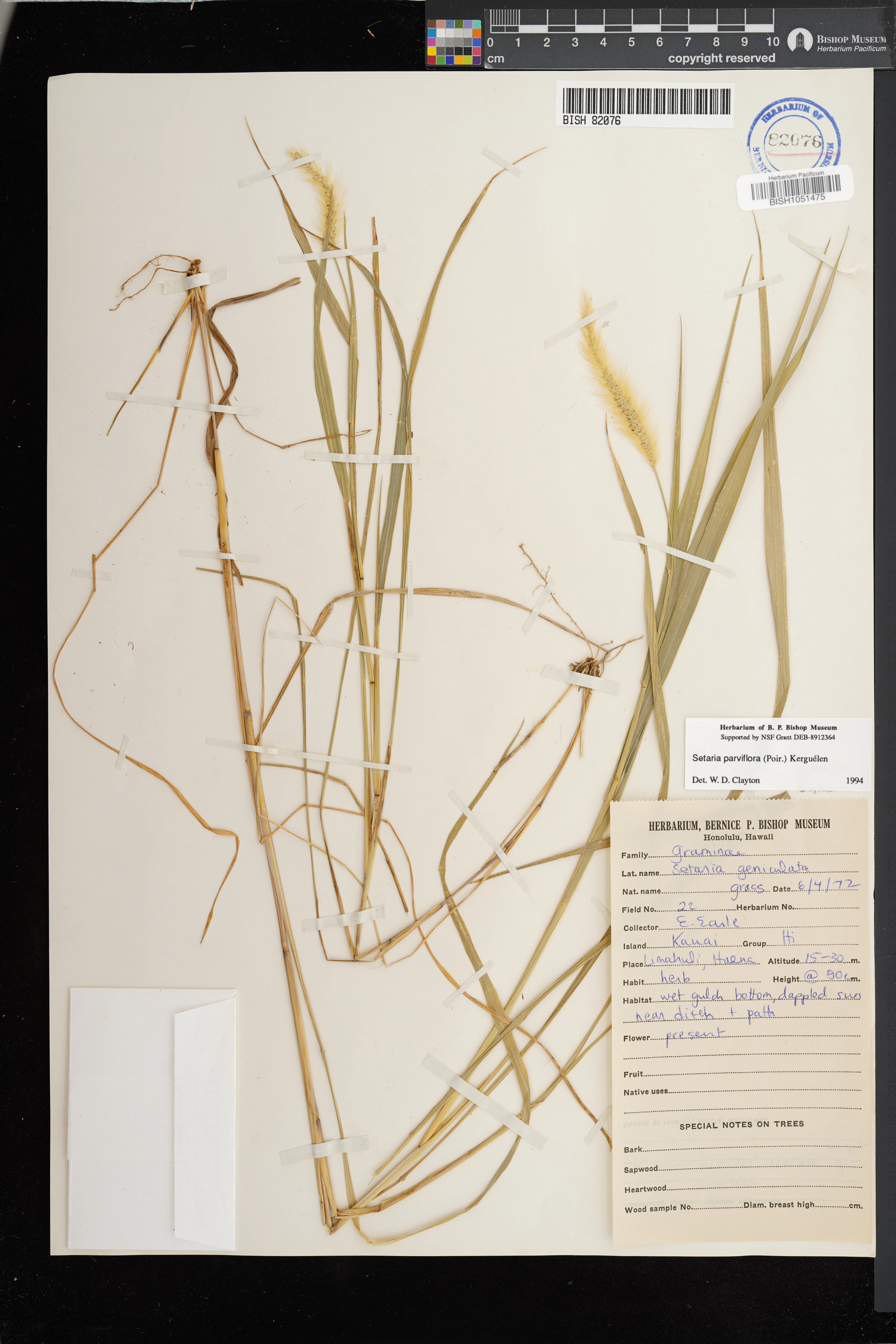 The plant was growing in the experimental tree planting site on the side of the Puna Trail. The soil in the area is crushed lava or cinder. The grass was growing in an area that is exposed to direct sunlight. |