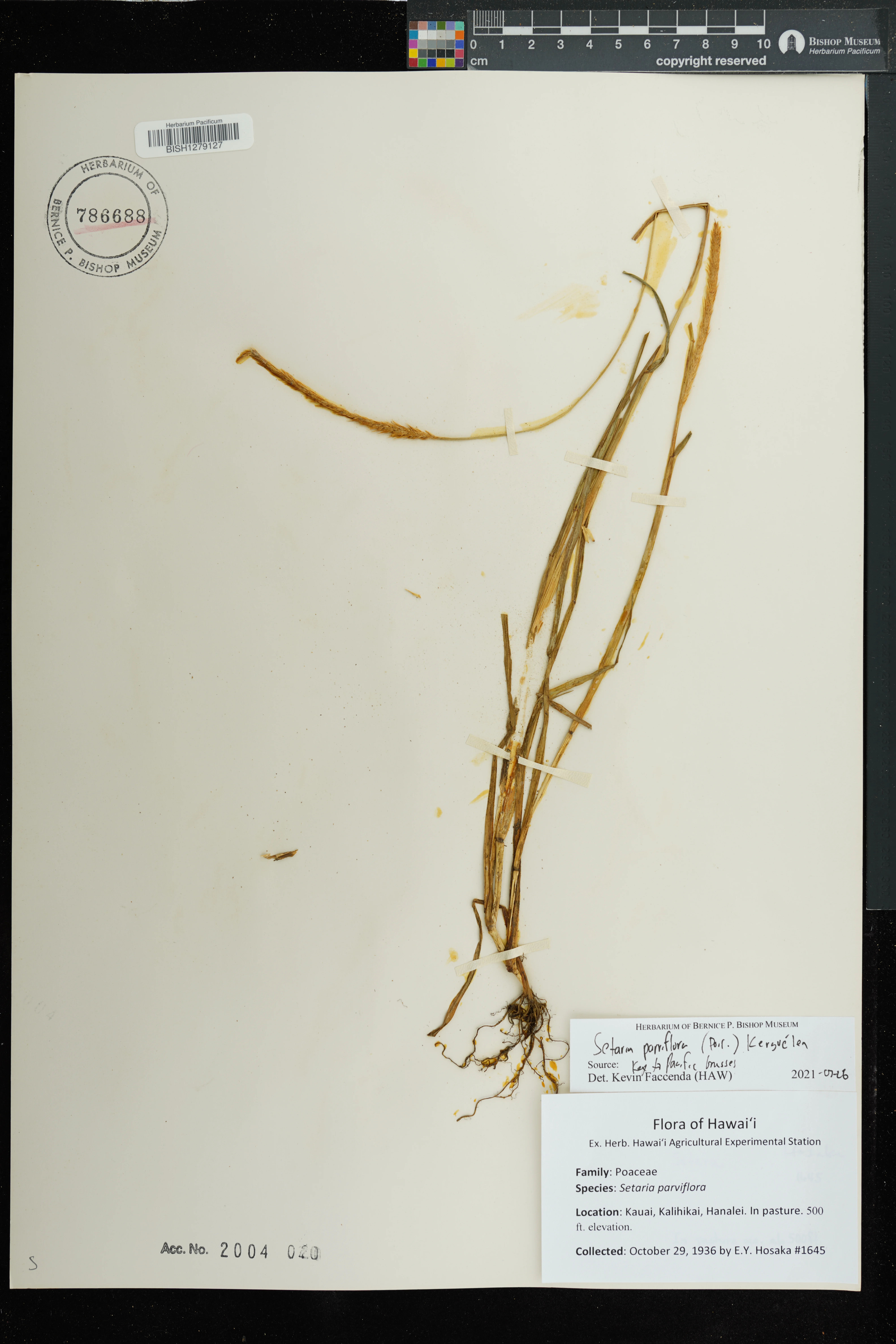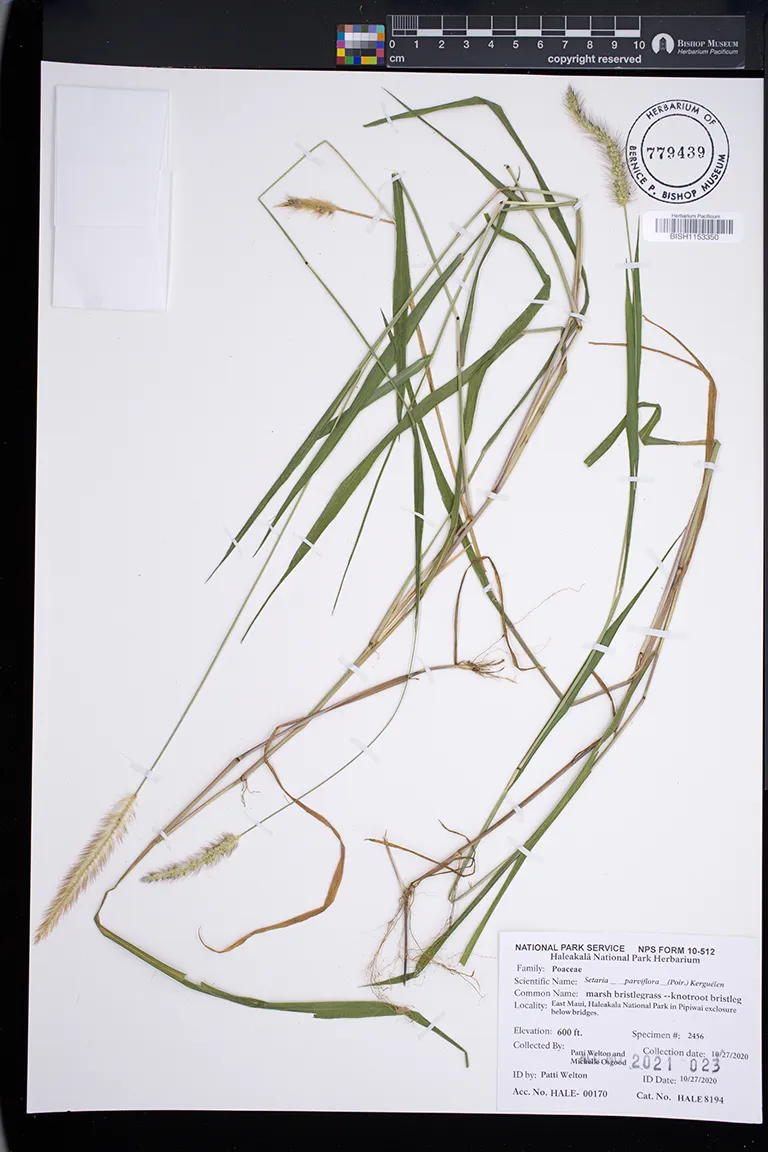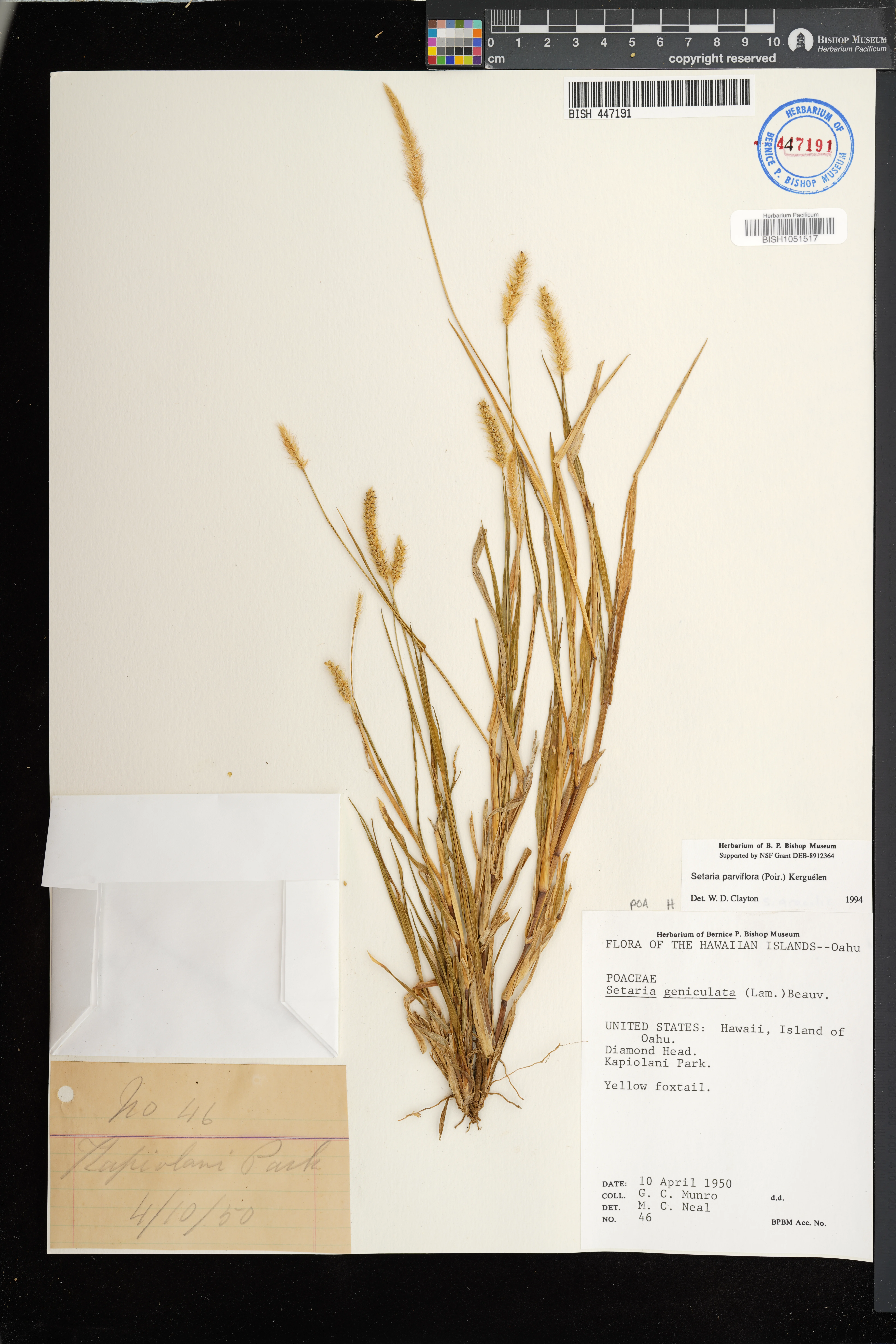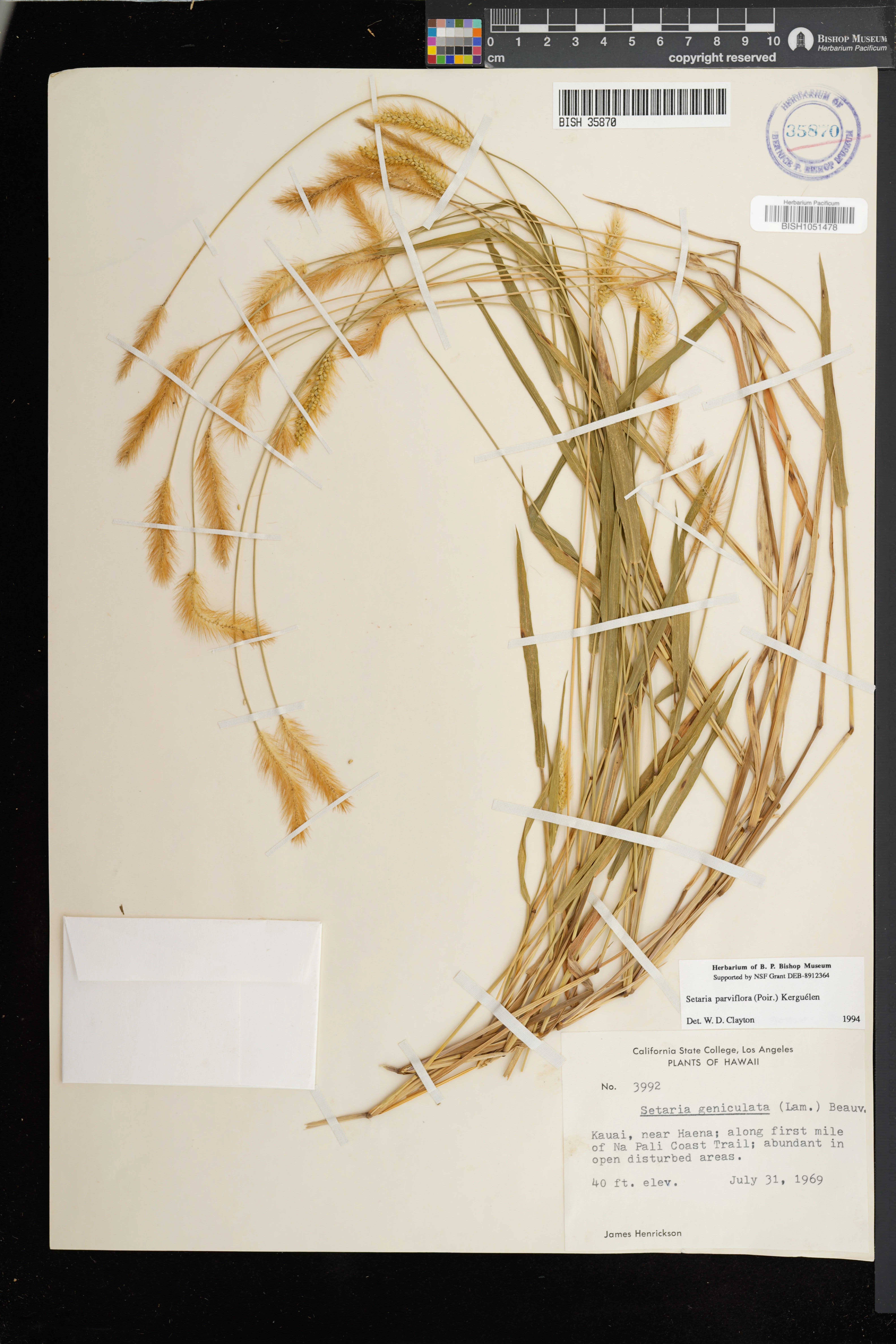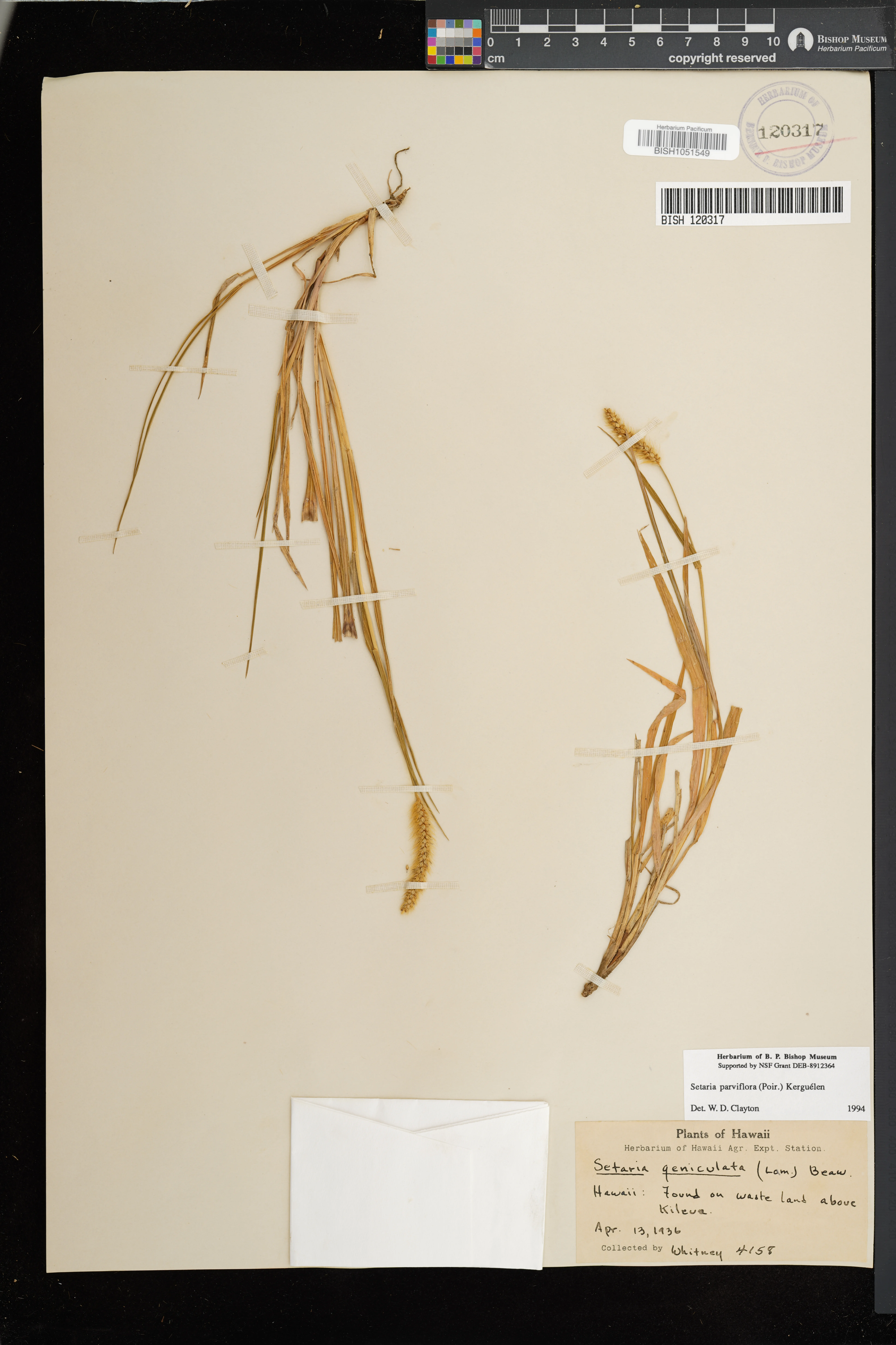 The plant was growing in the experimental tree planting site on the side of the Puna Trail. The soil in the area is crushed lava or cinder. The grass was growing in an area that is exposed to direct sunlight. |