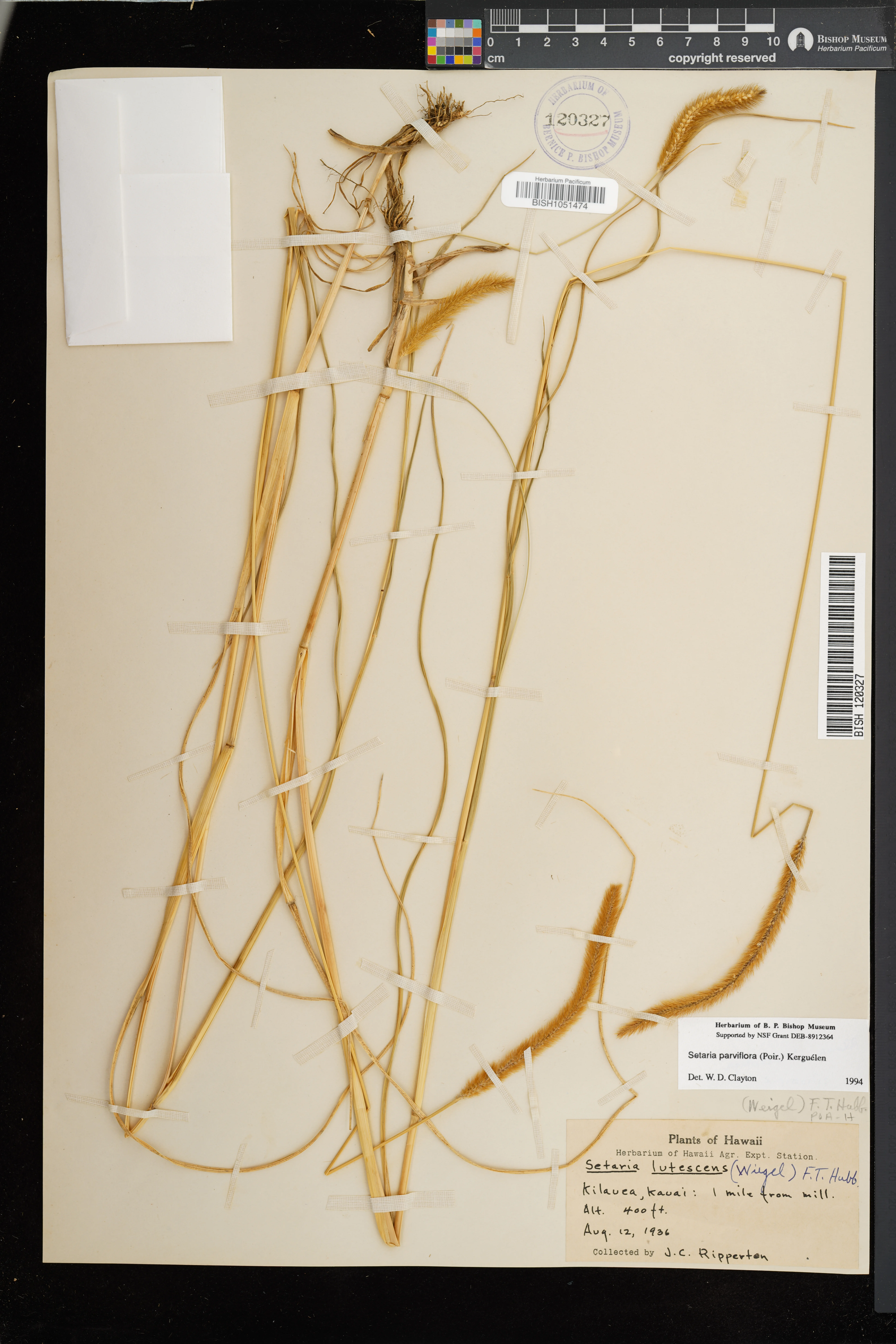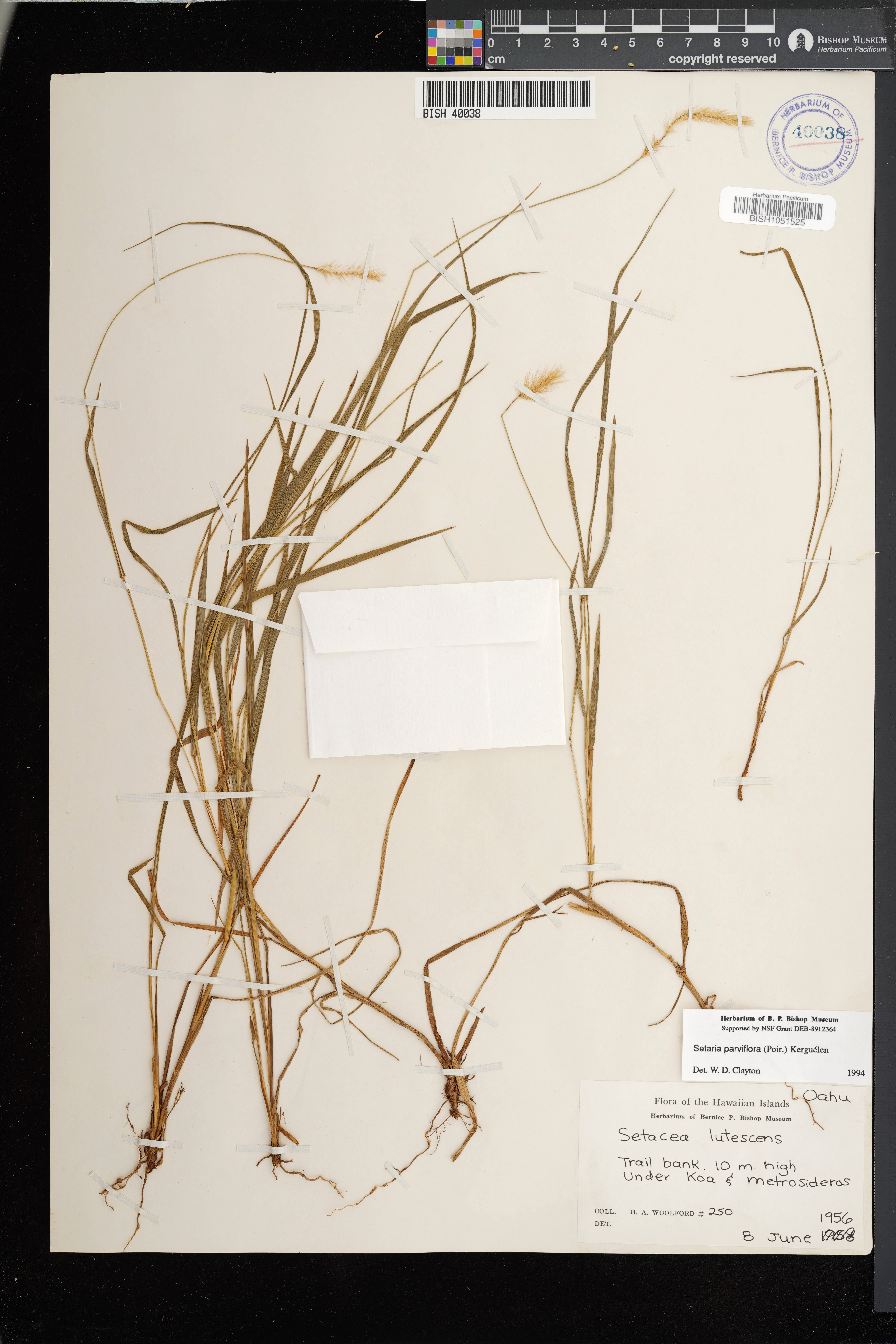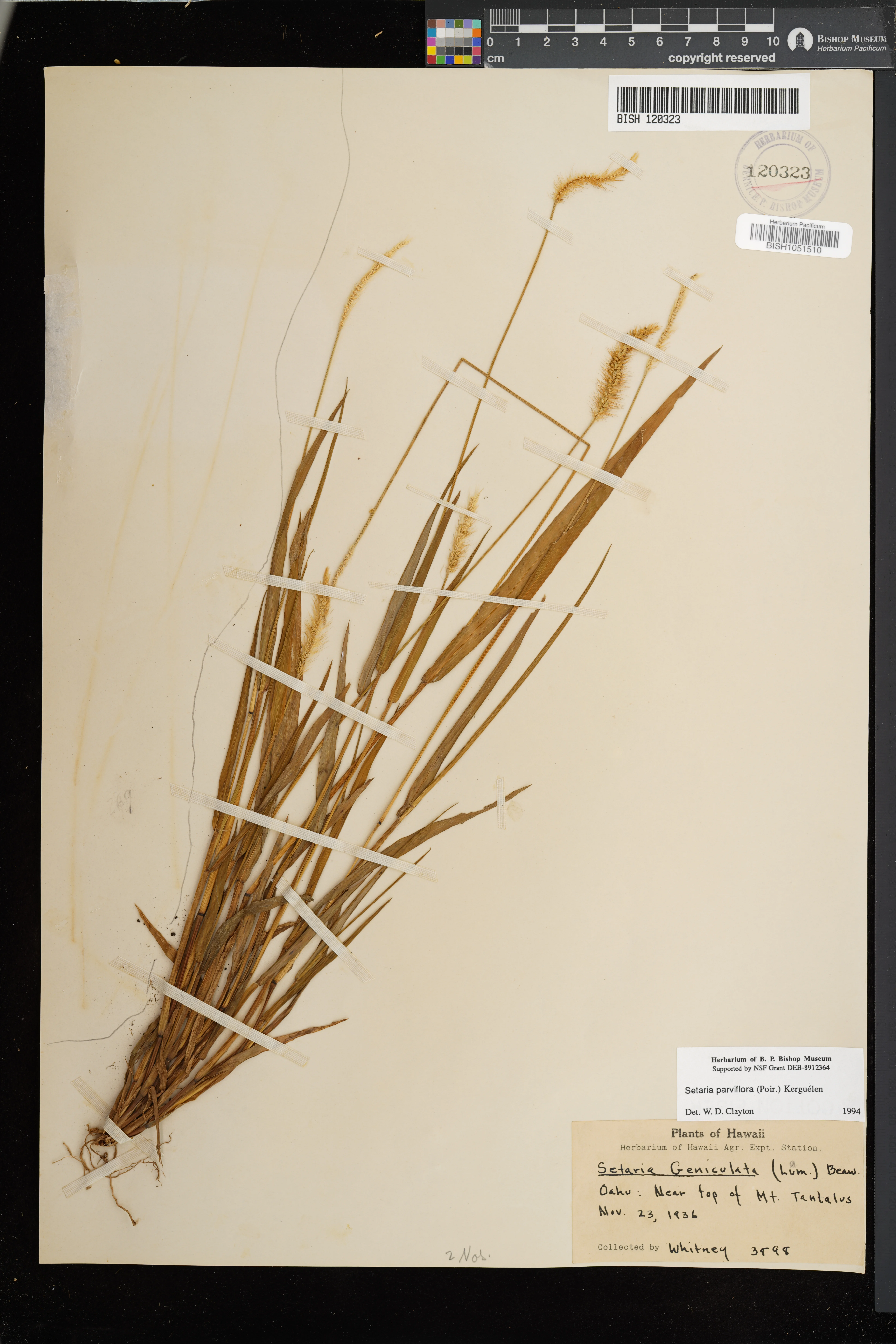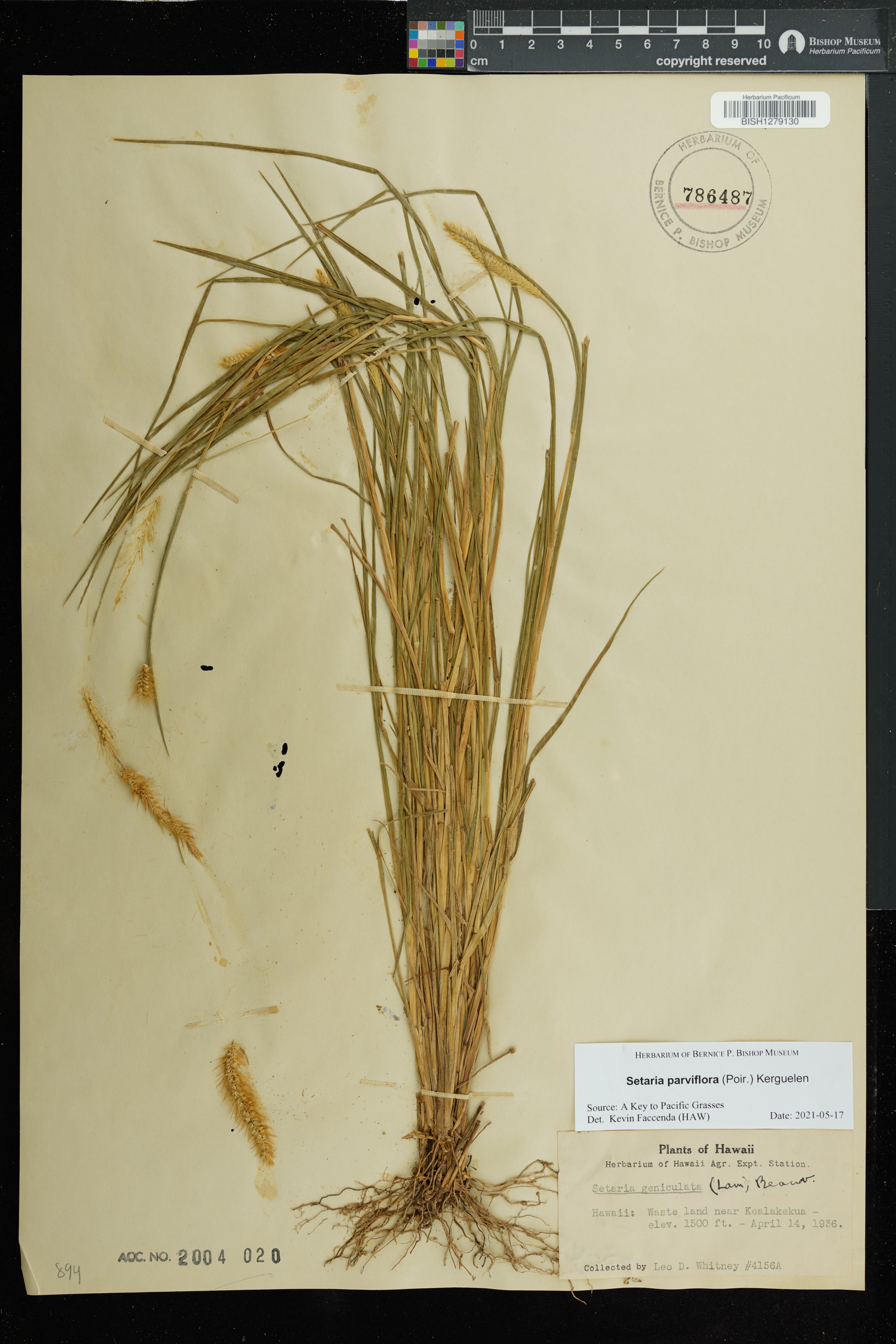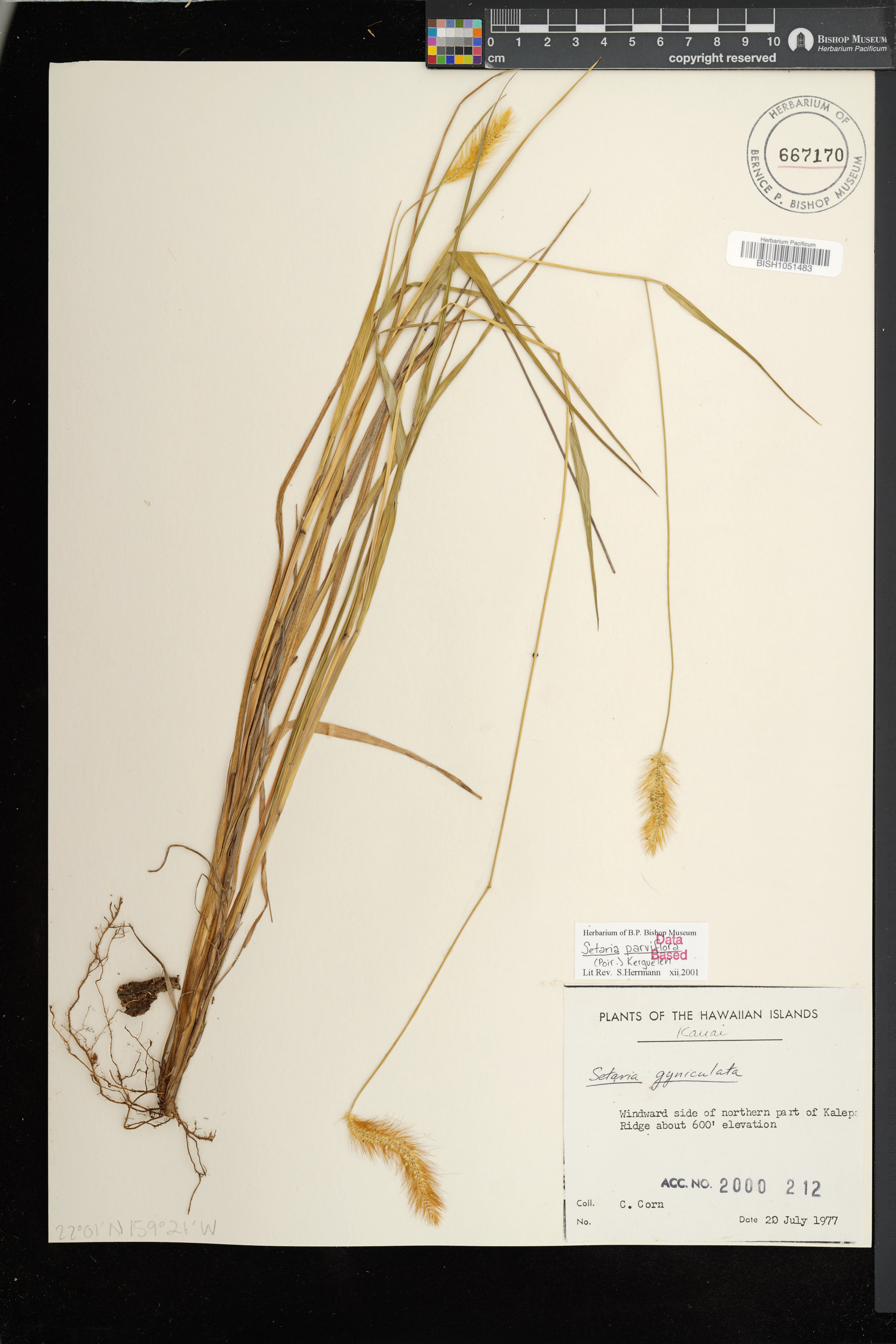 The plant was growing in the experimental tree planting site on the side of the Puna Trail. The soil in the area is crushed lava or cinder. The grass was growing in an area that is exposed to direct sunlight. |