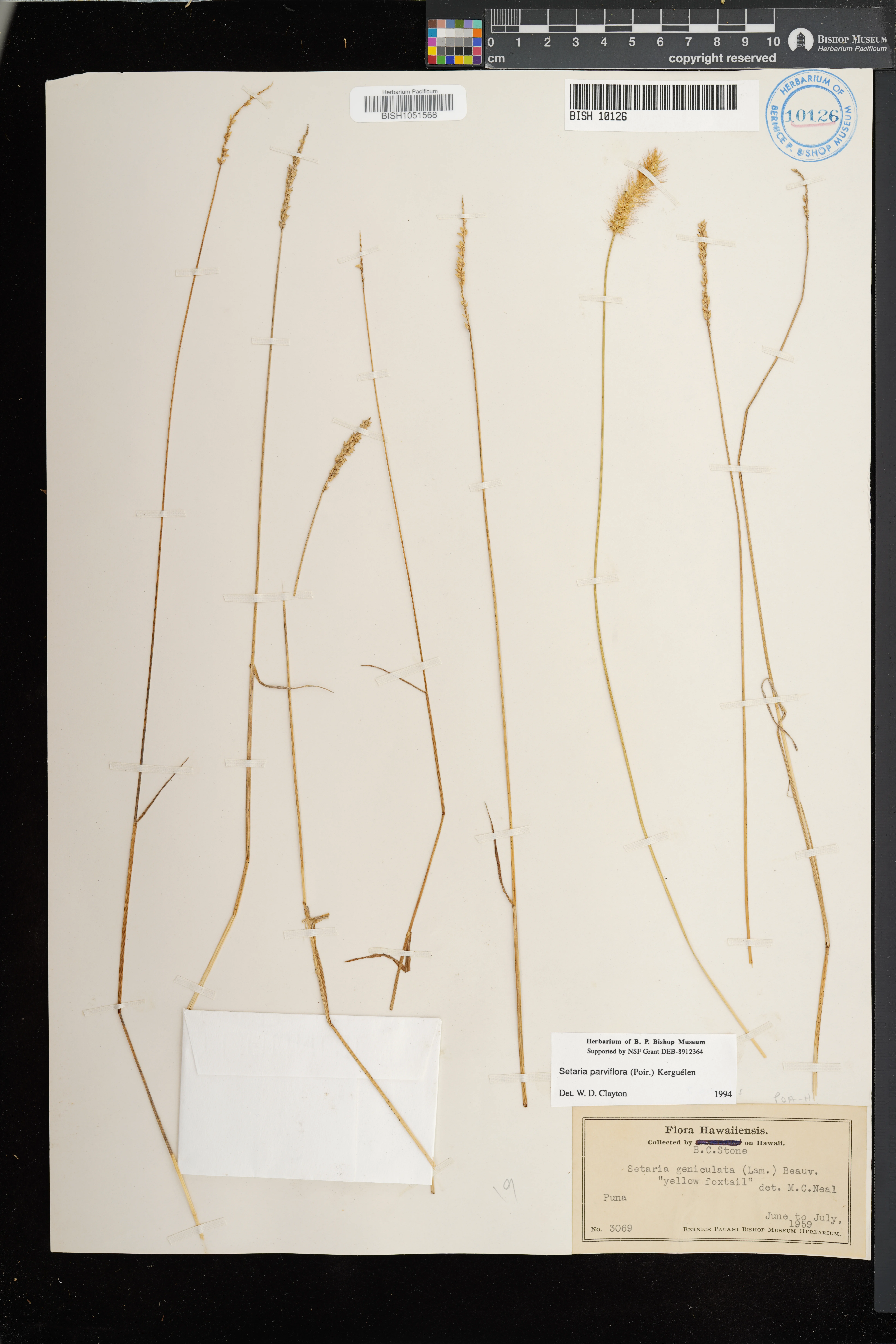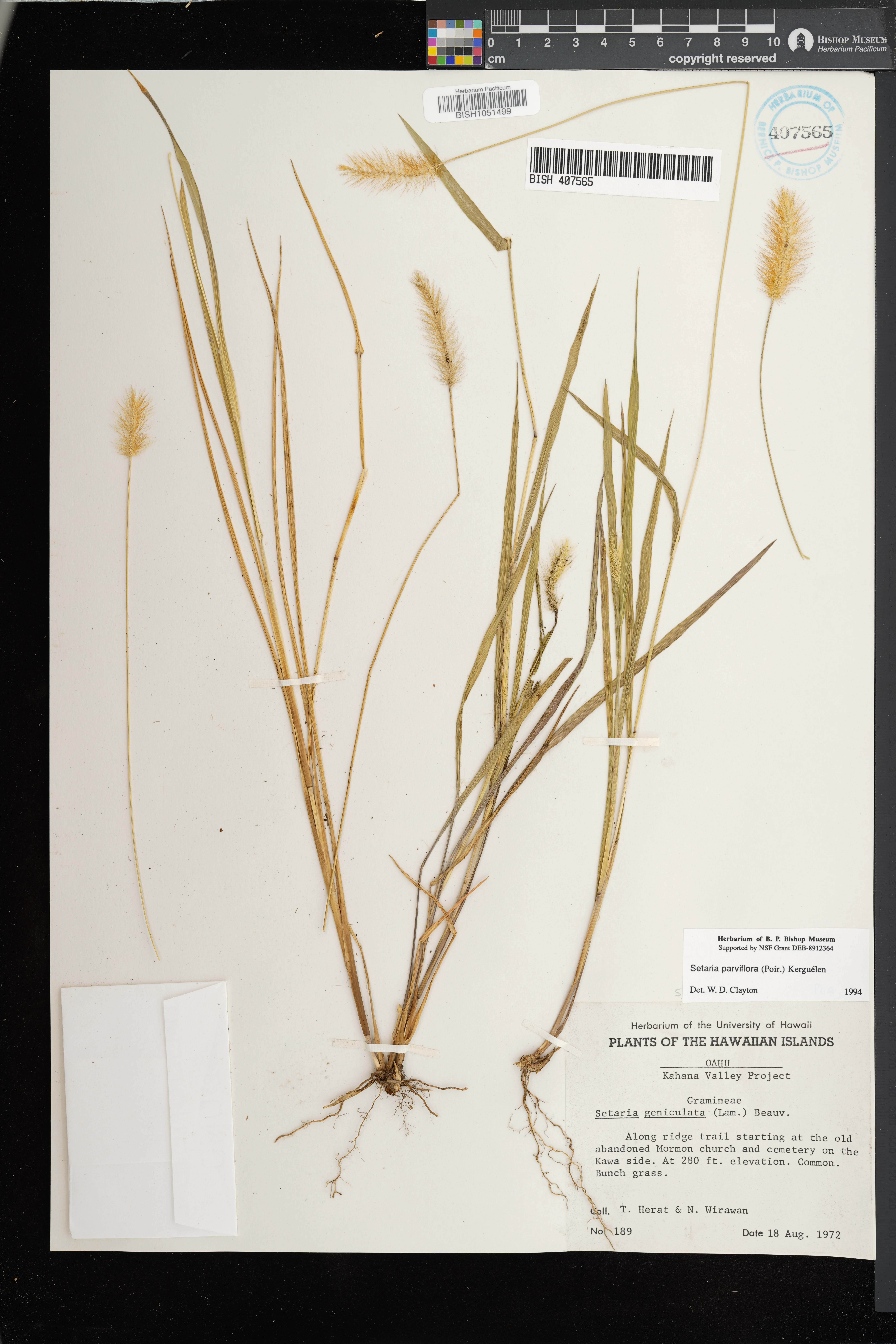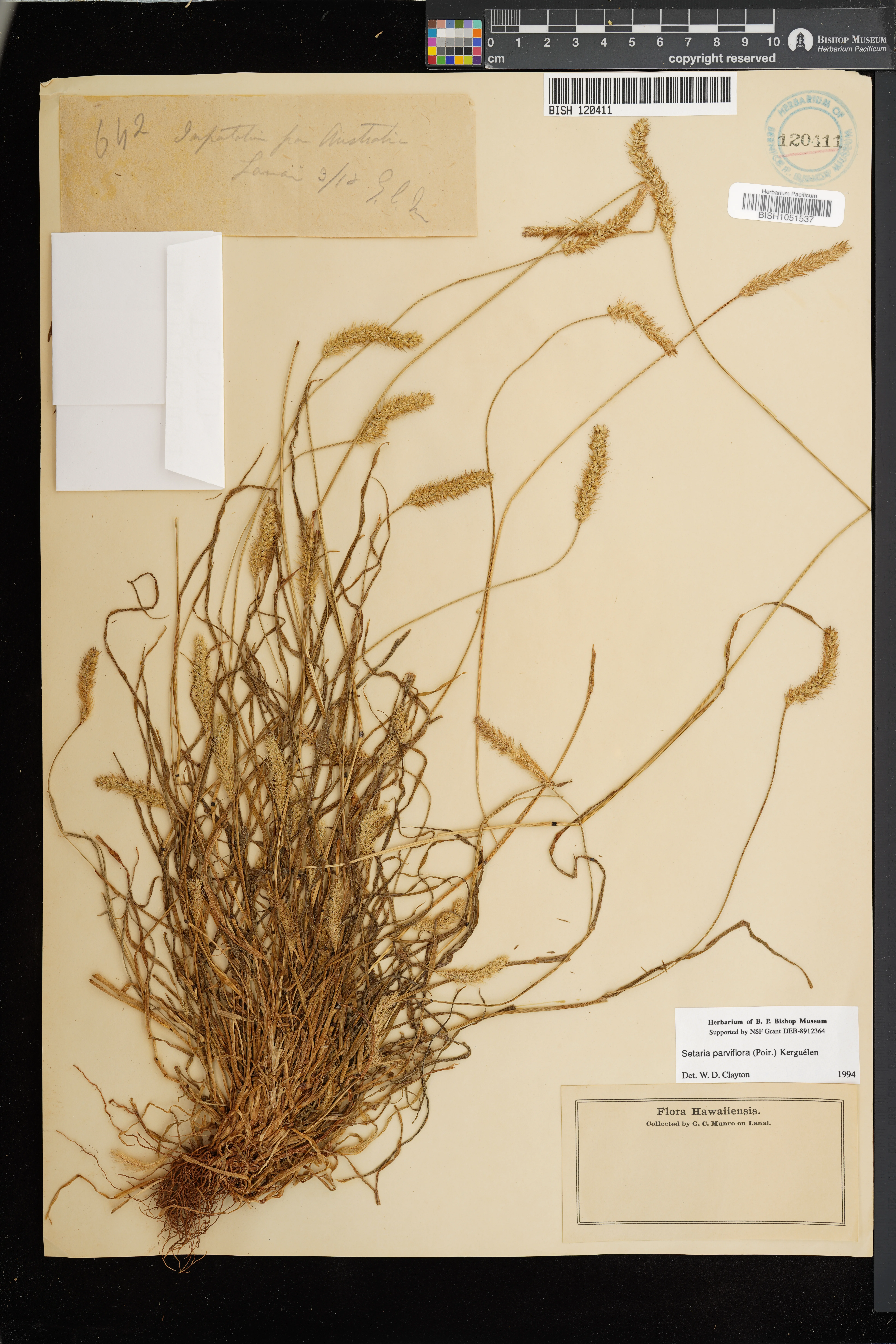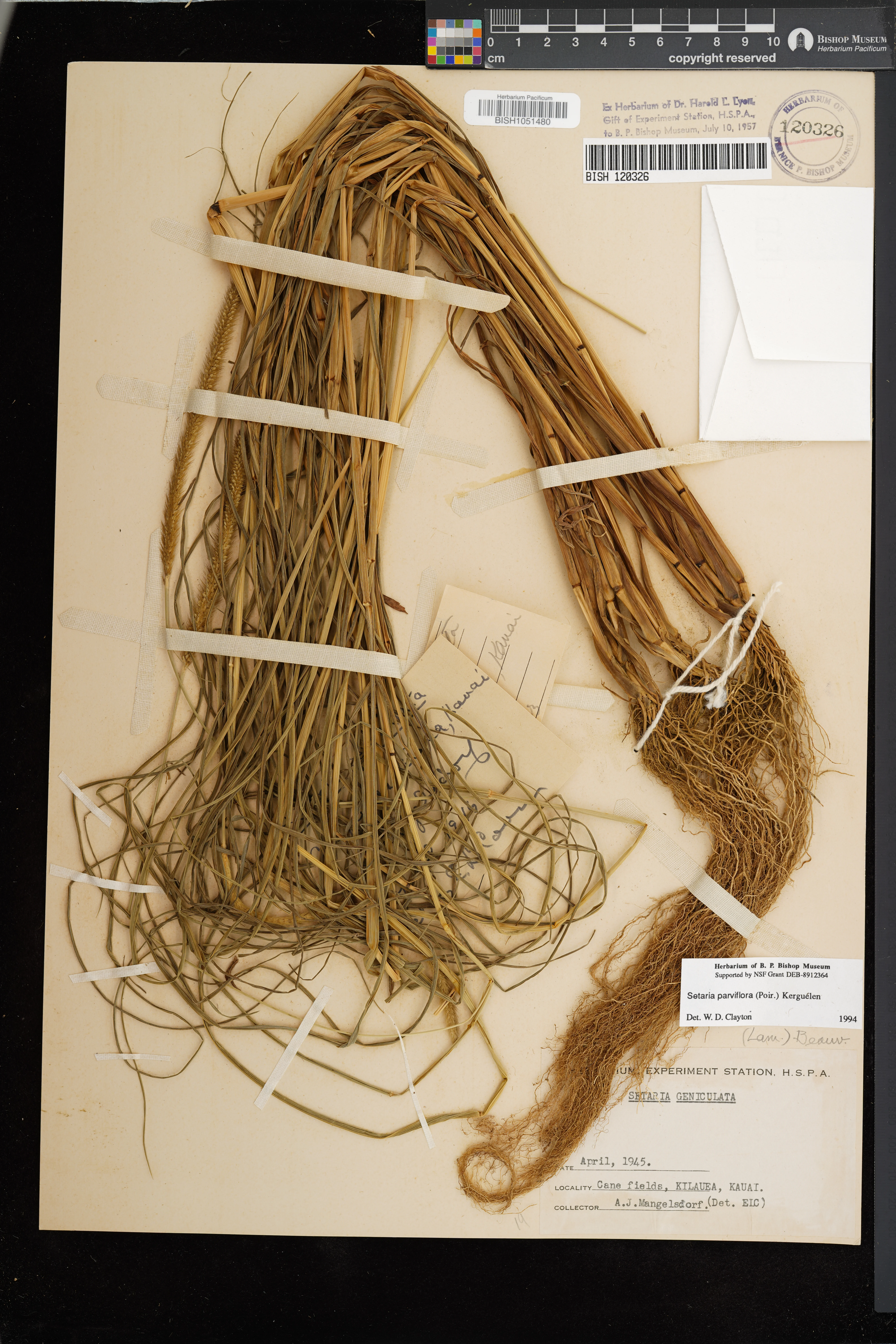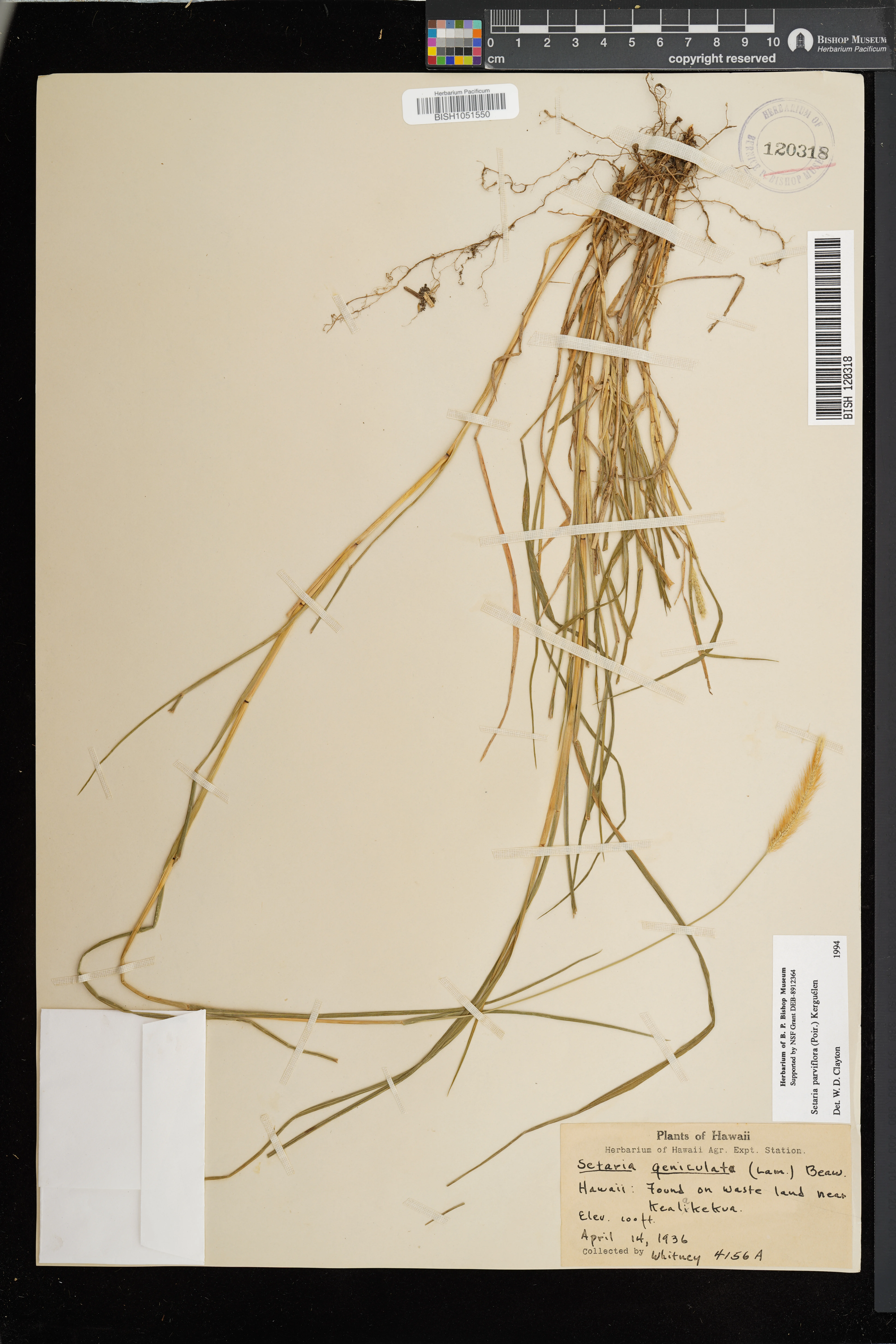 The plant was growing in the experimental tree planting site on the side of the Puna Trail. The soil in the area is crushed lava or cinder. The grass was growing in an area that is exposed to direct sunlight. |