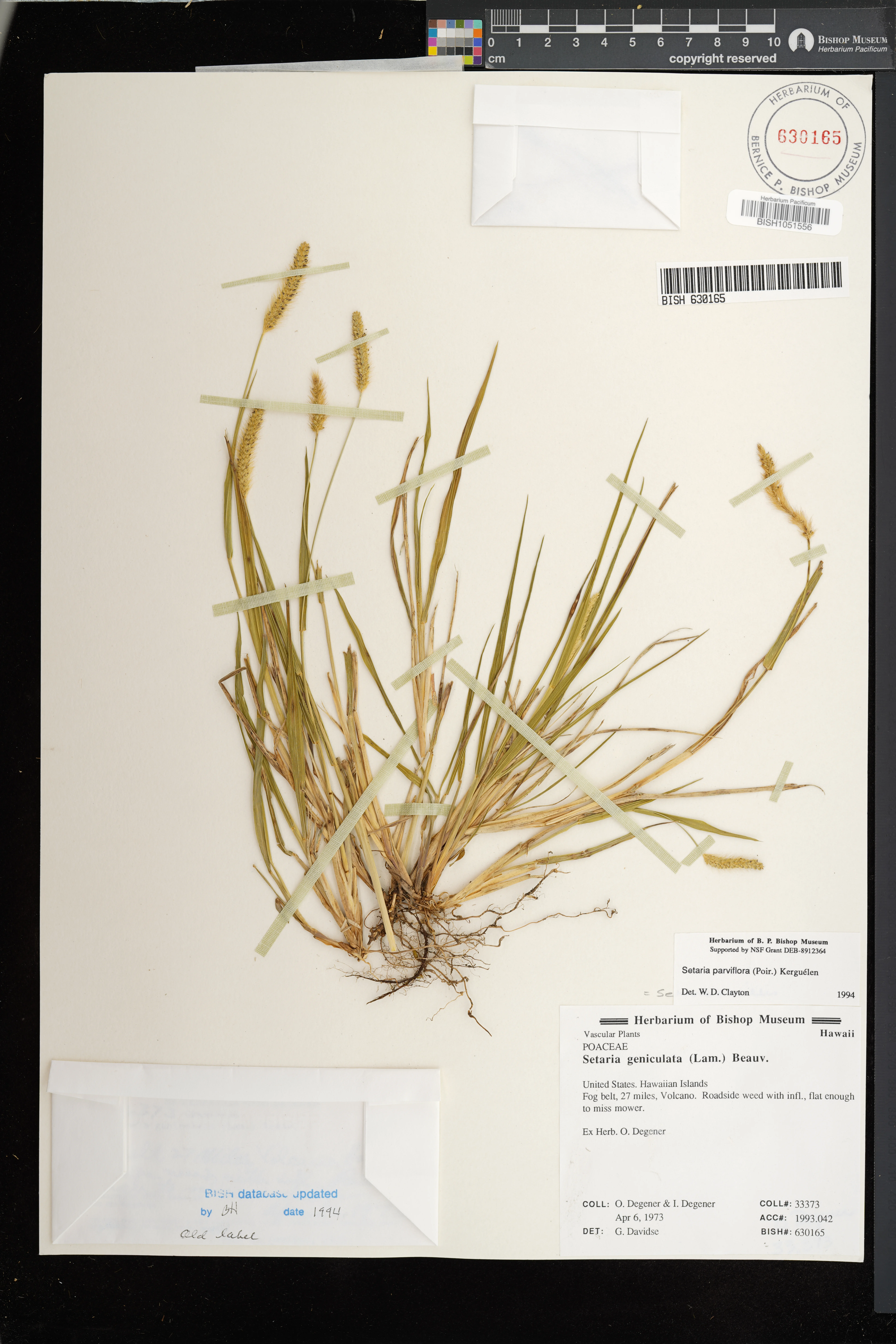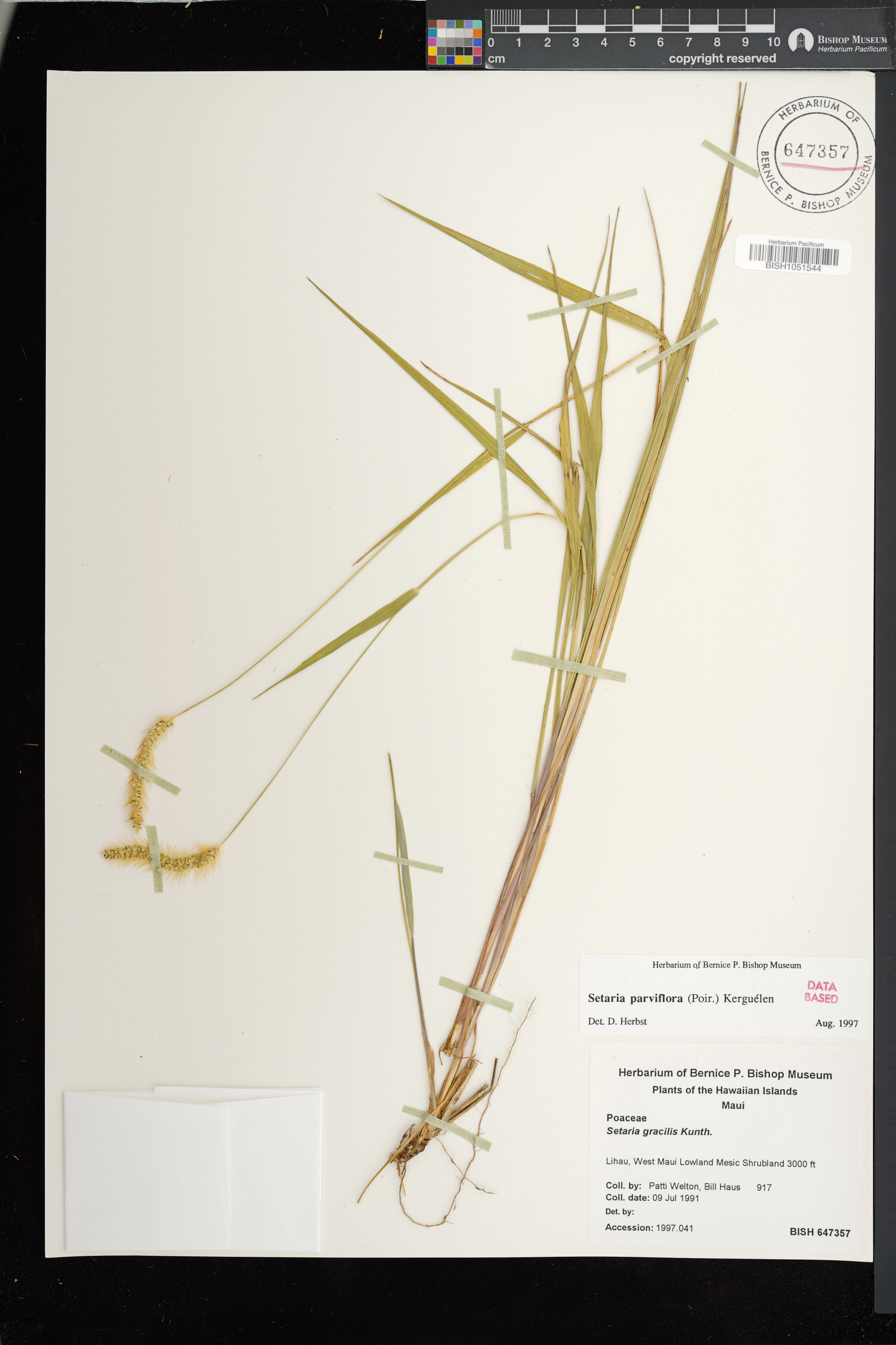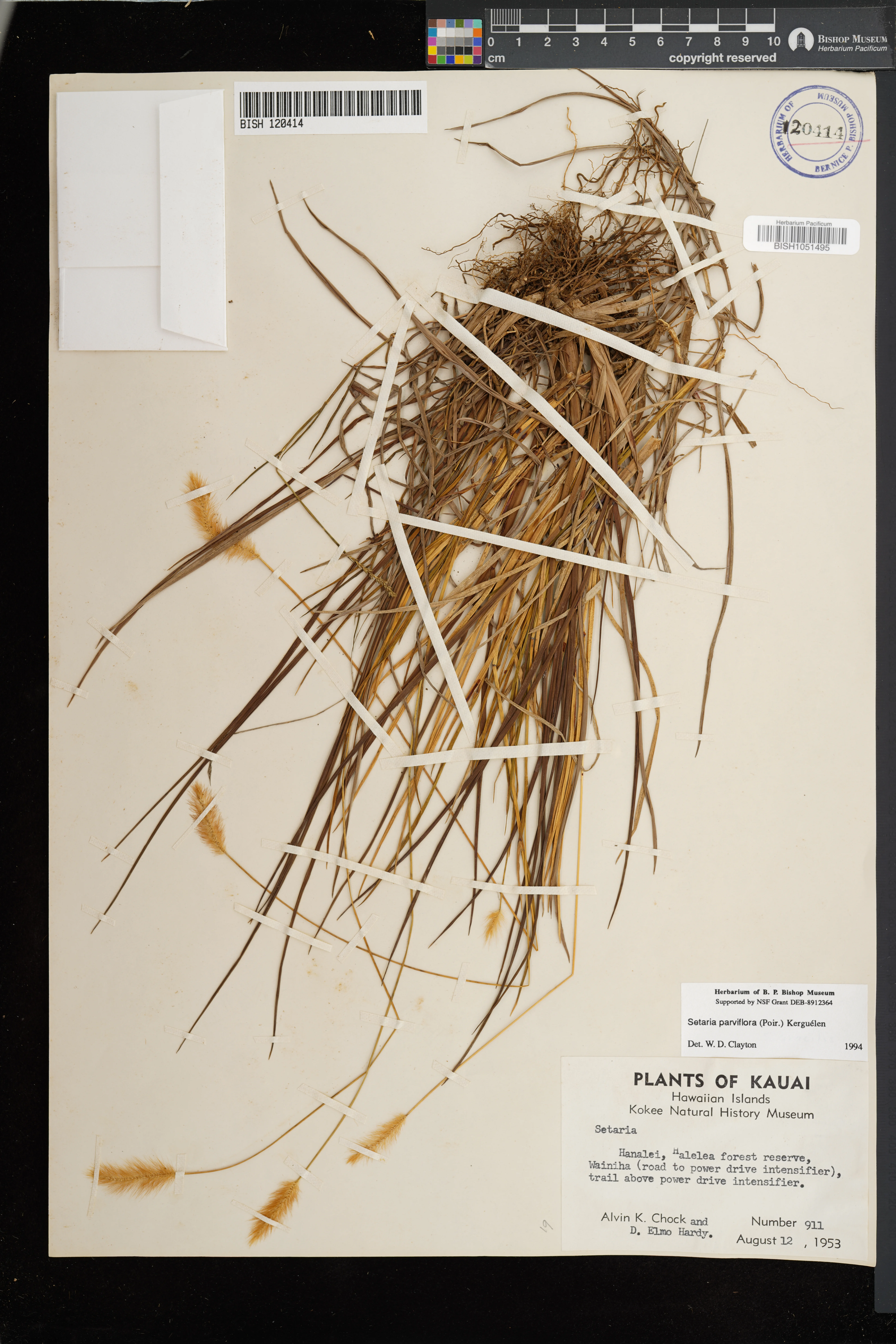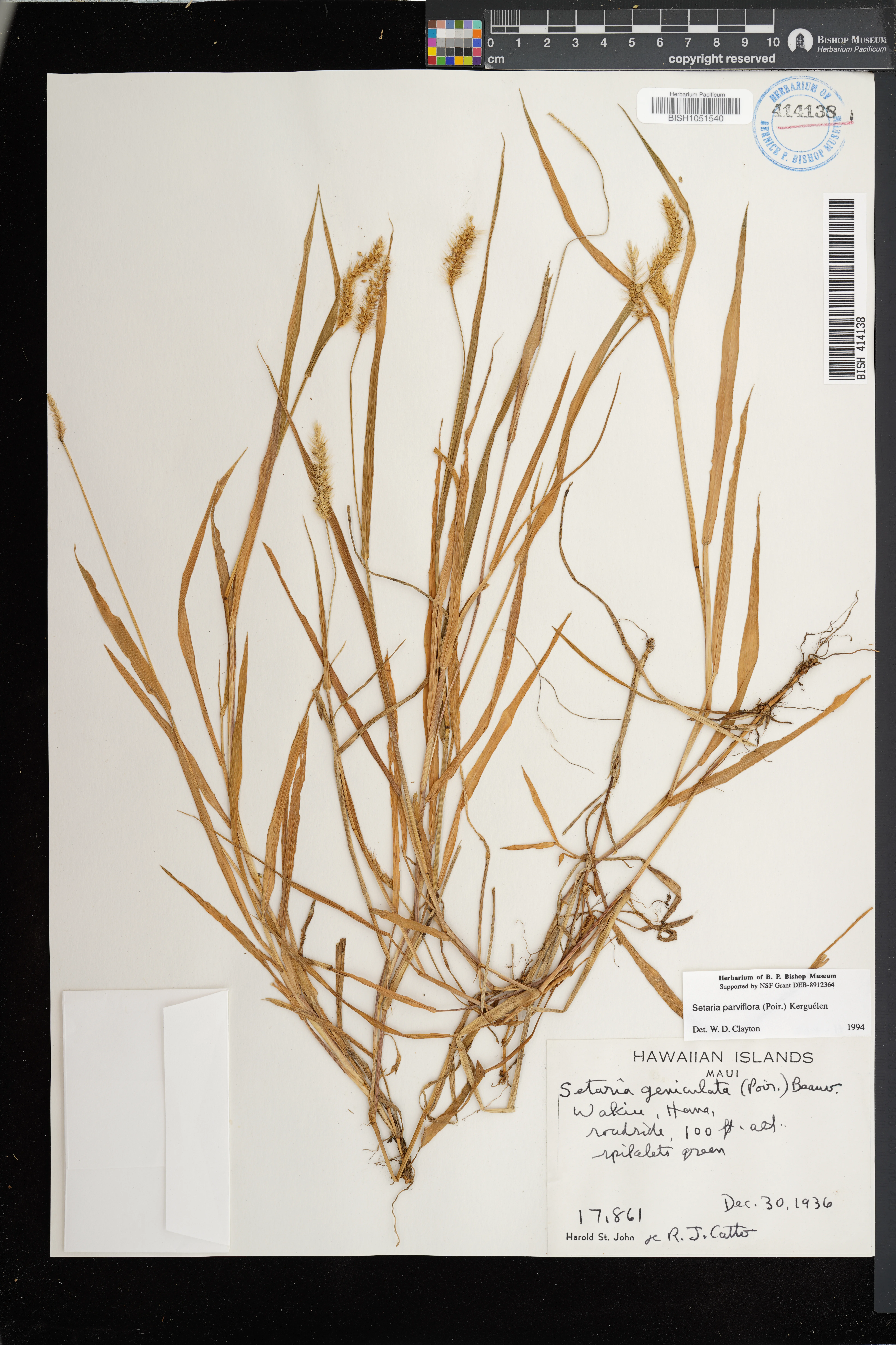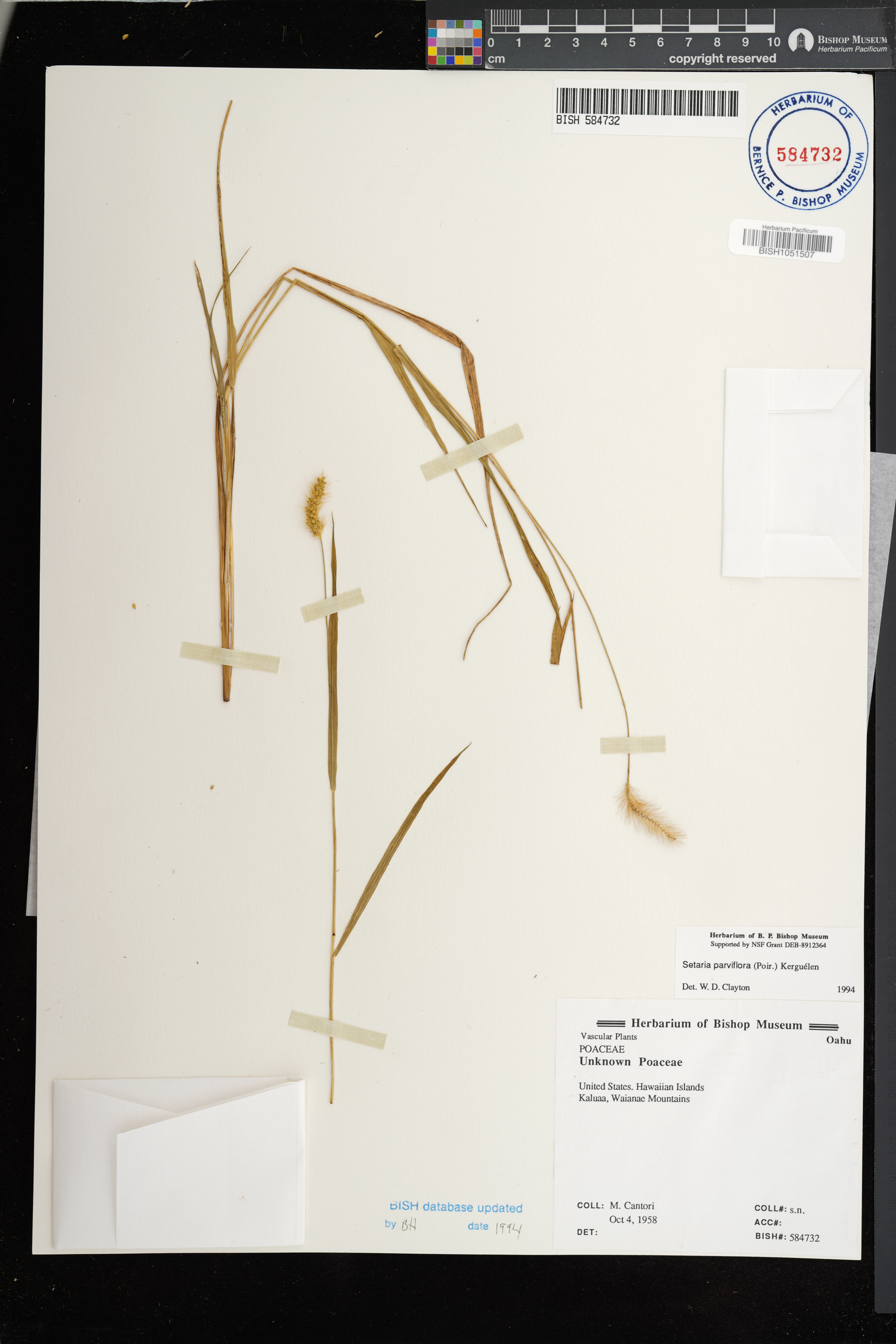 The plant was growing in the experimental tree planting site on the side of the Puna Trail. The soil in the area is crushed lava or cinder. The grass was growing in an area that is exposed to direct sunlight. |
