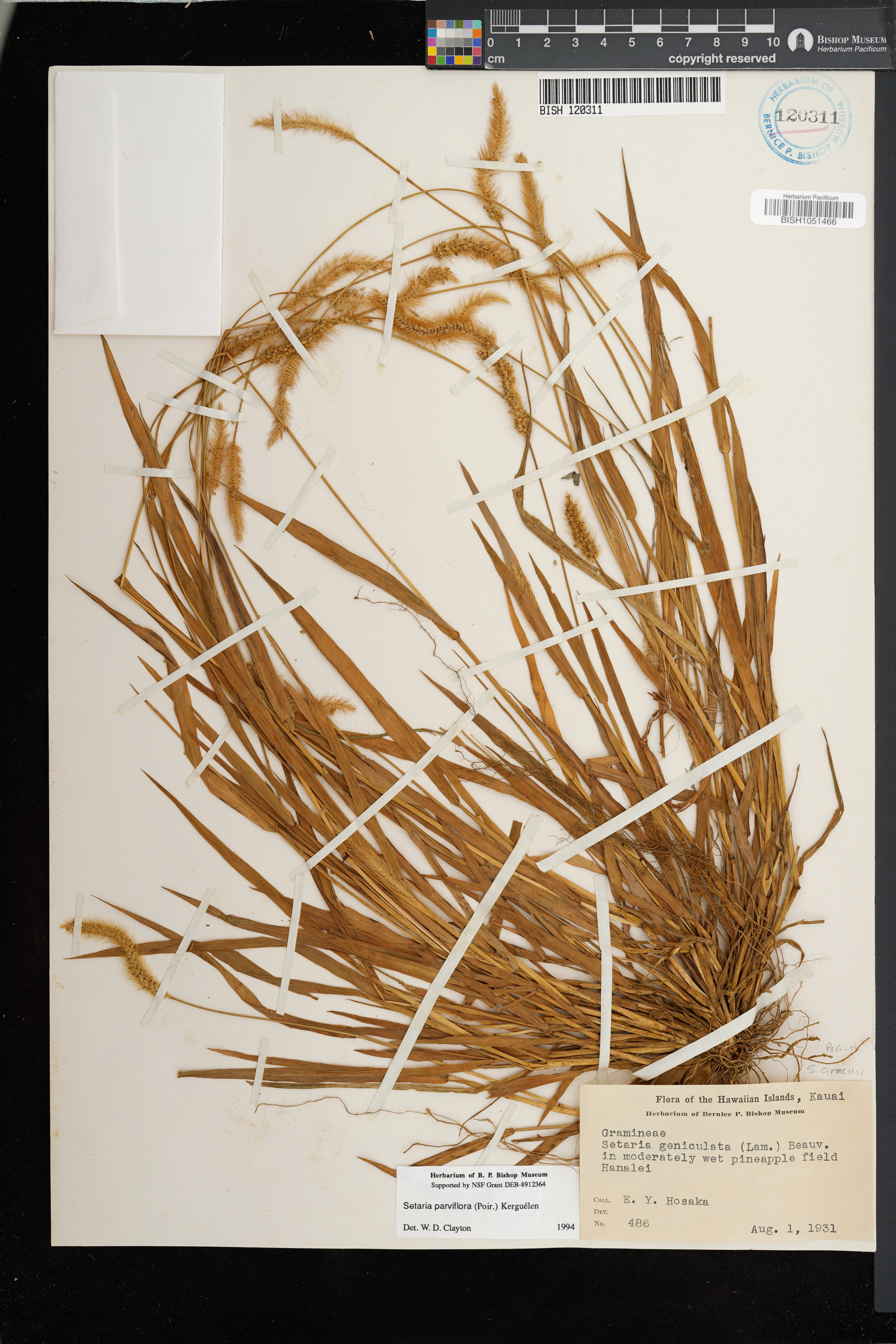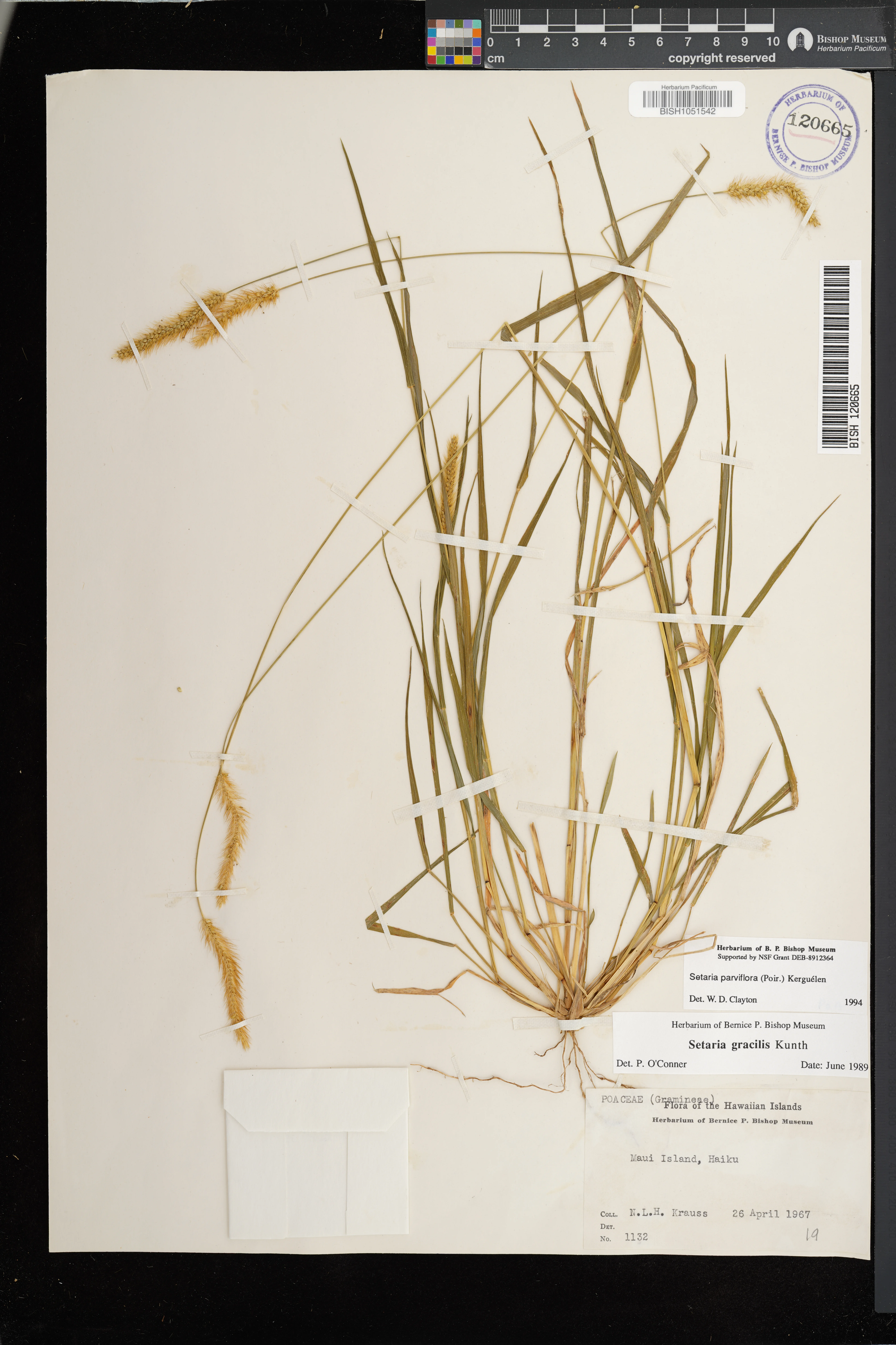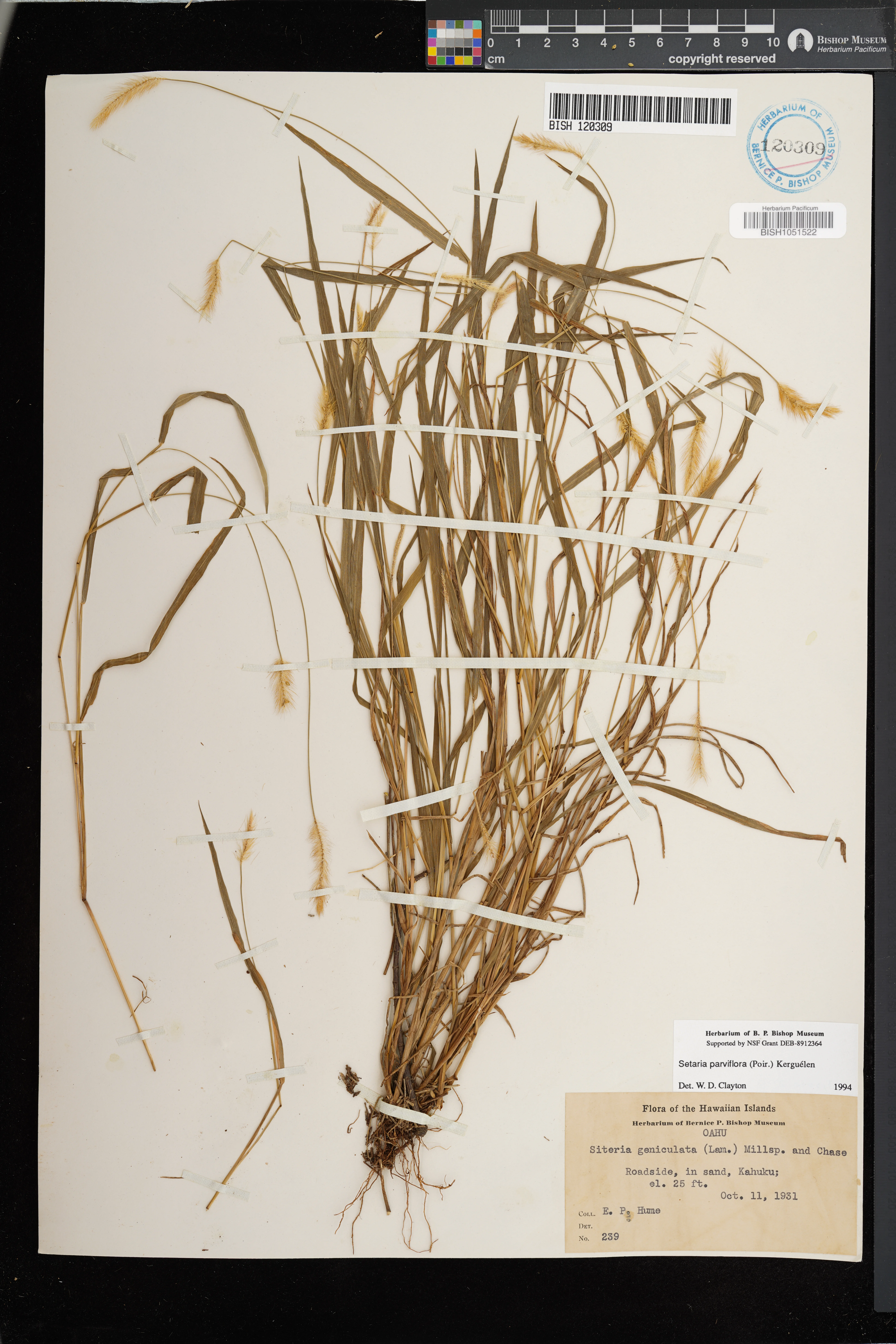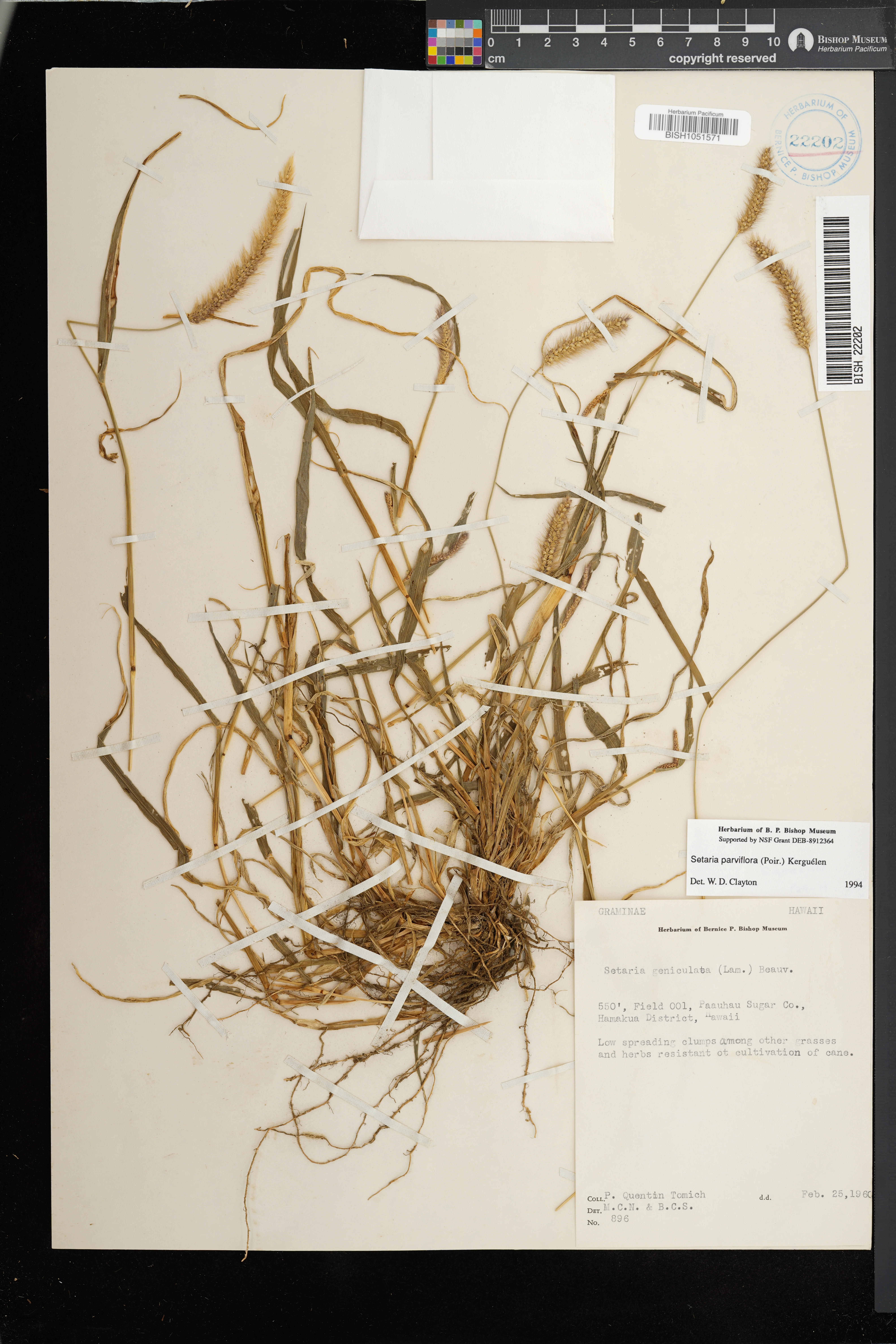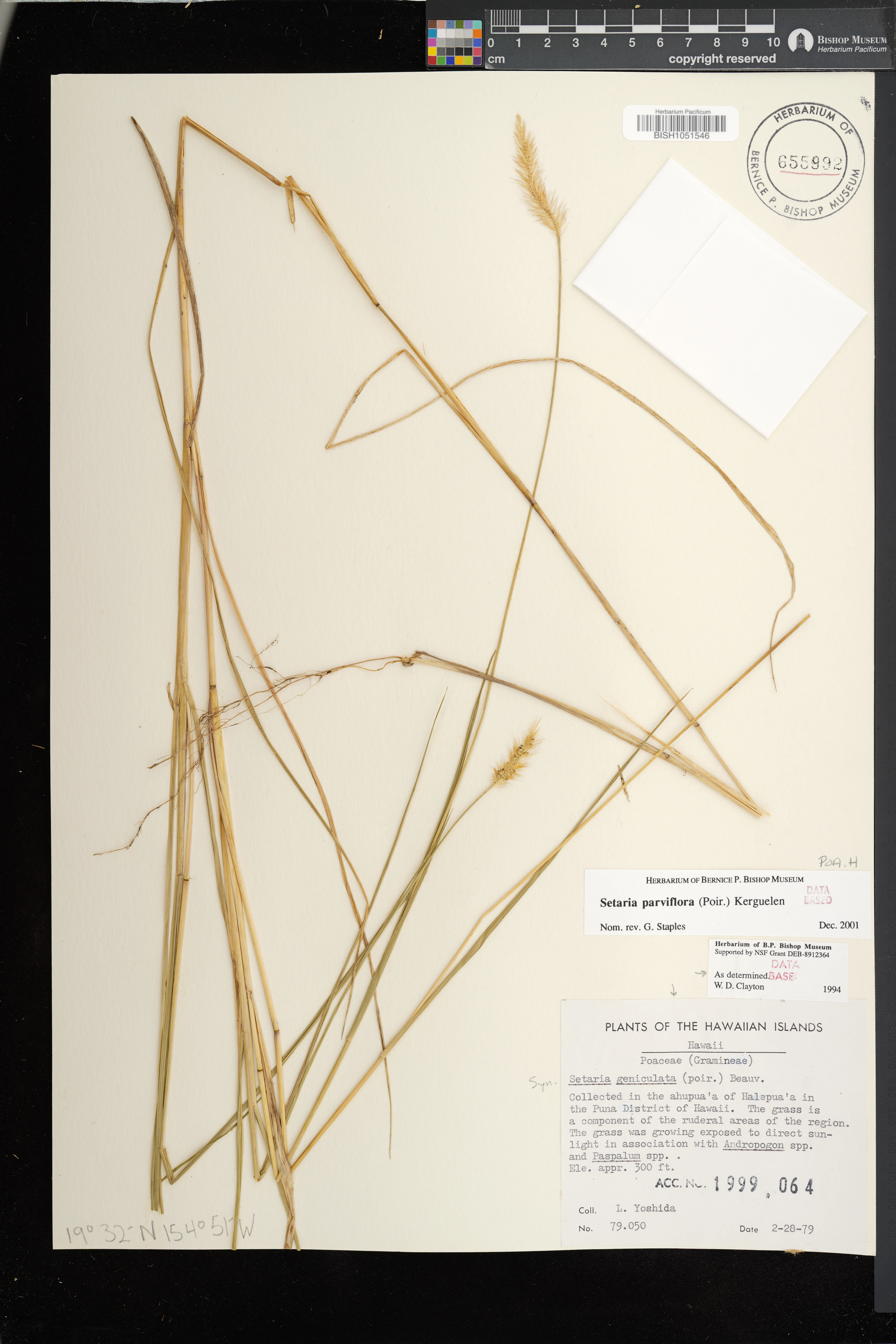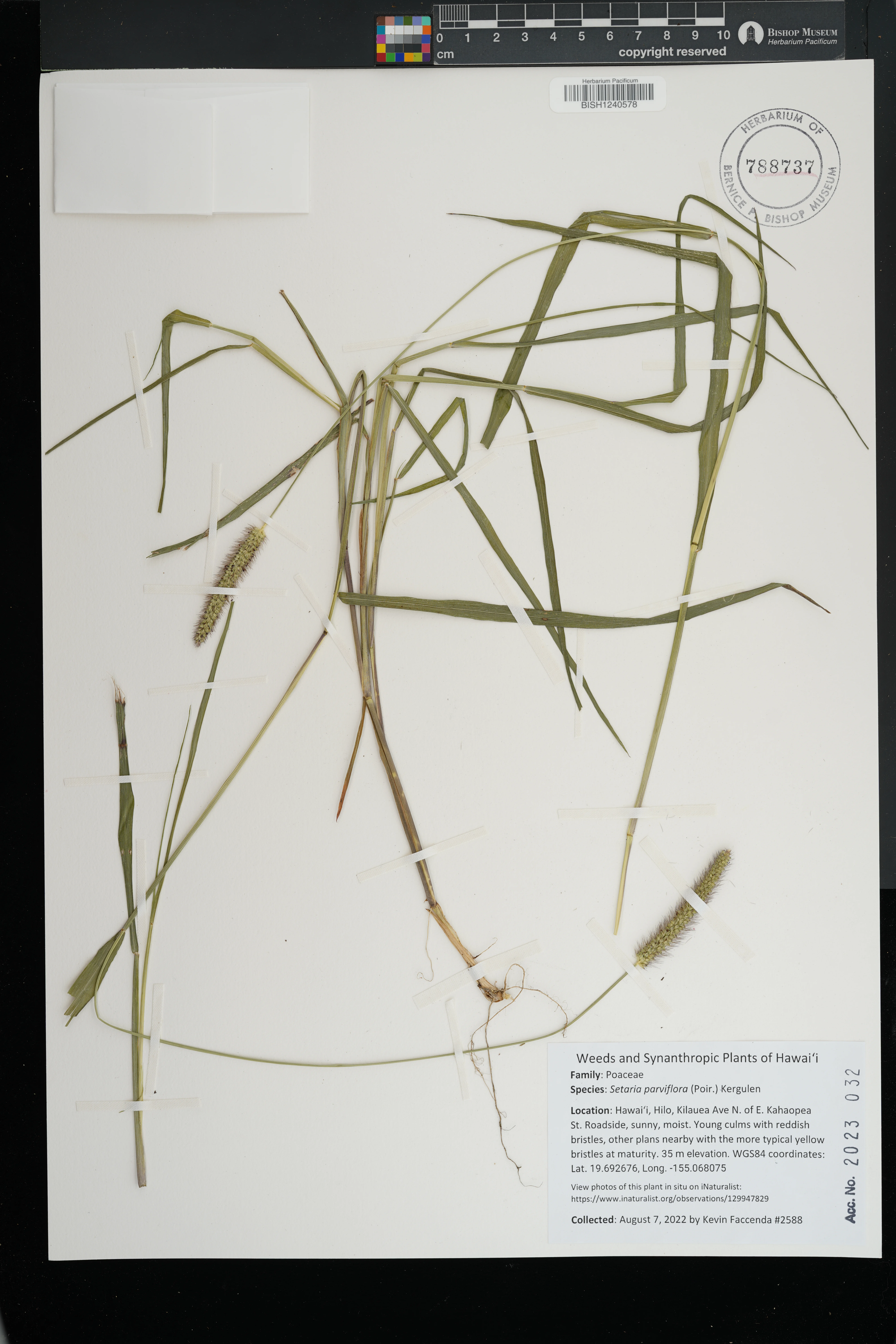 The plant was growing in the experimental tree planting site on the side of the Puna Trail. The soil in the area is crushed lava or cinder. The grass was growing in an area that is exposed to direct sunlight. |