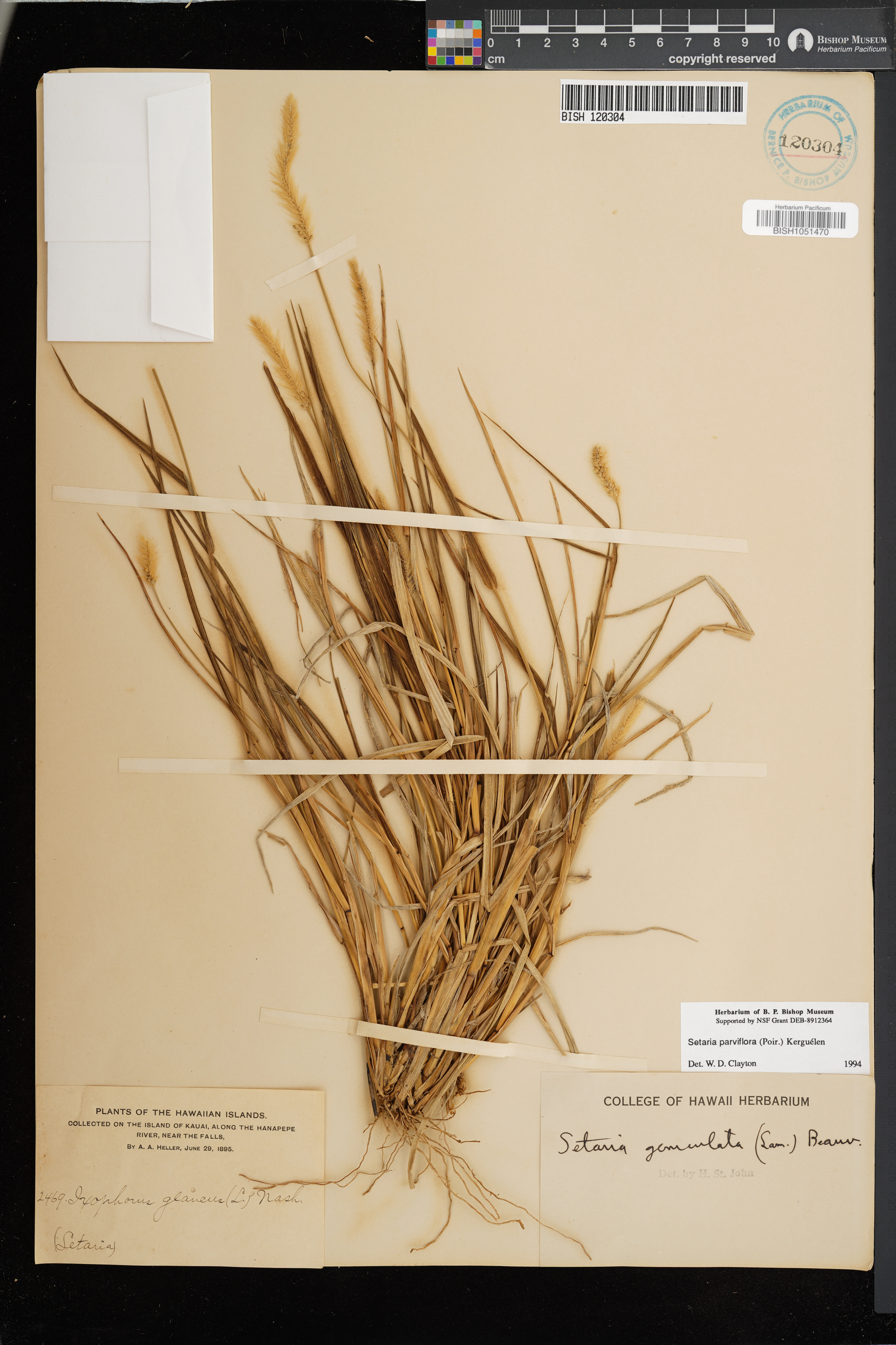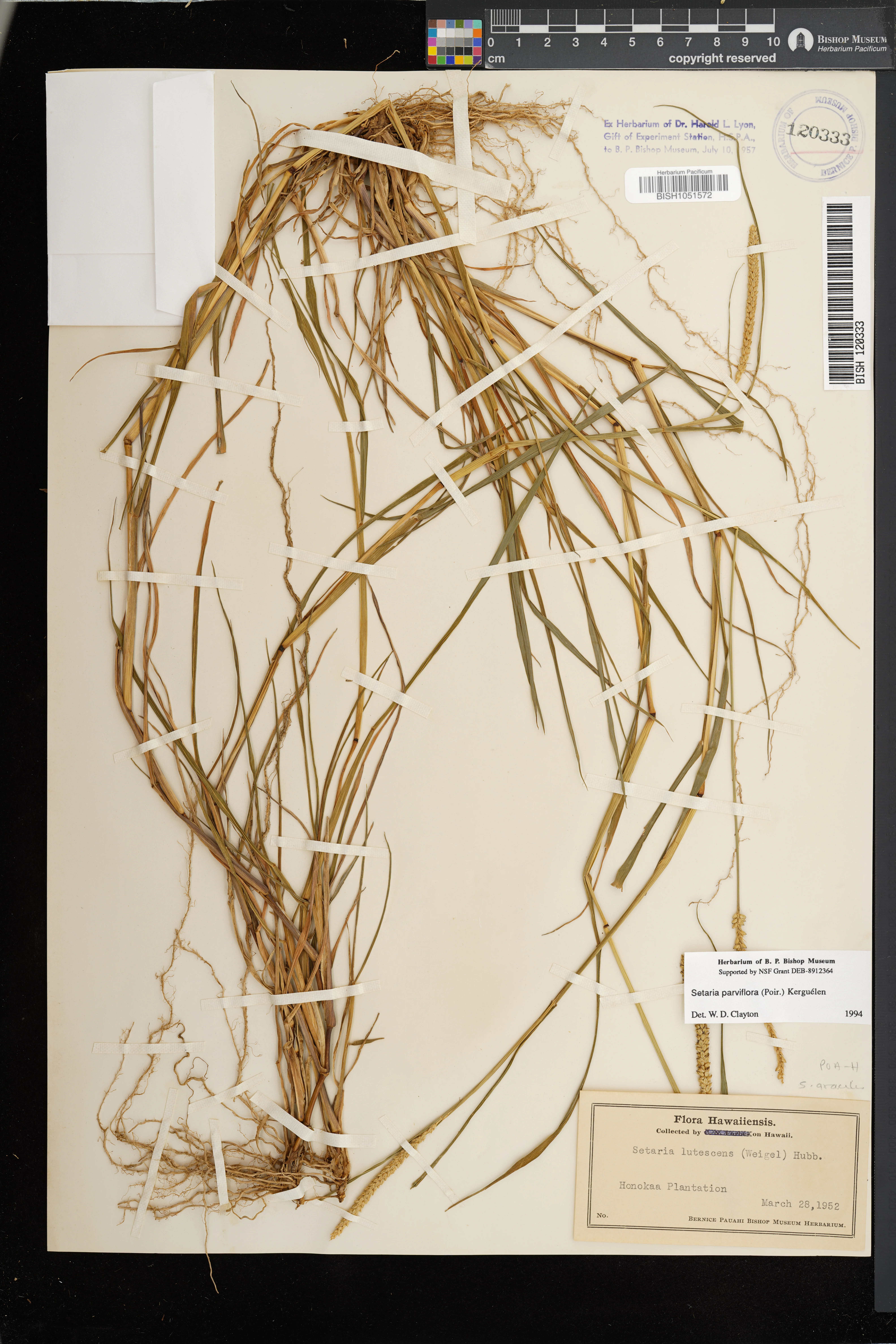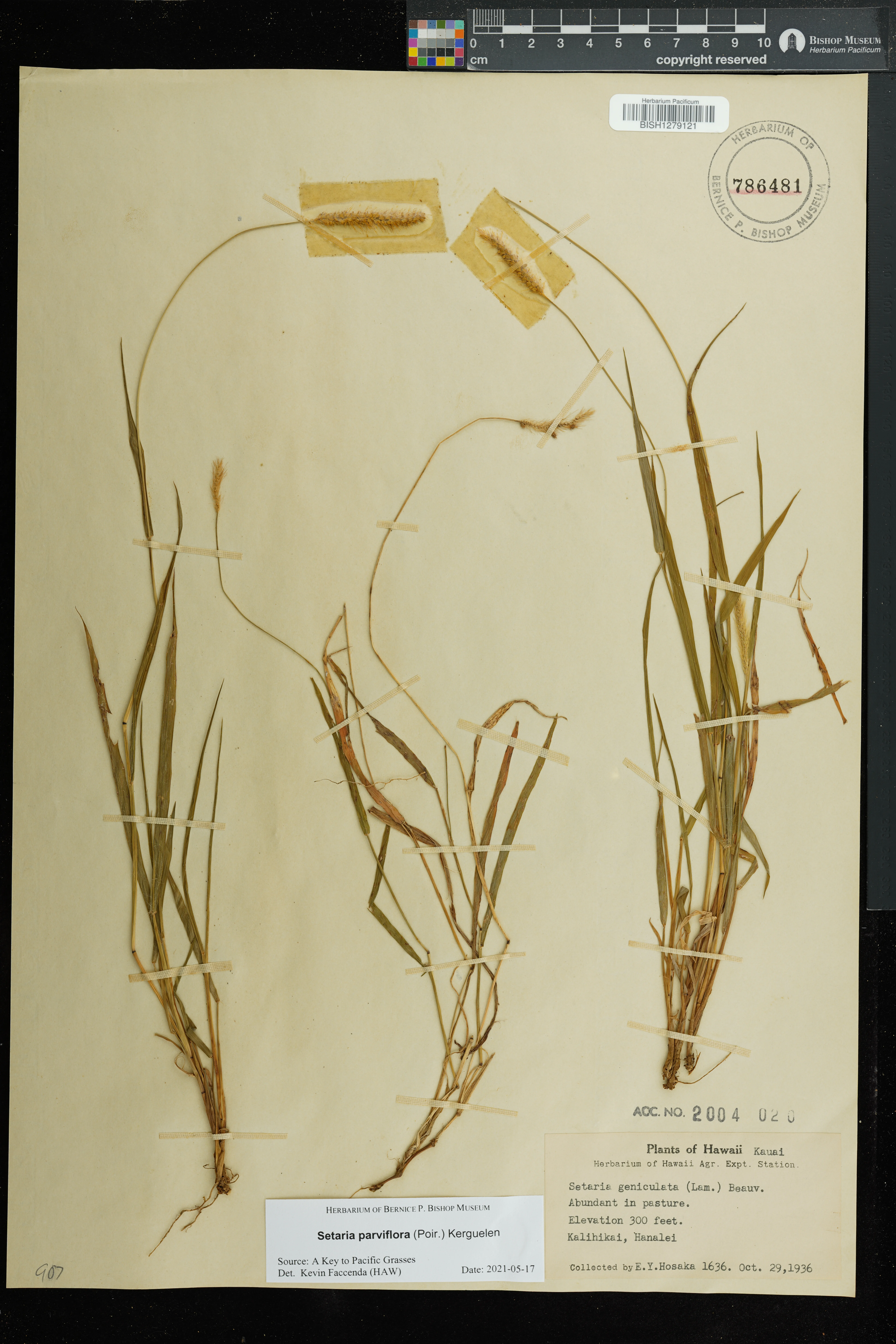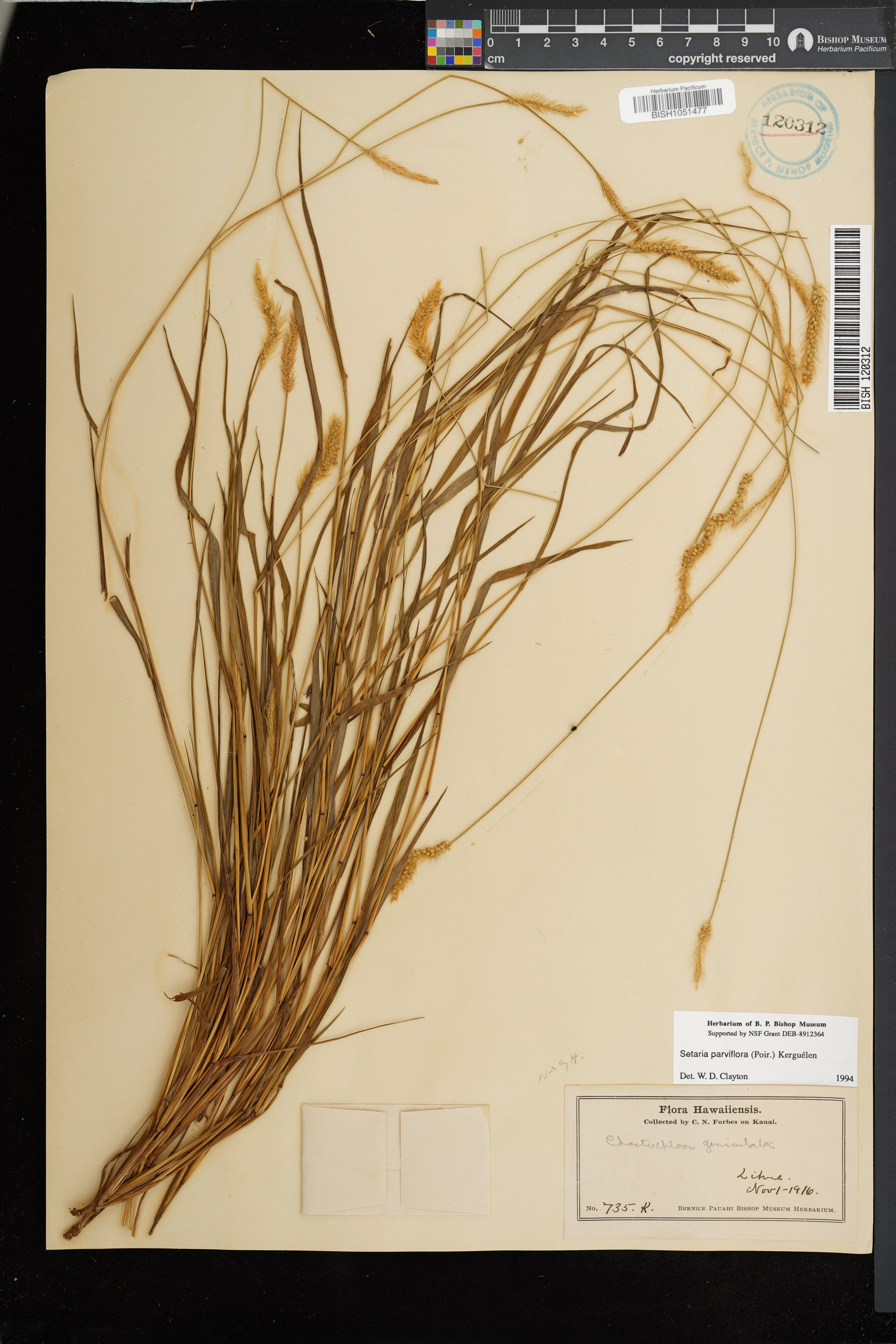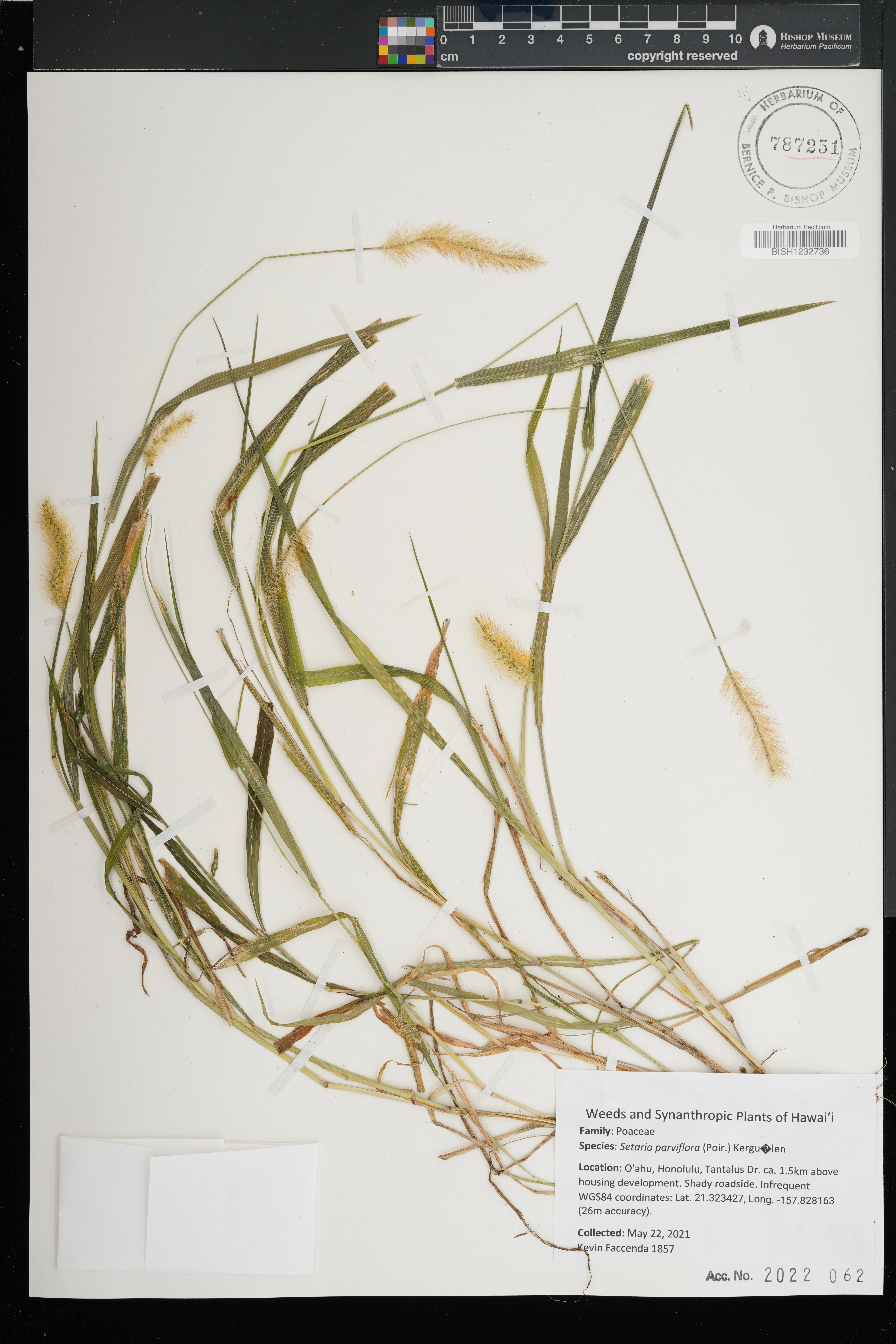 The plant was growing in the experimental tree planting site on the side of the Puna Trail. The soil in the area is crushed lava or cinder. The grass was growing in an area that is exposed to direct sunlight. |