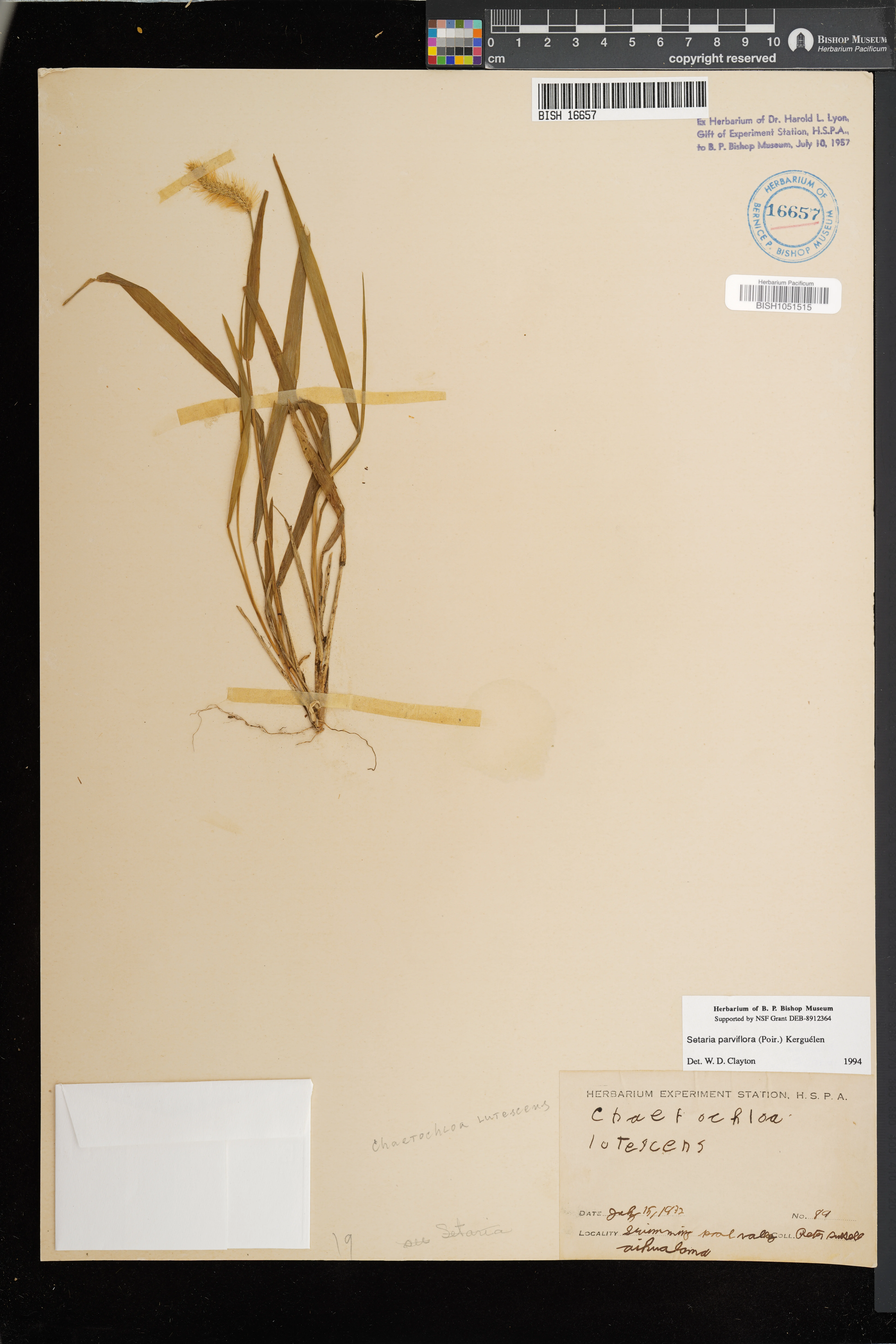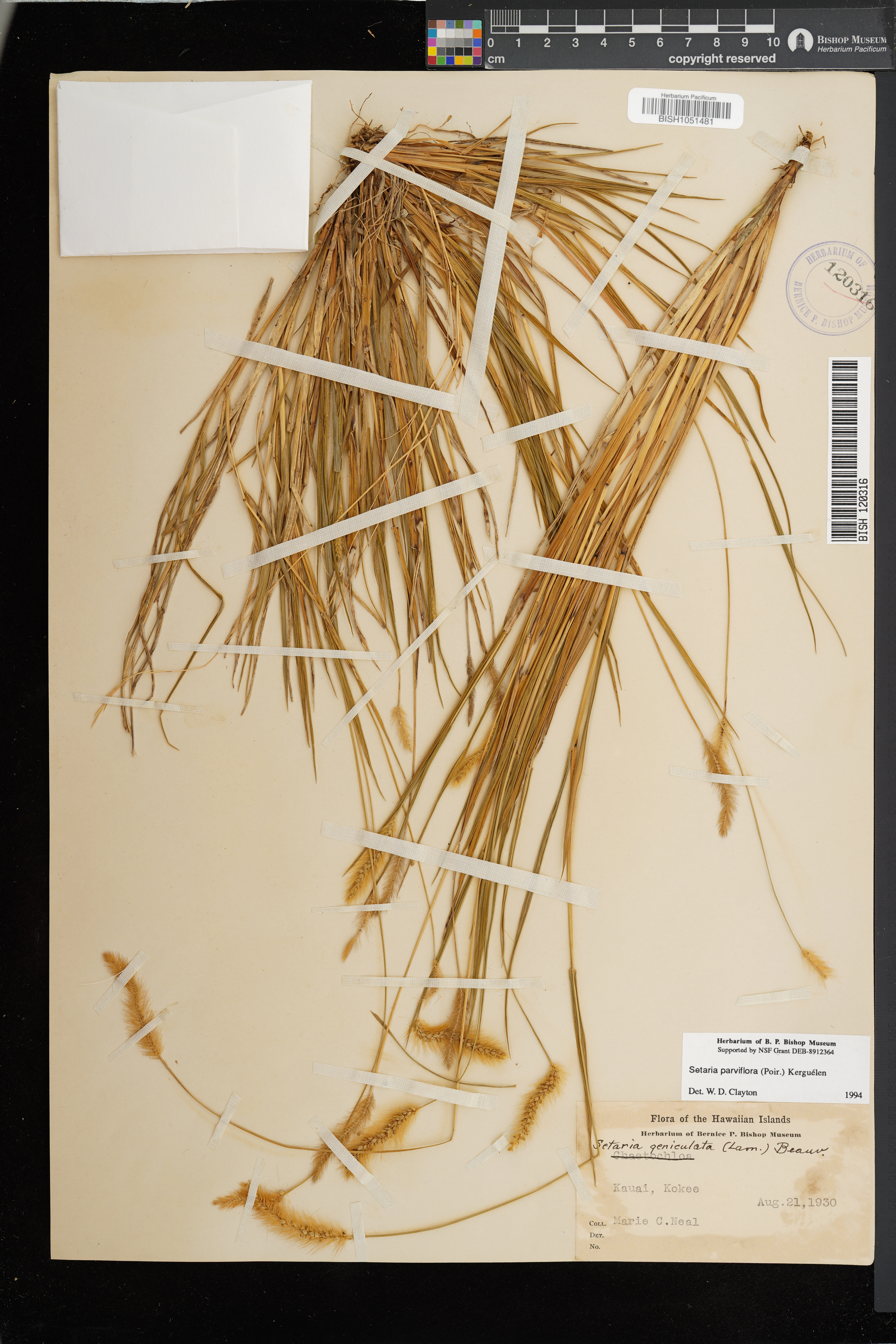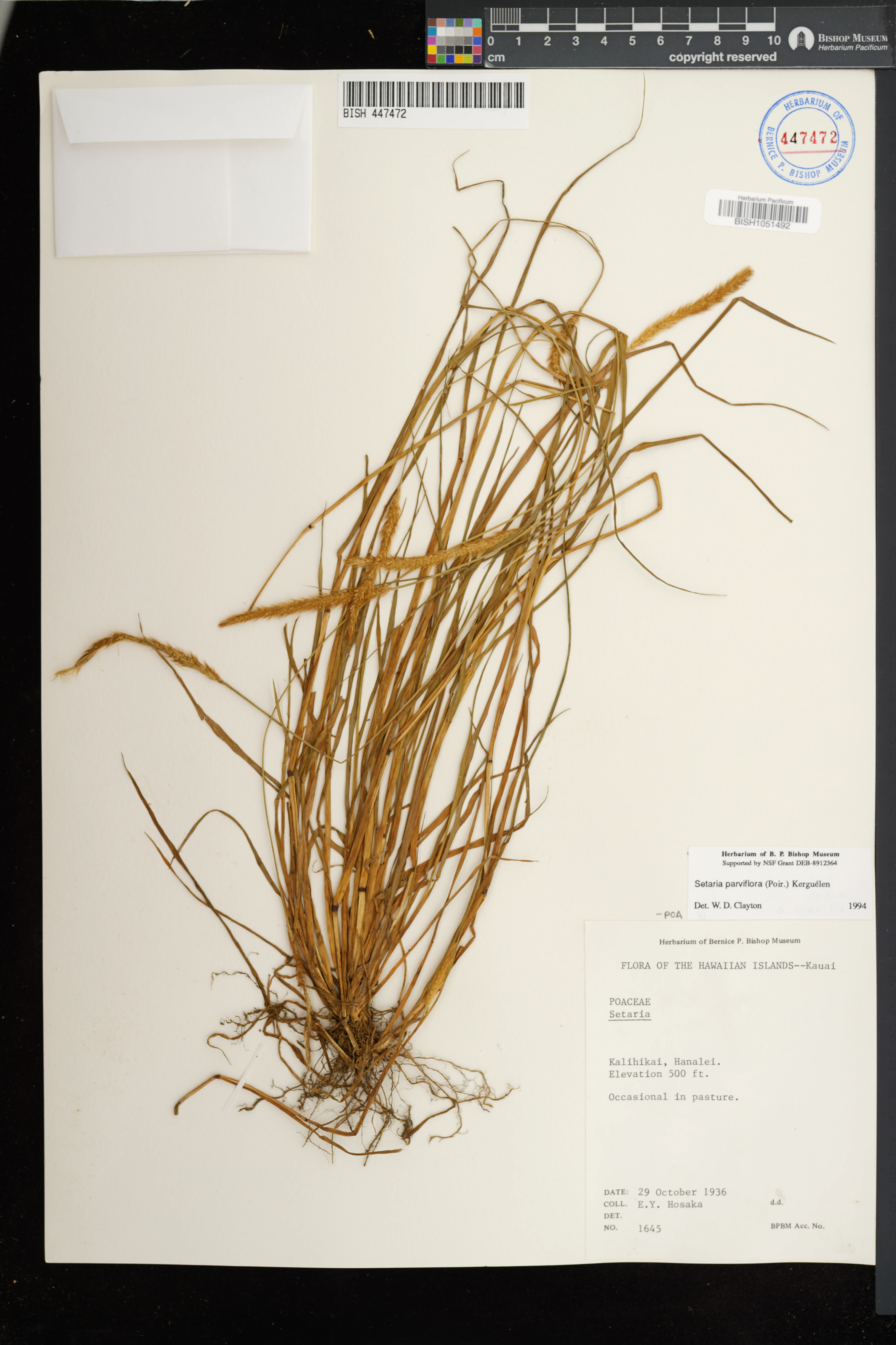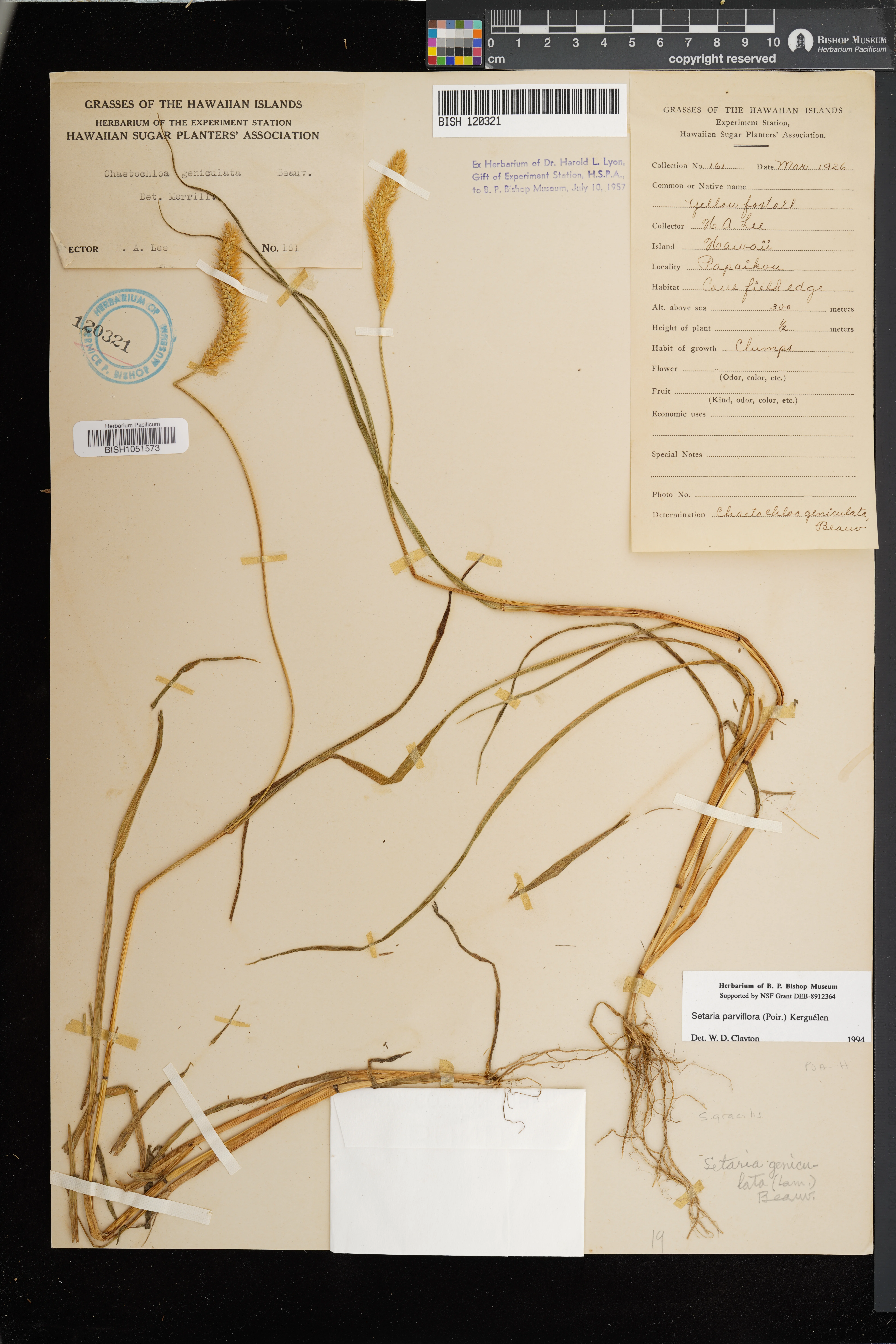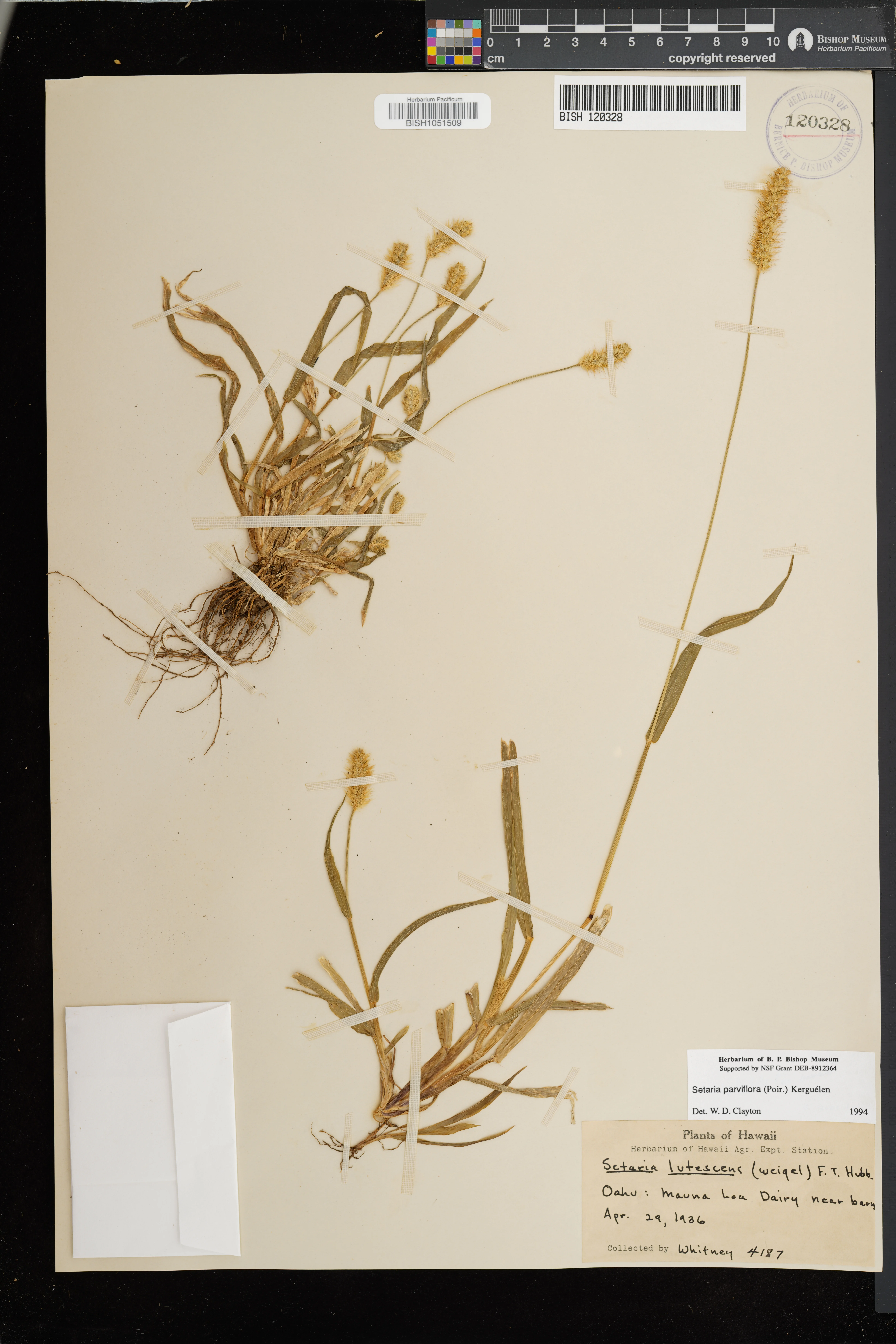 The plant was growing in the experimental tree planting site on the side of the Puna Trail. The soil in the area is crushed lava or cinder. The grass was growing in an area that is exposed to direct sunlight. |