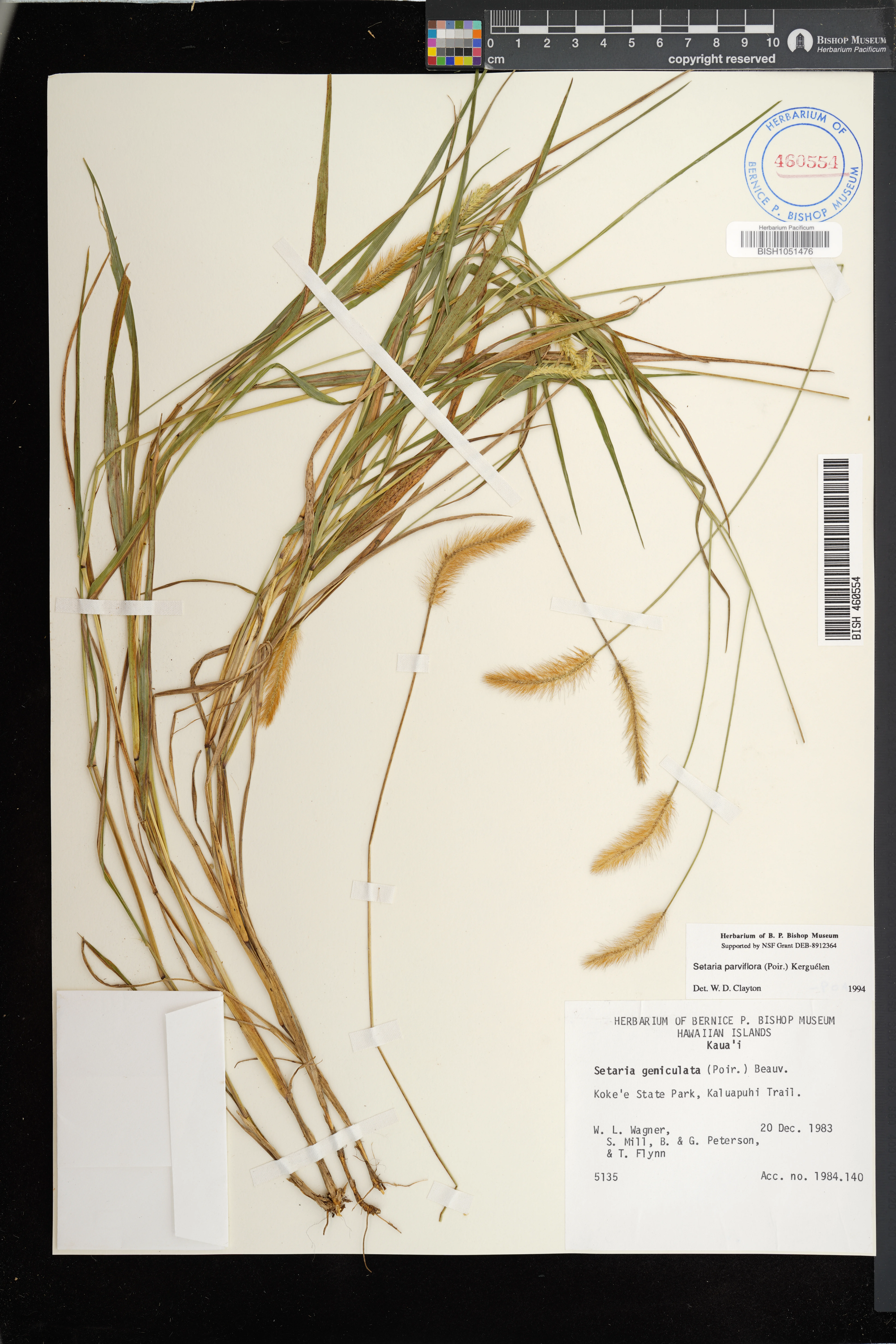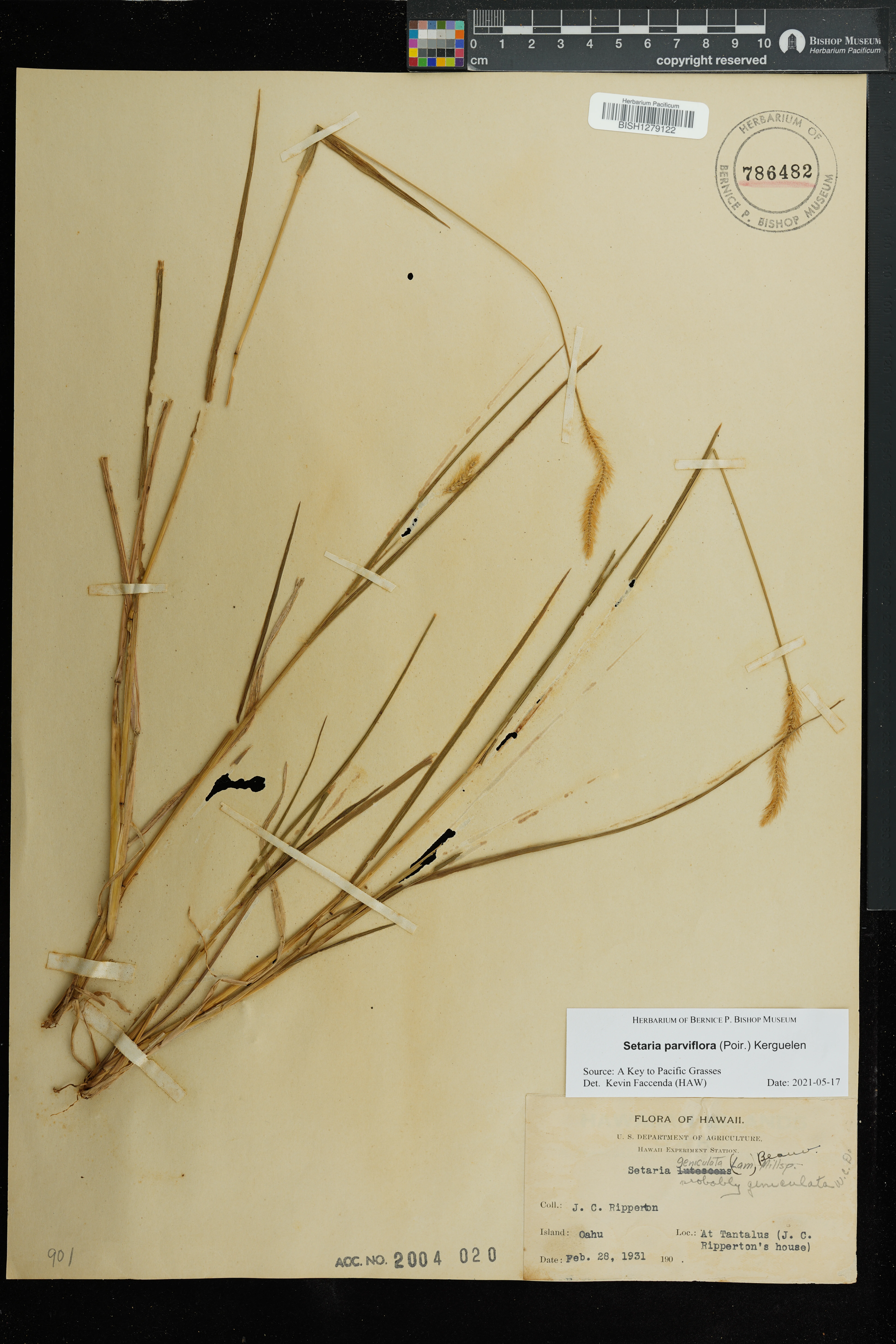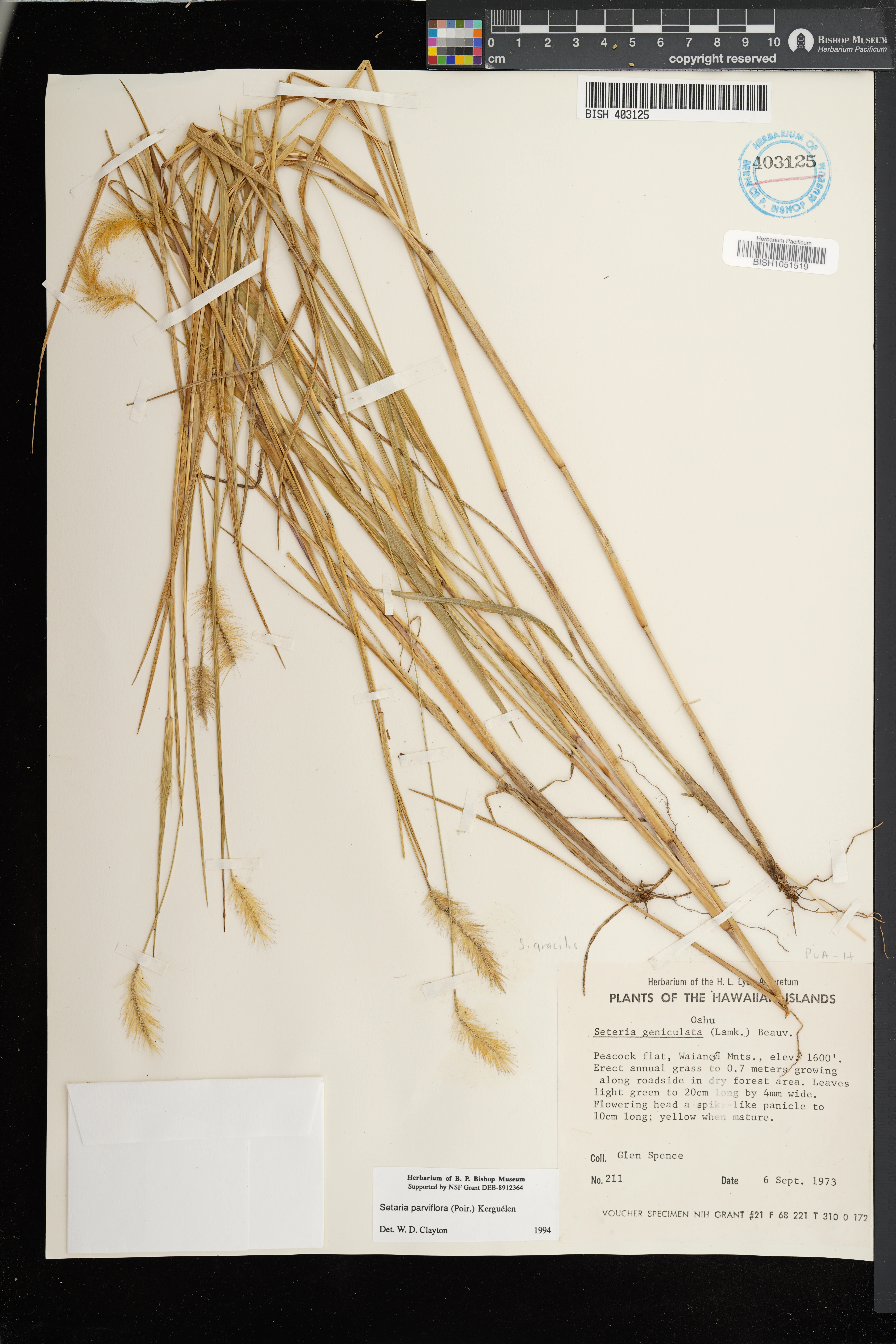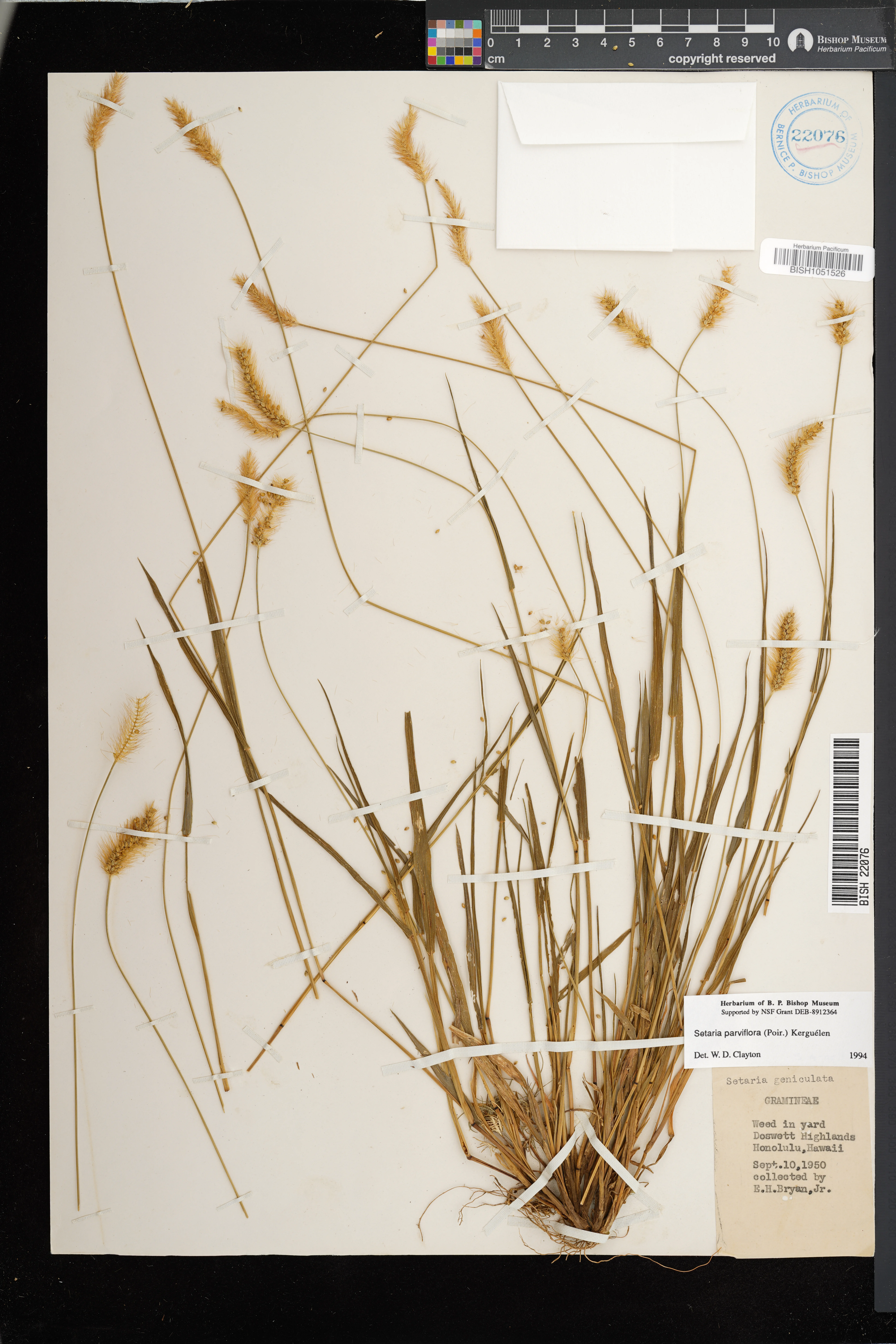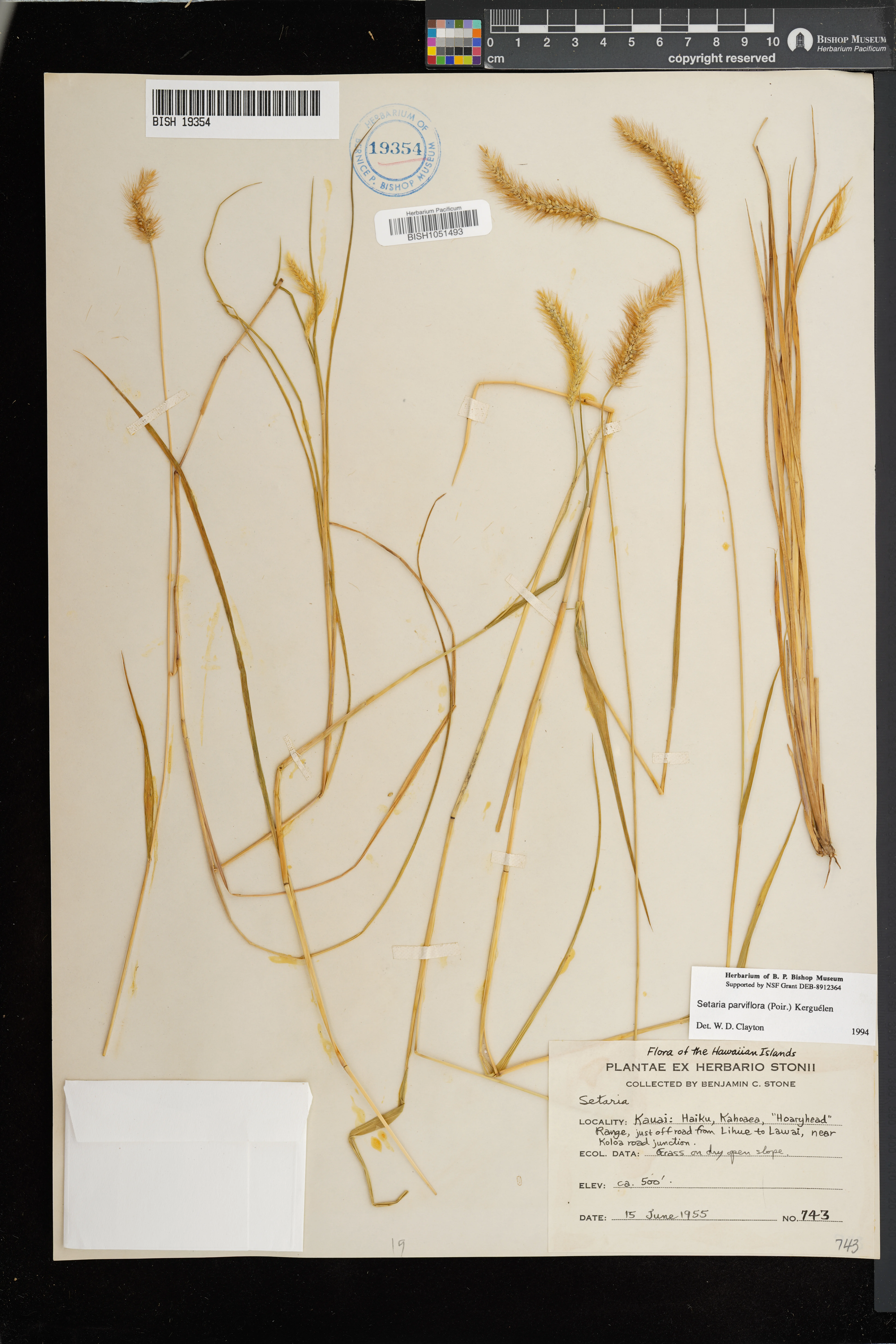 The plant was growing in the experimental tree planting site on the side of the Puna Trail. The soil in the area is crushed lava or cinder. The grass was growing in an area that is exposed to direct sunlight. |