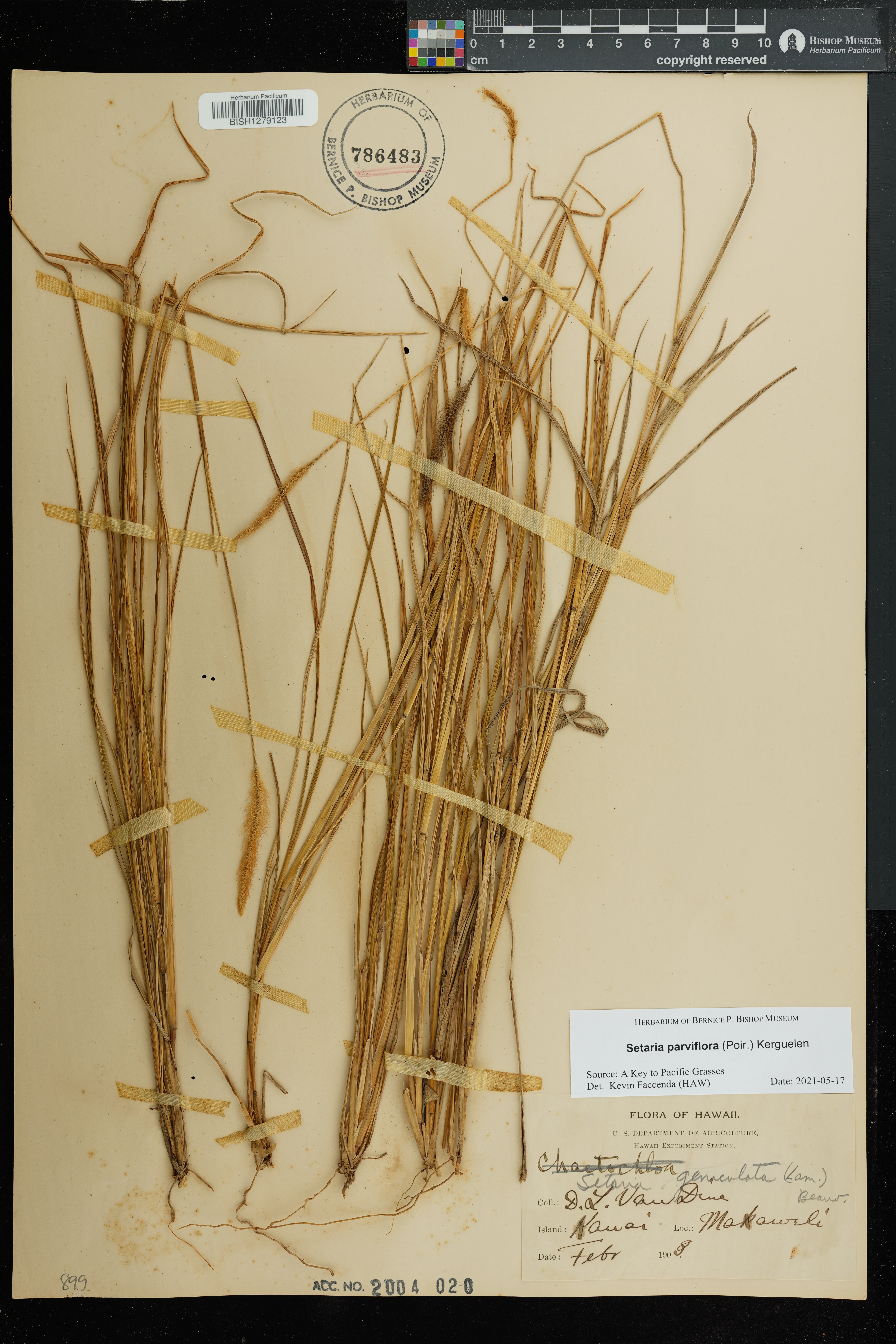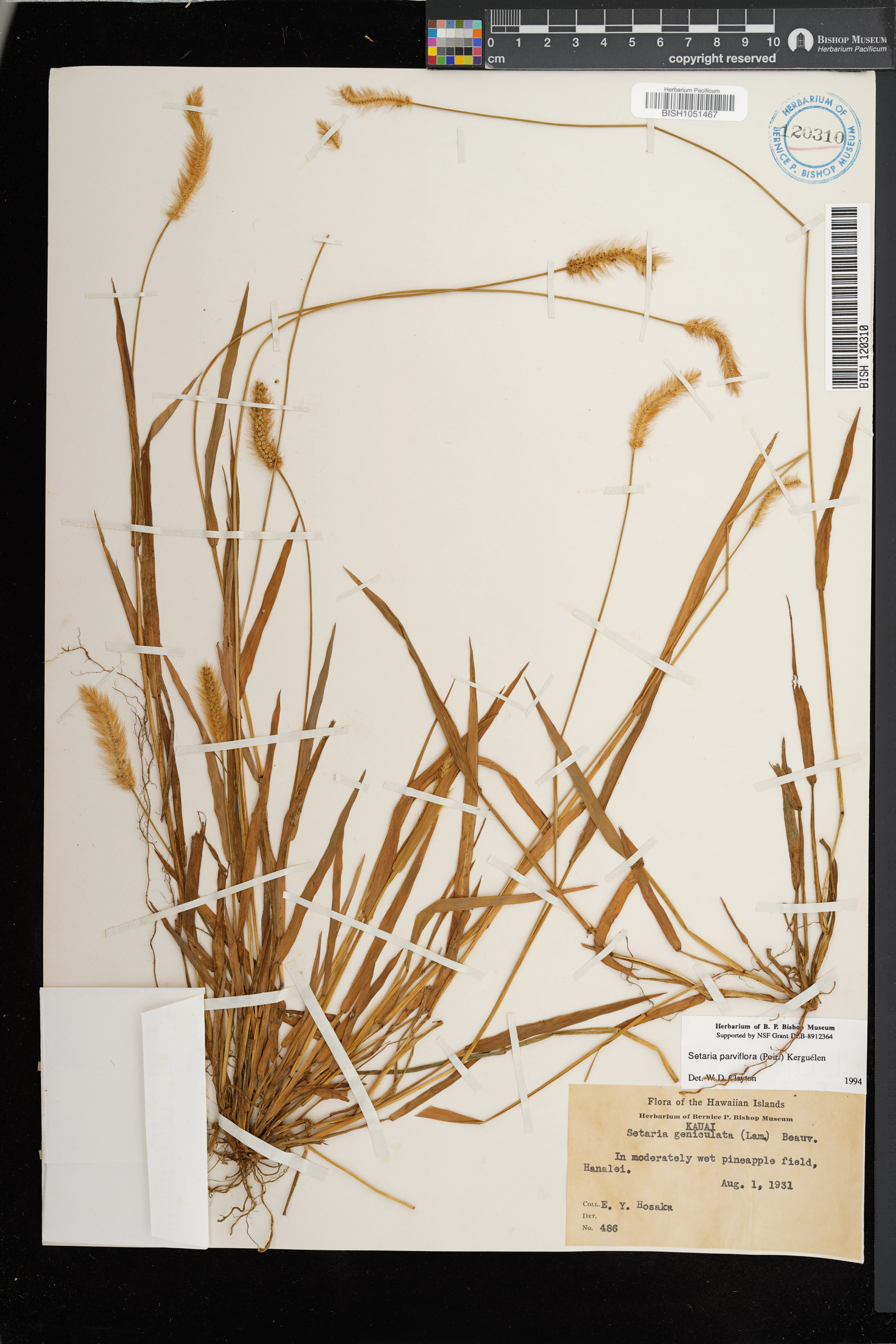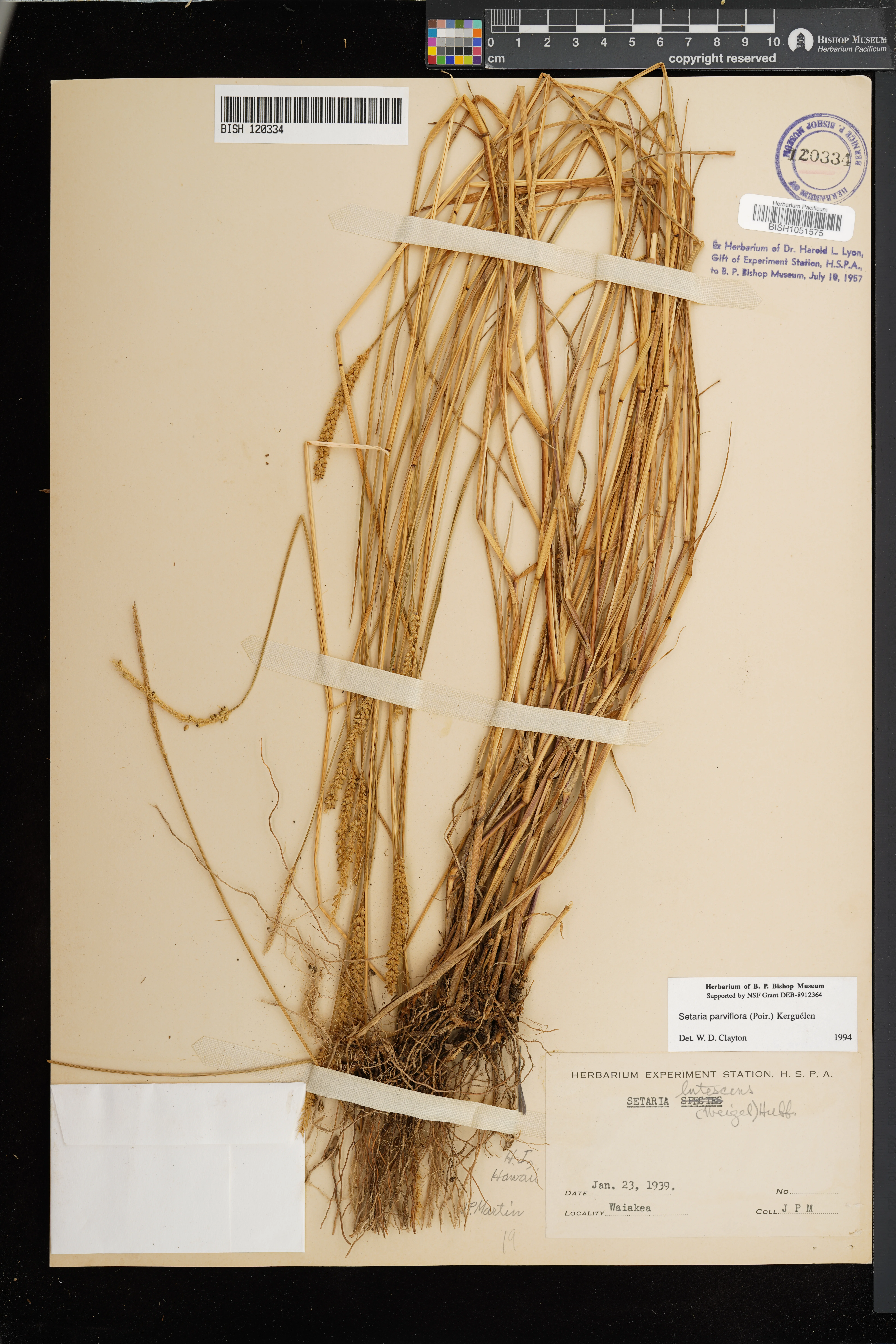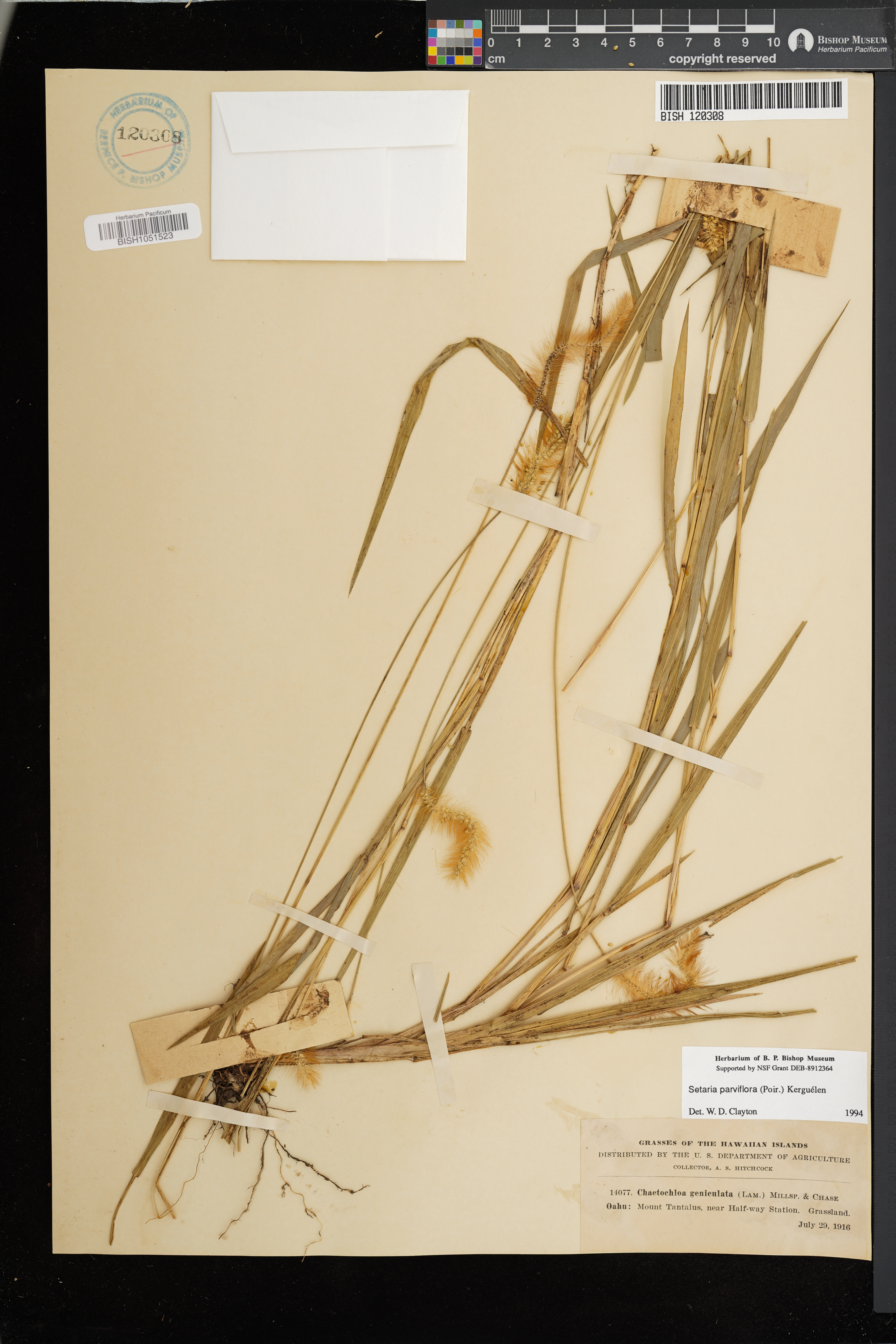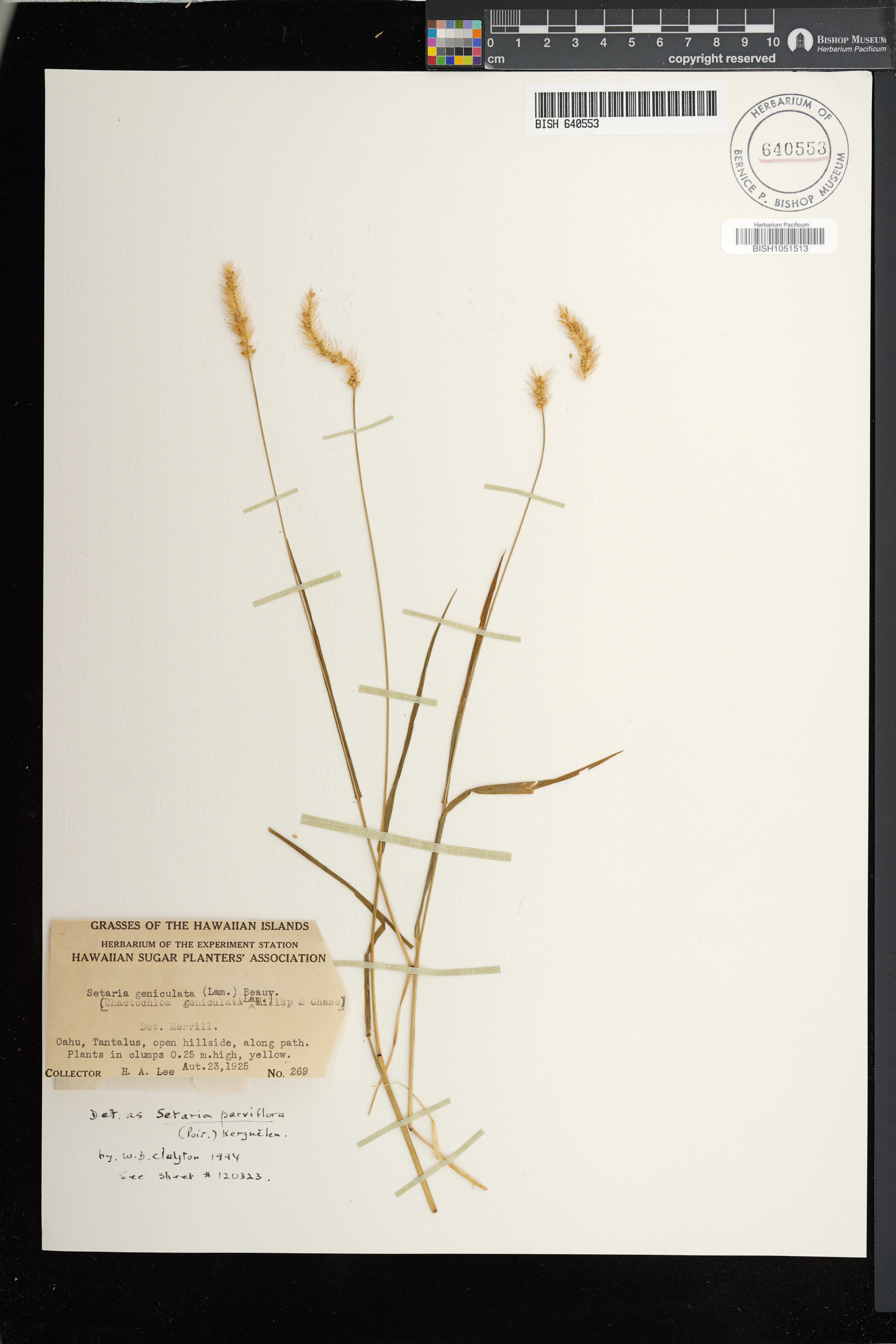 The plant was growing in the experimental tree planting site on the side of the Puna Trail. The soil in the area is crushed lava or cinder. The grass was growing in an area that is exposed to direct sunlight. |