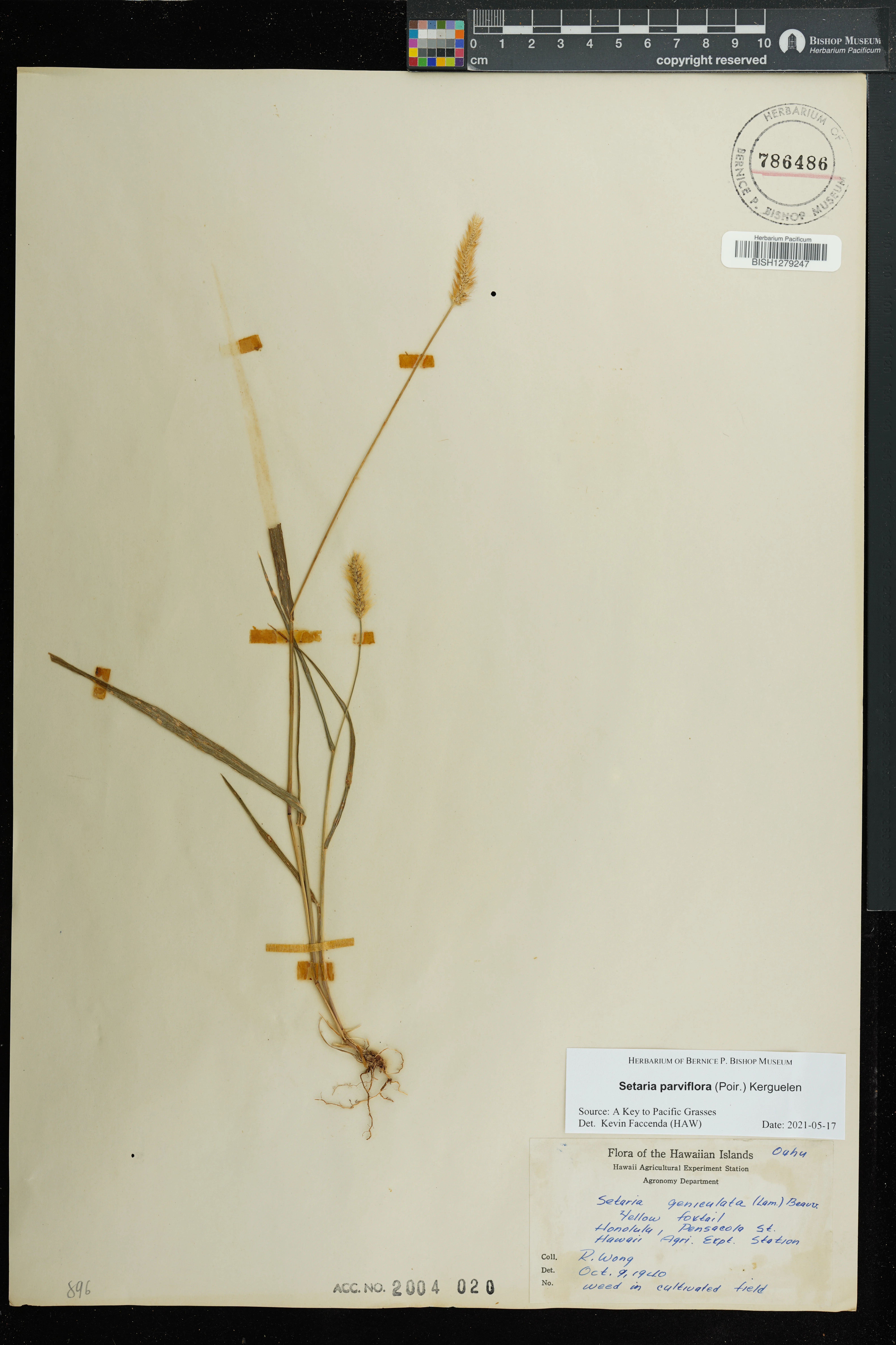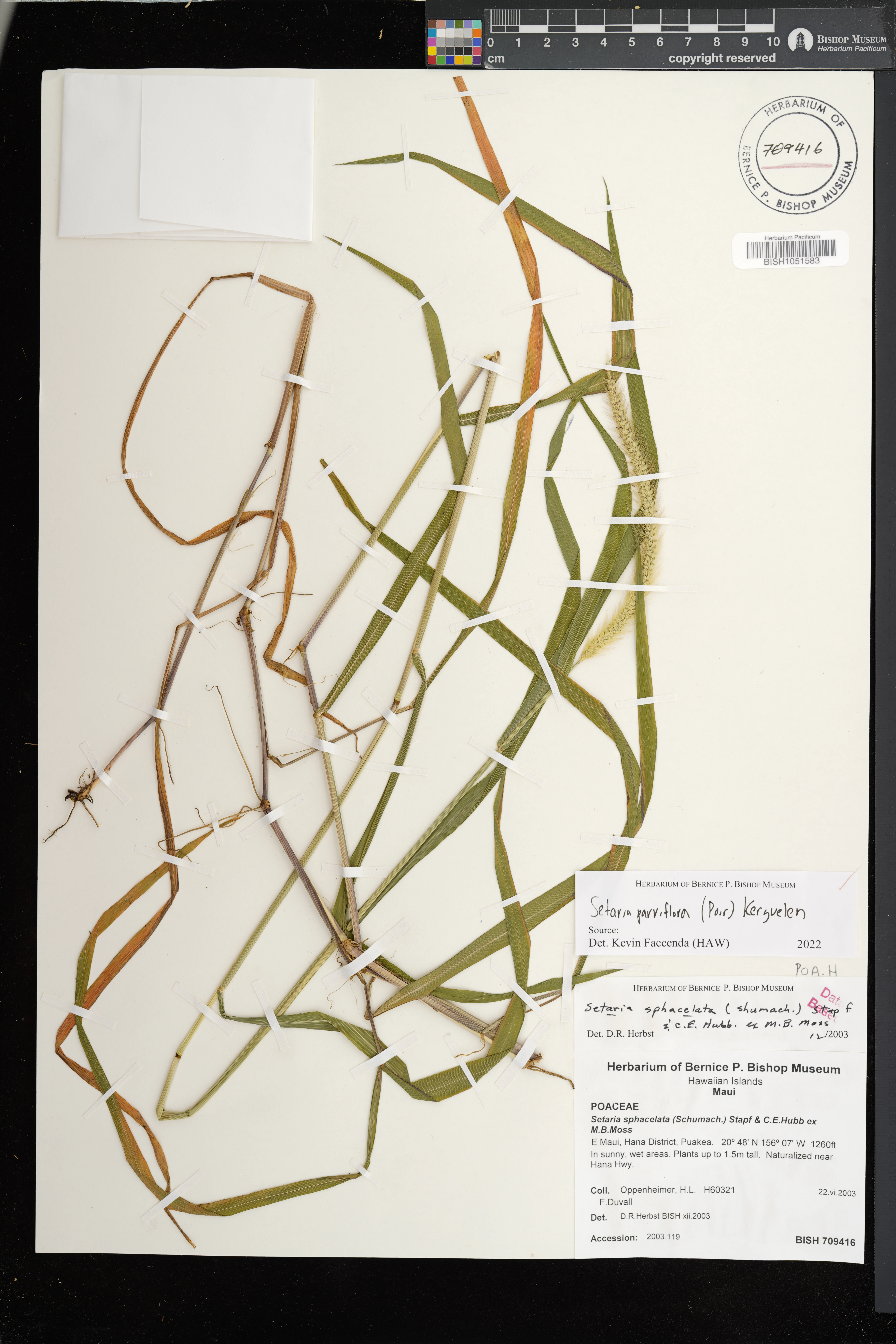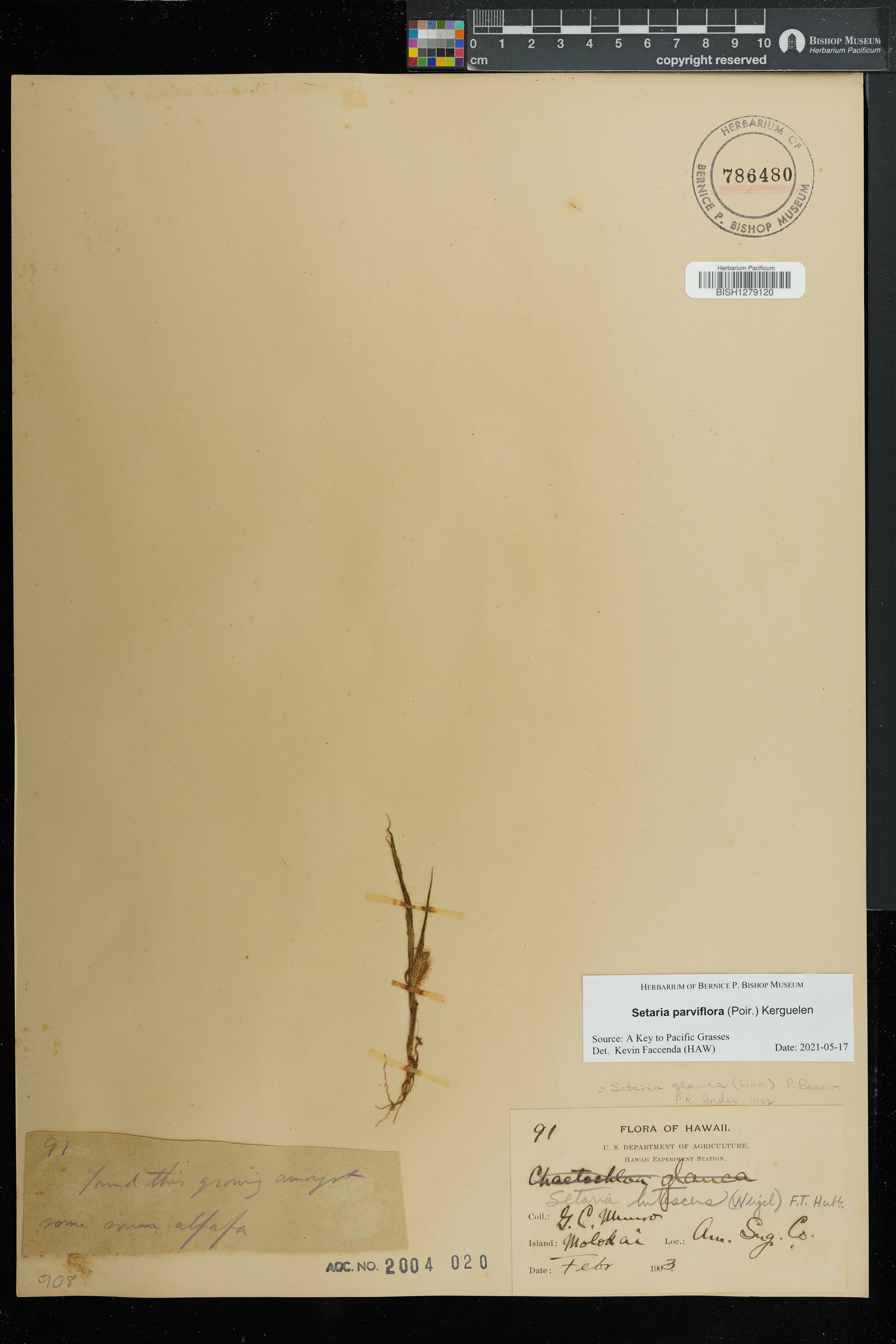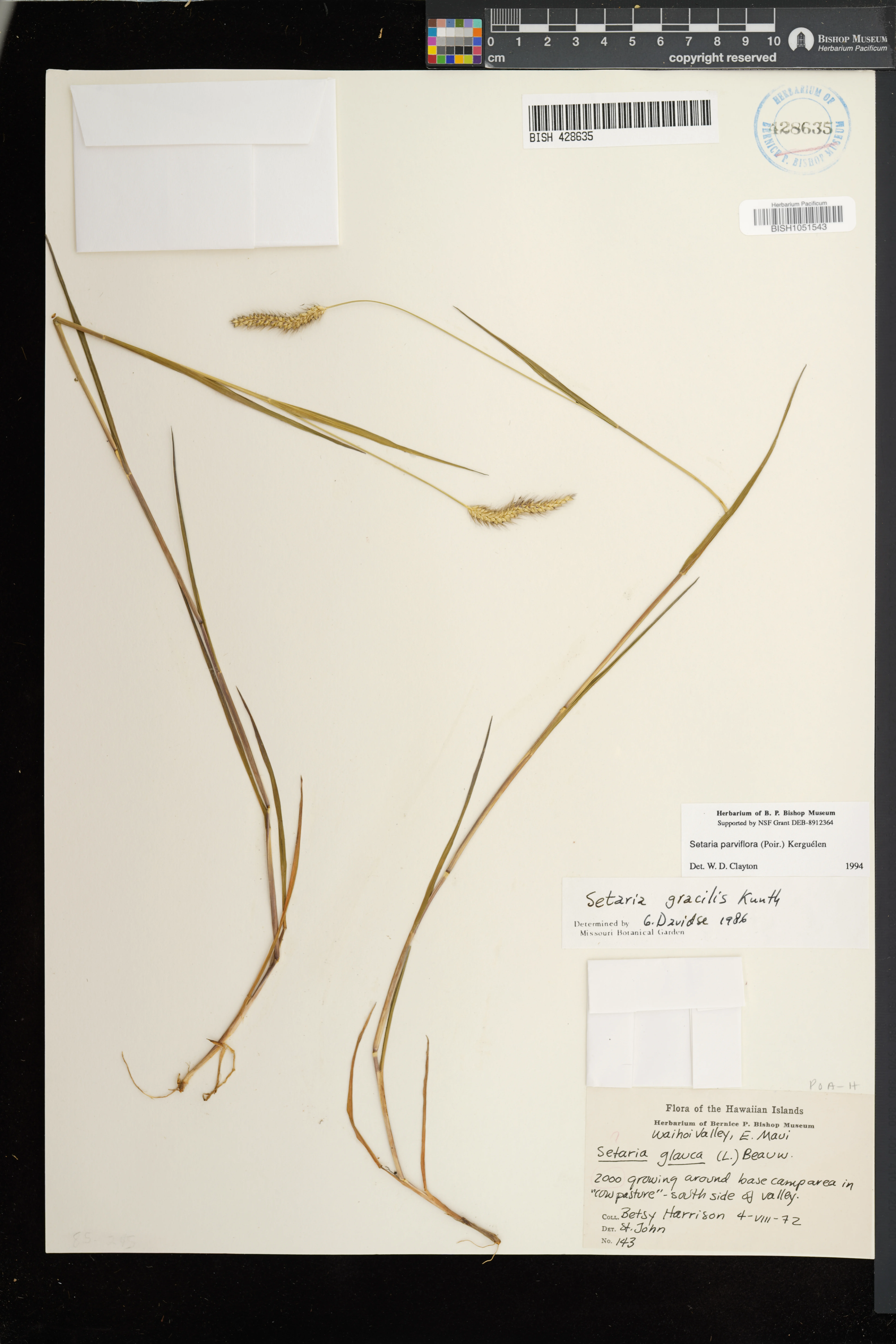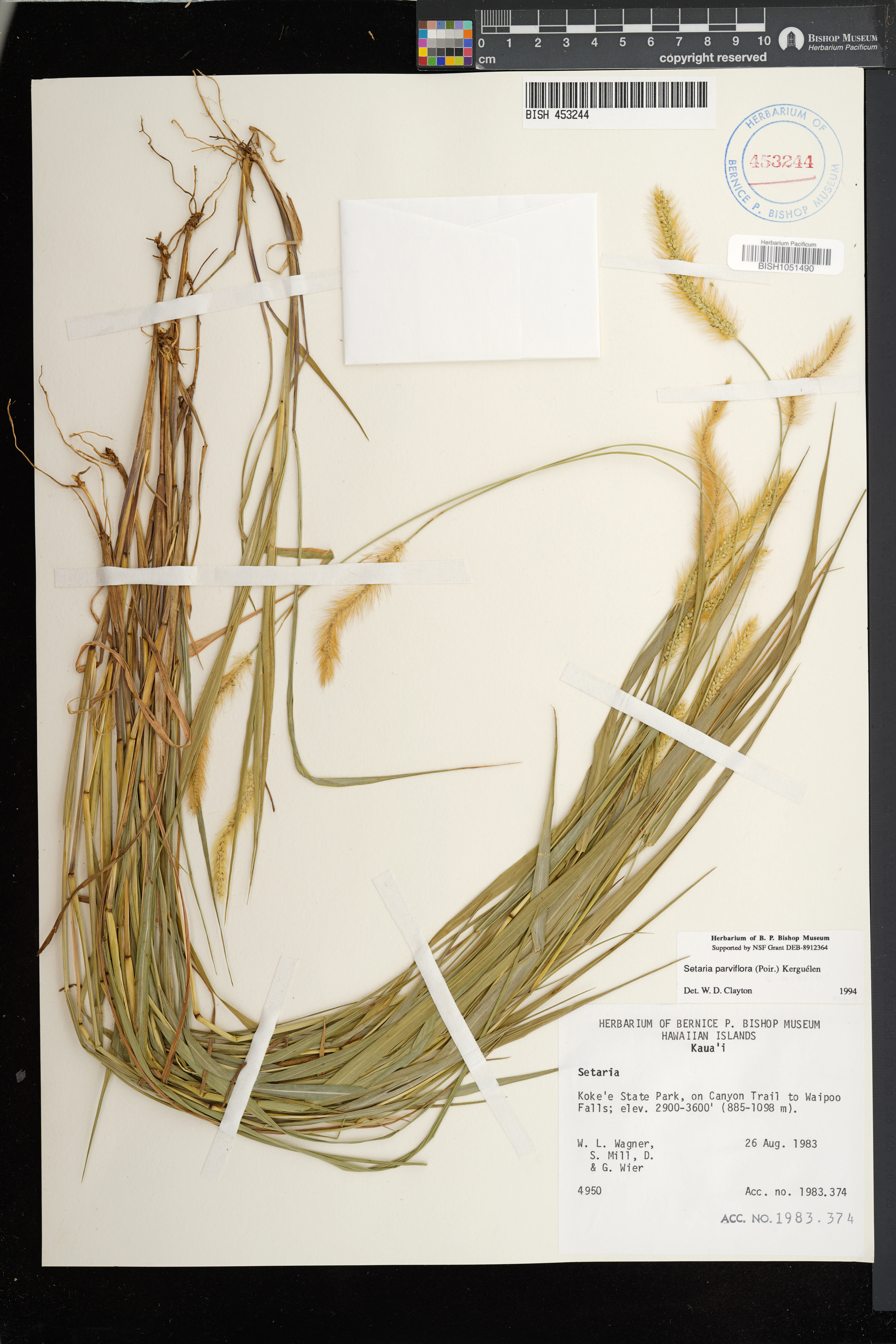 The plant was growing in the experimental tree planting site on the side of the Puna Trail. The soil in the area is crushed lava or cinder. The grass was growing in an area that is exposed to direct sunlight. |