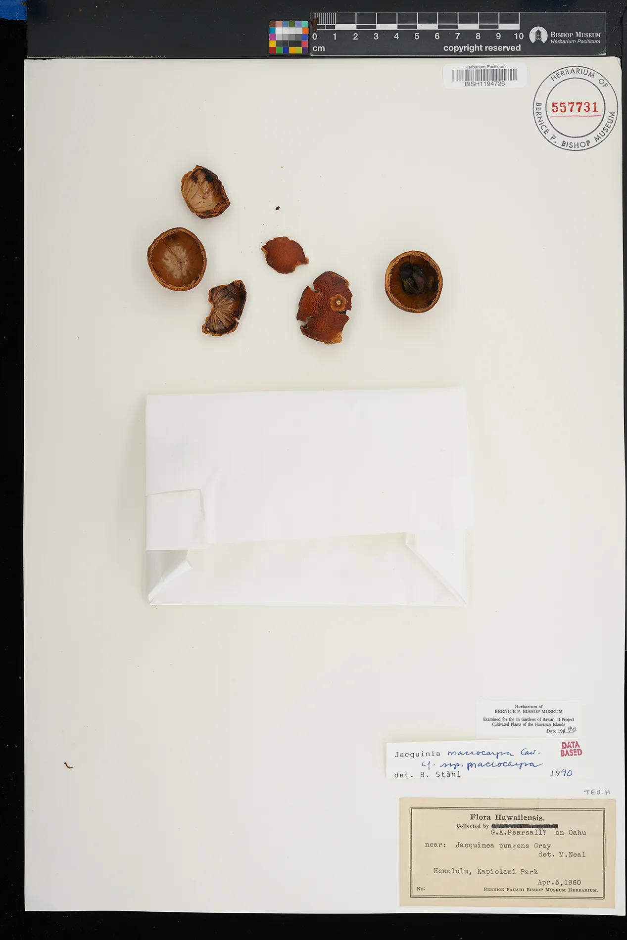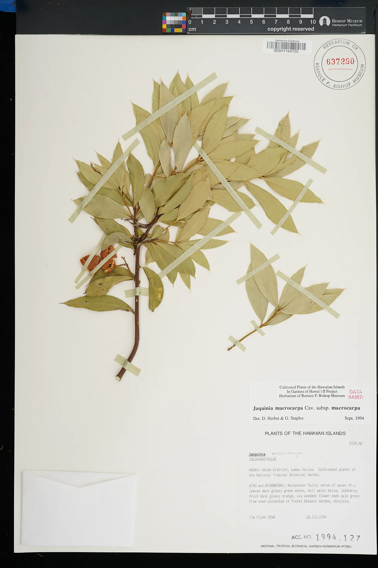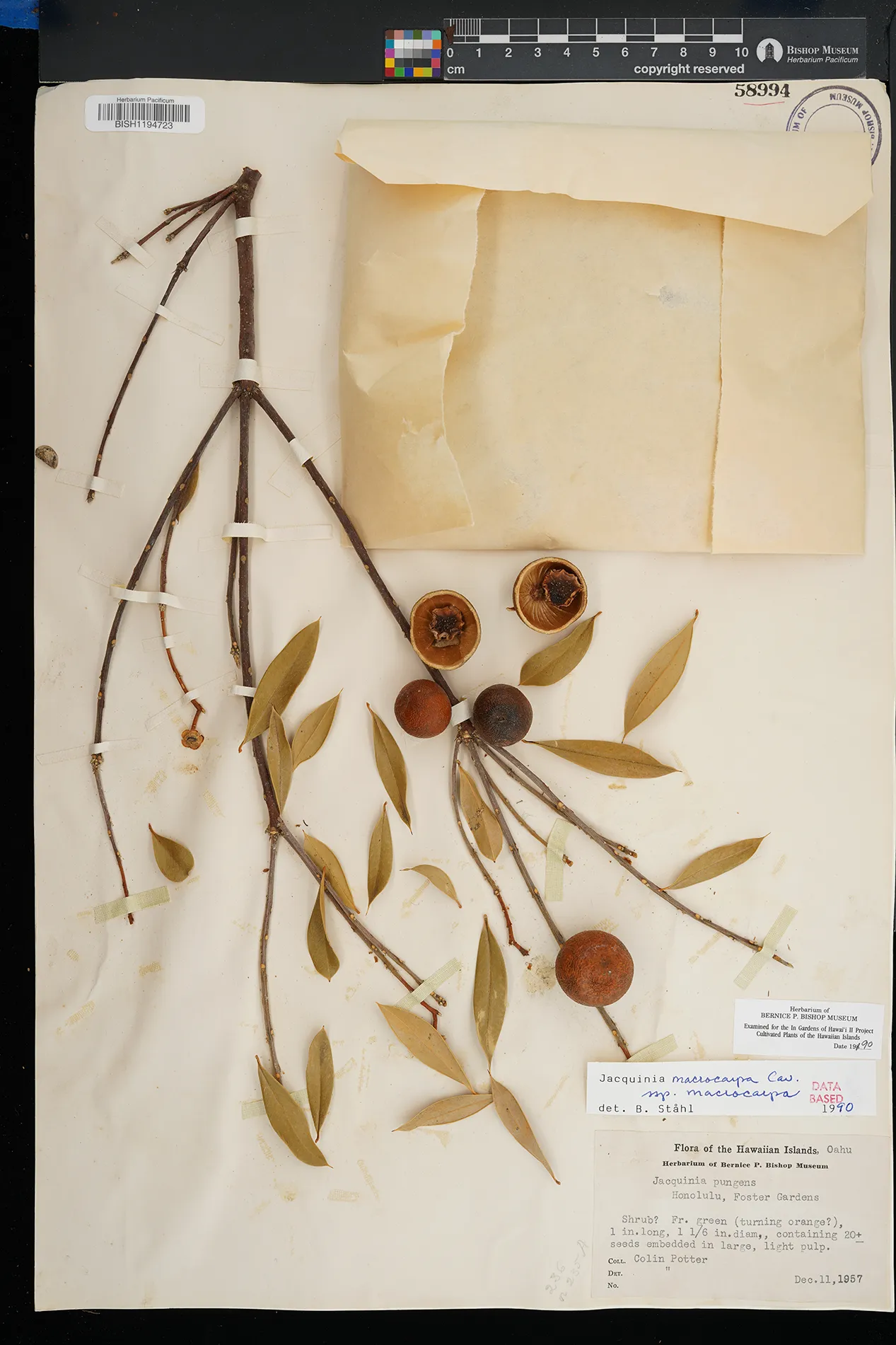 | 2 | Bonellia macrocarpa | (Cav.) B.Ståhl & Källersjö | honolulu, foster gardens | PRESERVED_SPECIMEN | potter, c. | Oahu | BISH | 12/11/1957 |