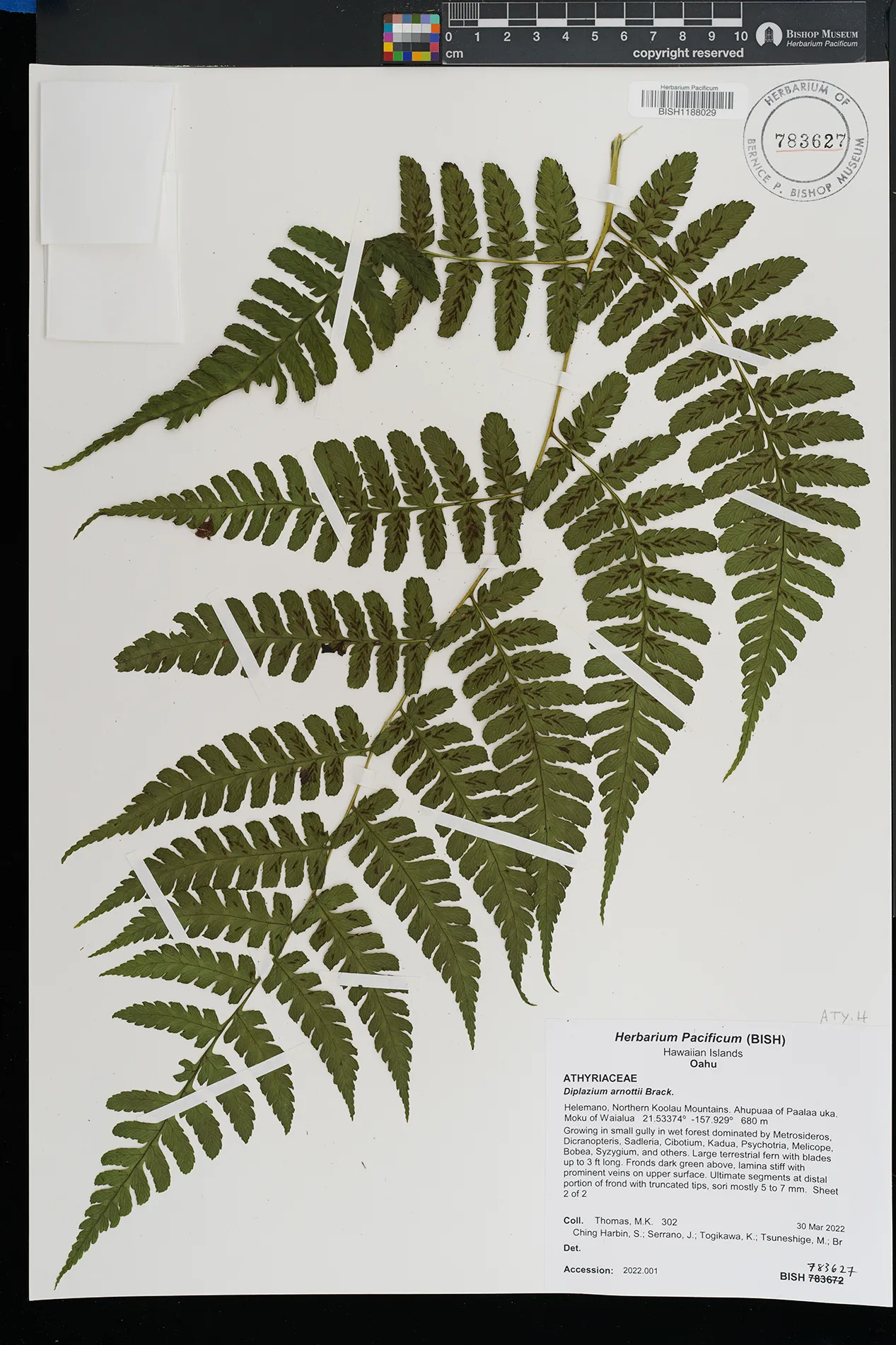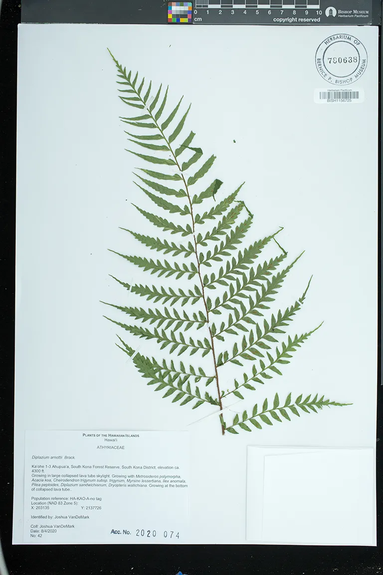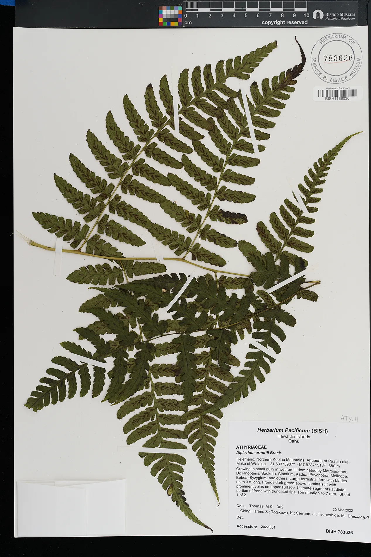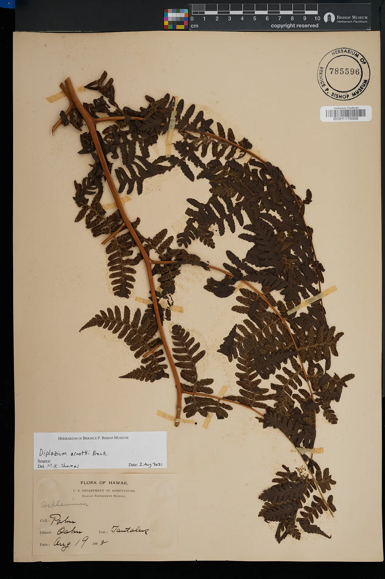 Kingdom: Viridiplantae Phylum: Pteridophyta Class/Clade: Polypodiopsida Order: Polypodiales Family: Athyriaceae Genus: Diplazium