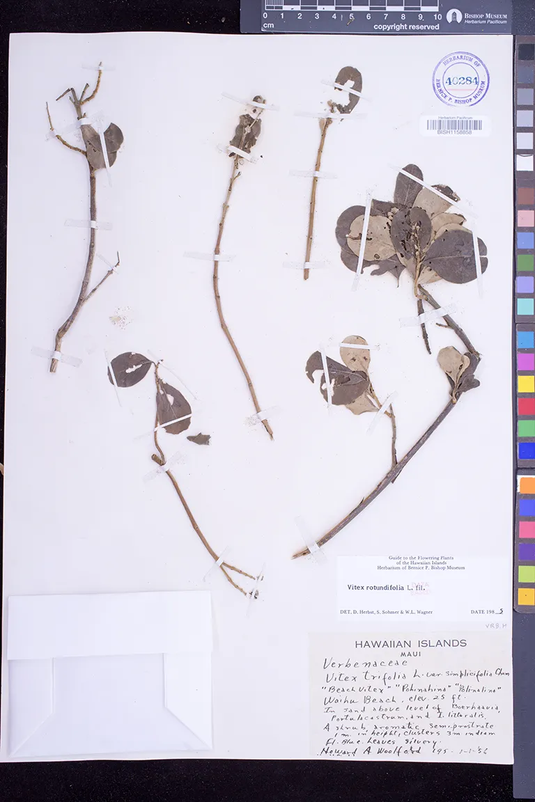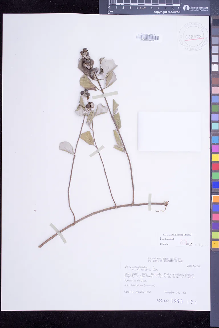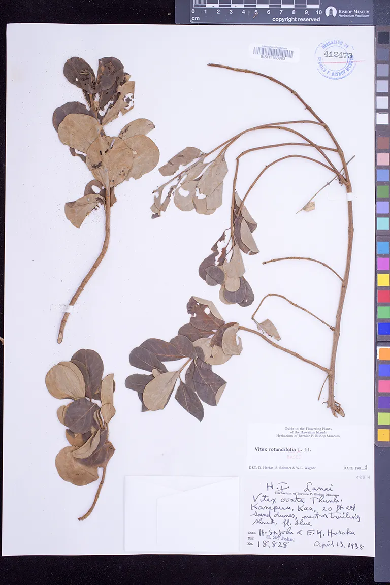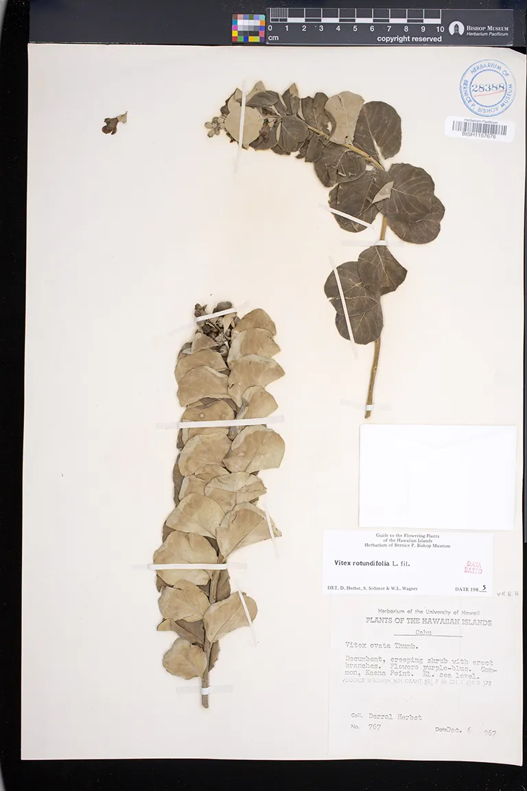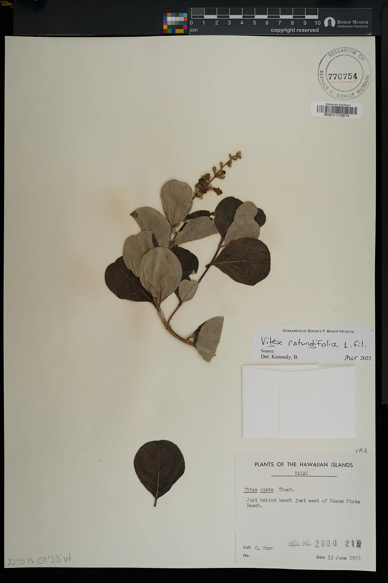 • Vitex rotundifolia can be grown from cuttings taken when the plants are not in flower or fruit. NTBG recommends tip cuttings 4 inches long with at least 2 nodes and removing the leaves from the cuttings. Criley notes that they should be non-flowering terminals.