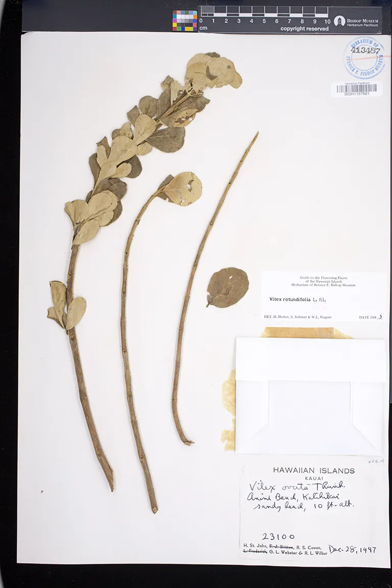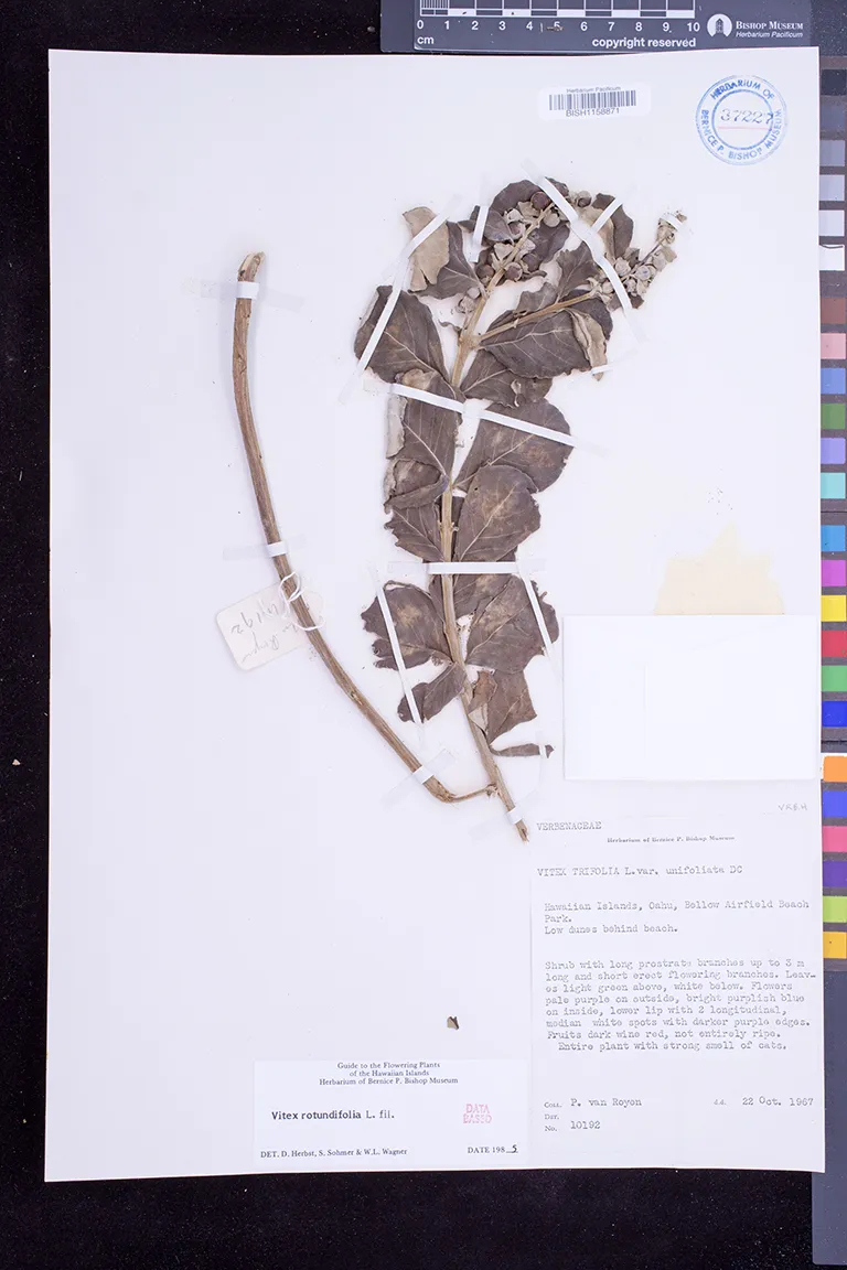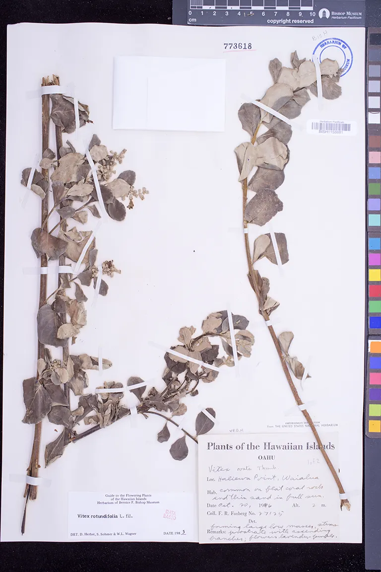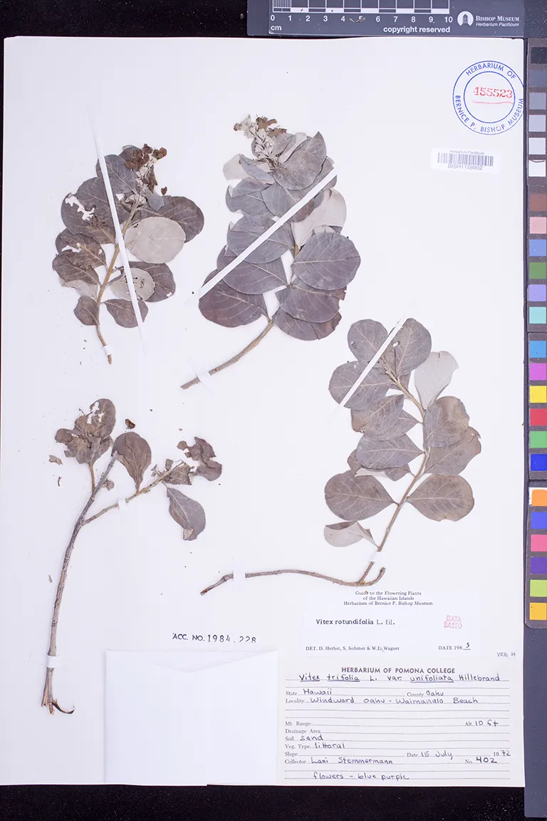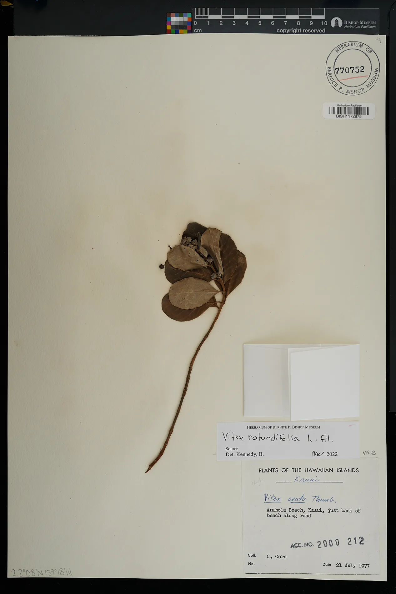 • Vitex rotundifolia can be grown from cuttings taken when the plants are not in flower or fruit. NTBG recommends tip cuttings 4 inches long with at least 2 nodes and removing the leaves from the cuttings. Criley notes that they should be non-flowering terminals.