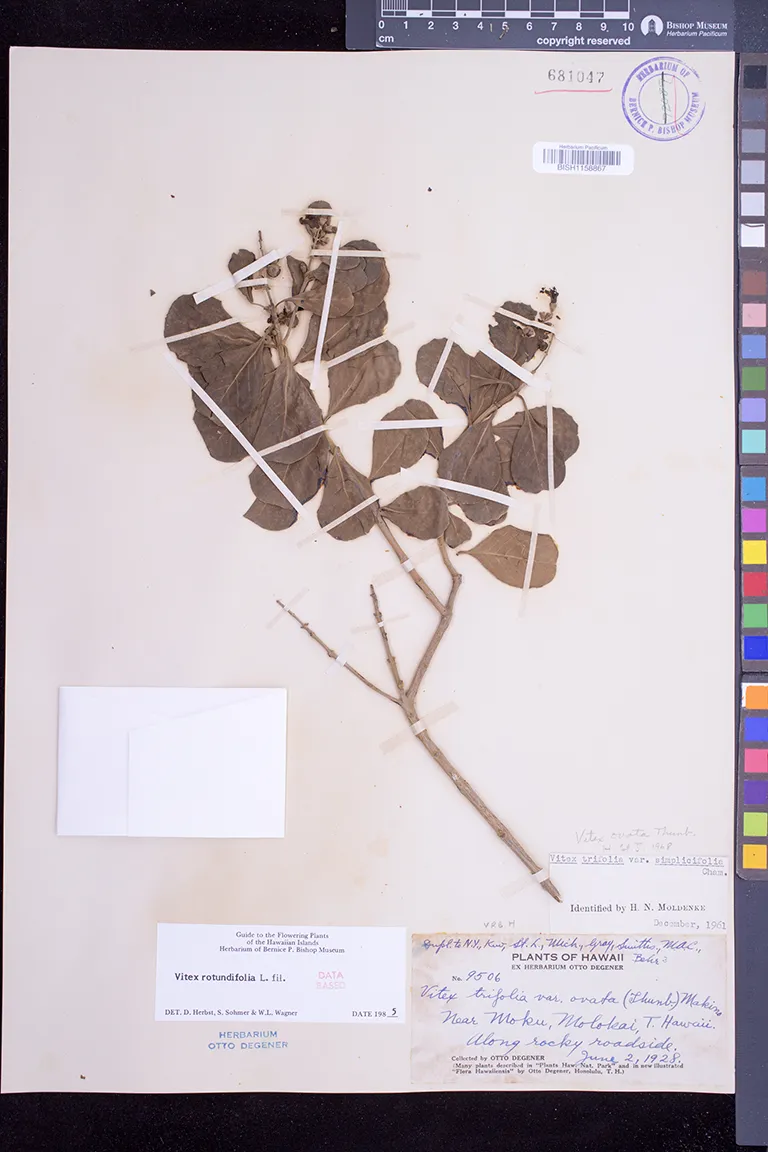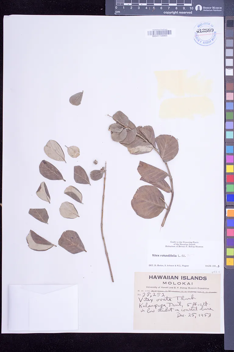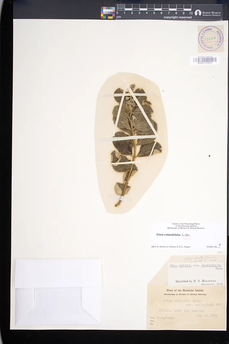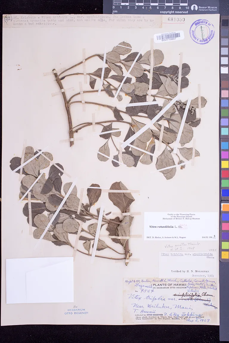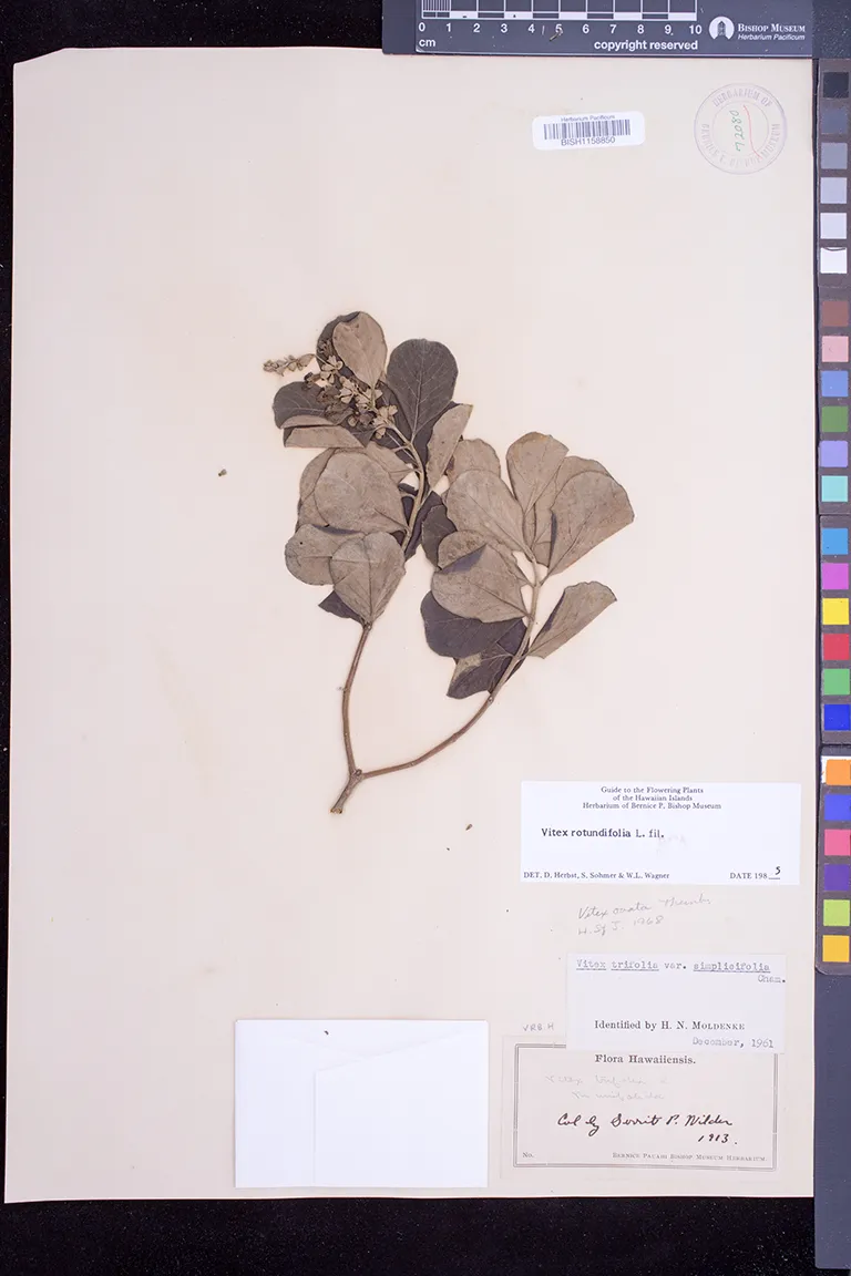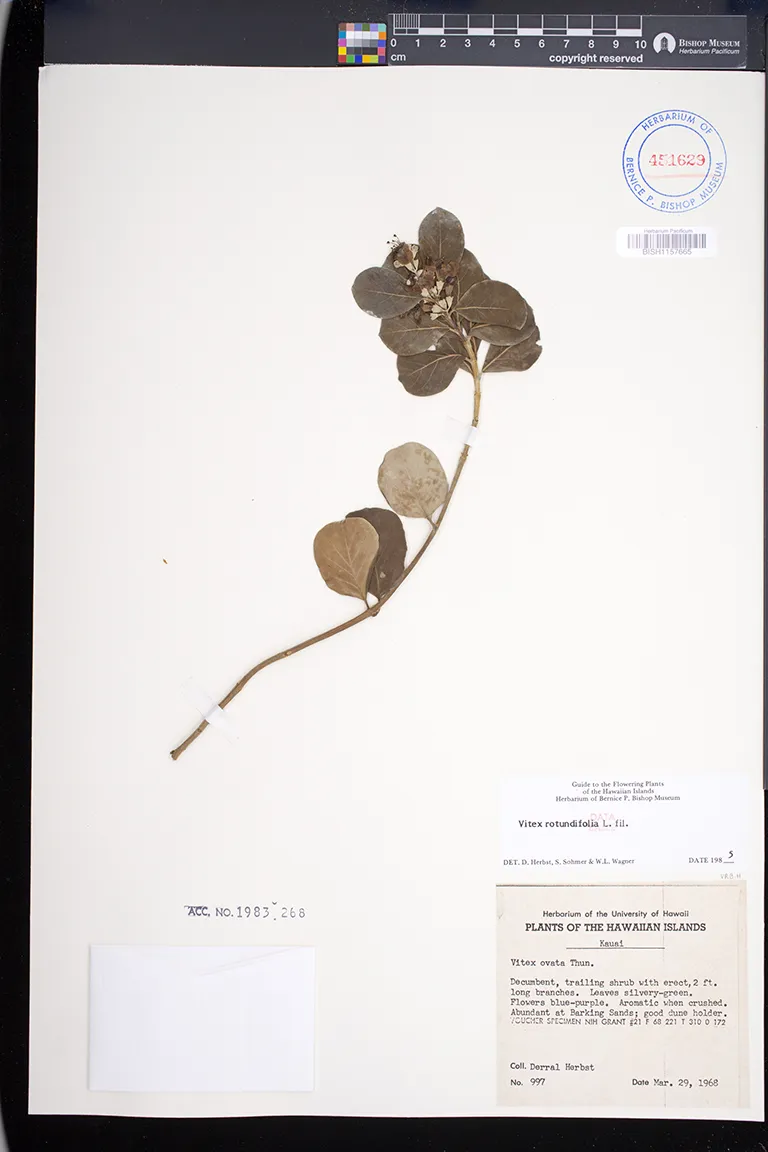 • Vitex rotundifolia can be grown from cuttings taken when the plants are not in flower or fruit. NTBG recommends tip cuttings 4 inches long with at least 2 nodes and removing the leaves from the cuttings. Criley notes that they should be non-flowering terminals.