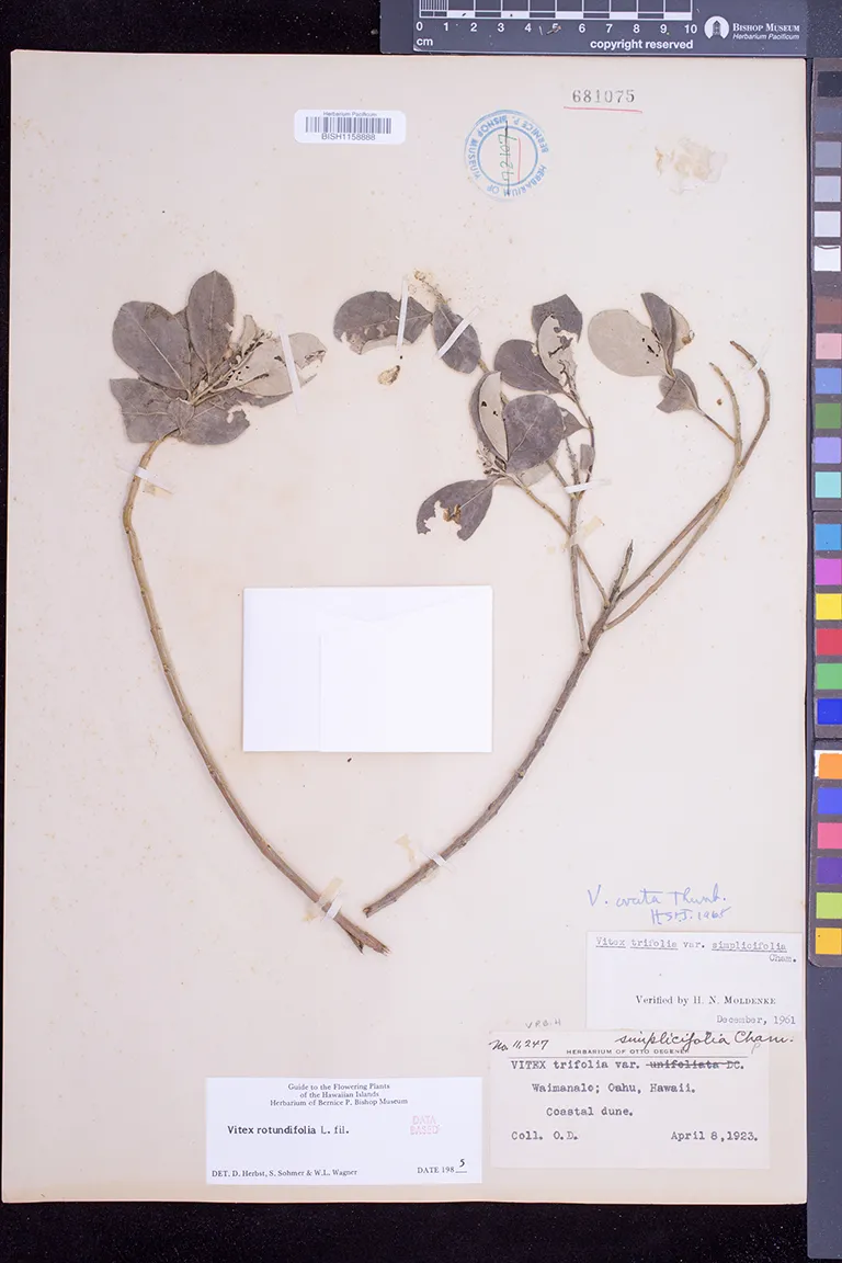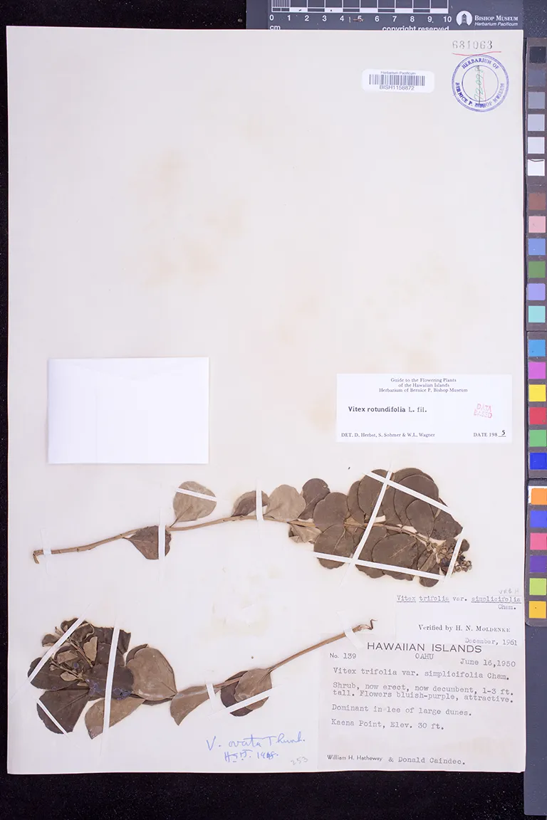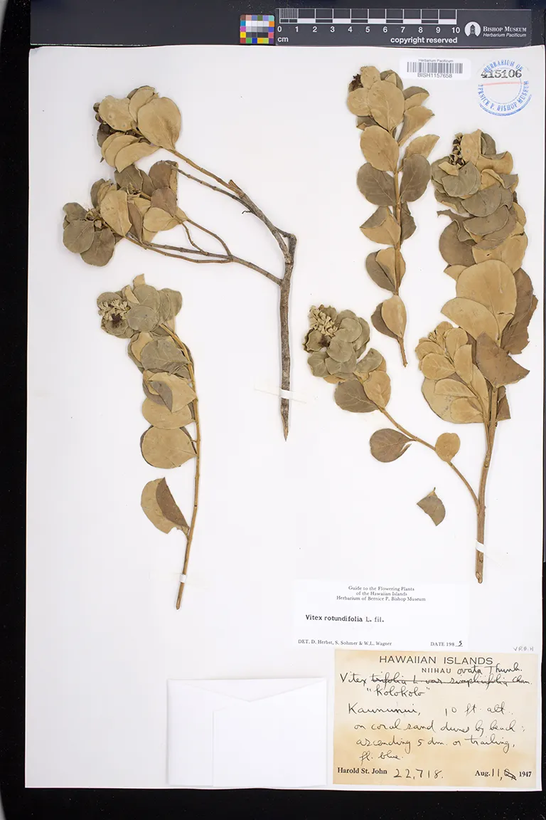 beach vitex, hinahina kolo, kolokolo kahakai, mānawanawa [mawanawana], pōhinahina [pohinahina], pōlinalina [polinalina]