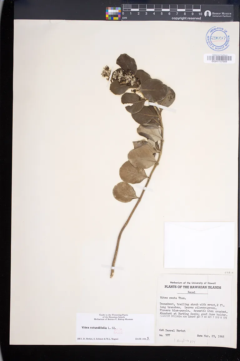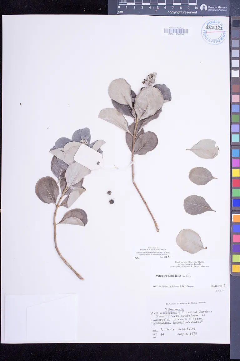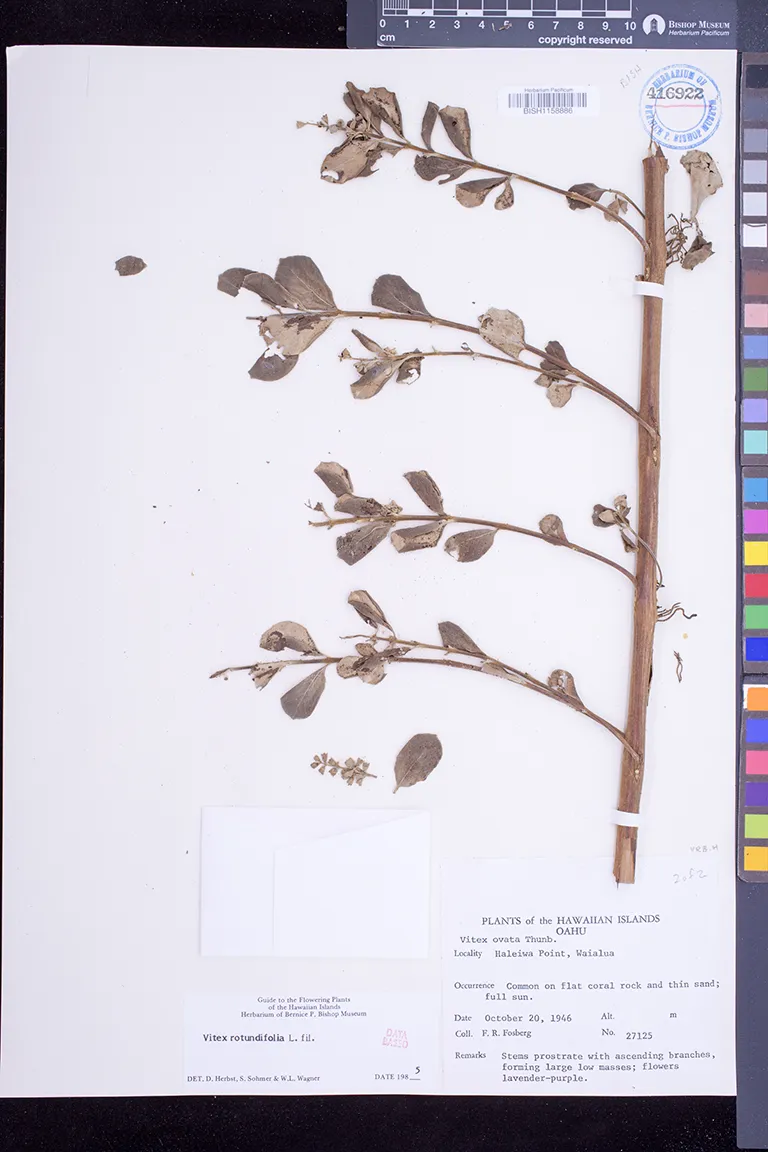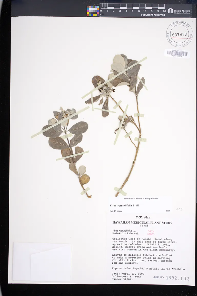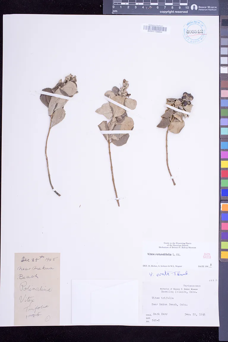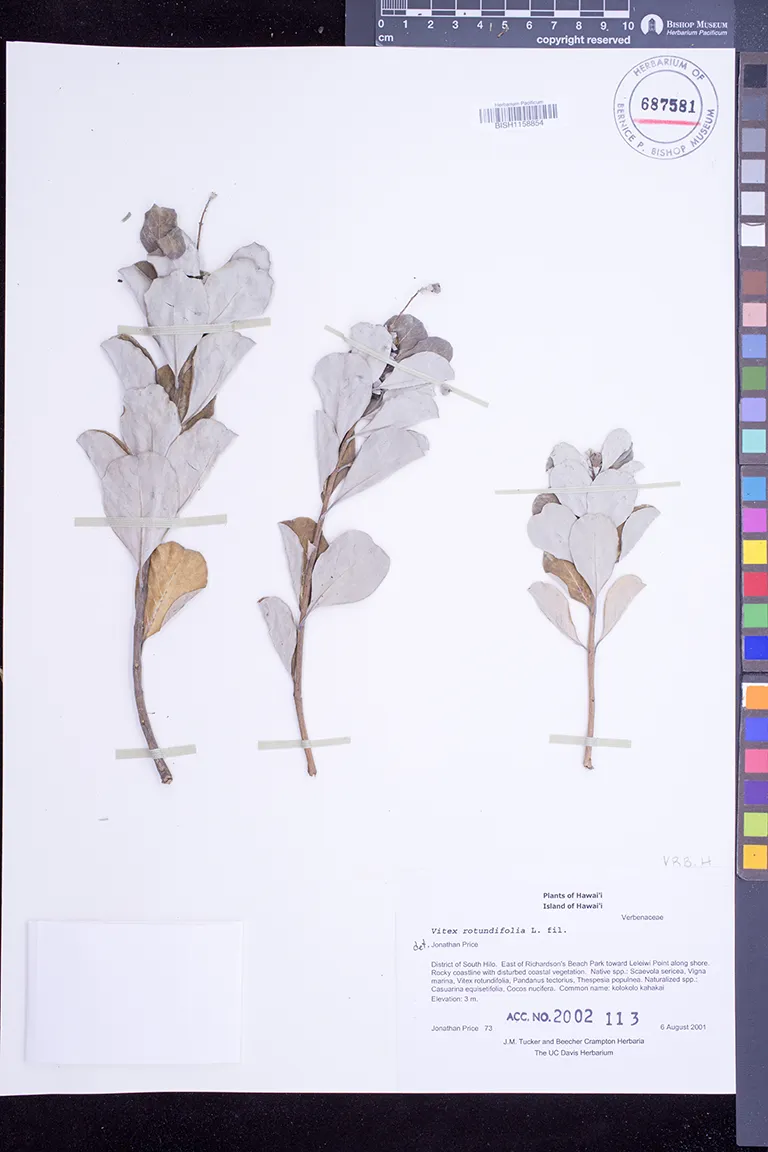 • also known as Beach vitex, kolokolo kahakai, hinahina kolo, mānawanawa, māwana-wono, pōhinahina, pōlinalina