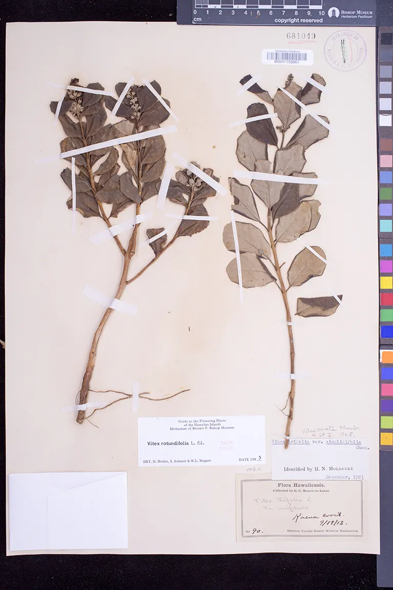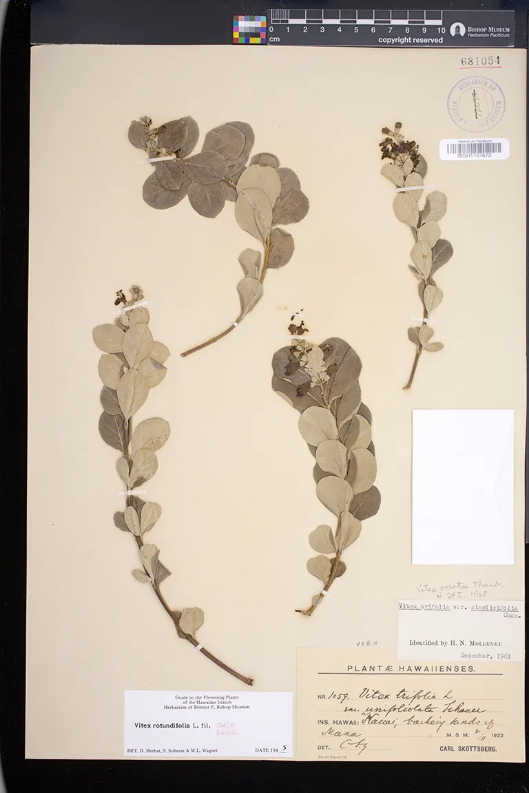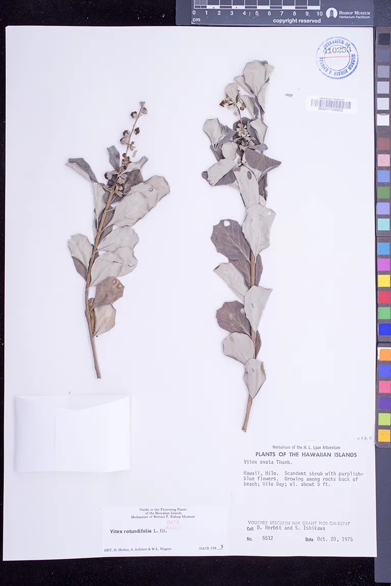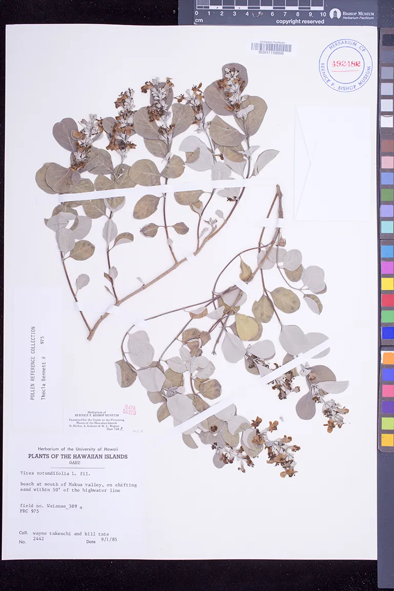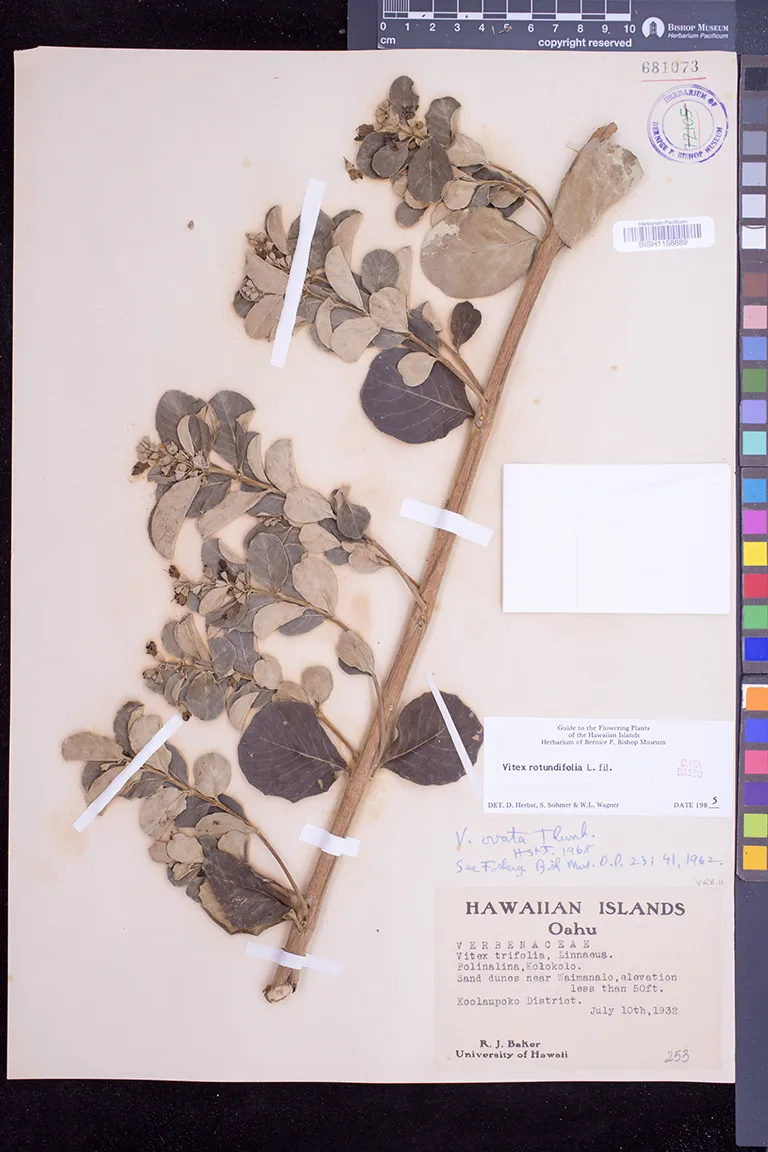 • also known as Beach vitex, kolokolo kahakai, hinahina kolo, mānawanawa, māwana-wono, pōhinahina, pōlinalina
