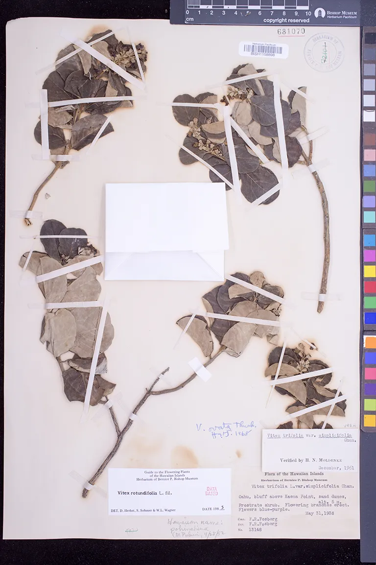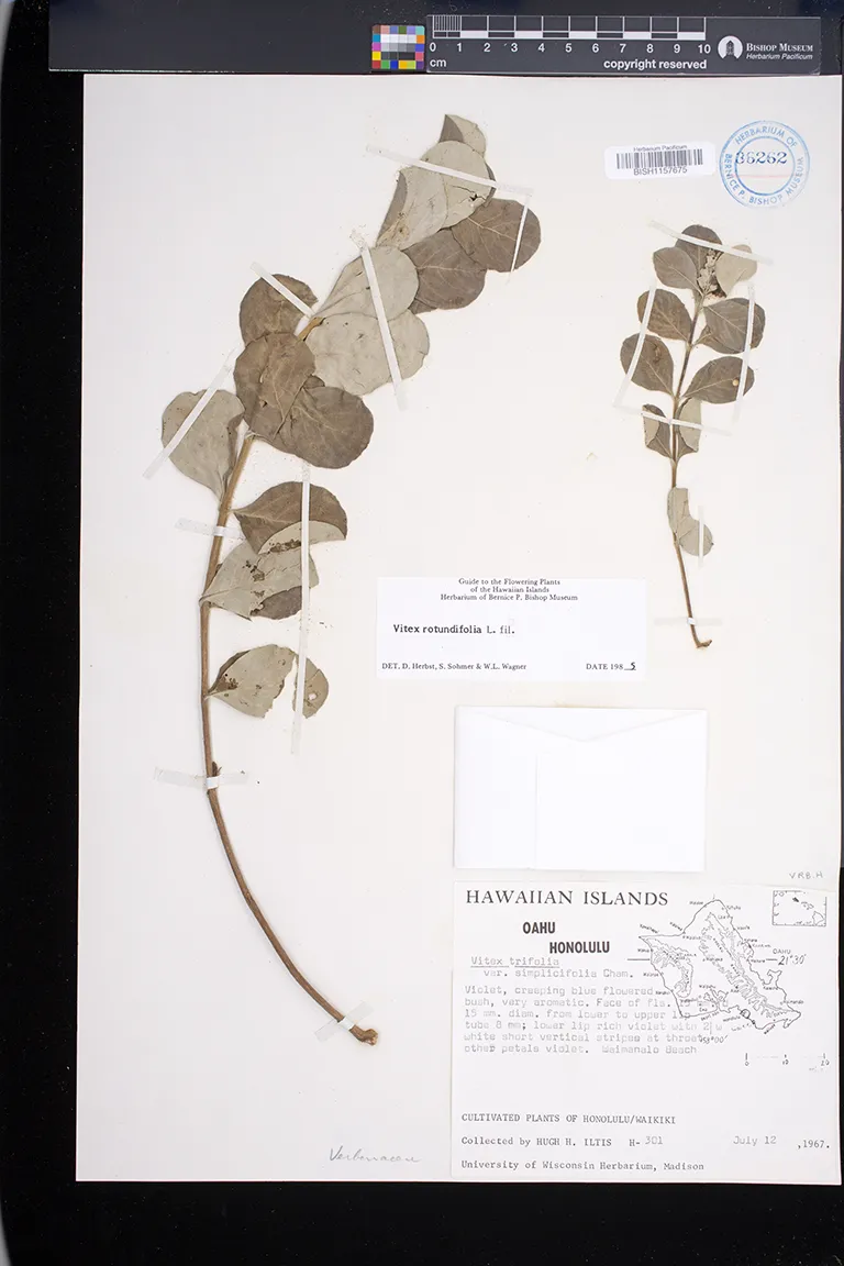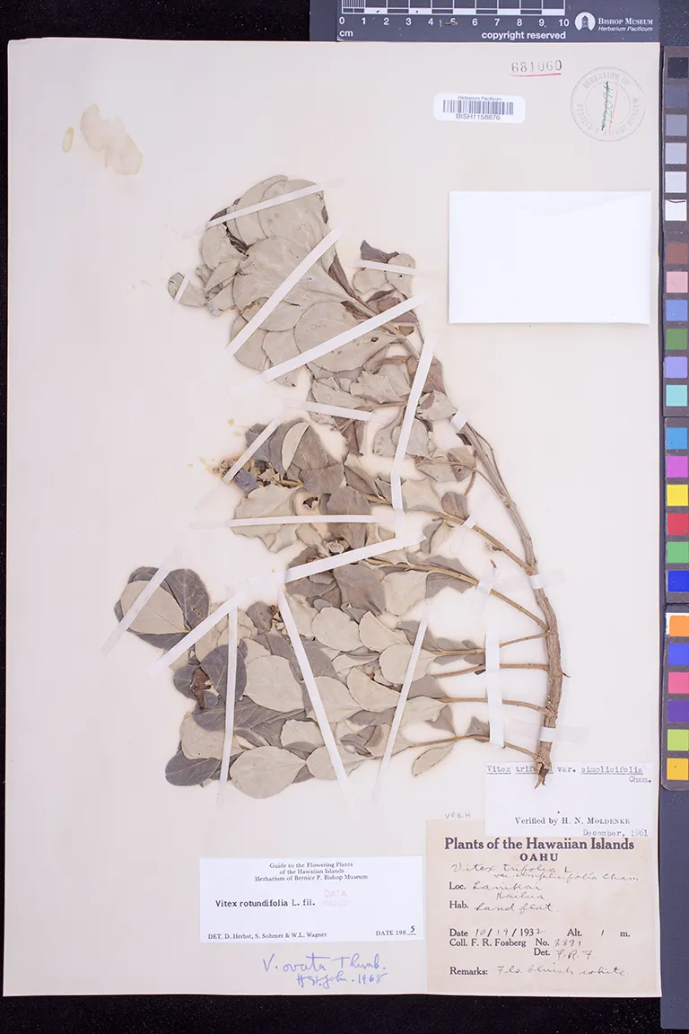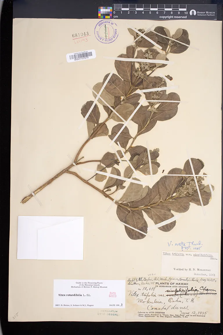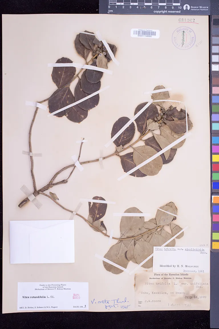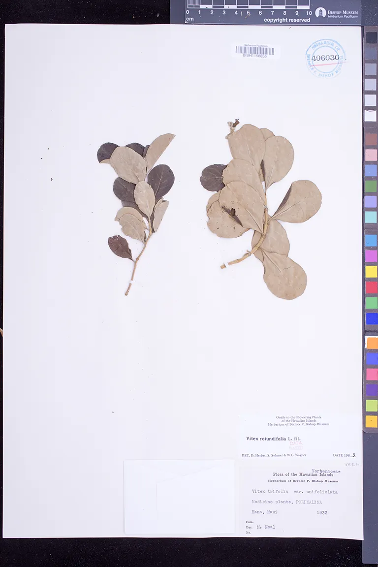 • also known as Beach vitex, kolokolo kahakai, hinahina kolo, mānawanawa, māwana-wono, pōhinahina, pōlinalina