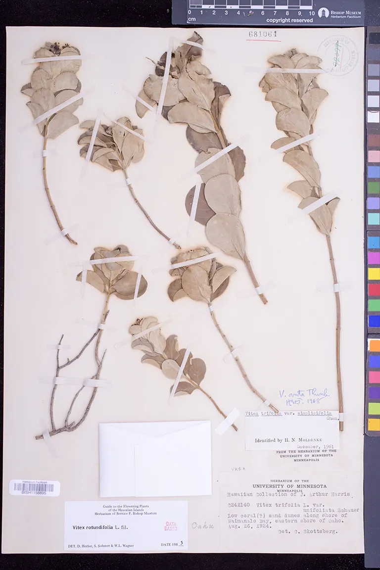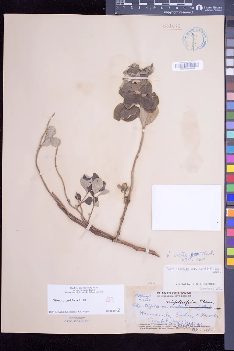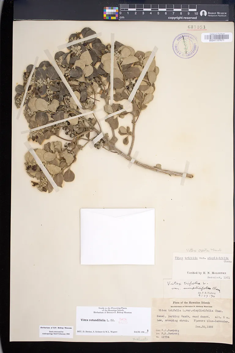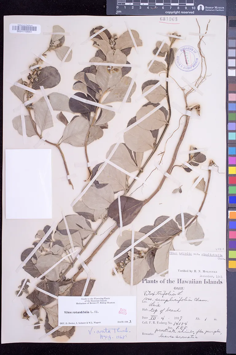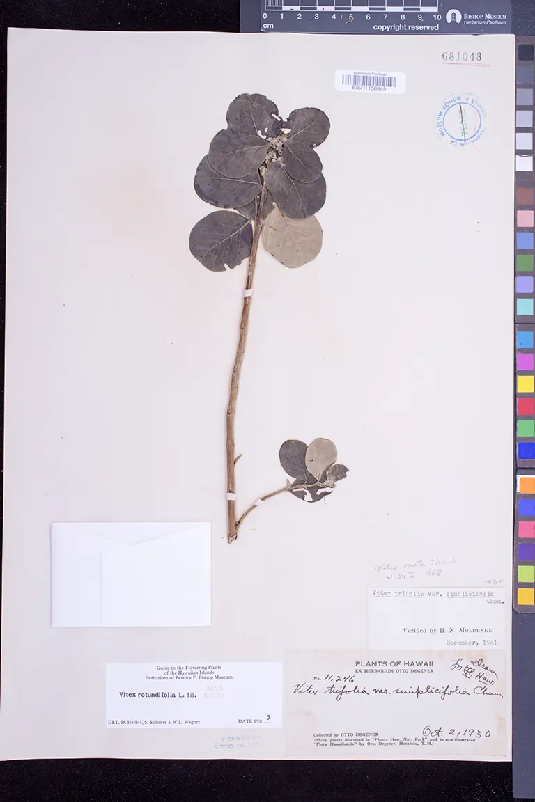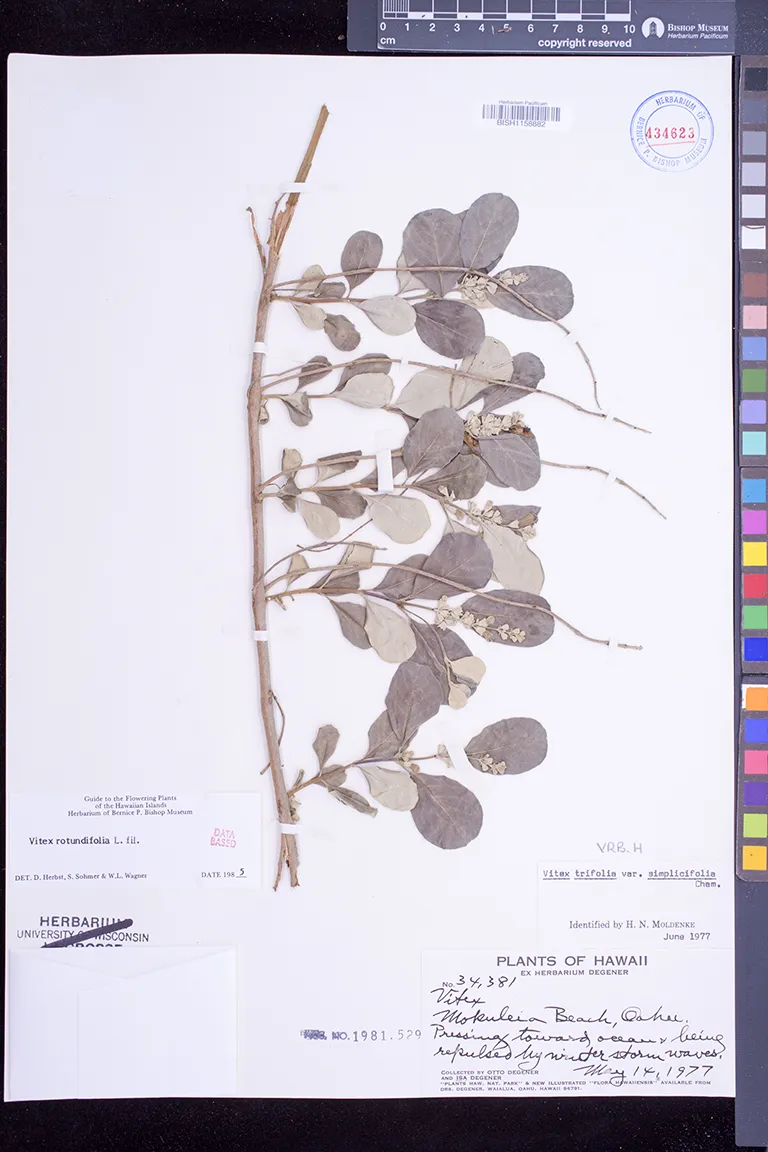 • also known as Beach vitex, kolokolo kahakai, hinahina kolo, mānawanawa, māwana-wono, pōhinahina, pōlinalina