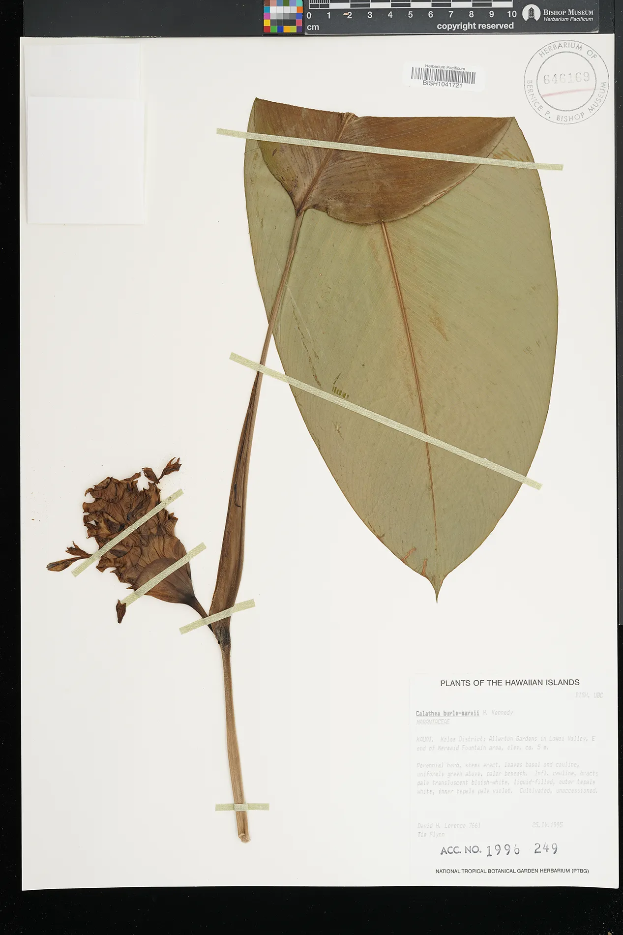8 Goeppertia burle-marxii (H.Kenn.) Borchs. & S.Suárez lyon arboretum PRESERVED_SPECIMEN kirchoff, b.k. collector number: 89-201 Oahu BISH 6/10/1991