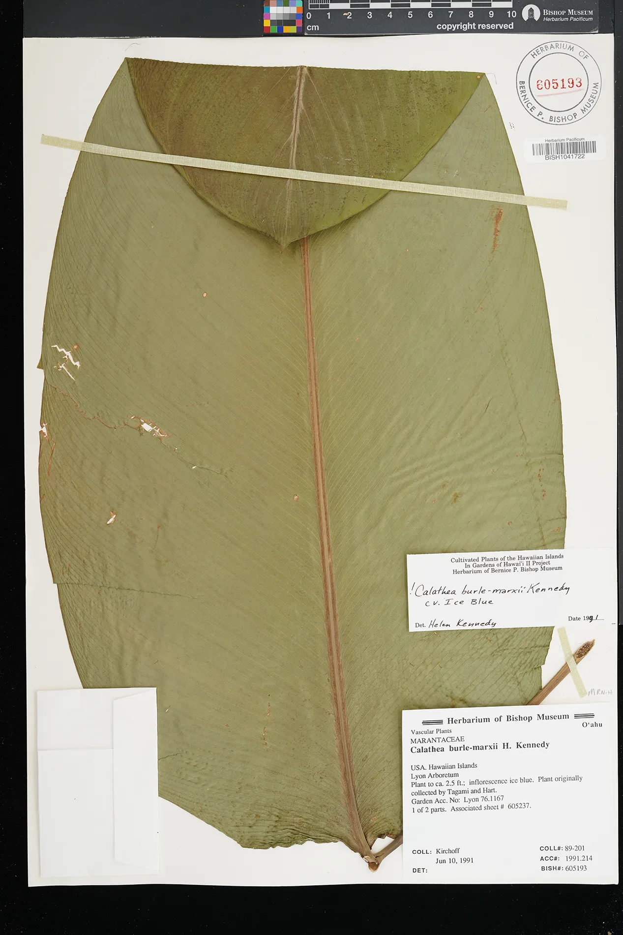 6 Goeppertia burle-marxii (H.Kenn.) Borchs. & S.Suárez Lyon Arboretum PRESERVED_SPECIMEN Kirchoff, B.K. 89-201 Oahu BISH 6/10/1991