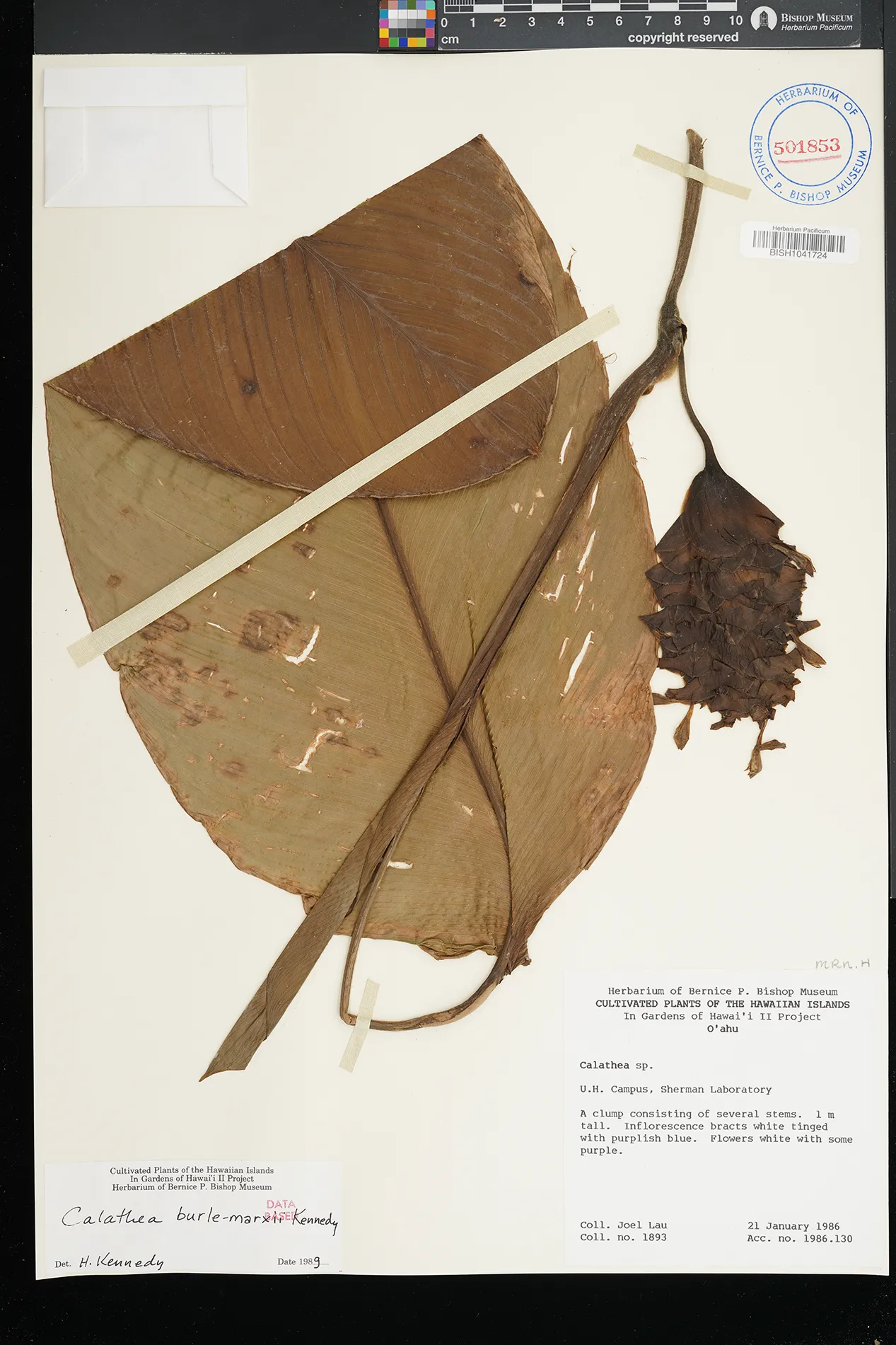 7 Goeppertia burle-marxii (H.Kenn.) Borchs. & S.Suárez honolulu: manoa valley; university of hawaii manoa campua; sharman laboratory PRESERVED_SPECIMEN lau, j. collector number: 1893 Oahu BISH 1/21/1986