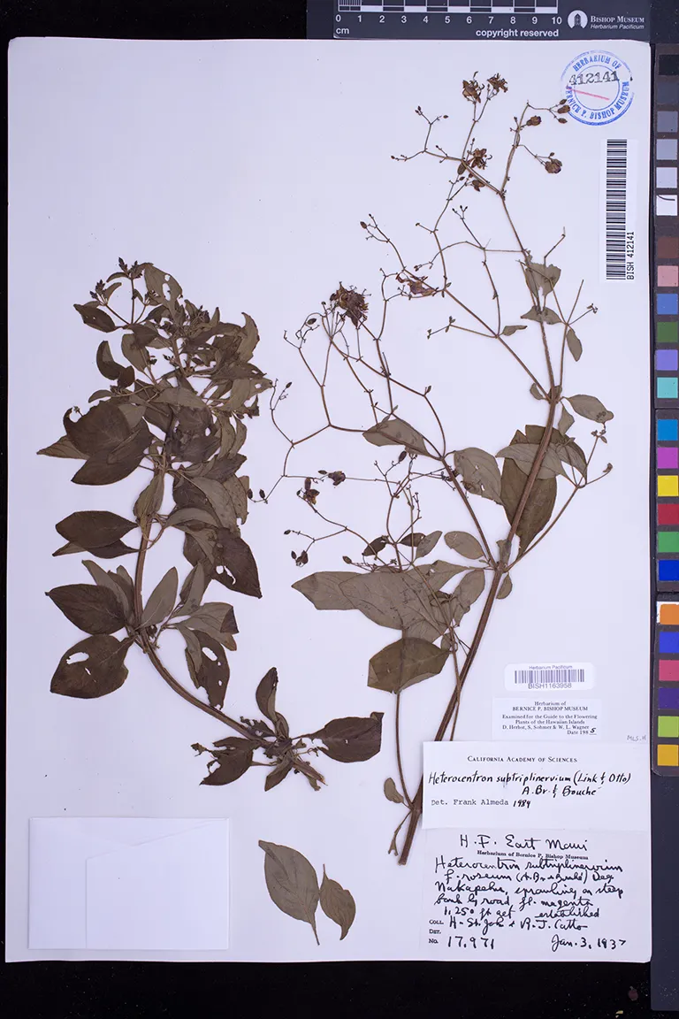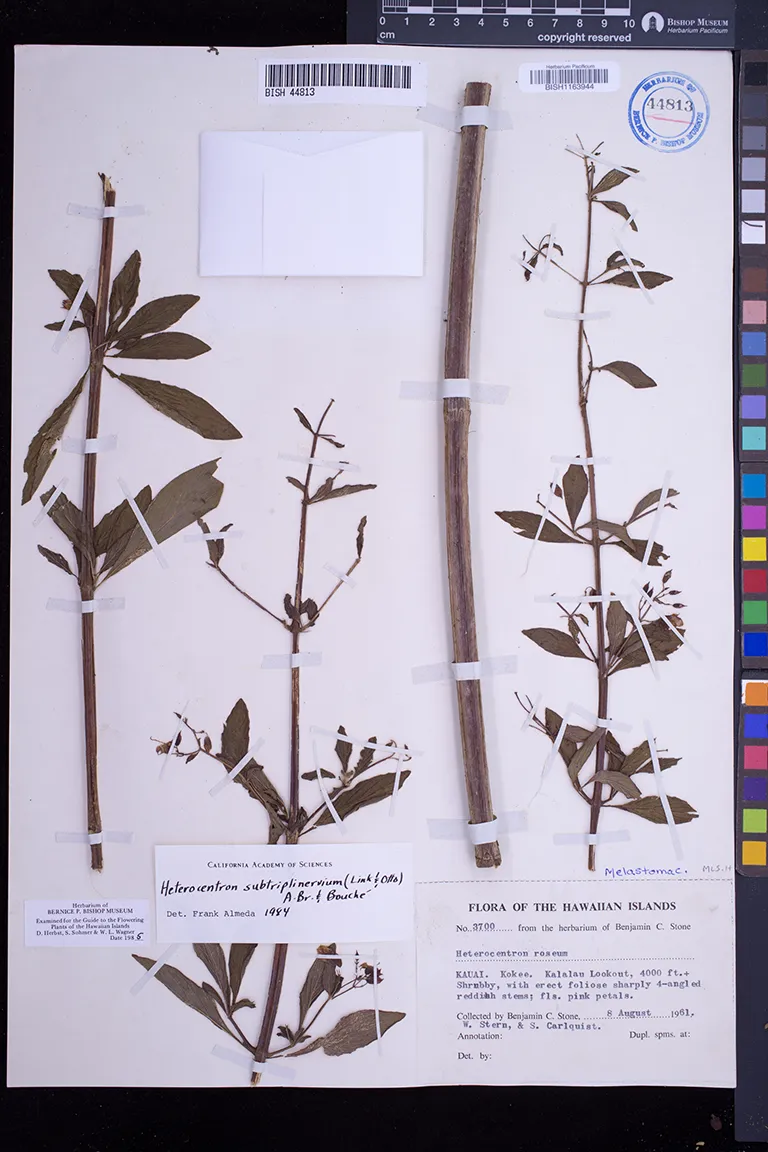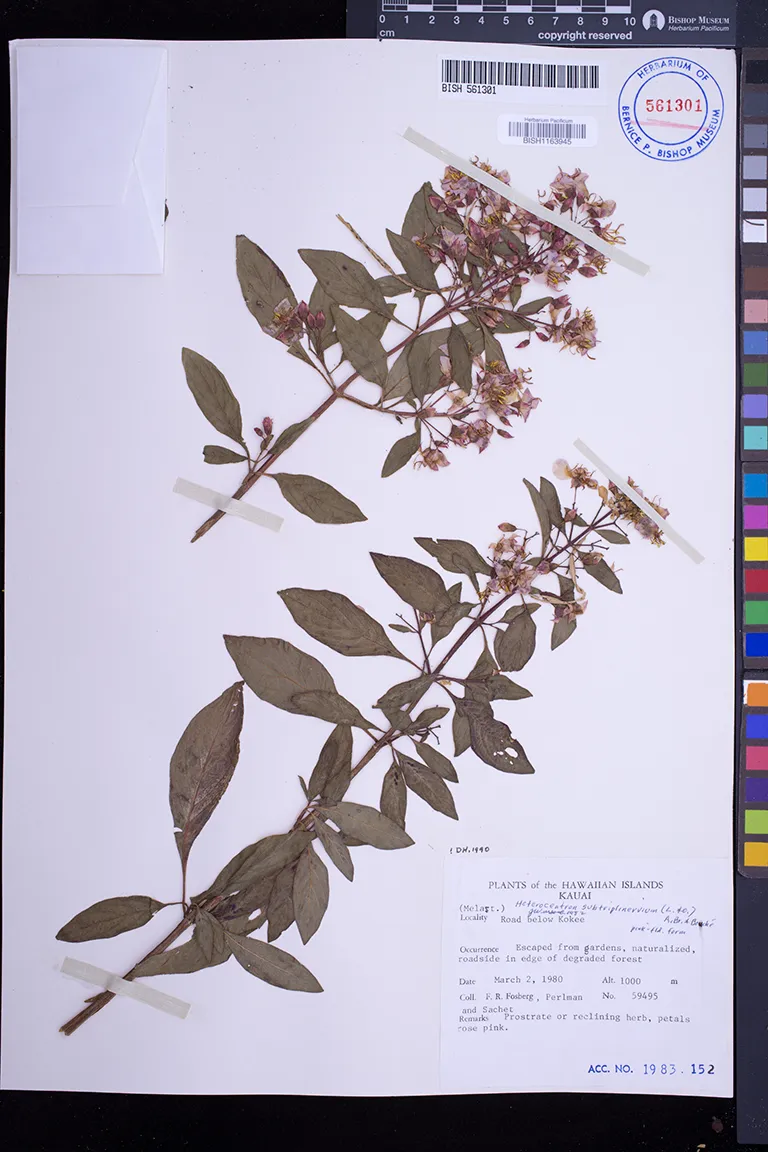 With roadside weeds bordering on wet Metrosideros-Cibotium forest. |