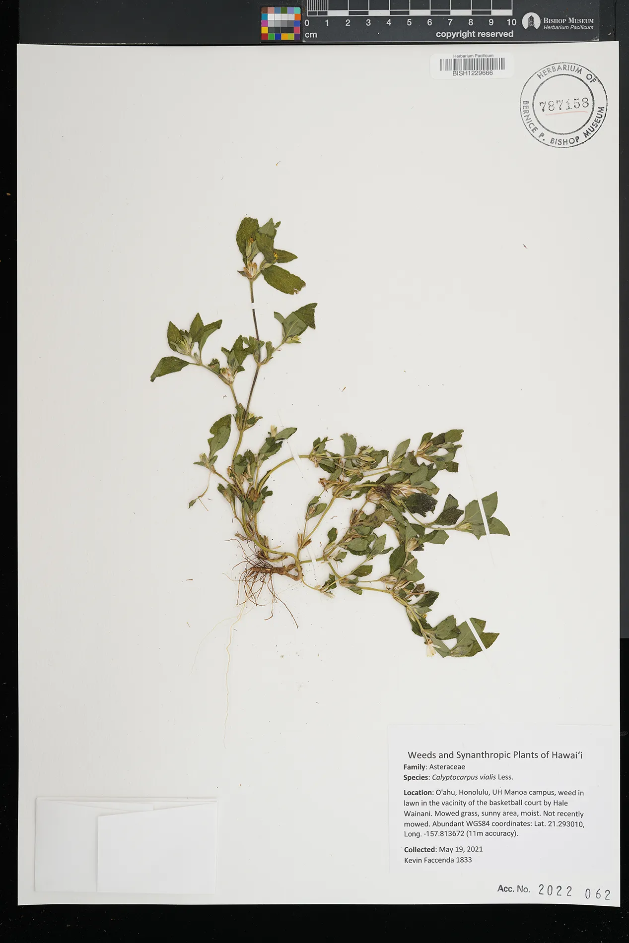 Makes up majority of weedy area in parking lot. Moist compact soil. Growing with Paspalum fimbriatum and Synedrella nodiflora. |