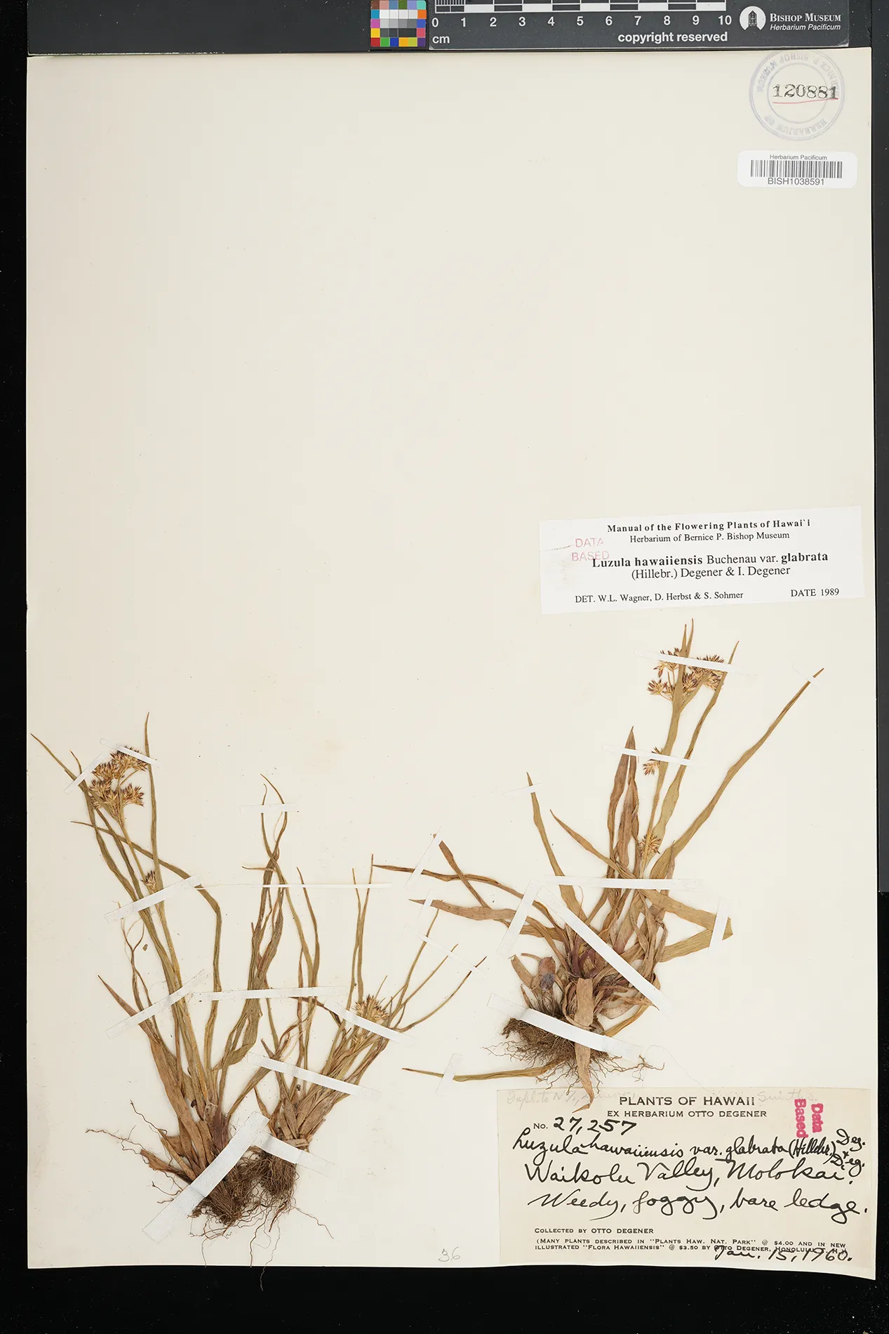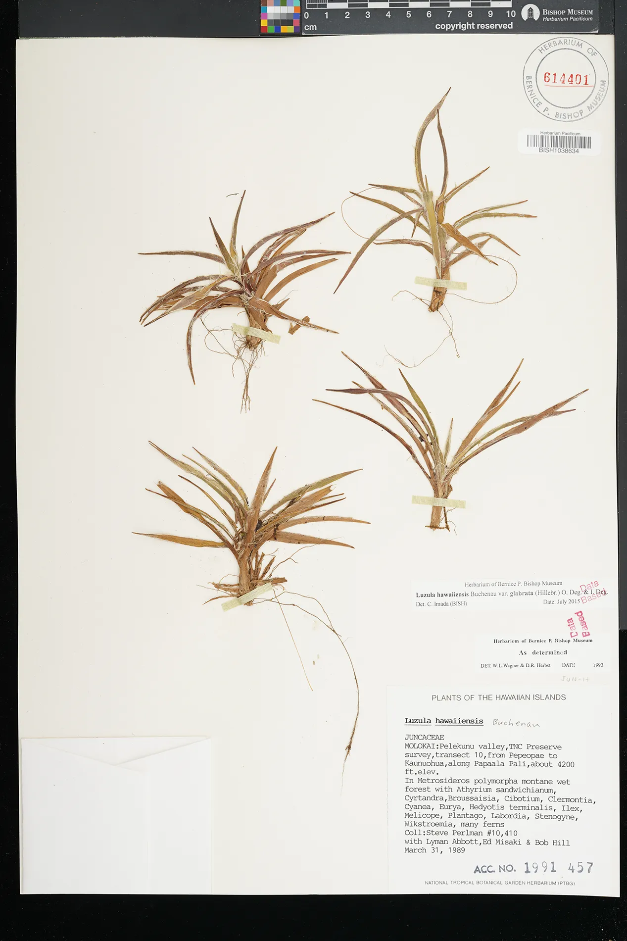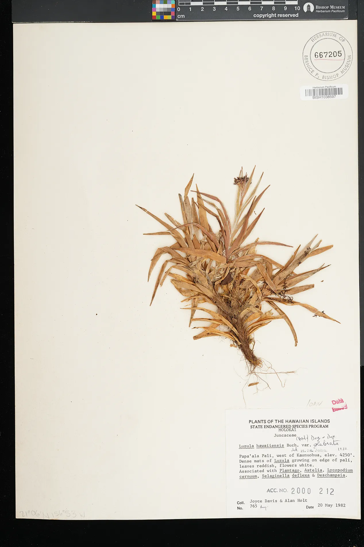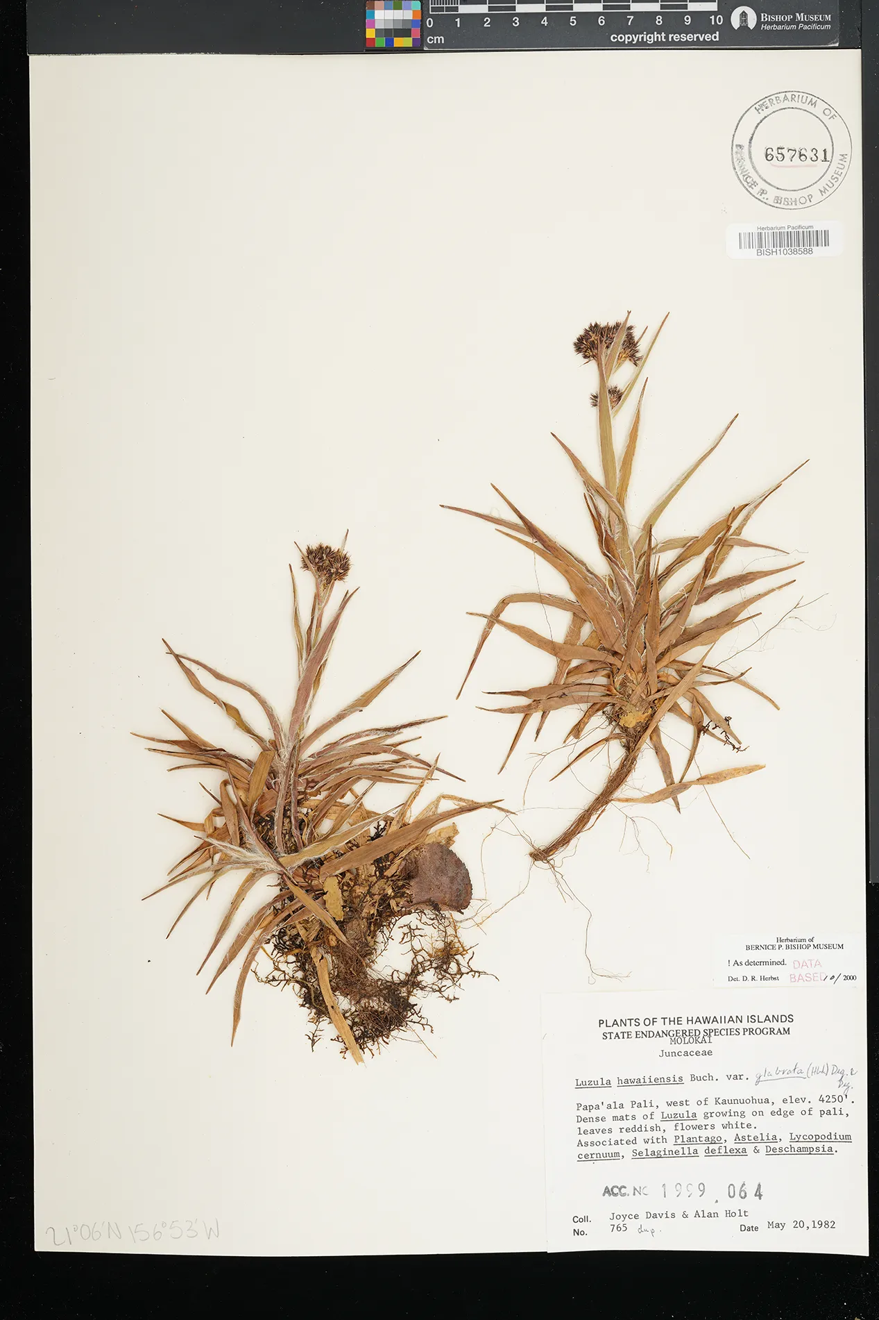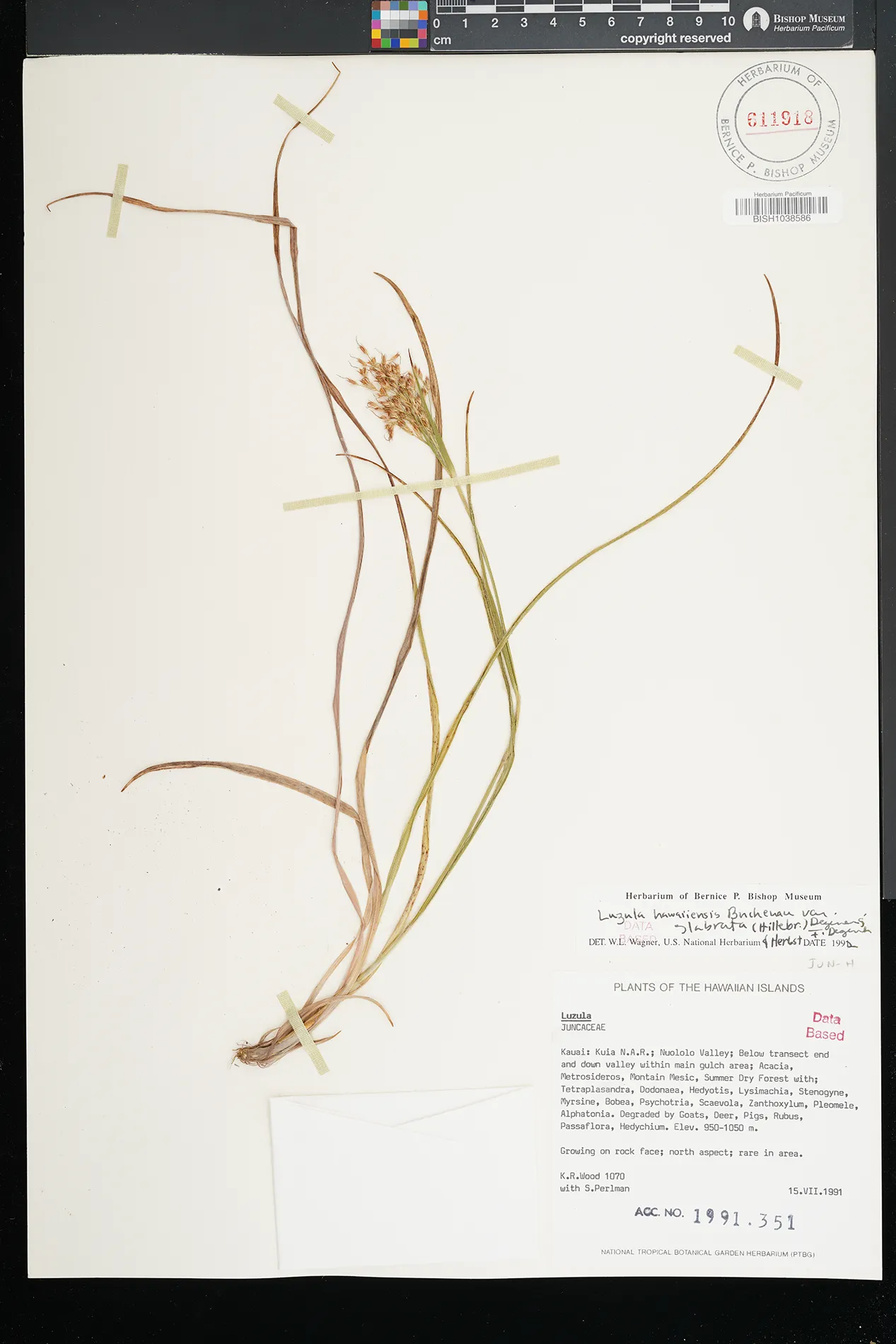Growing on edge of pali. Associated with Plantago, Astelia, Lycopodium cernuum, Selaginella deflexa and Deschampsia. |