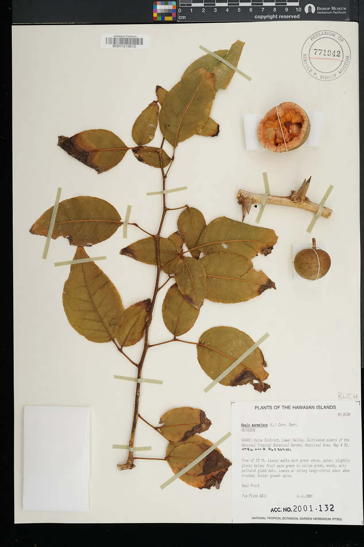 | 5 | Aegle marmelos | (L.) Corrêa | Lawai Valley, McBryde Garden | Cultivated | PRESERVED_SPECIMEN | Ruth Albert-Lyons | RAL2 | Kauai | PTBG | 1/9/2019 |