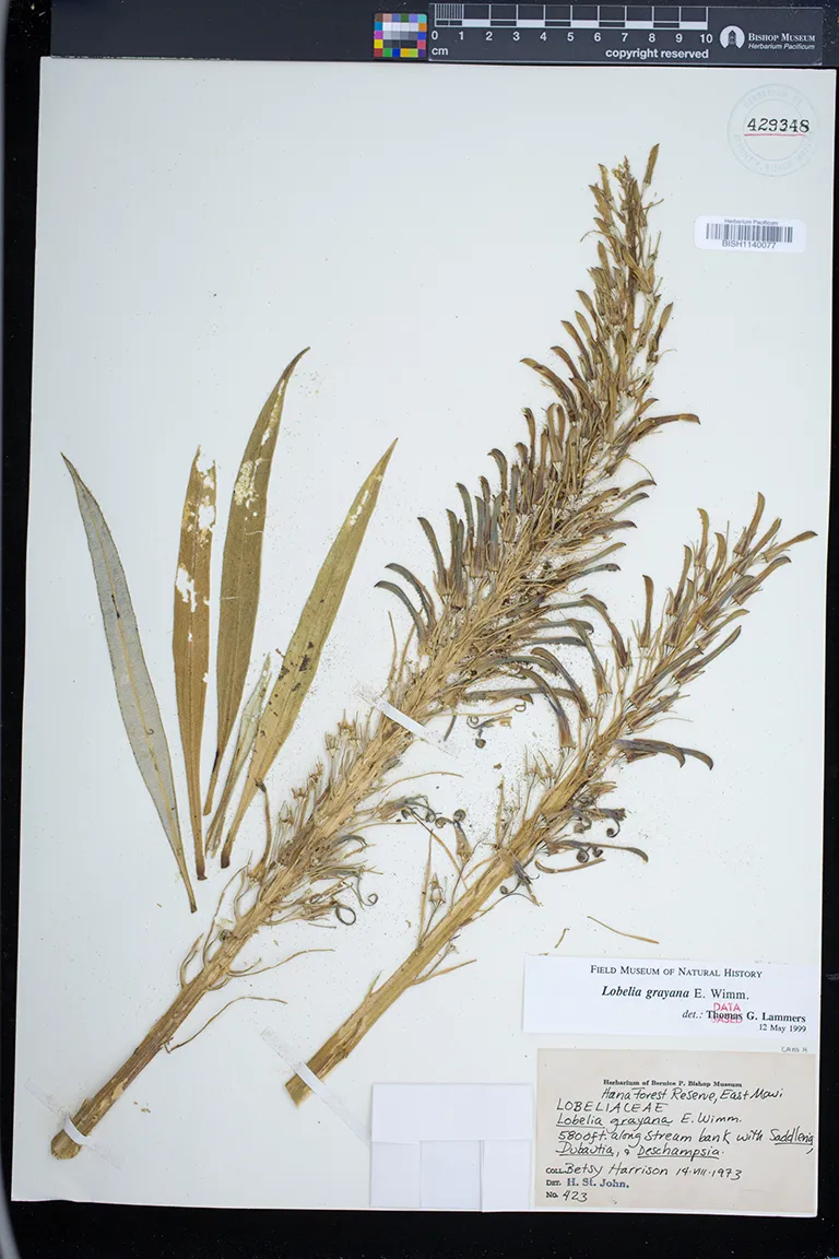 on perennial stream banks and cliffs, in open areas of wet forest. Vegetation: Metrosideros, Cheirodendron, Broussaisia, Perrottetia, Vaccinium, Leptecophylla, Dubautia, Coprosma, Rubus, Sadleria, Pipturus, Dryopteris, Hillebrandia, Clermontia, Kadua, Psychotria, Melicope, Myrsine, Scaevola, Athyrium, Diplazium, Asplenium, Pilea, Peperomia, Deschampsia, Uncinia, Pteris, Luzula, Cibotium, Cyanea, Gunnera, Amauropelta, Elaphoglossum, Grammitis. |