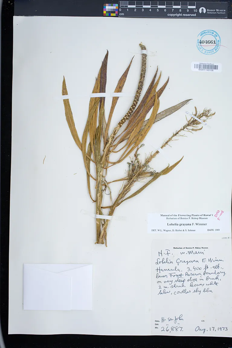 In shady, wet places of Metrosideros polymorpha forest. With Dubautia plantaginea platyphylla, Cheirodendron, Pittosporum. |