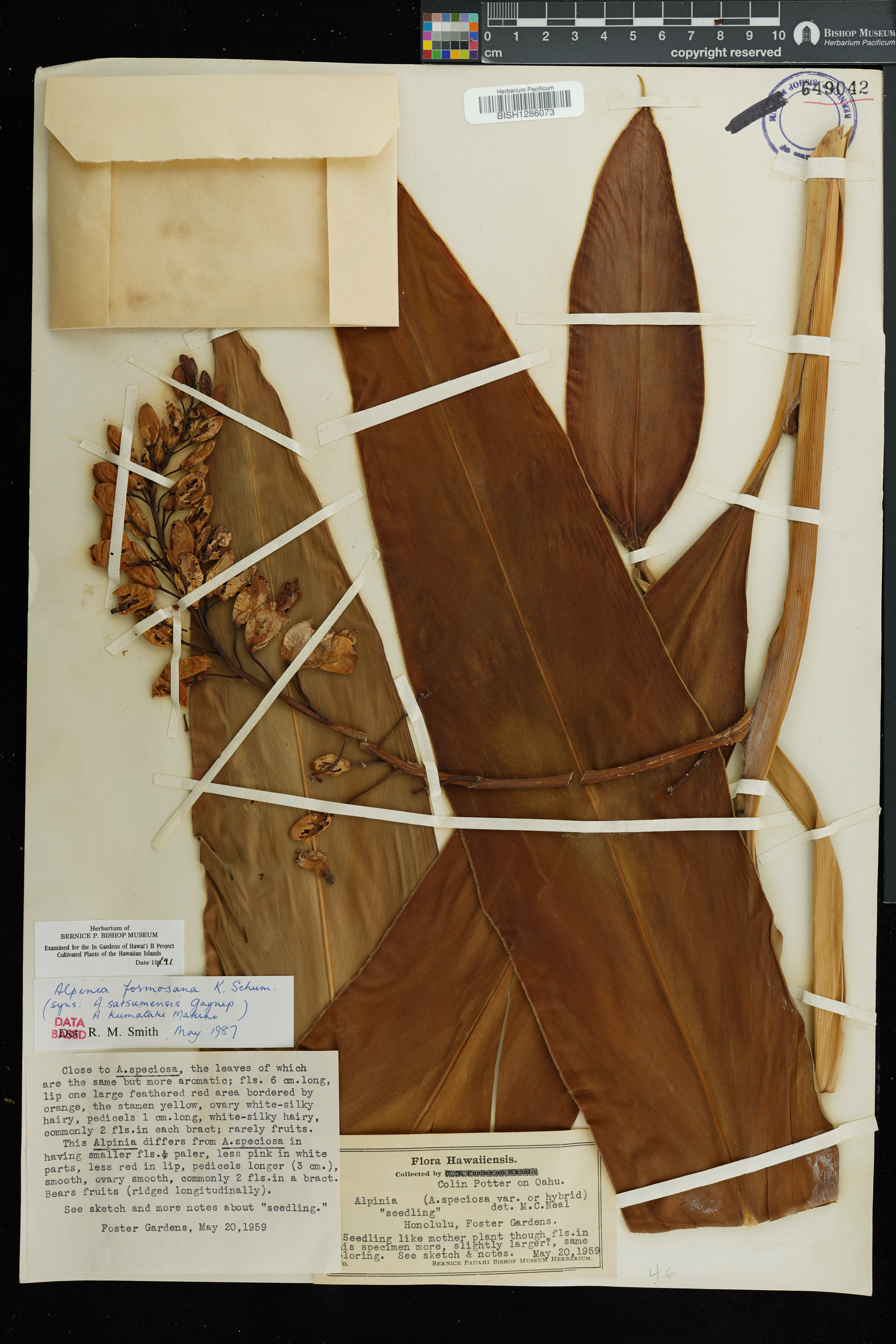 | 5 | Alpinia formosana | K.Schum. | Honolulu; Foster Gardens | PRESERVED_SPECIMEN | Potter, C. | s.n. | Oahu | BISH | 5/25/1959 | |