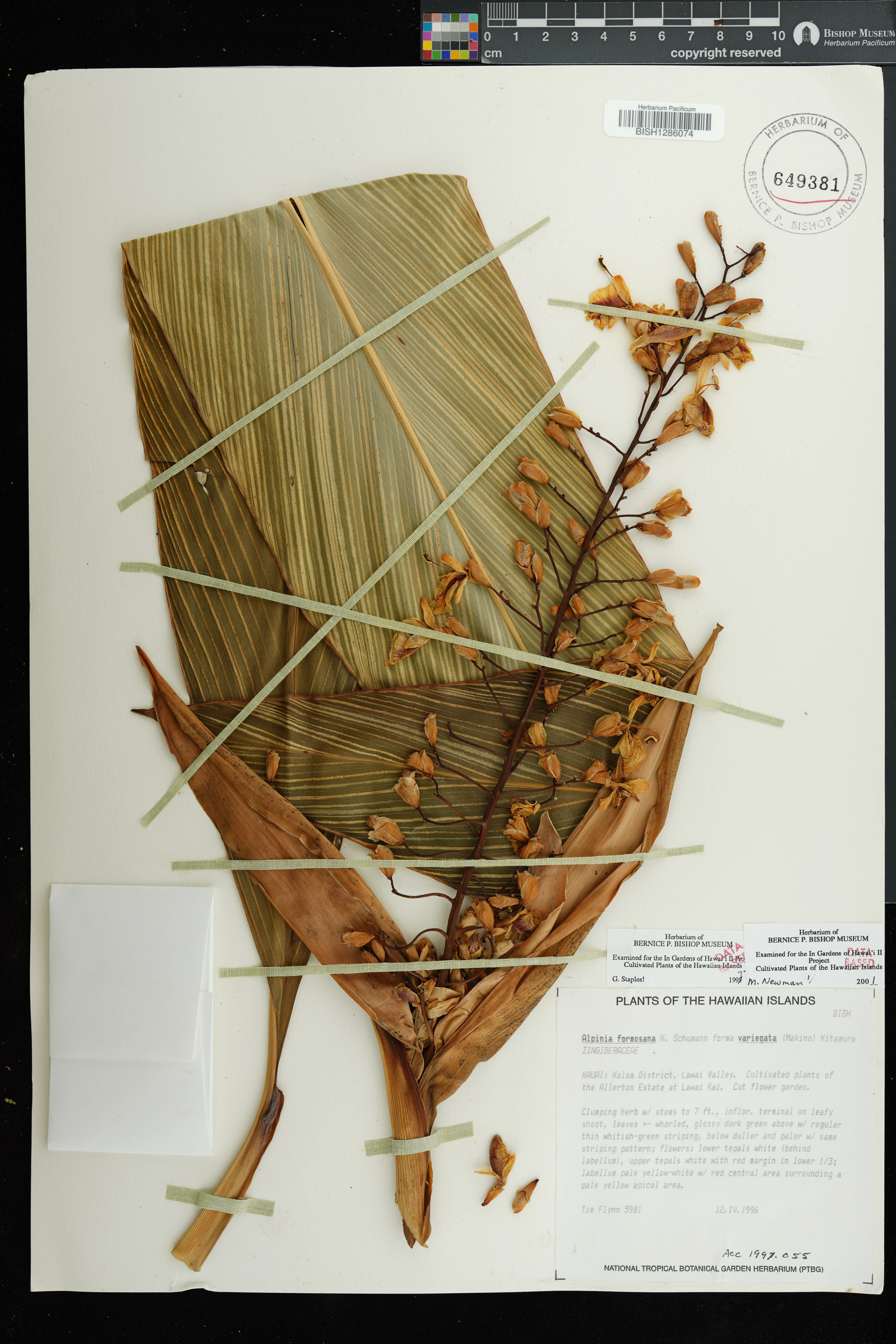 | 9 | Alpinia formosana | K.Schum. | koloa district, lawai valley, allerton estate at lawai kai | PRESERVED_SPECIMEN | flynn, t. | collector number: 5981 | Kauai | BISH | 4/12/1996 |