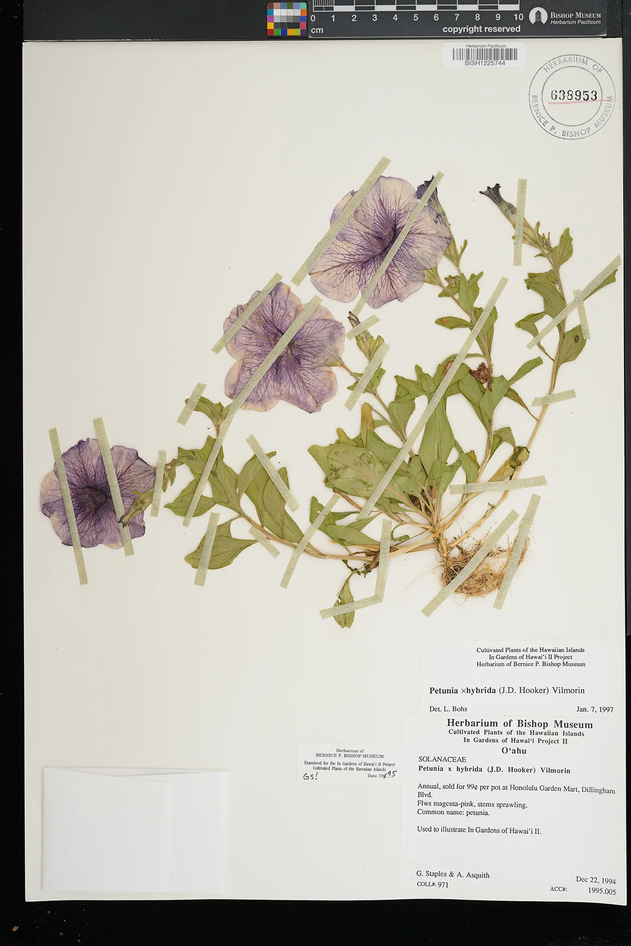 | 5 | Petunia × atkinsiana | Honolulu Garden Mart, Dillingham Blvd | PRESERVED_SPECIMEN | Staples, G. | 971 | Oahu | BISH | 12/22/1994 |