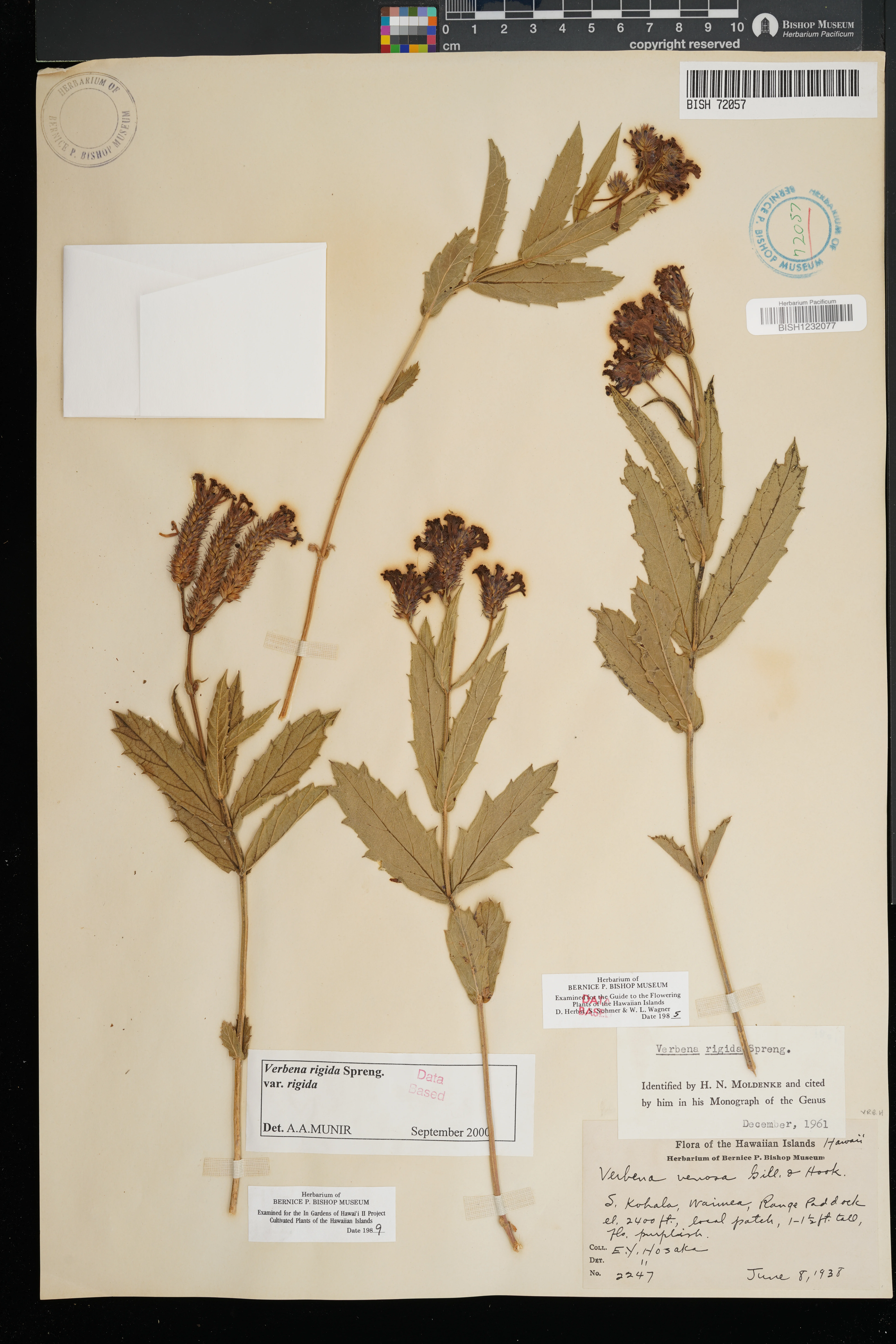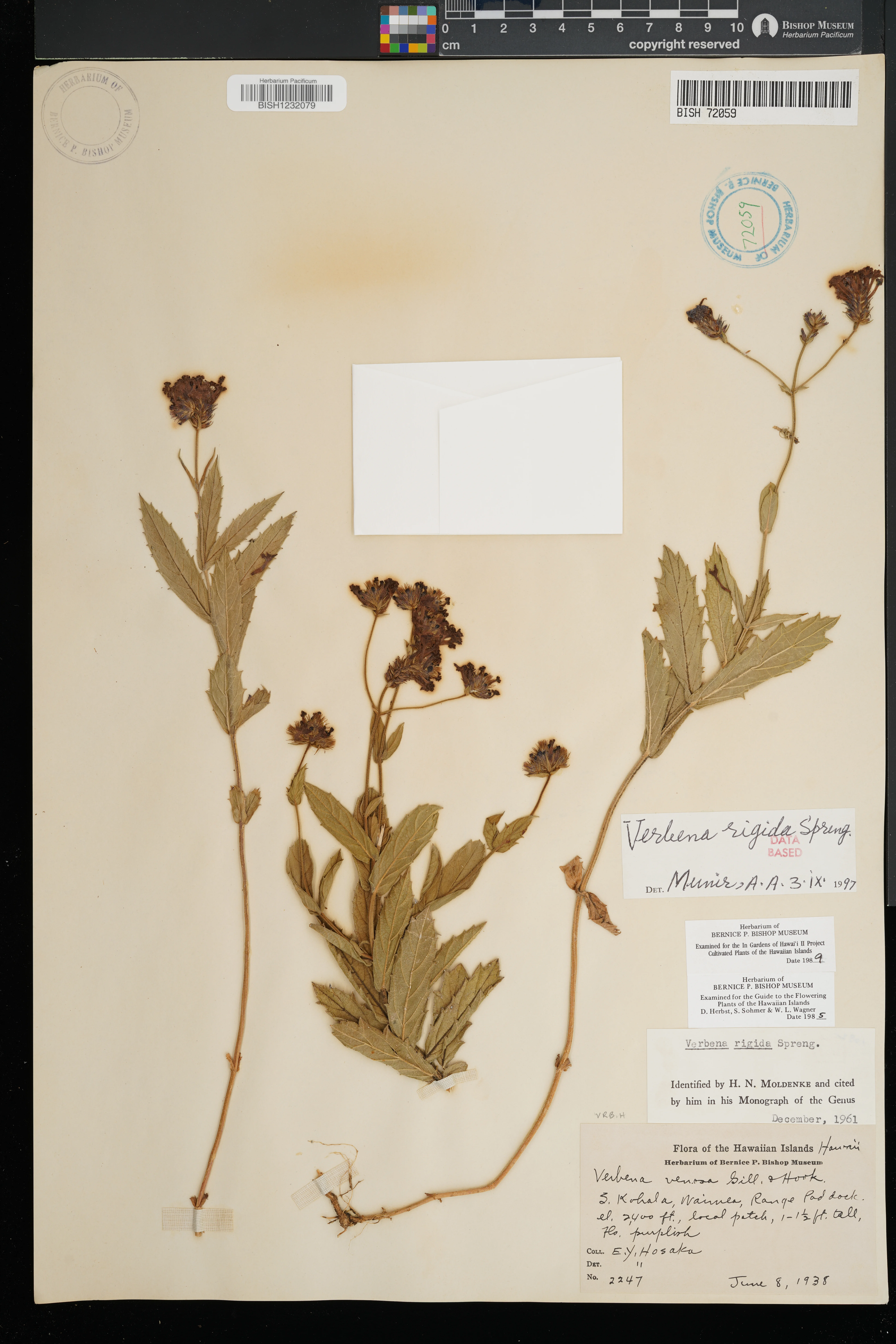 5 Verbena rigida Spreng. s. kohala; waimea range paddock PRESERVED_SPECIMEN hosaka, e.y. collector number: 2247 Hawaii BISH 6/8/1938