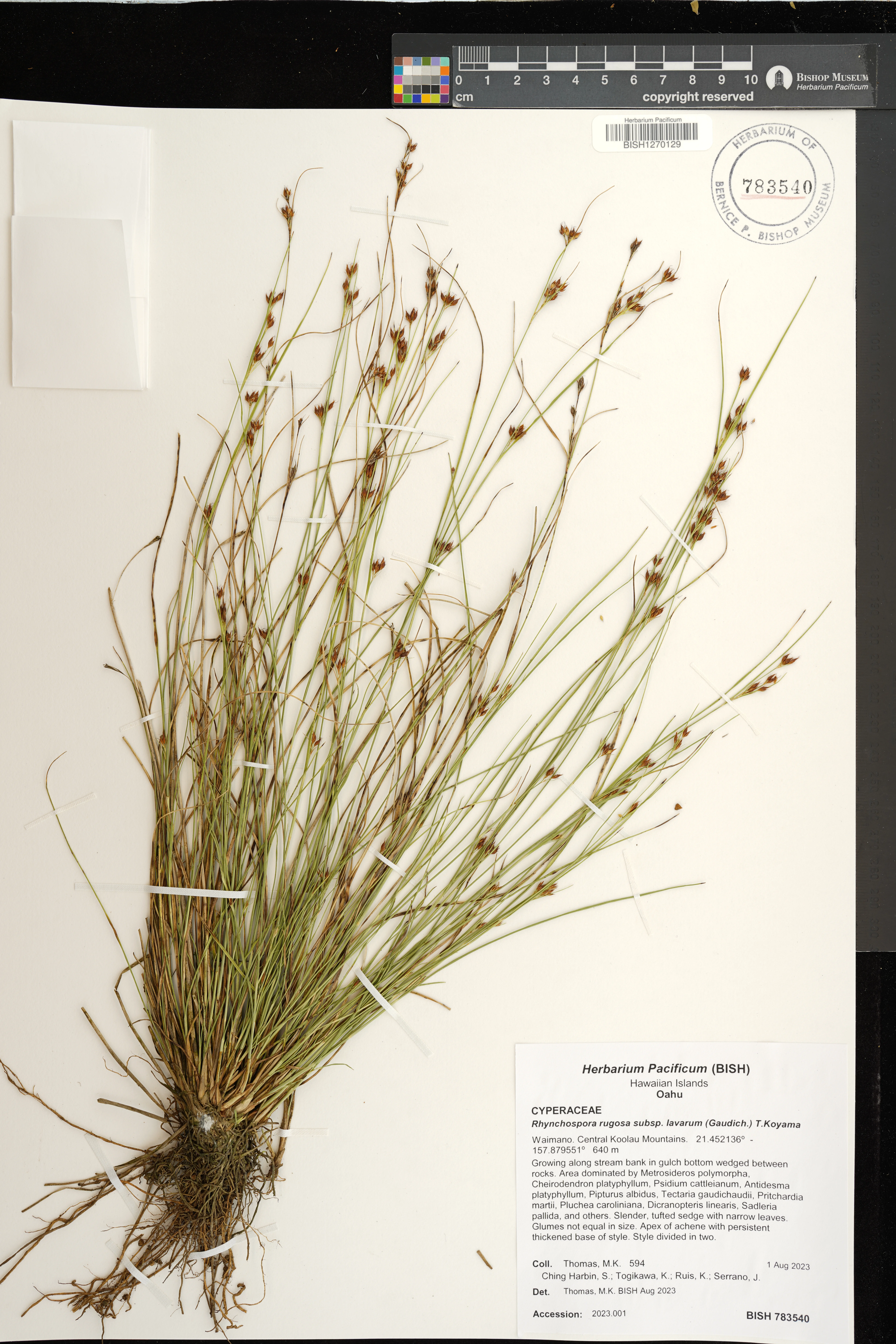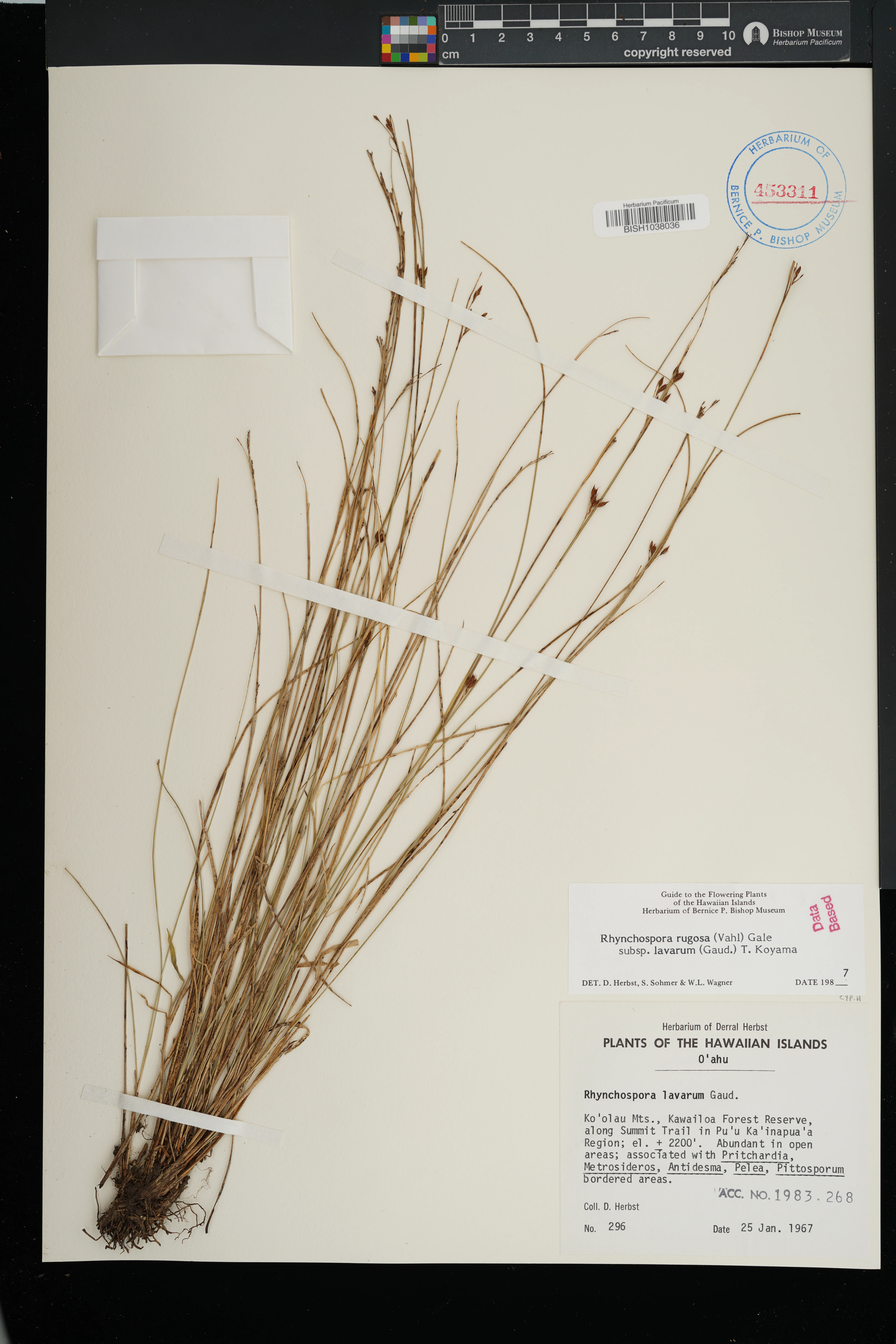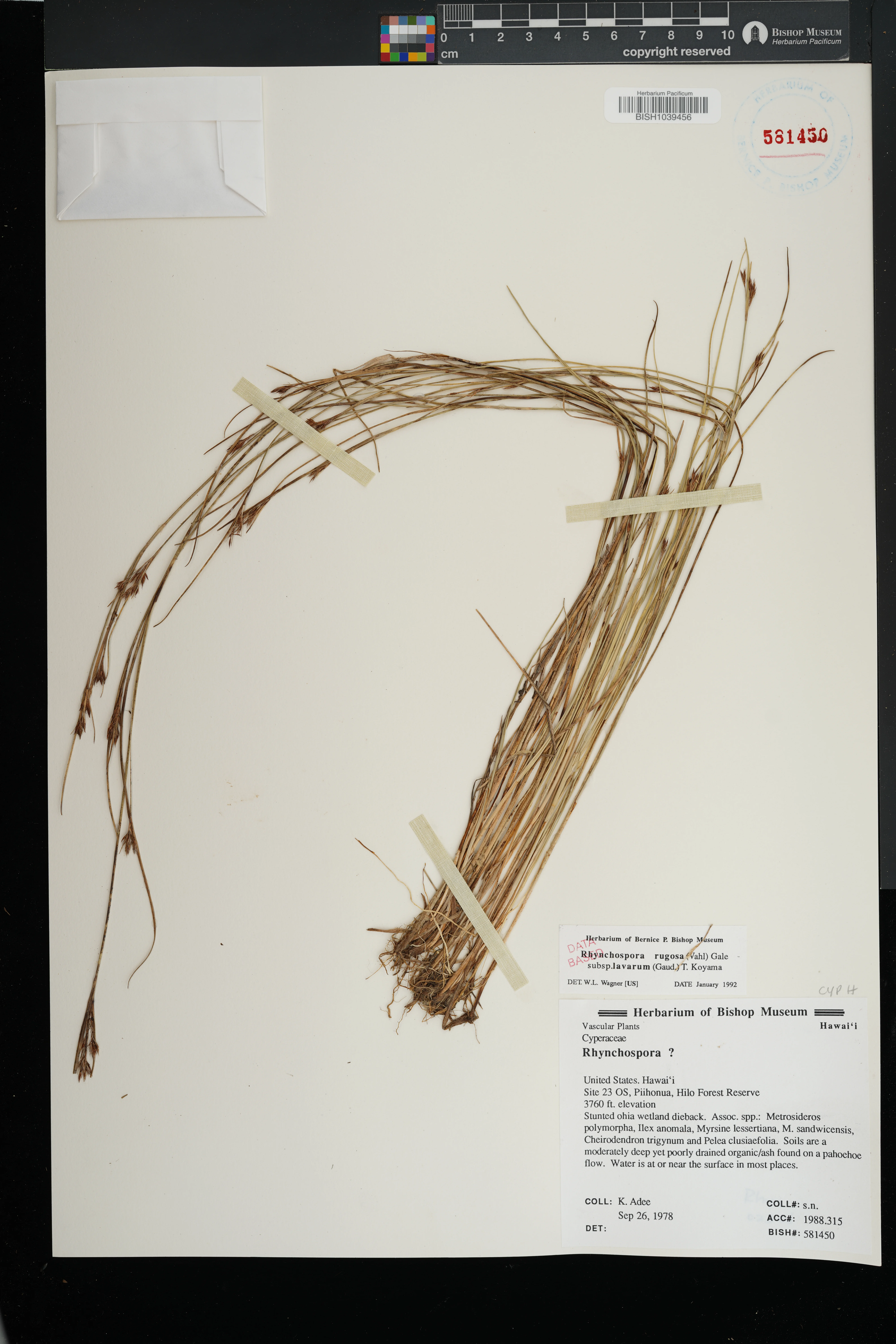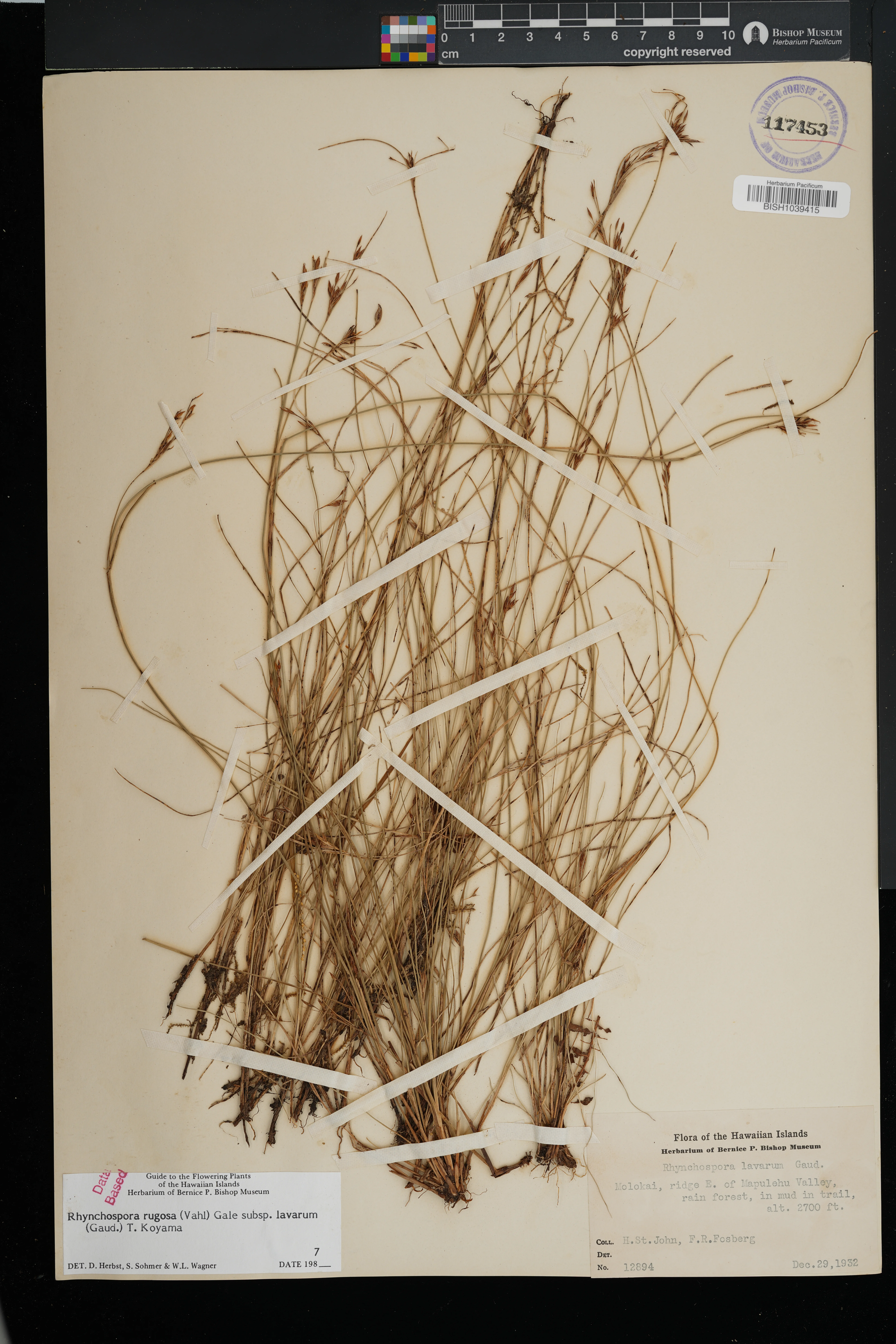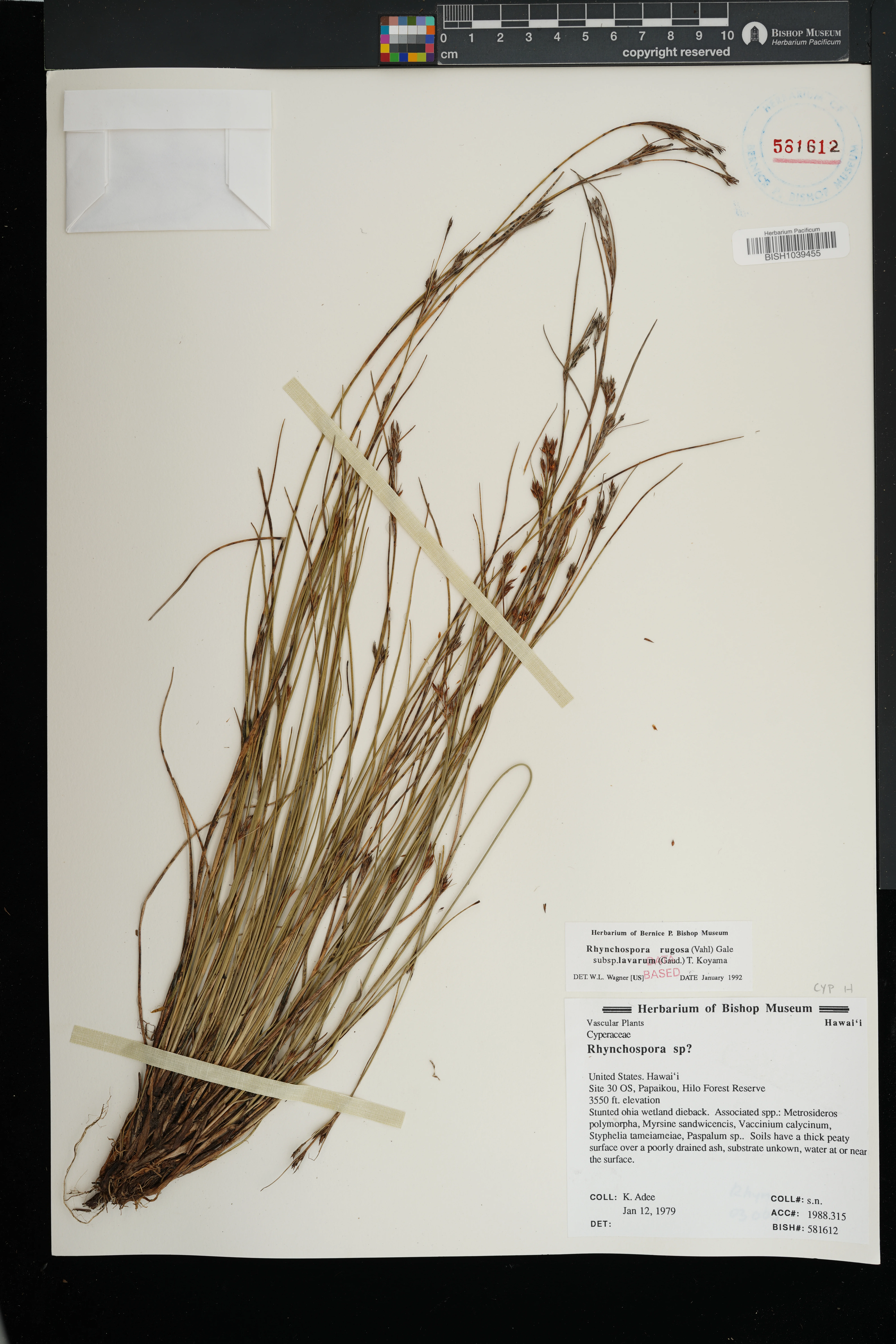 Acacia koa-Metrosideros polymorpha mesic to wet forest. Occasional to common along basalt stream bed, with Deschampsia nubigena |