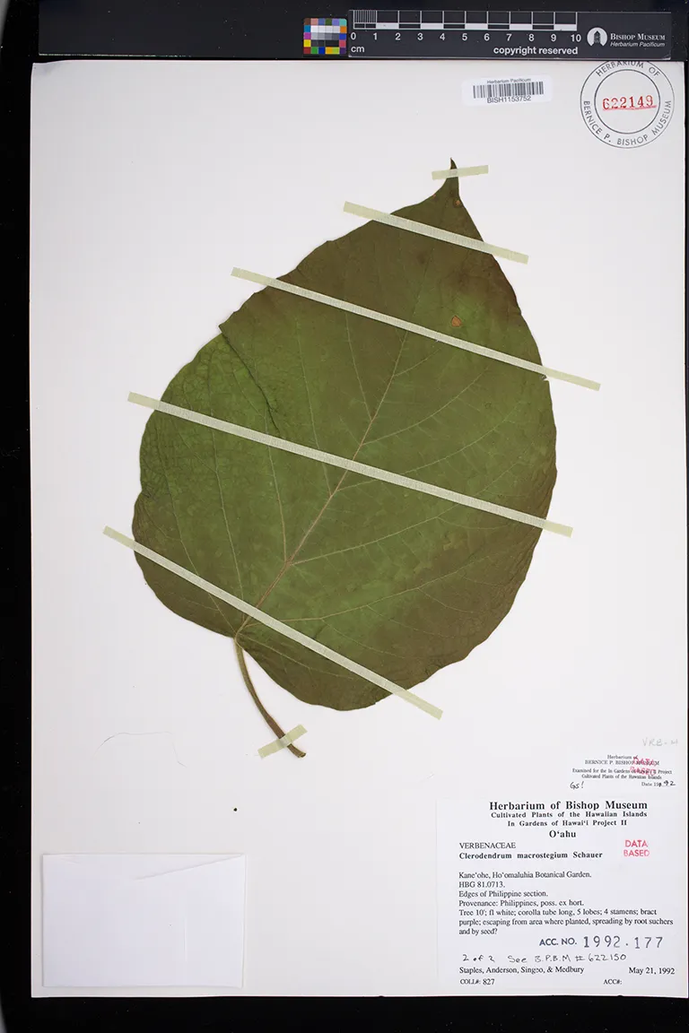 wet forest, roadside; with Buddleia asiatica, Alocasia macrorrhizos |