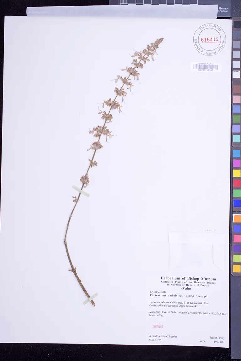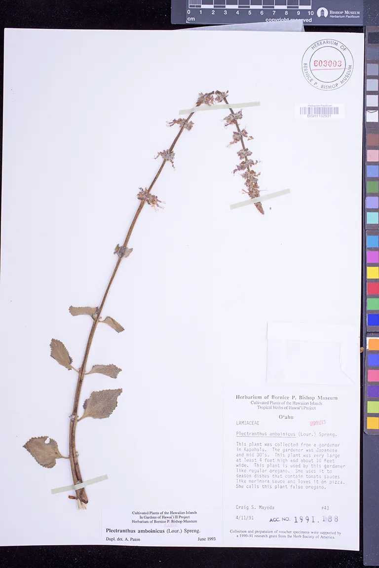 This plant was collected from a gardener in Kapahulu. The gardener was Japanese and mid 30s. |