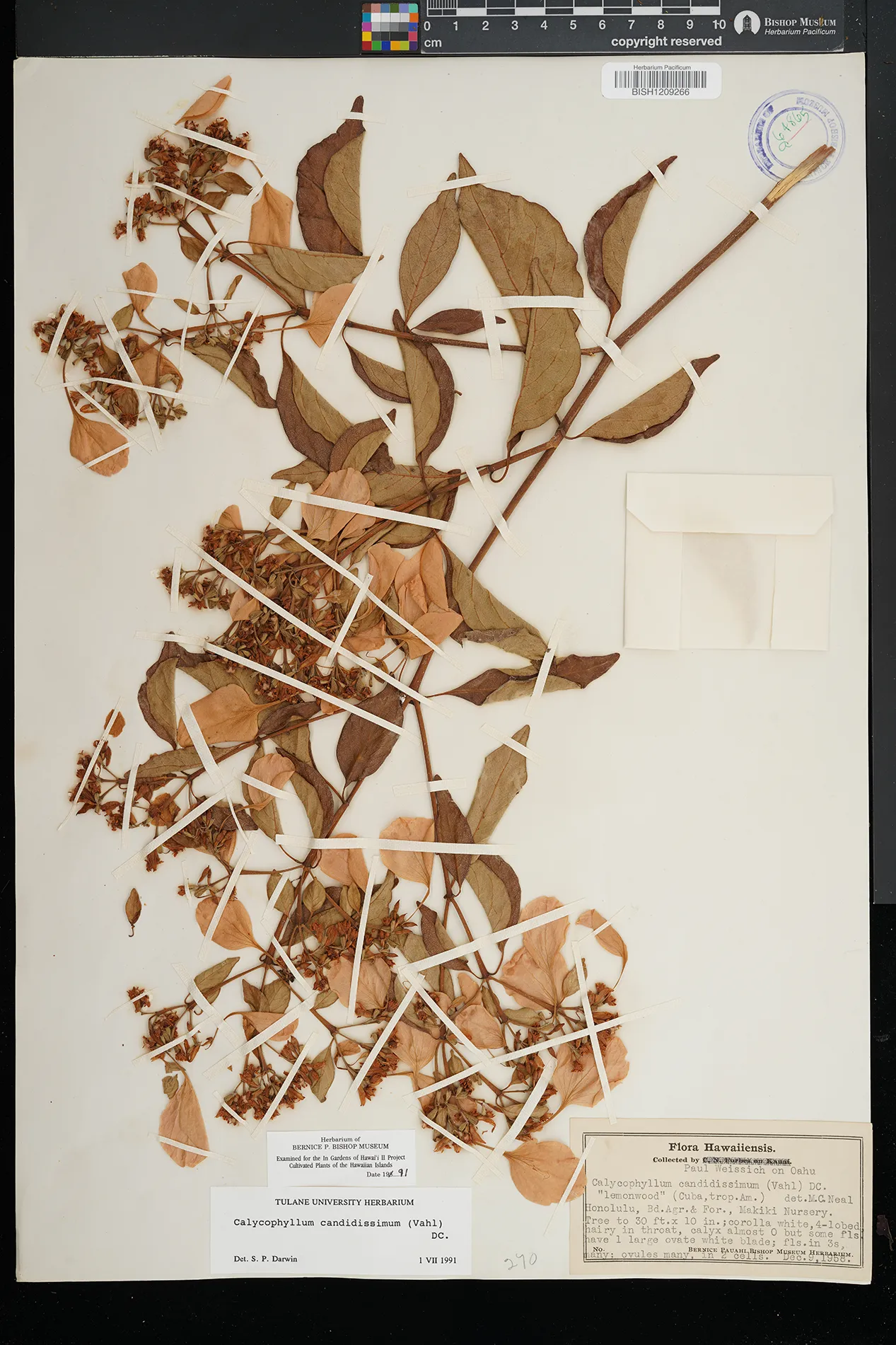| 6 | Calycophyllum candidissimum | (Vahl) DC. | Honolulu, Bd. of Agr. & For., Makiki Nursery | PRESERVED_SPECIMEN | Weissich, P. | s.n. | Oahu | BISH | 12/9/1958 |