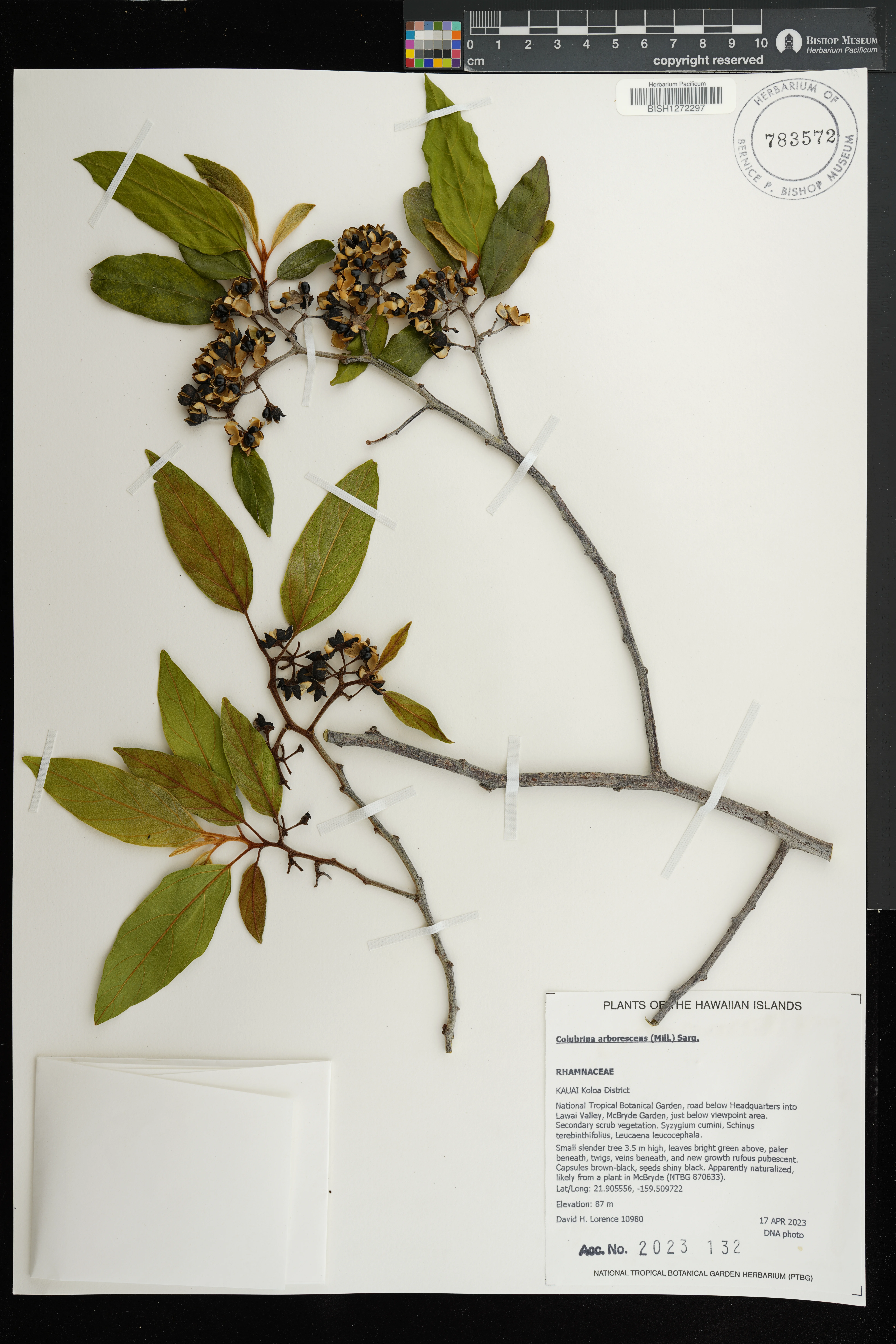 | 2 | Colubrina arborescens | (Mill.) Sarg. | koloa district: lawai valley.national tropical botanical garden | Big valley. | PRESERVED_SPECIMEN | flynn, t. | collector number: 5479 | Kauai | BISH | 12/20/1993 |