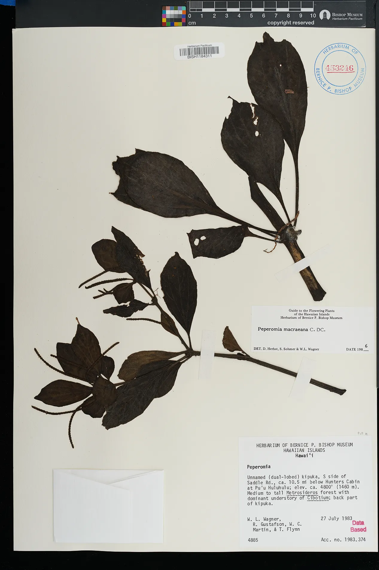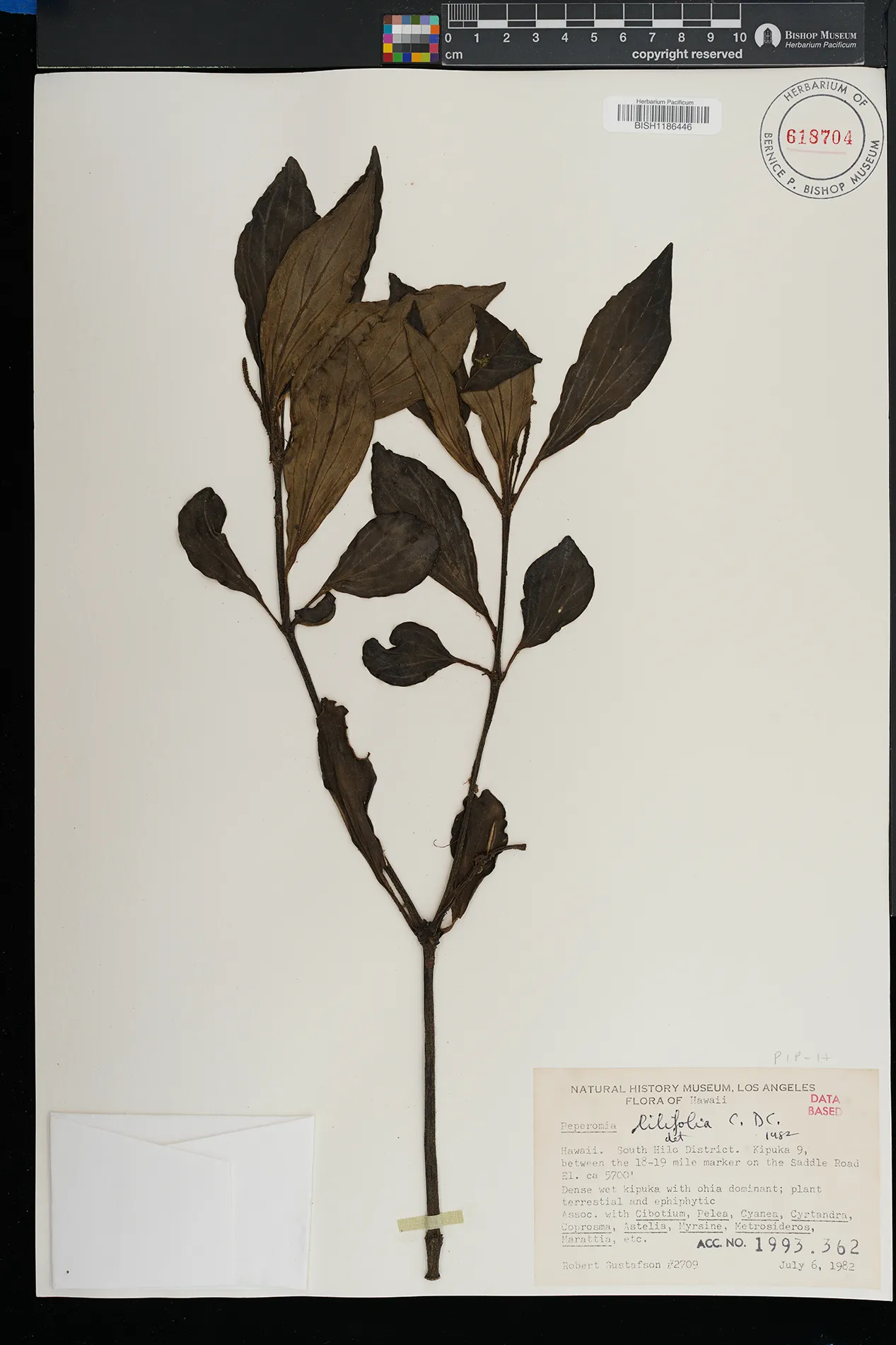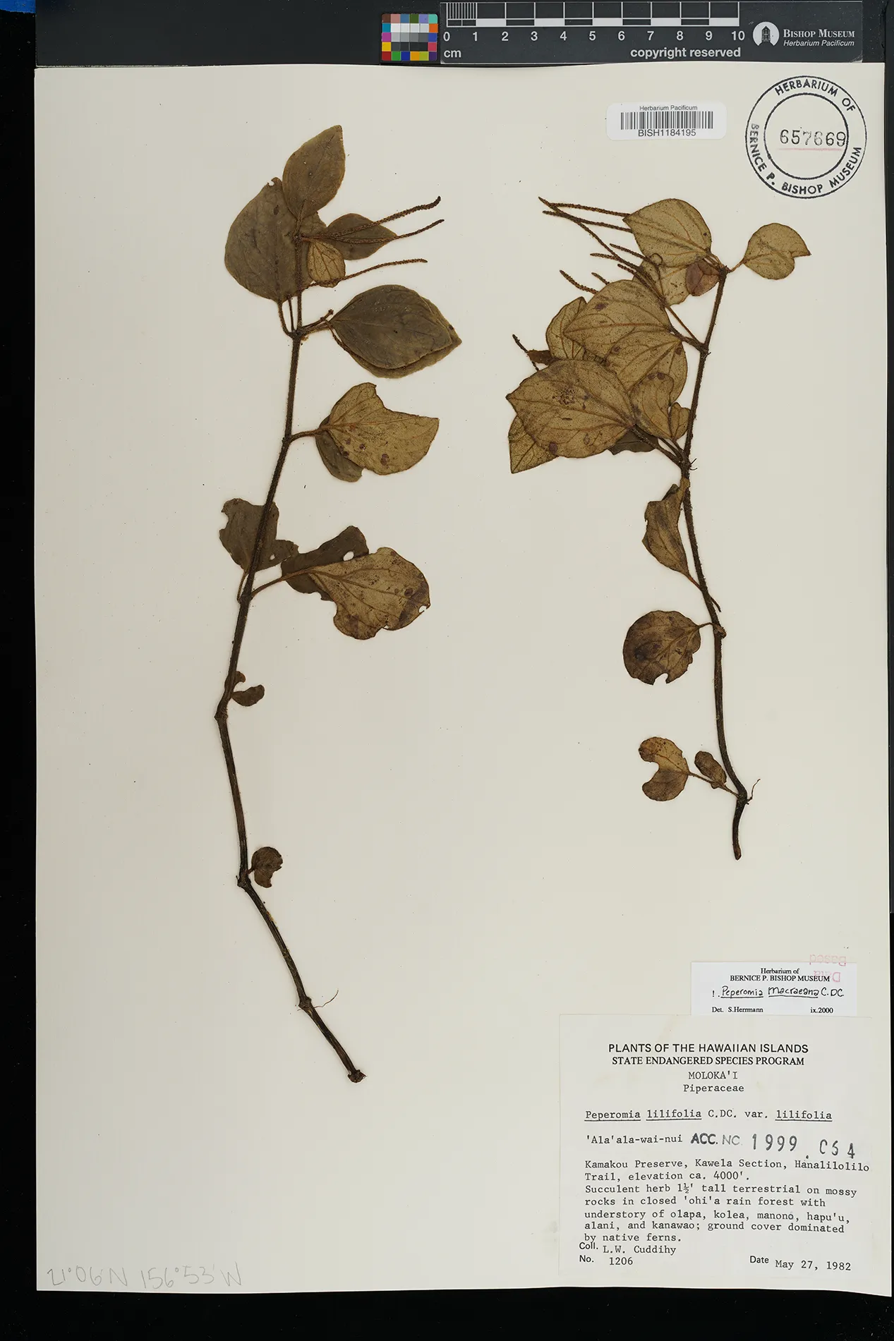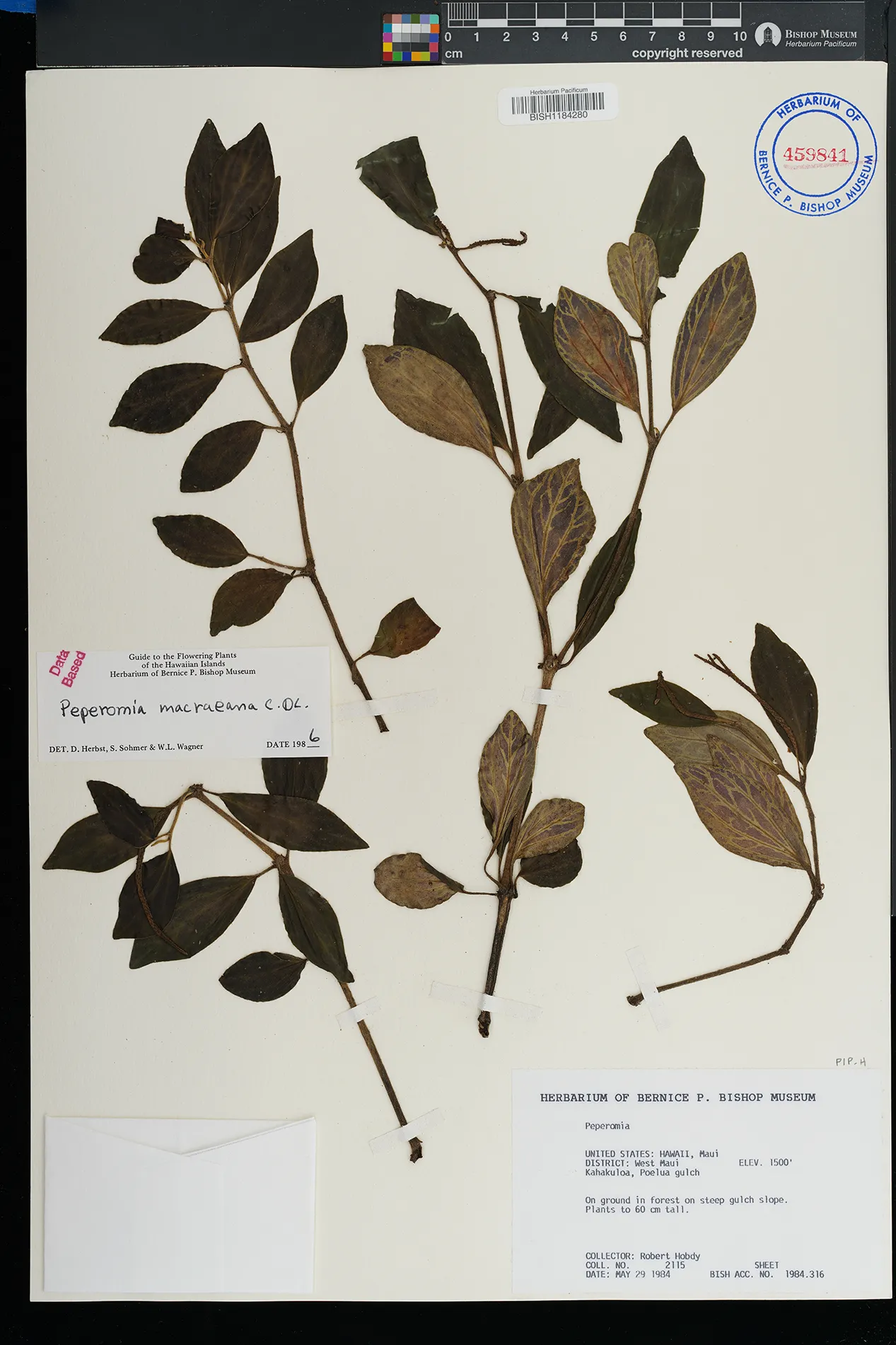 KAUAI: Waimea canyon, upper Kawaiiki valley, north of Kalua- haulu ridge, between ridge and stream, north facing slope. |